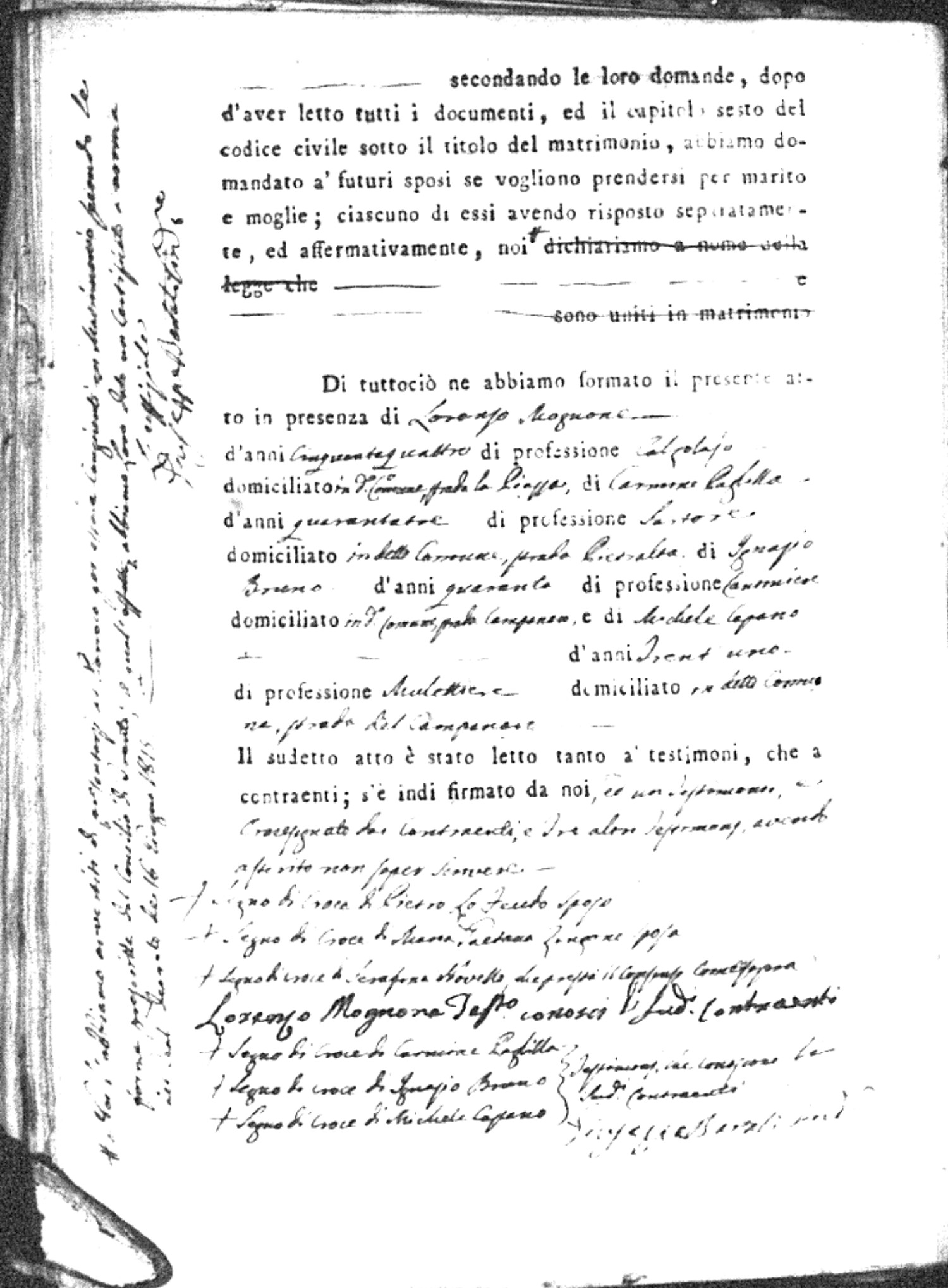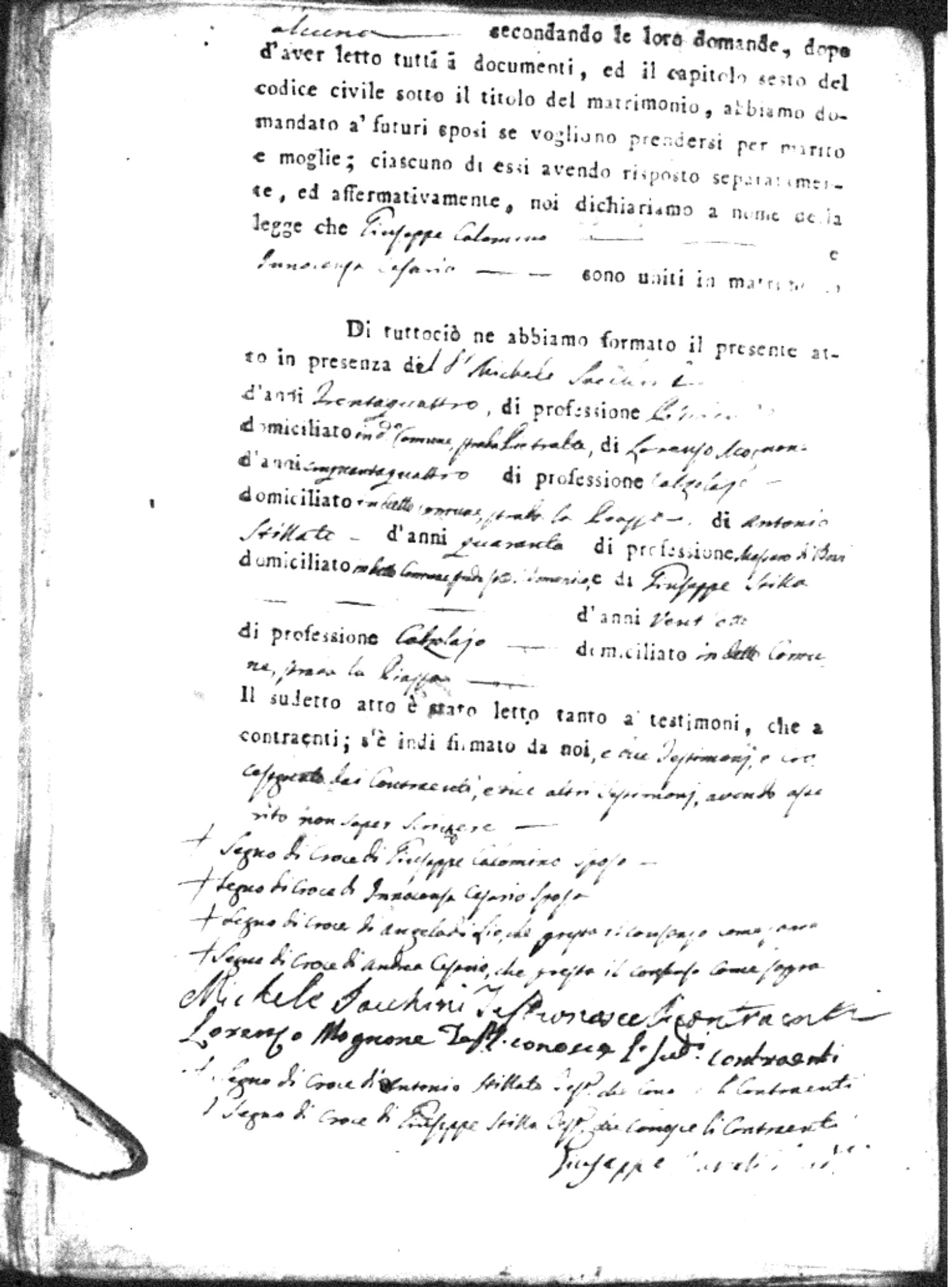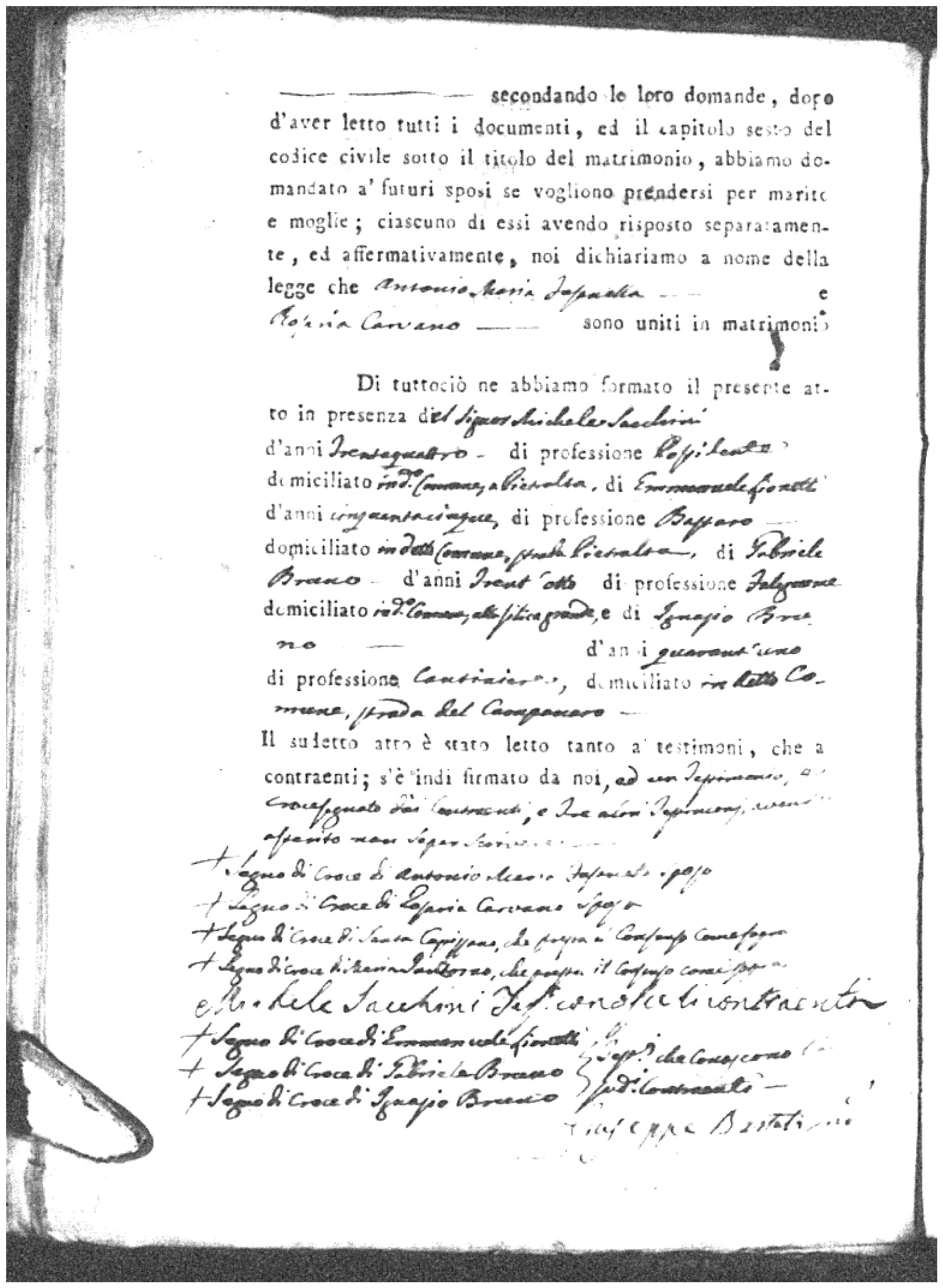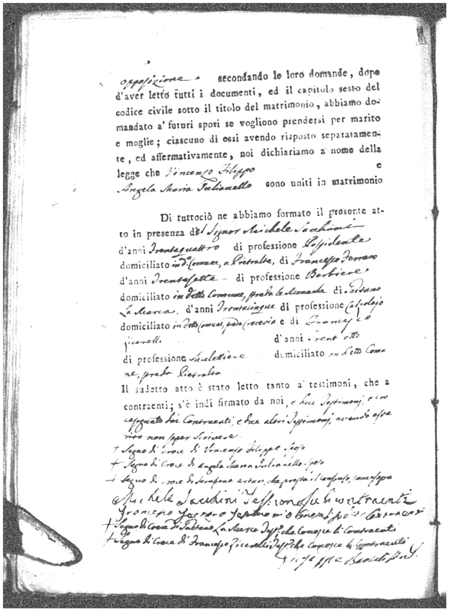 | Esposito | Ignazio | unknown | unknown | unknown | Marchese | Angela Maria | Gennaro (fu) | Passarello | Rosaria |