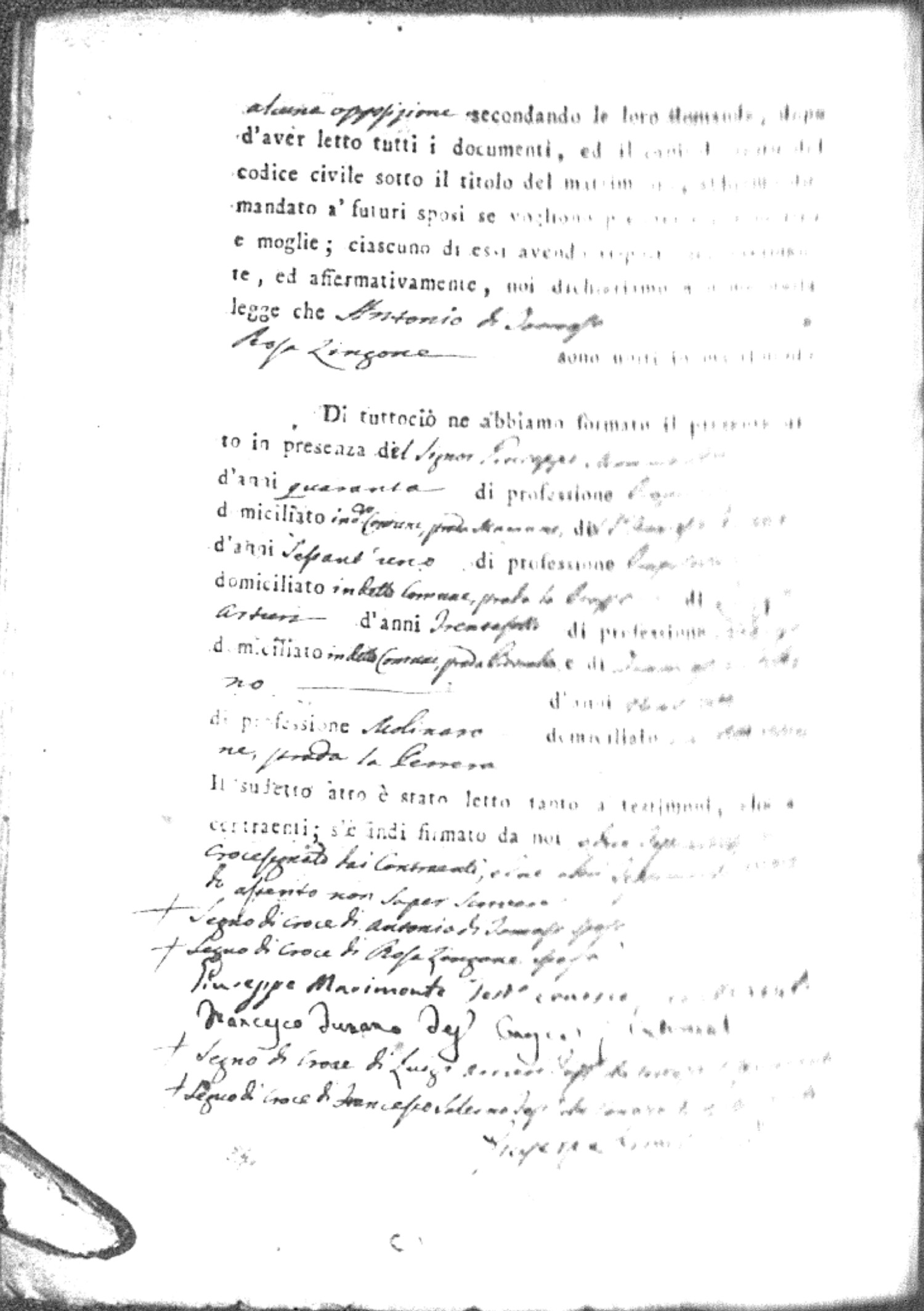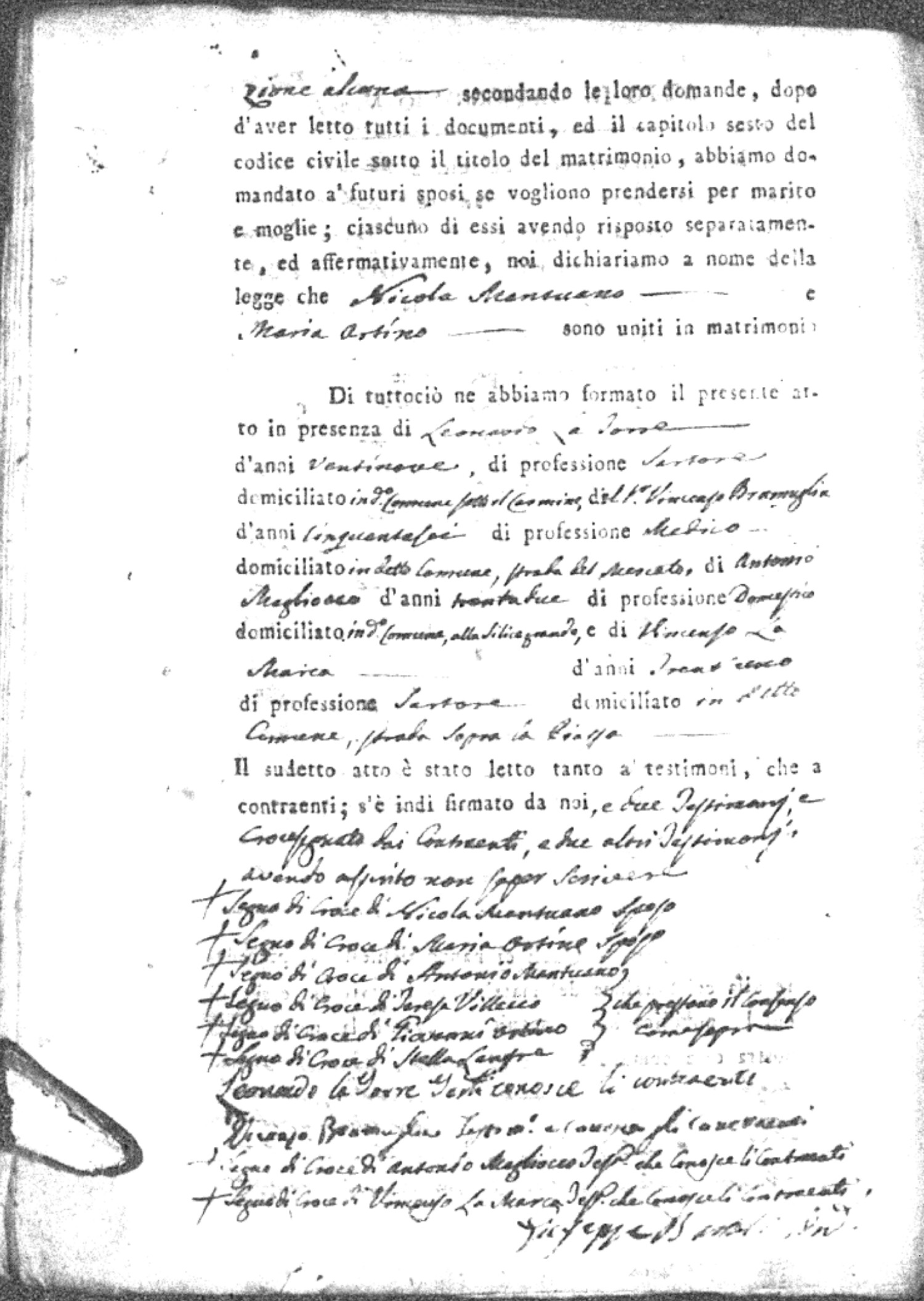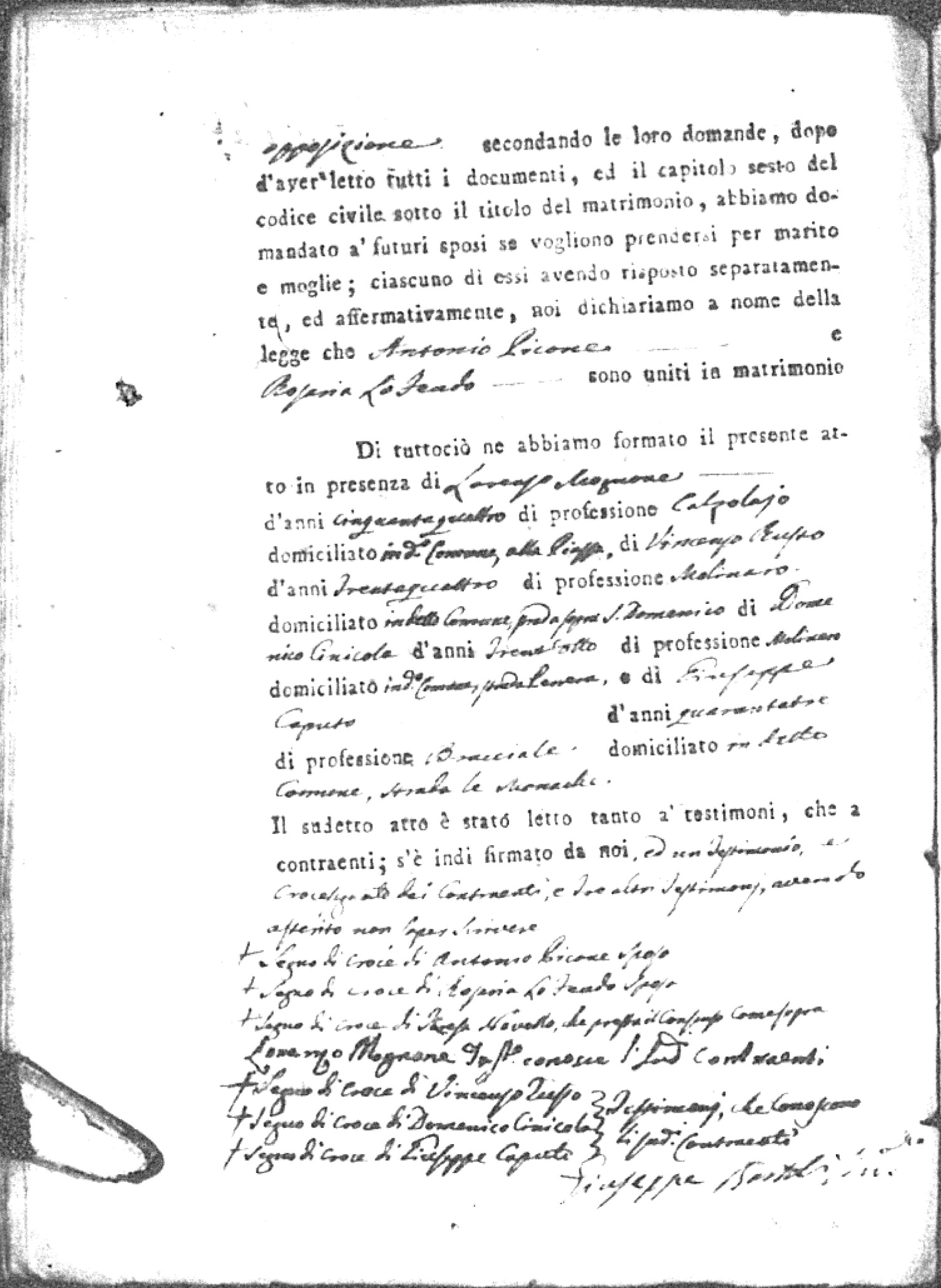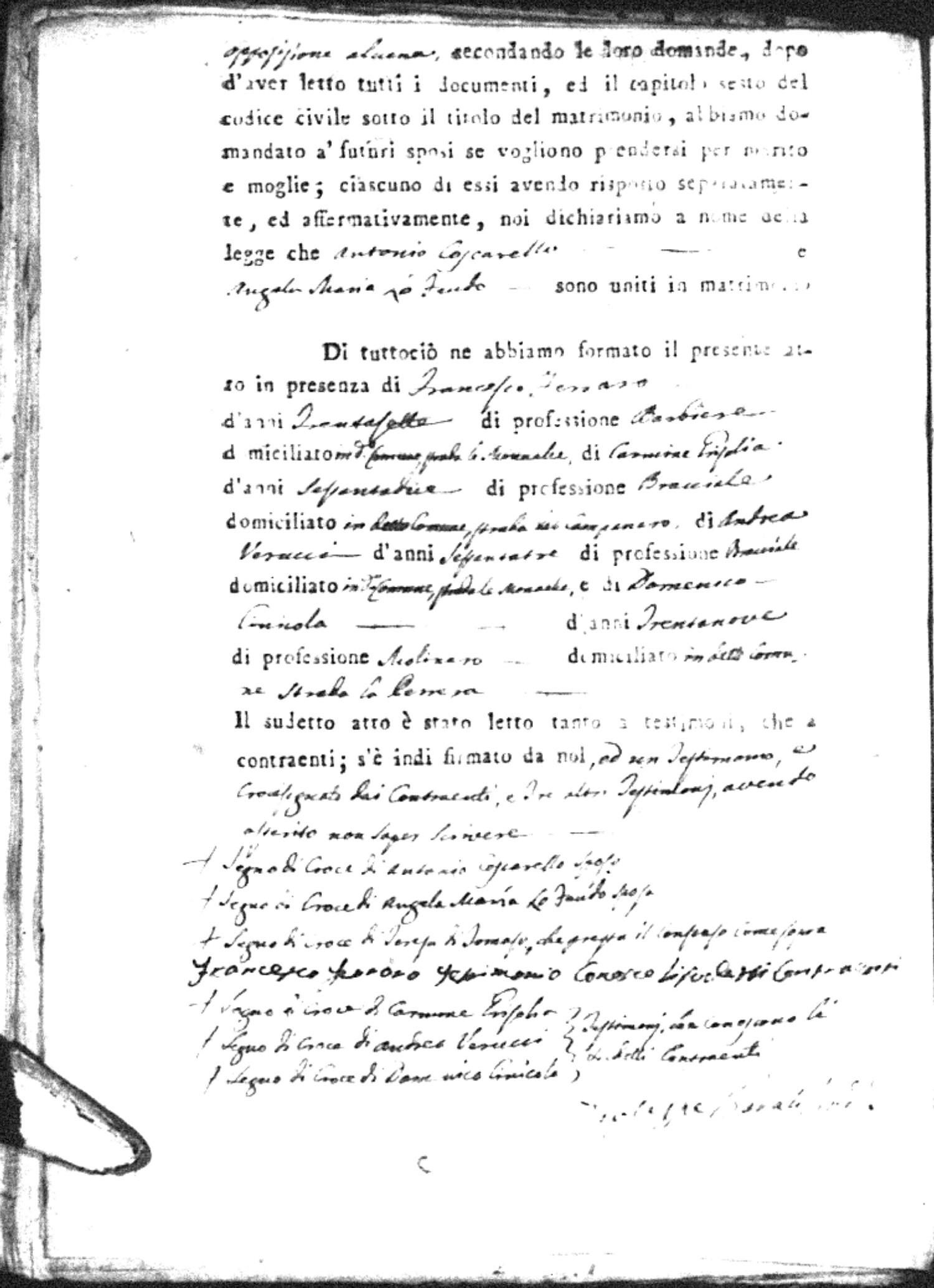 | Coscarello | Antonio | Marco (fu) | Bozzarello | Marianna (fu) | LoFeudo | Angela Maria | Carmine (fu) | DiTomaso | Teresa |