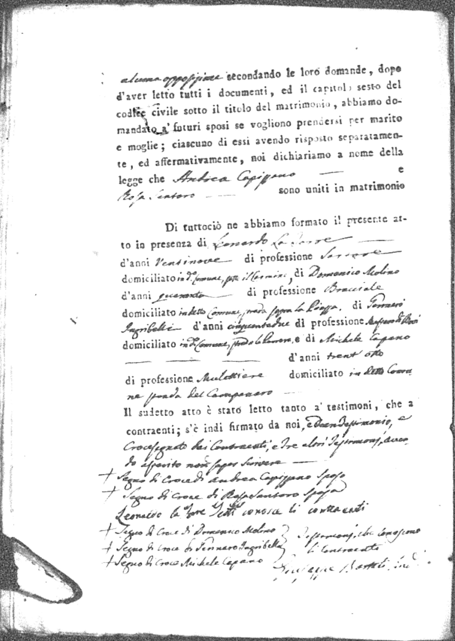 | Esposito | Gabriele | unknown | unknown | unknown | Napolitano | Rosaria | Arcangelo (fu) | Crivaro | Chiara (fu) |