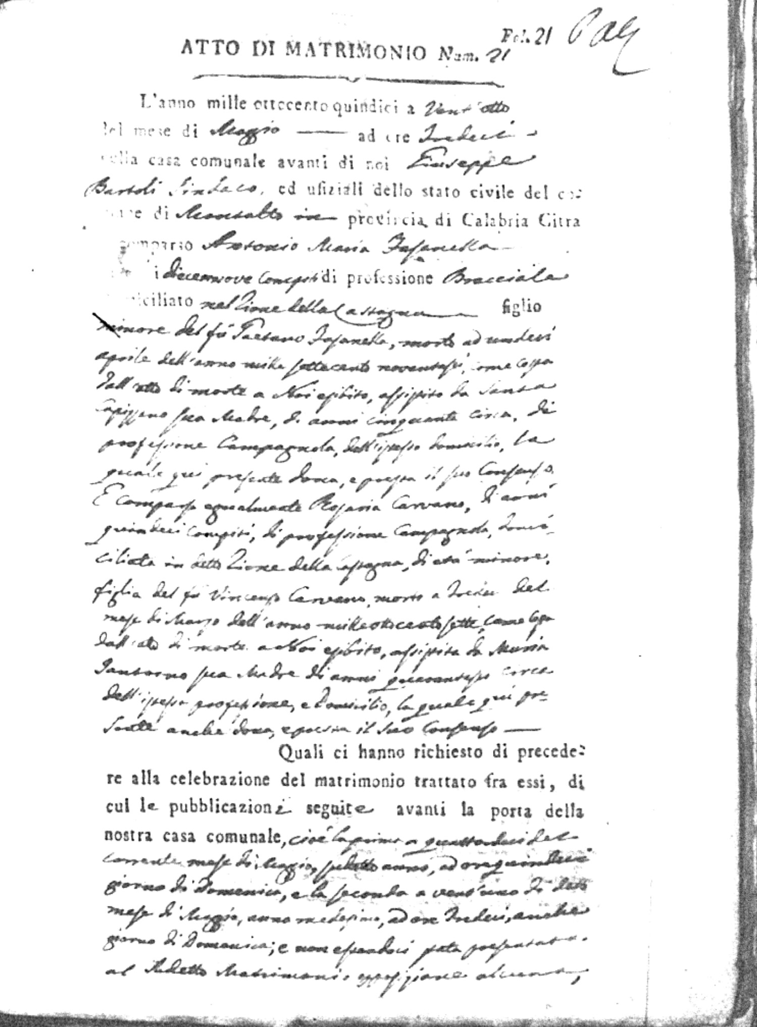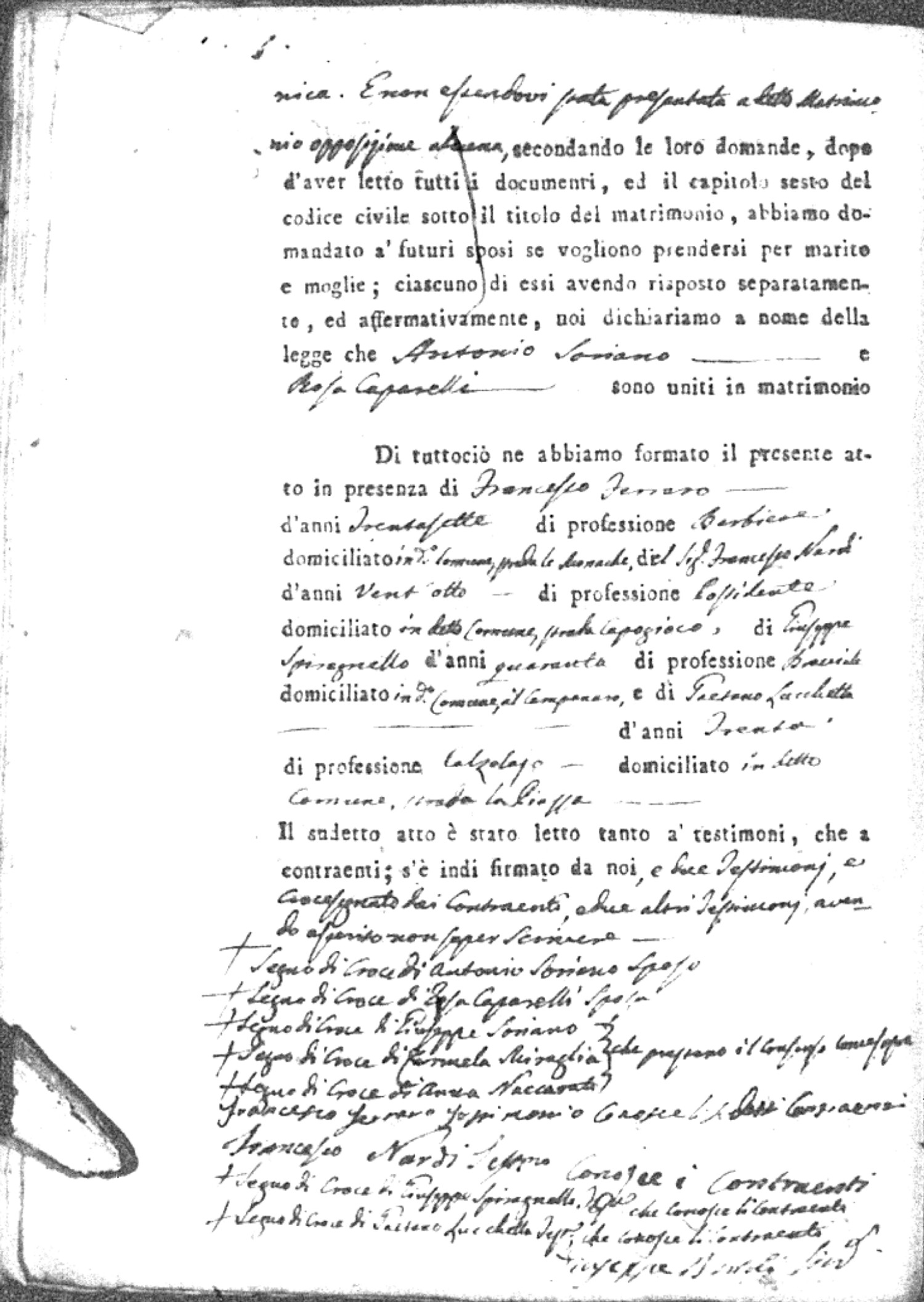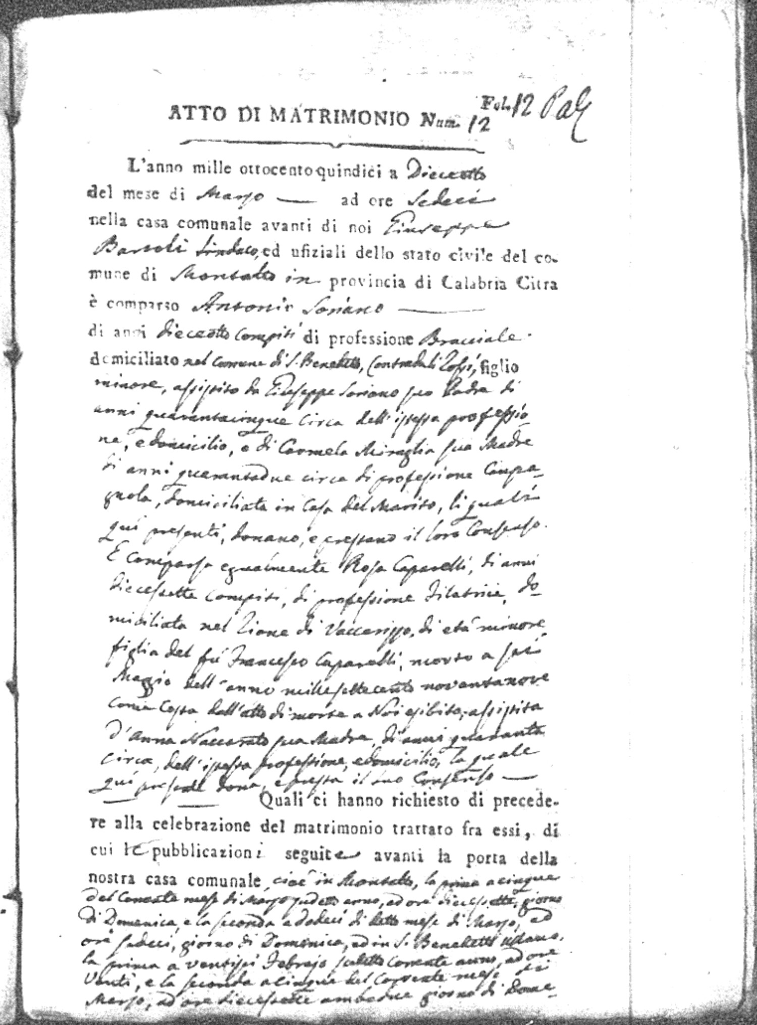 | Soriano | Antonio | Giuseppe | Miraglio | Carmela | Caparelli | Rosa | Francesco (fu) | Naccarato | Anna |