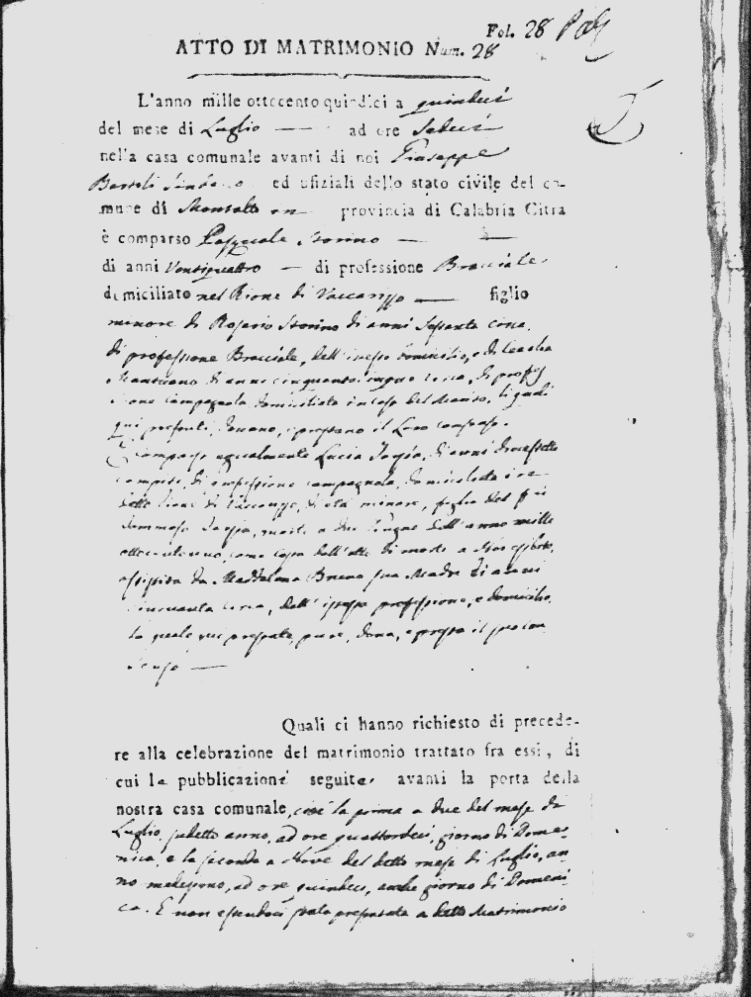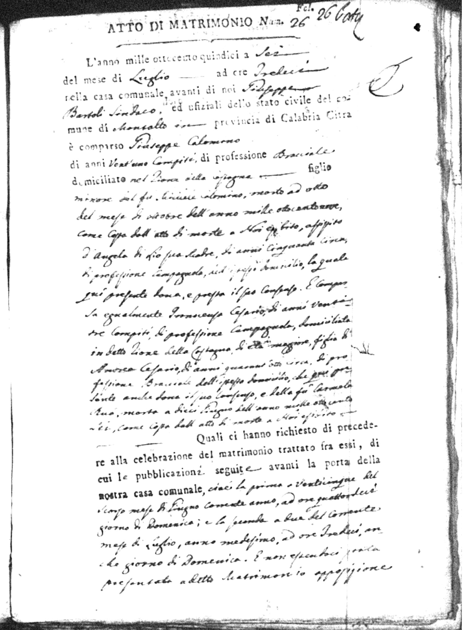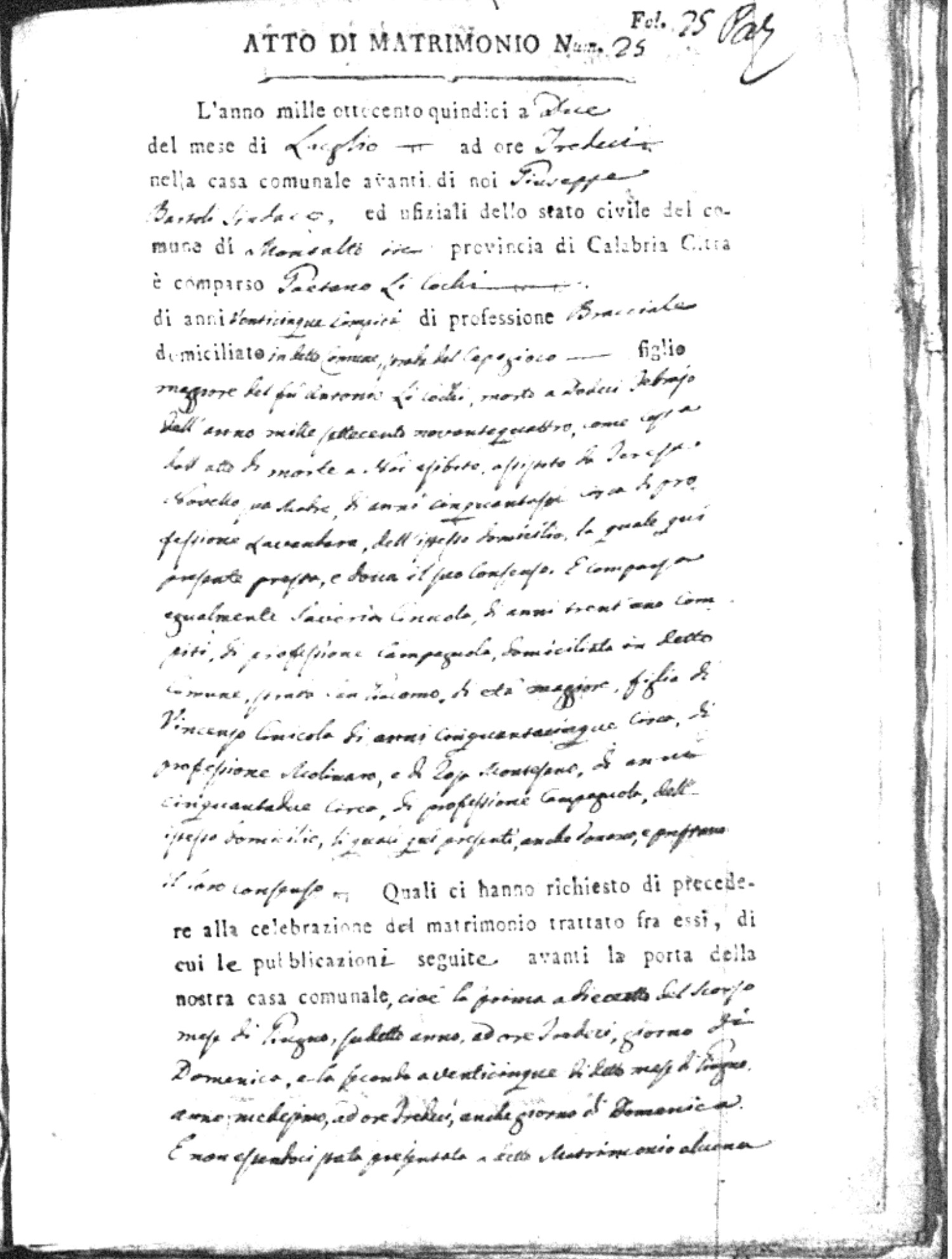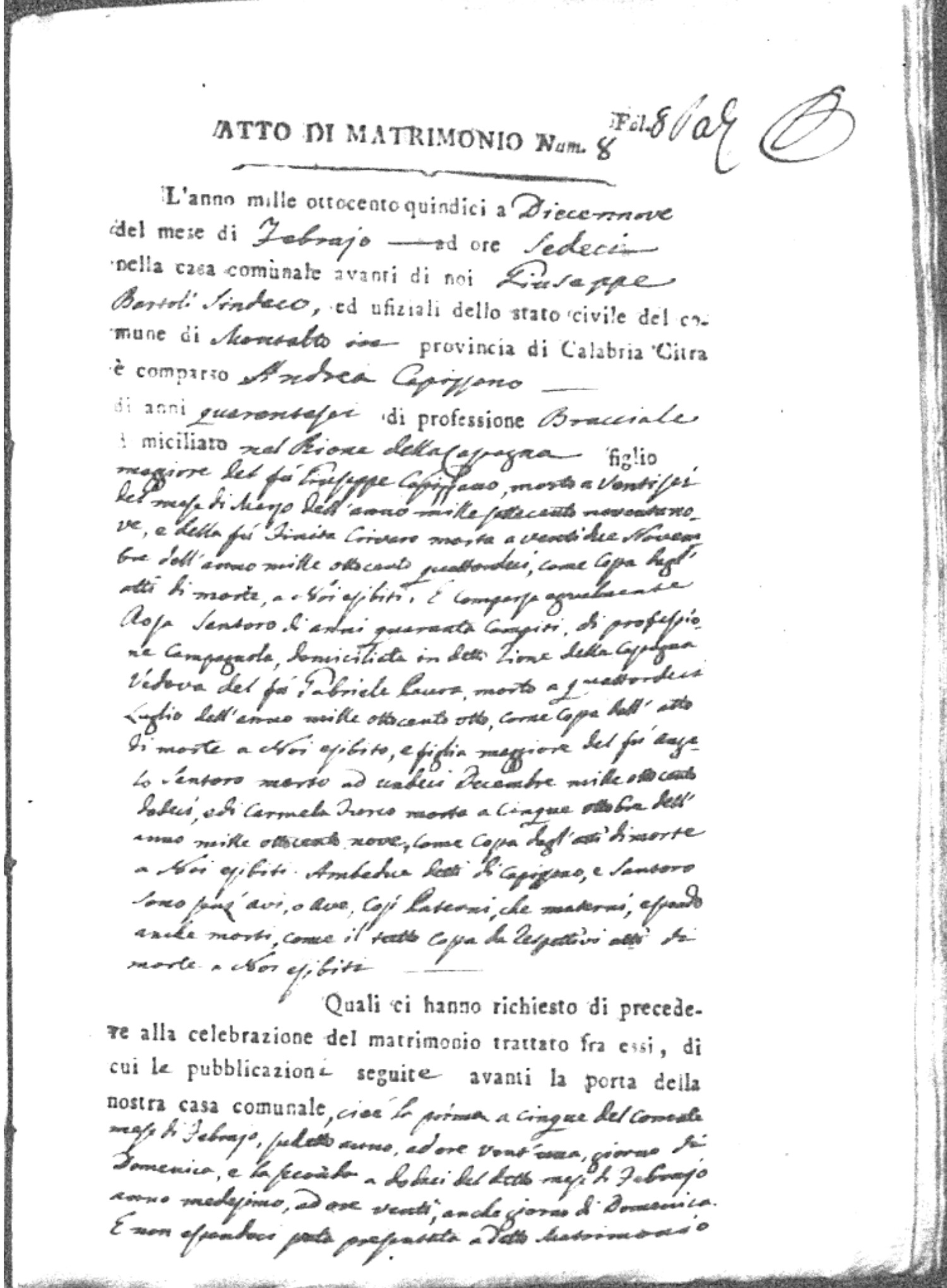 | Soriano | Antonio | Giuseppe | Miraglio | Carmela | Caparelli | Rosa | Francesco (fu) | Naccarato | Anna |