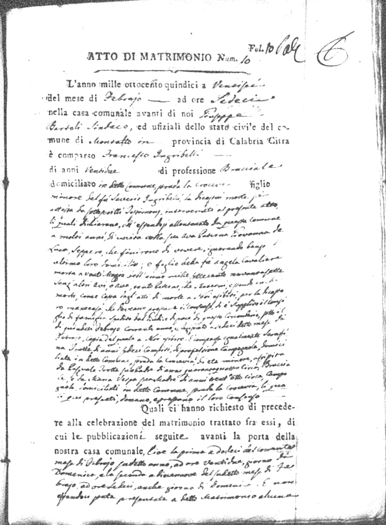 | Ingribelli | Francesco | Saverio (fu) | Cavaliere | Angela (fu) | Trotta | Serafina | Pasquale | Vespa | Maria |