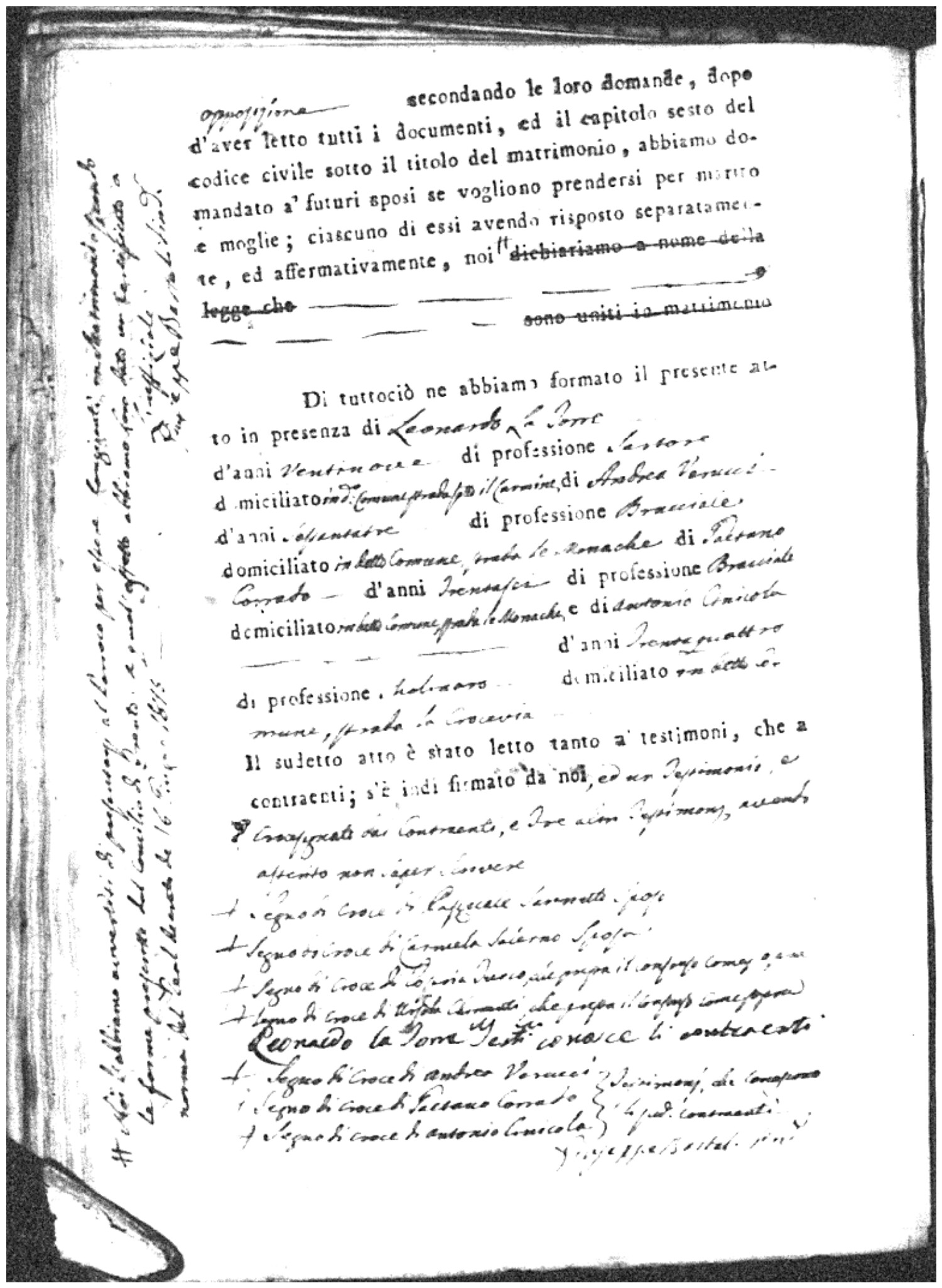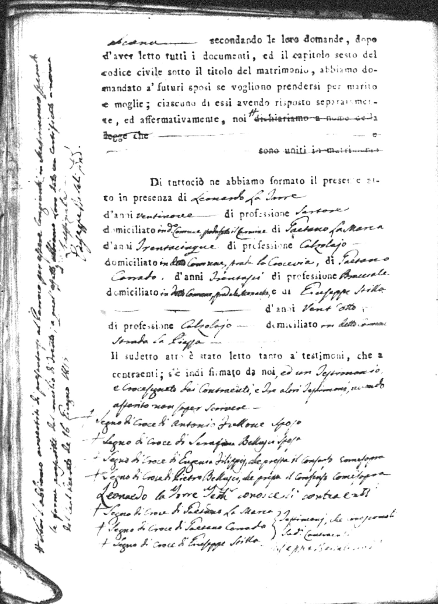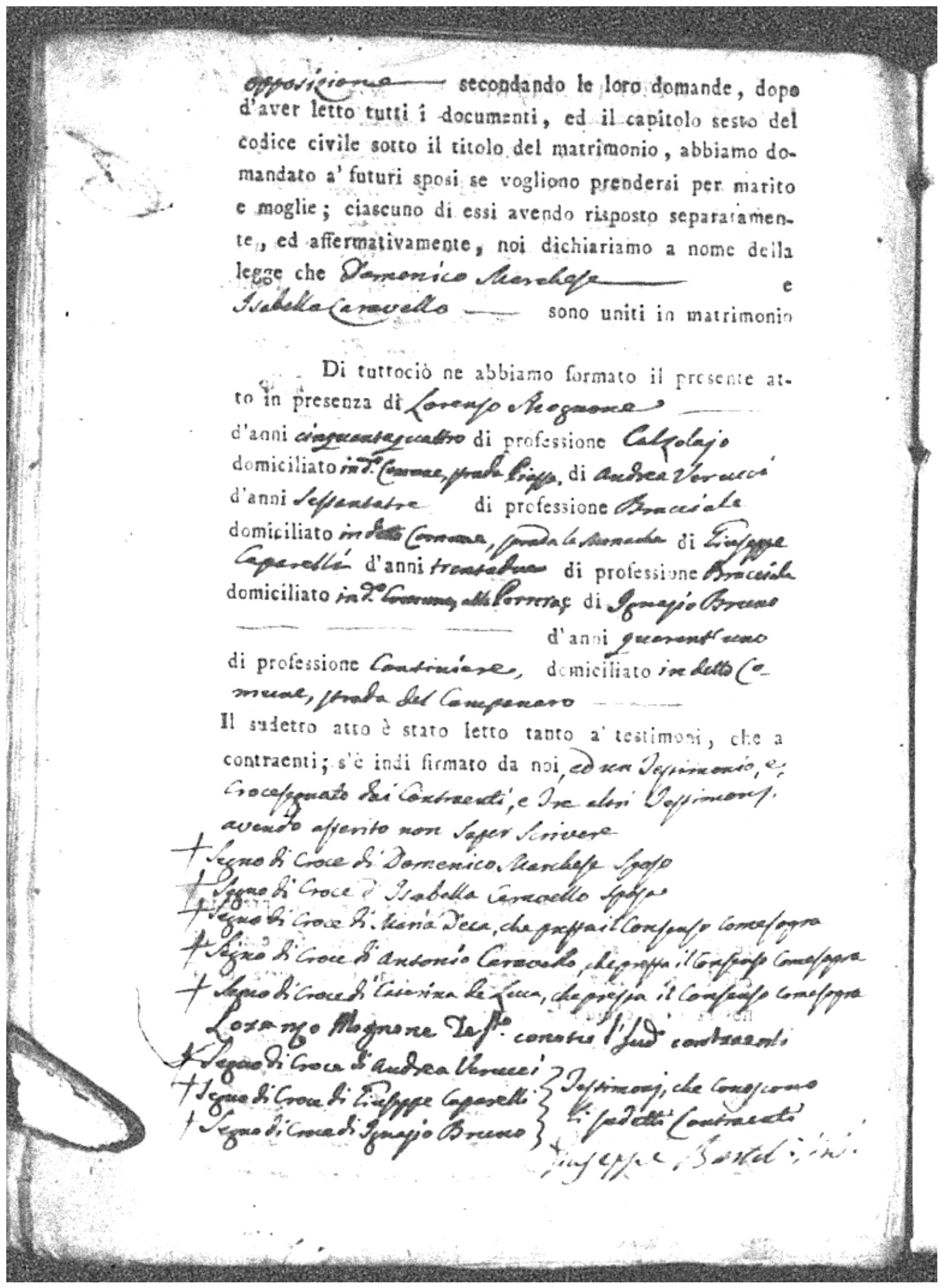 | Marchese | Domenico | Antonio (fu) | Deca | Maria | Carniello | Isabella | Antonio | DeLuca | Caterina |