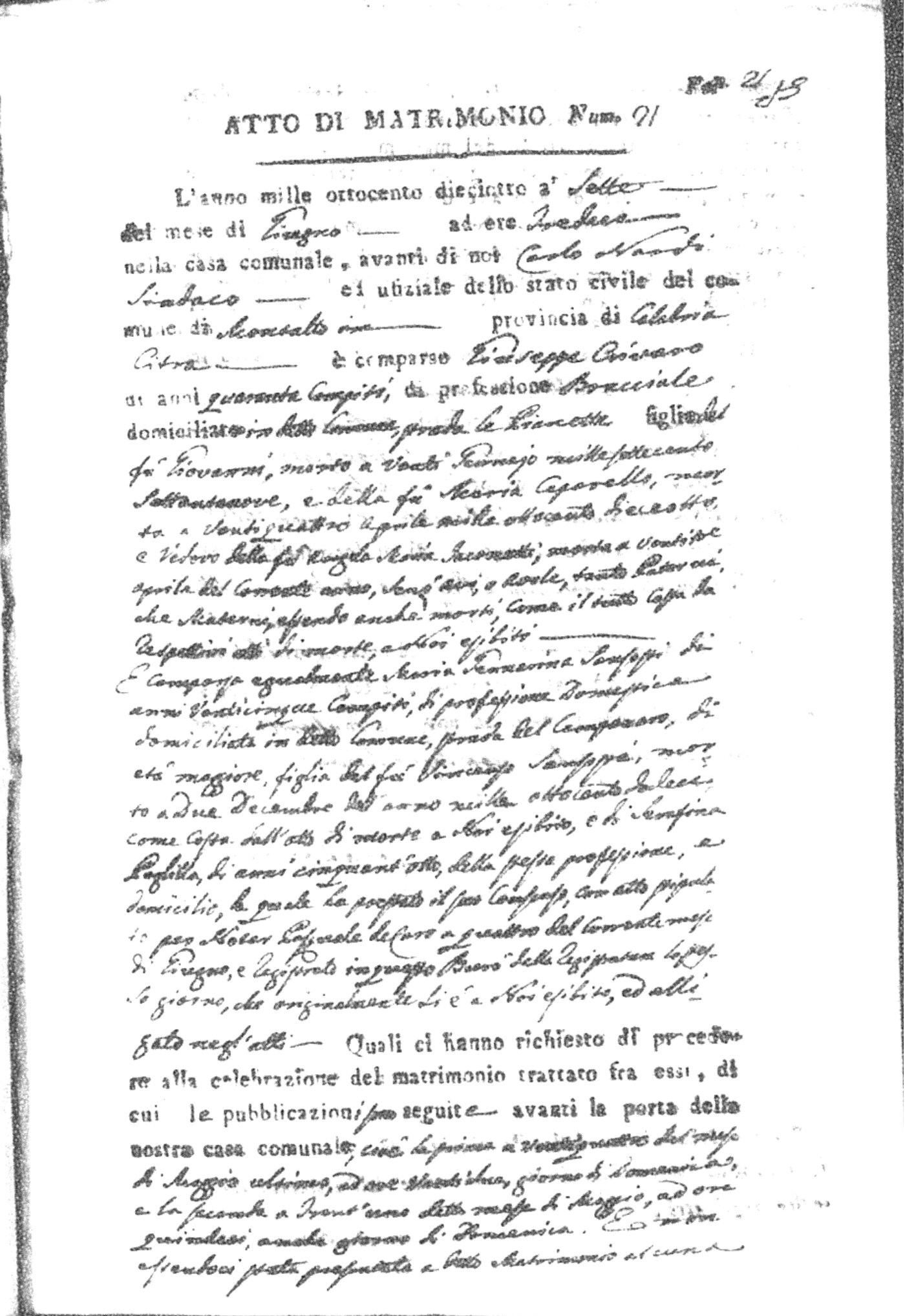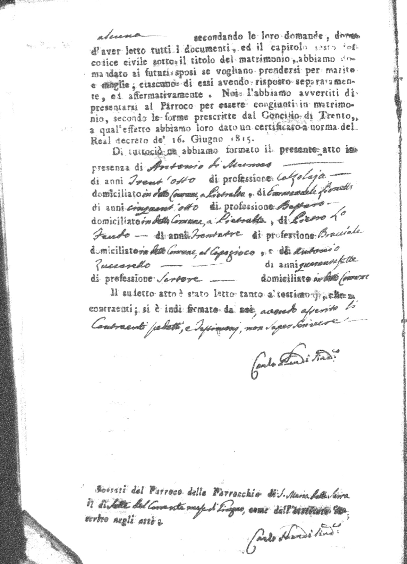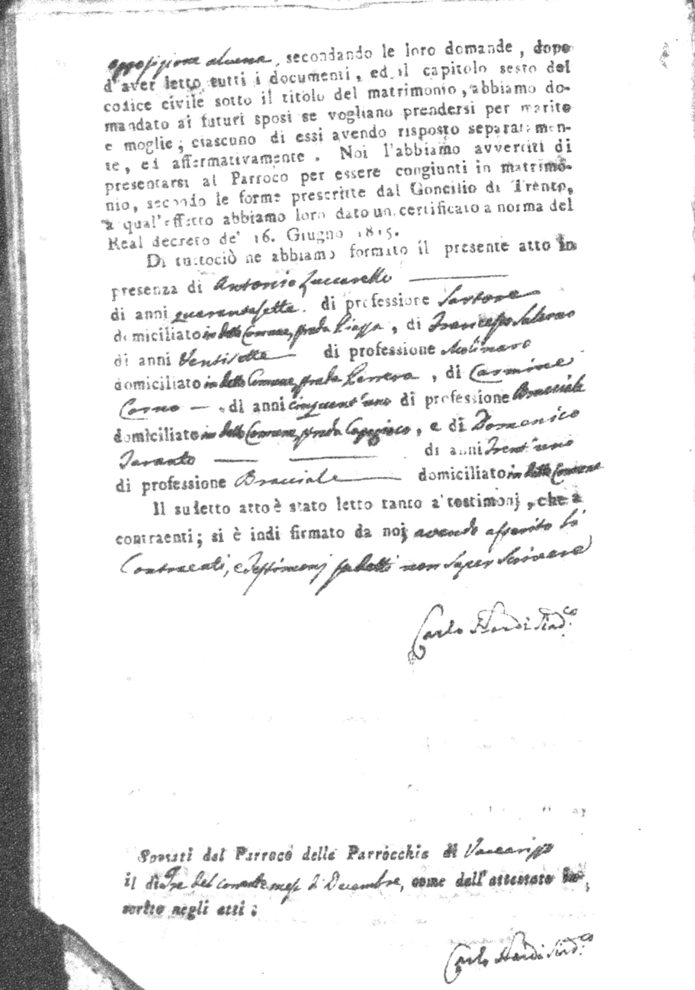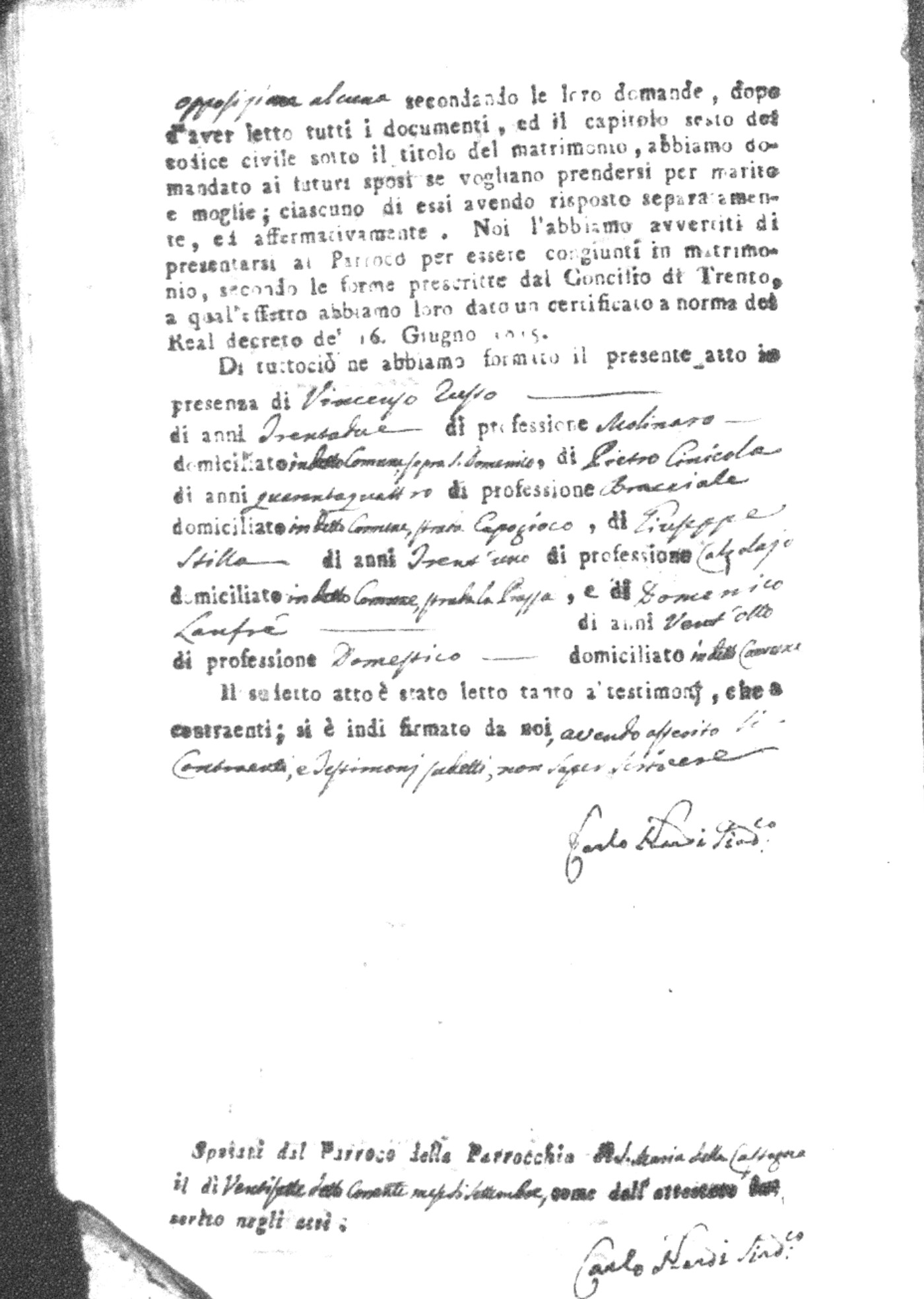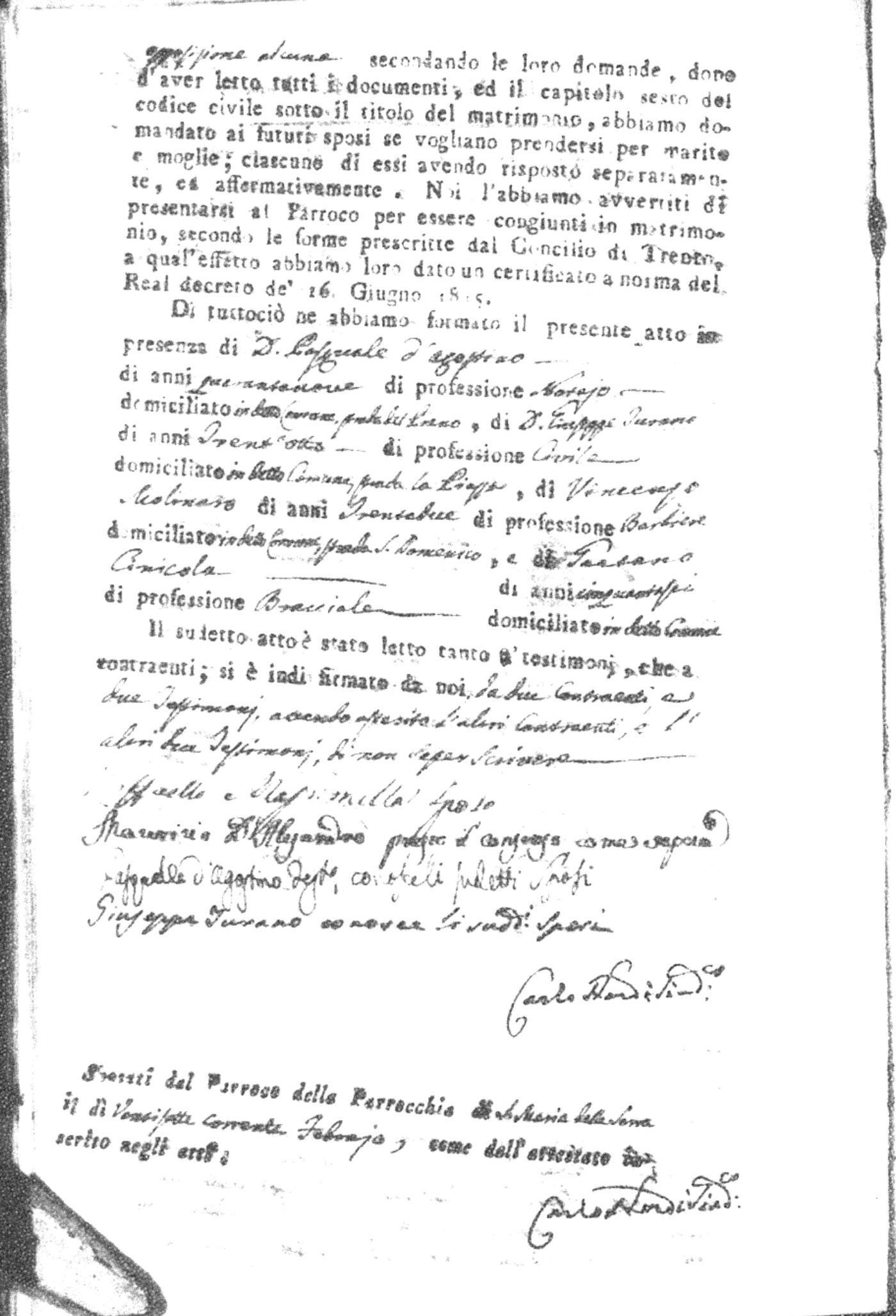 | Napolitano | Vincenzo Maria | Arcangelo (fu) | Crivaro | Chiara (fu) | Nicastro | Maria Stella | Francesco | Scarlato | Caterina |
