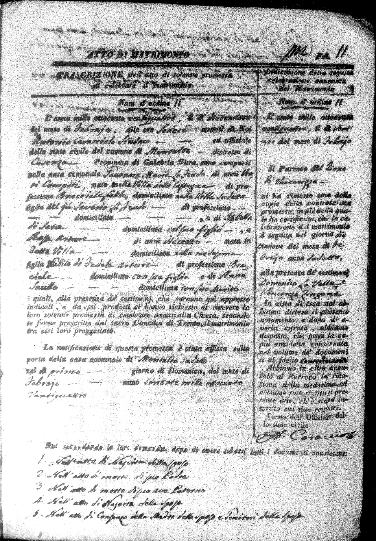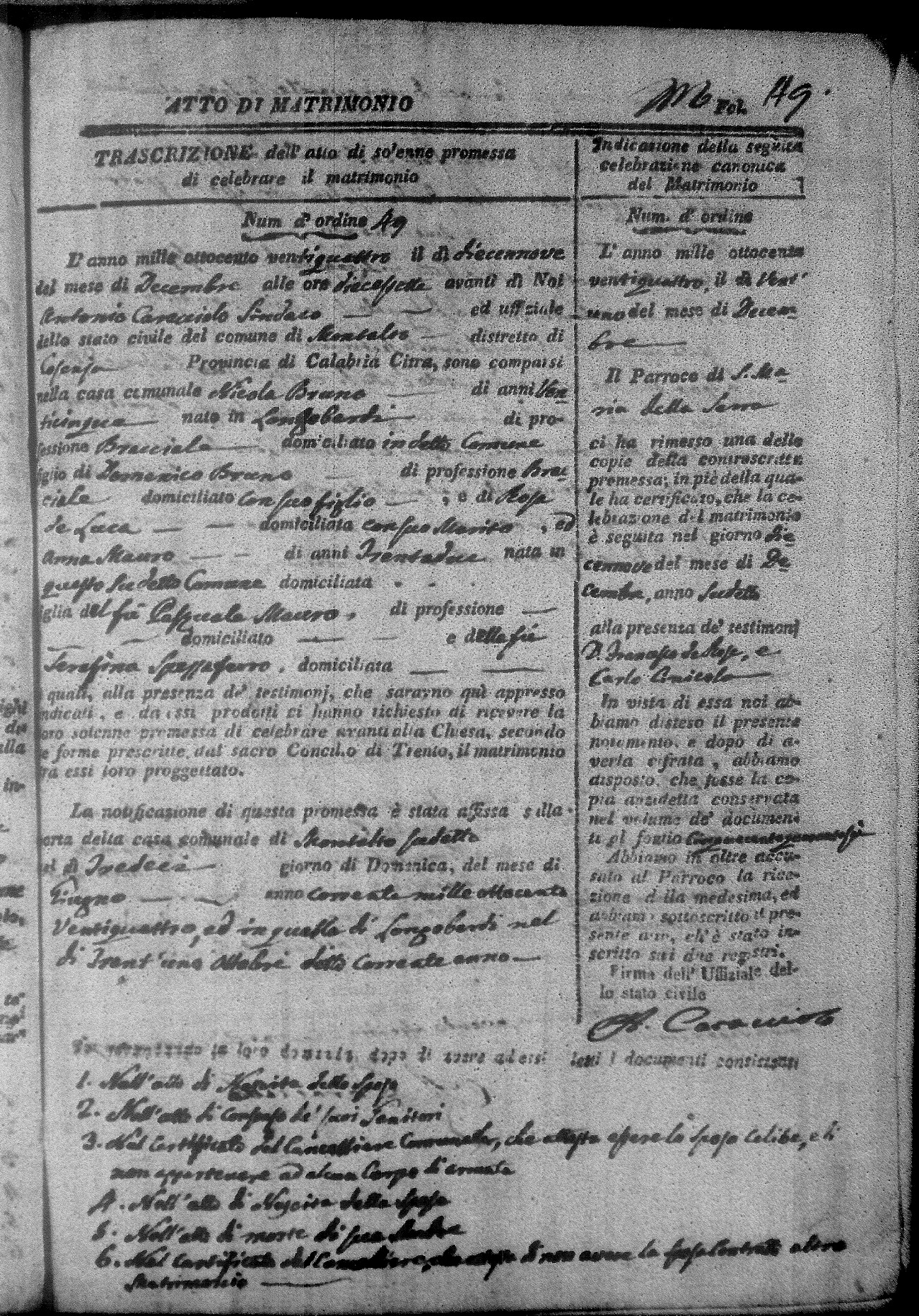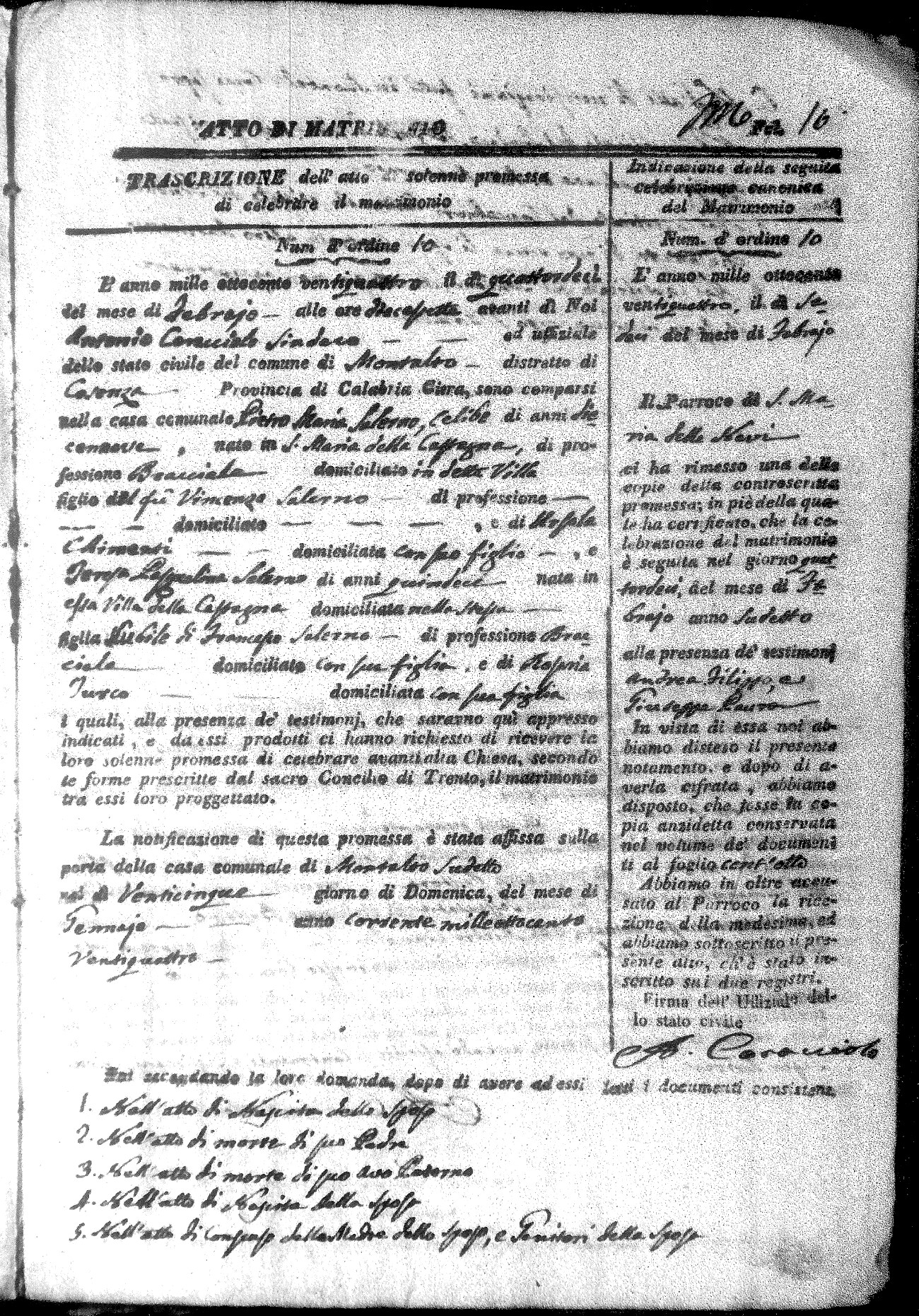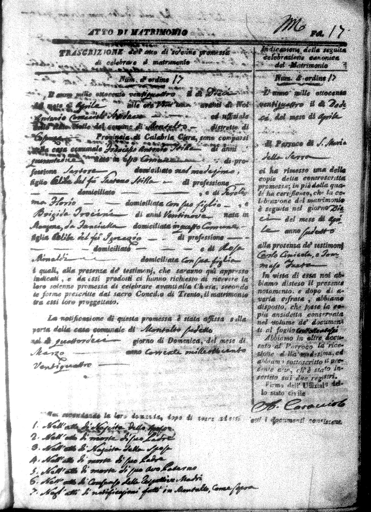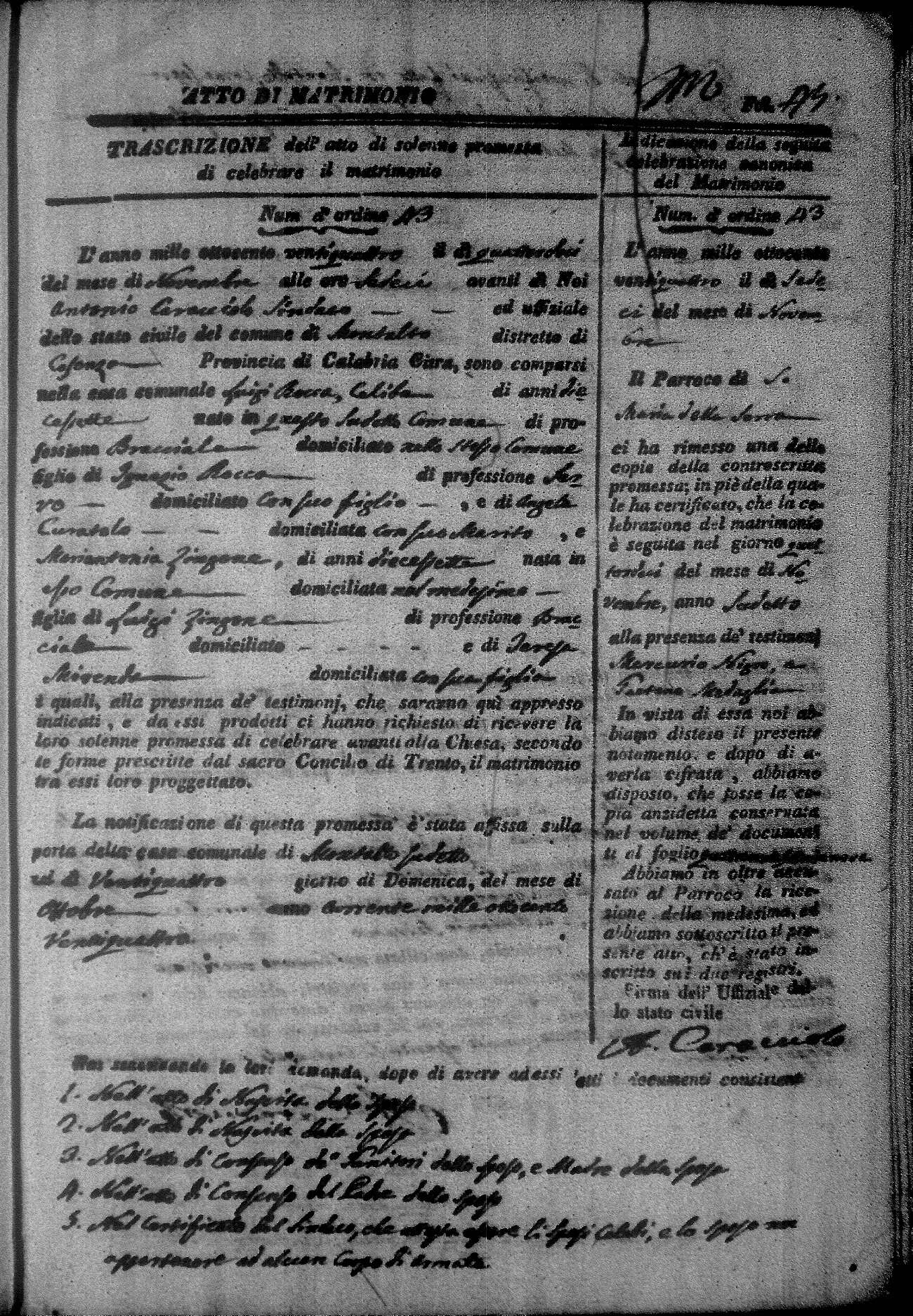 Here are the extractions for all the marriage acts in 1824 for Montalto Uffugo. This year is not complete yet, however it will be complete within a week. For more information, click on the groom's surname to view a copy of the original document.