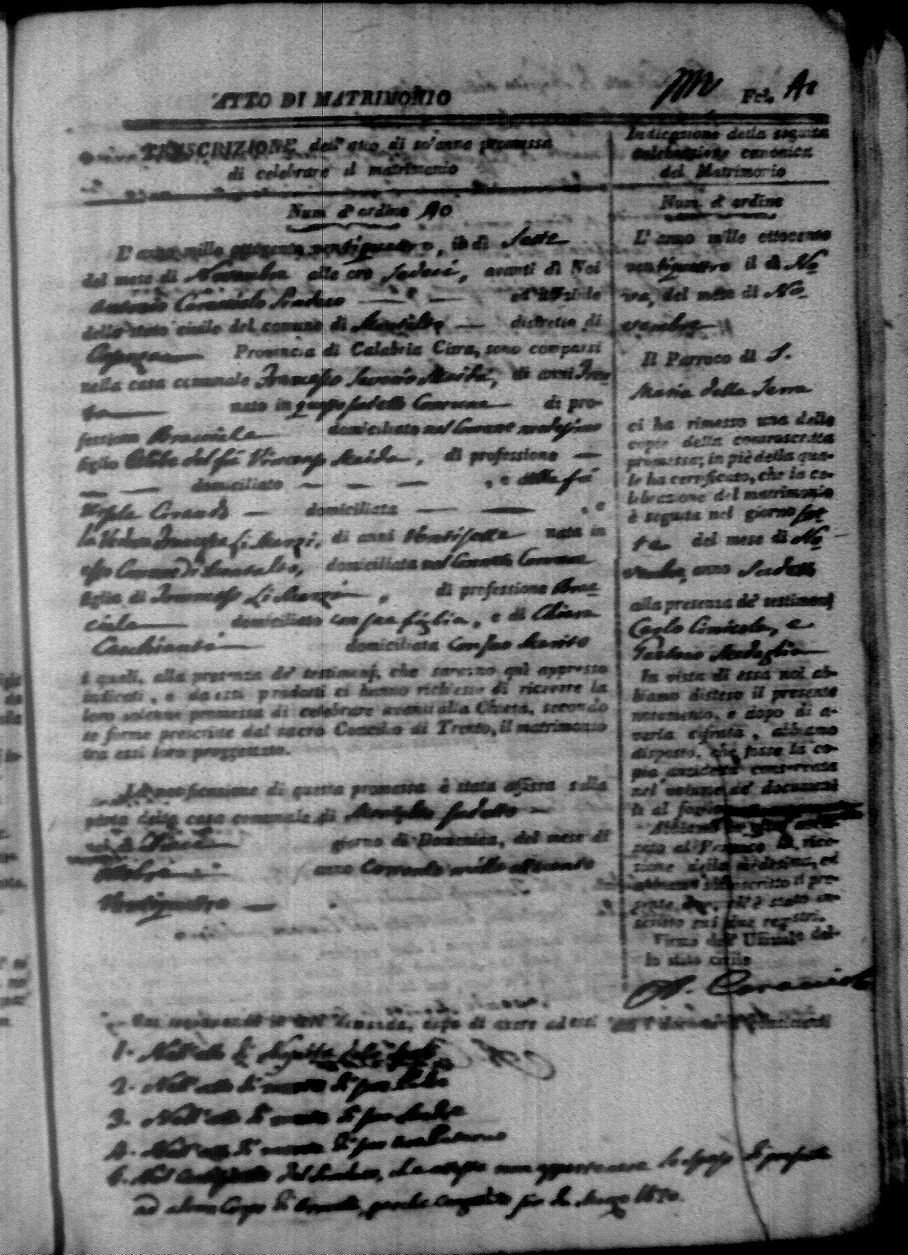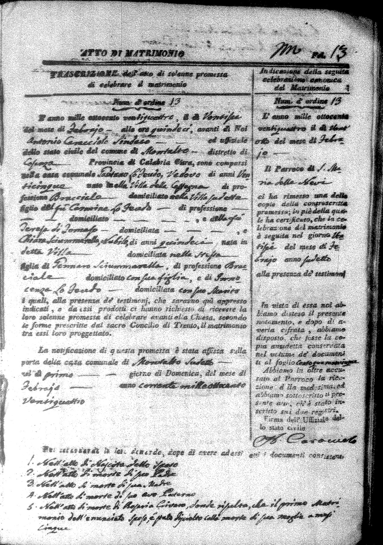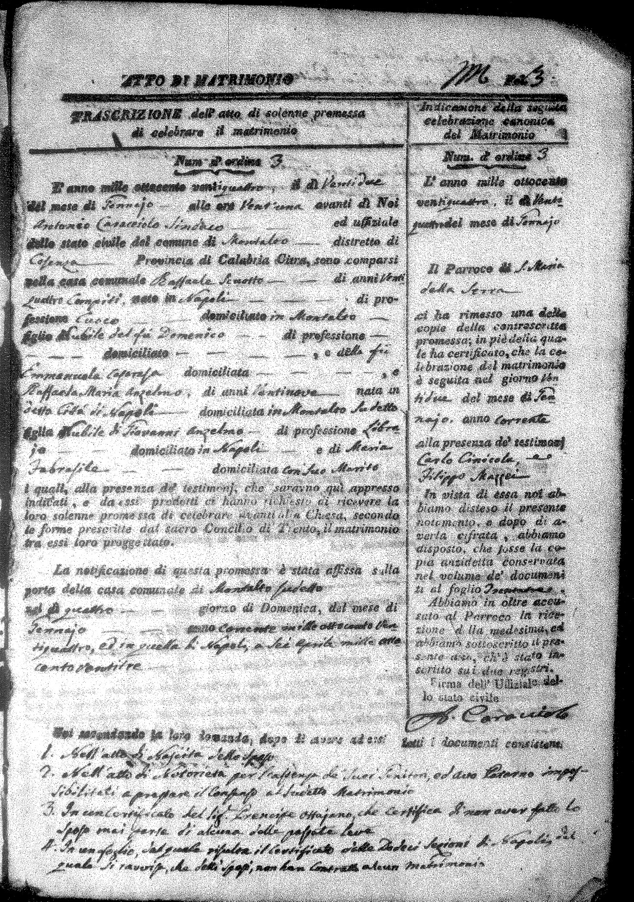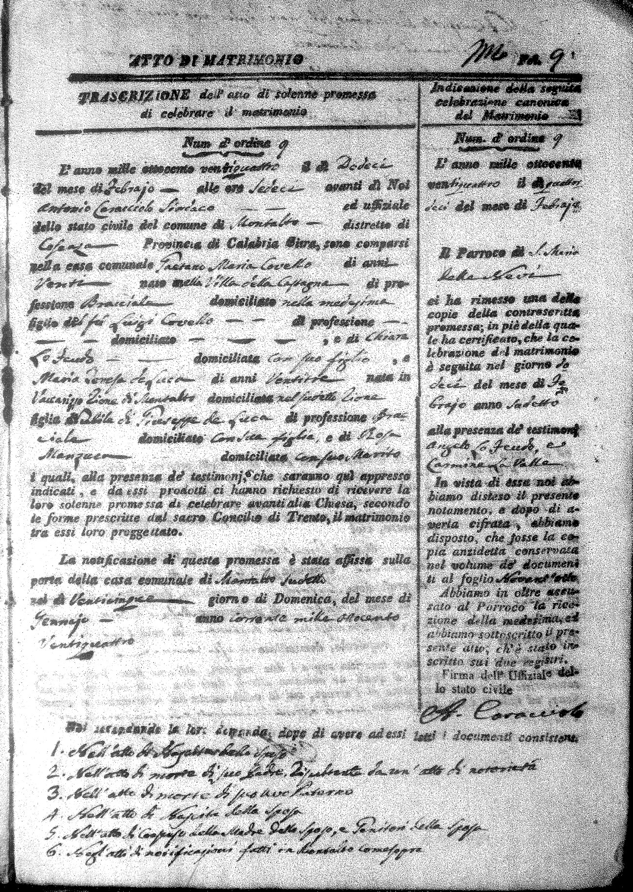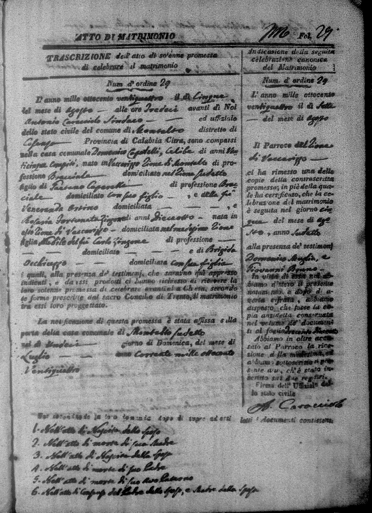 Here are the extractions for all the marriage acts in 1824 for Montalto Uffugo. This year is not complete yet, however it will be complete within a week. For more information, click on the groom's surname to view a copy of the original document.