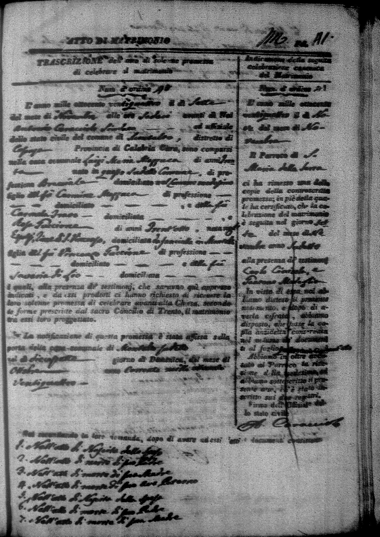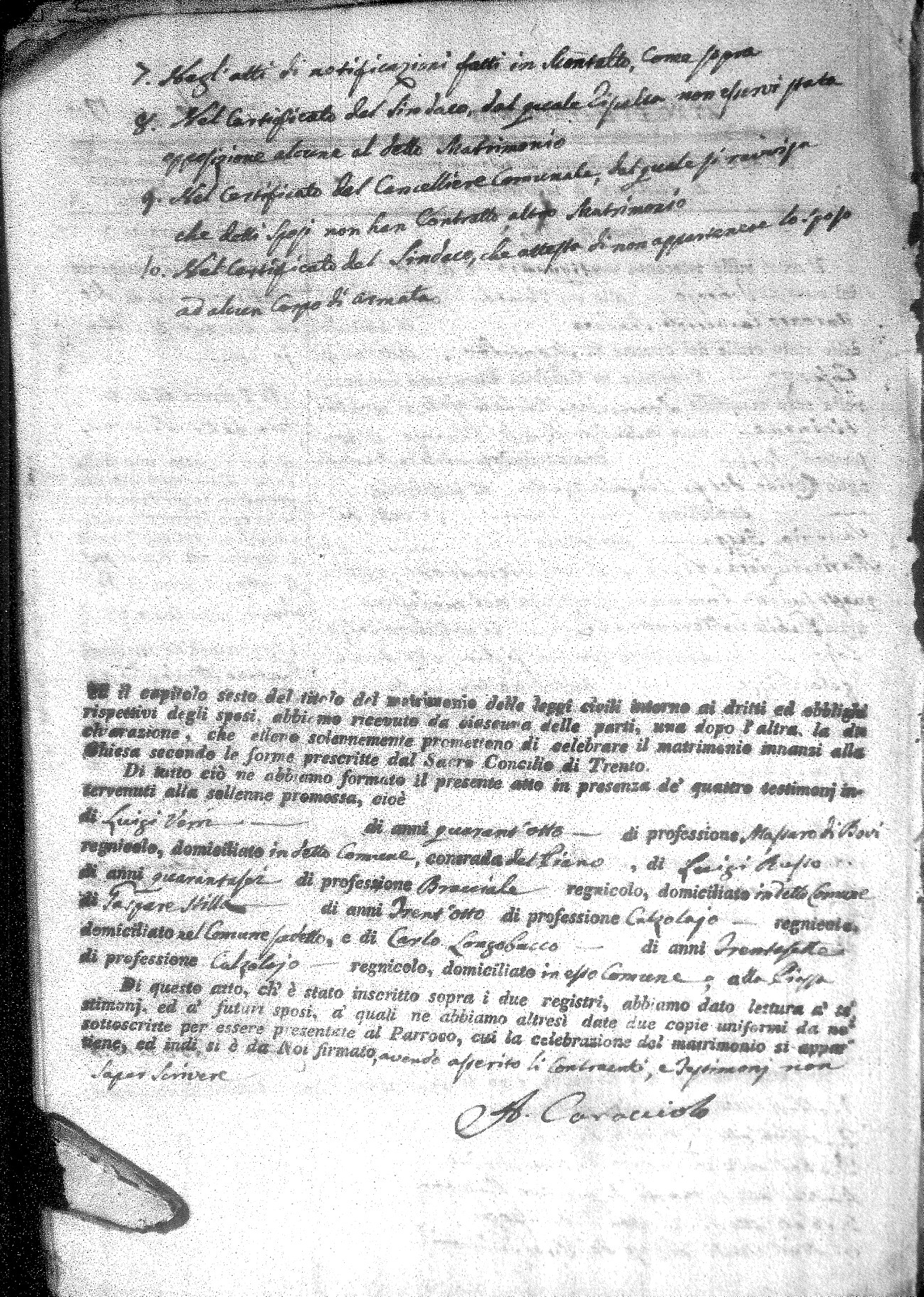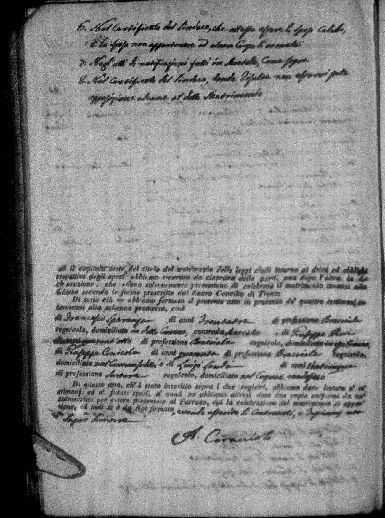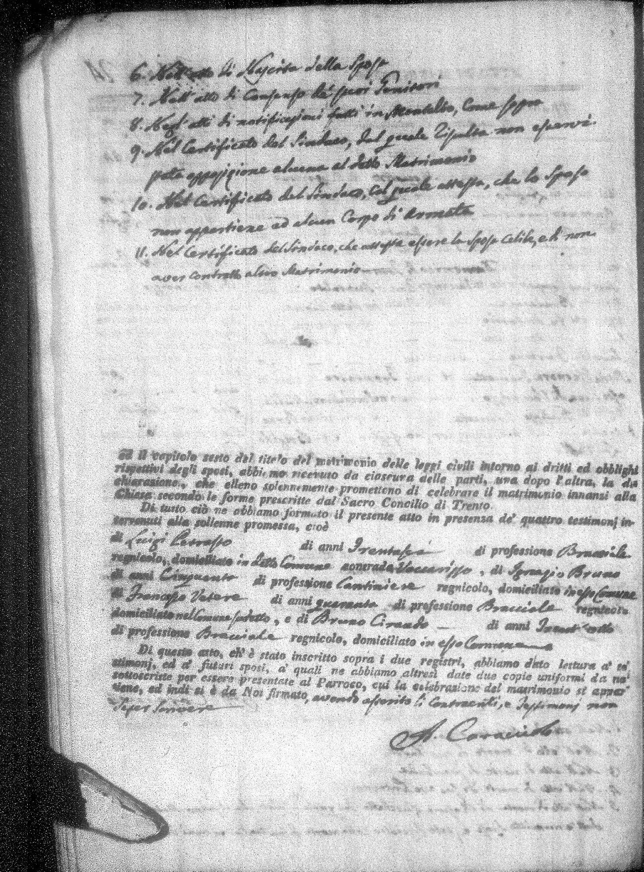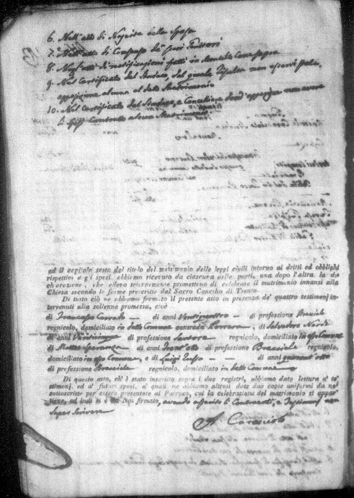 | Mirano | Michele | Angelo (fu) | Mirigliano | Teresa (fu) | Zingone | Angela Rosa | Carlo (fu) | Occhiuzzo | Brigida |