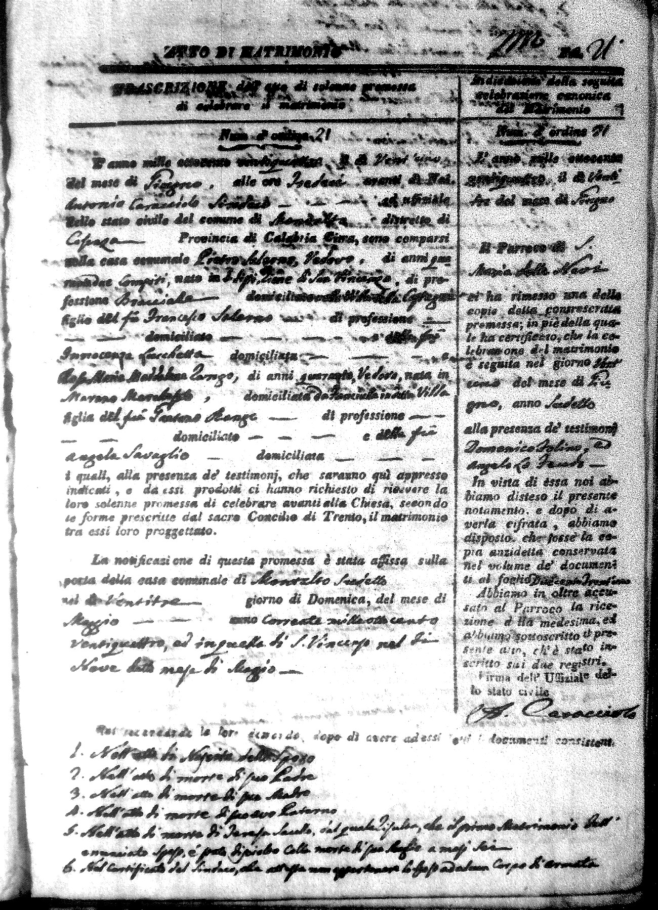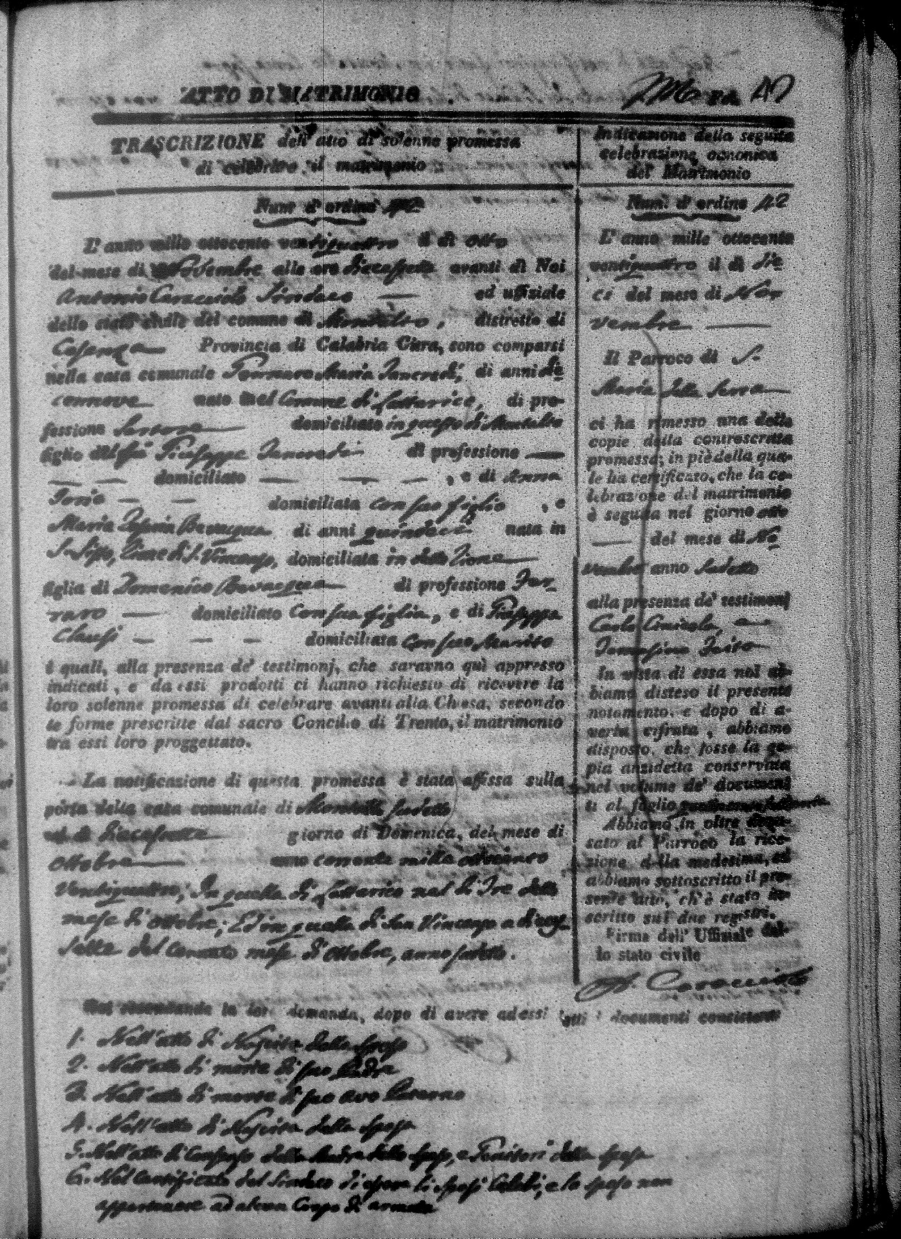 | Piluso | Domenico Pasquale | Antonio | Lucchetta | Caterina | Franzese | Serafina Maria | Natale (fu) | Mirabelli | Teresa |