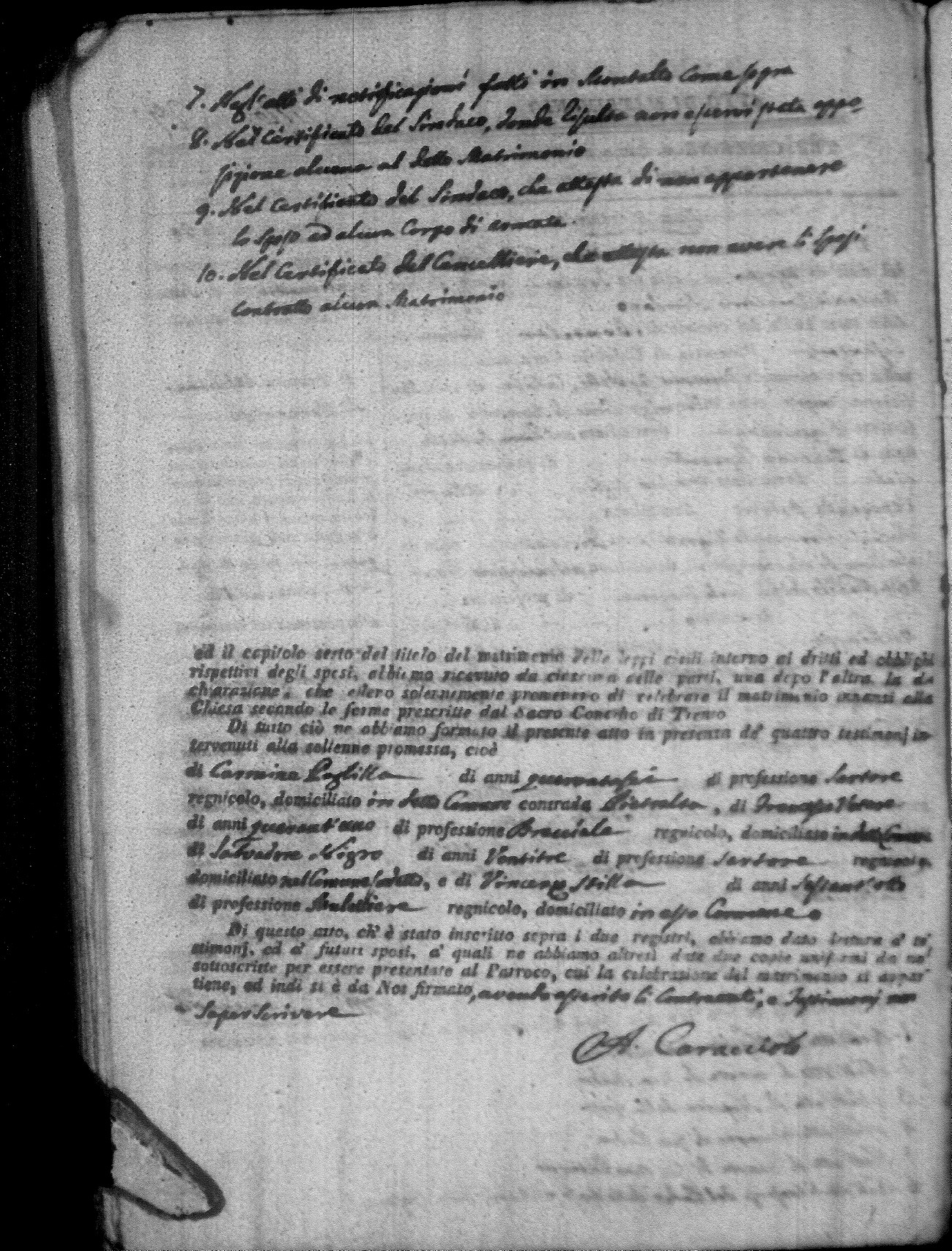 | Caparelli | Domenico | Gaetano | Ortino | Veneranda (fu) | Zingone | Rosaria Fortunata | Carlo (fu) | Decharizzo | Brigida |