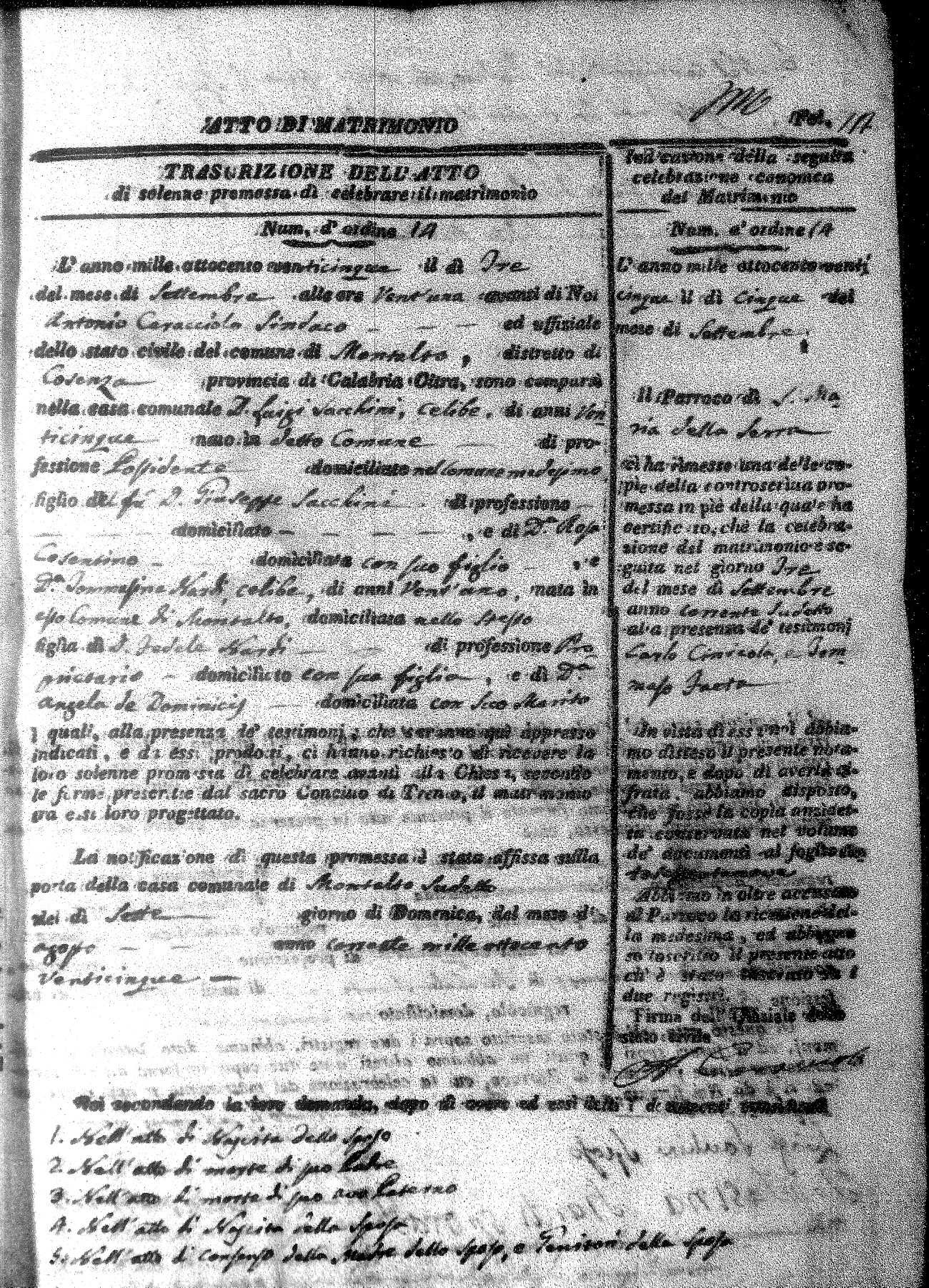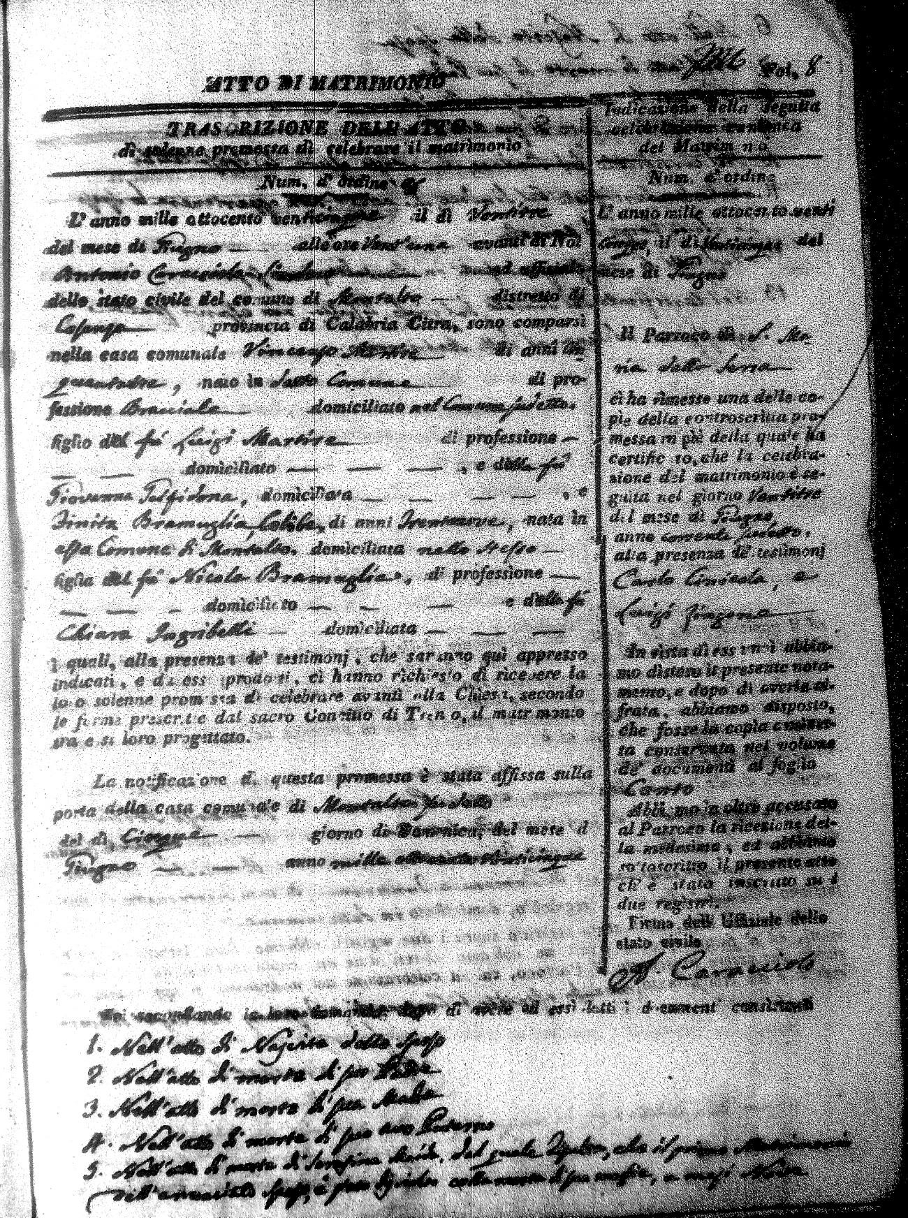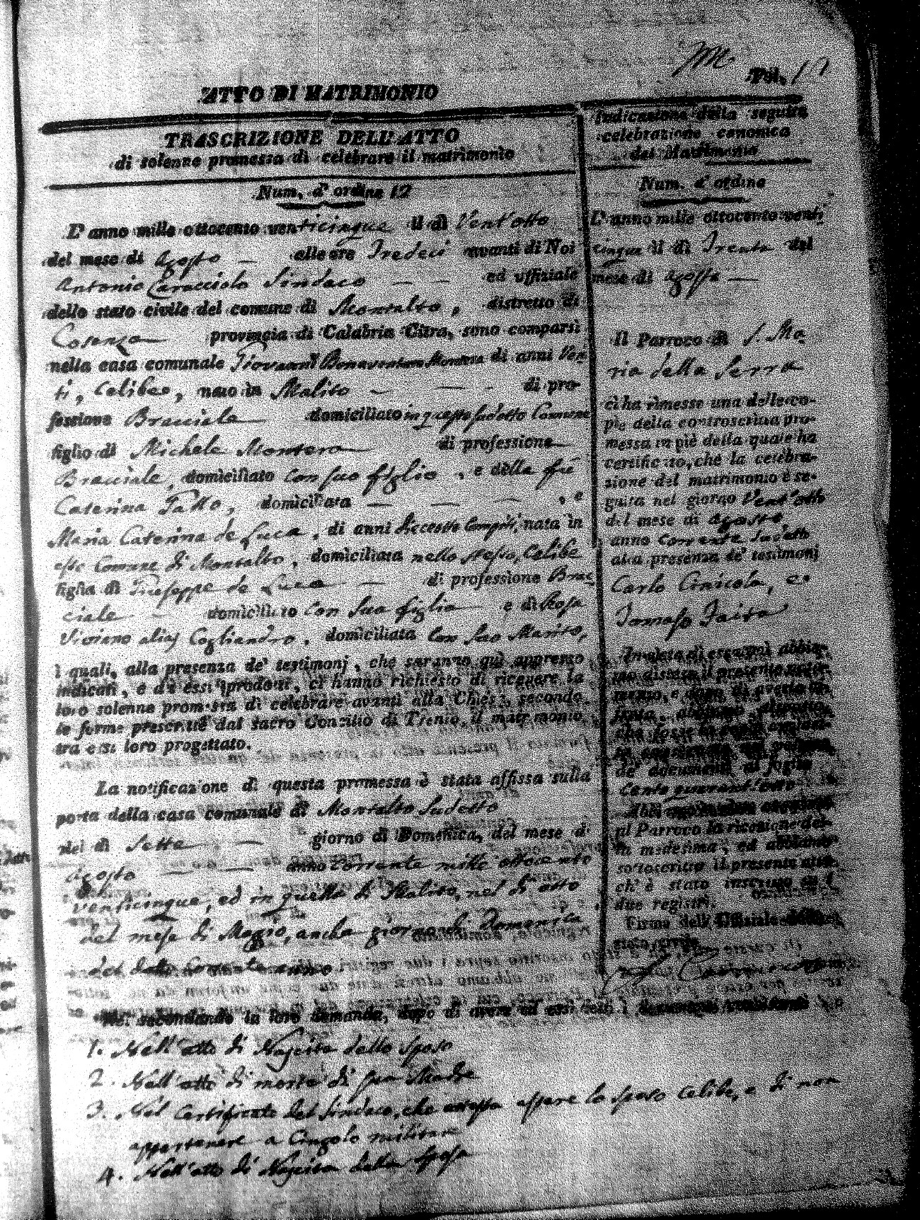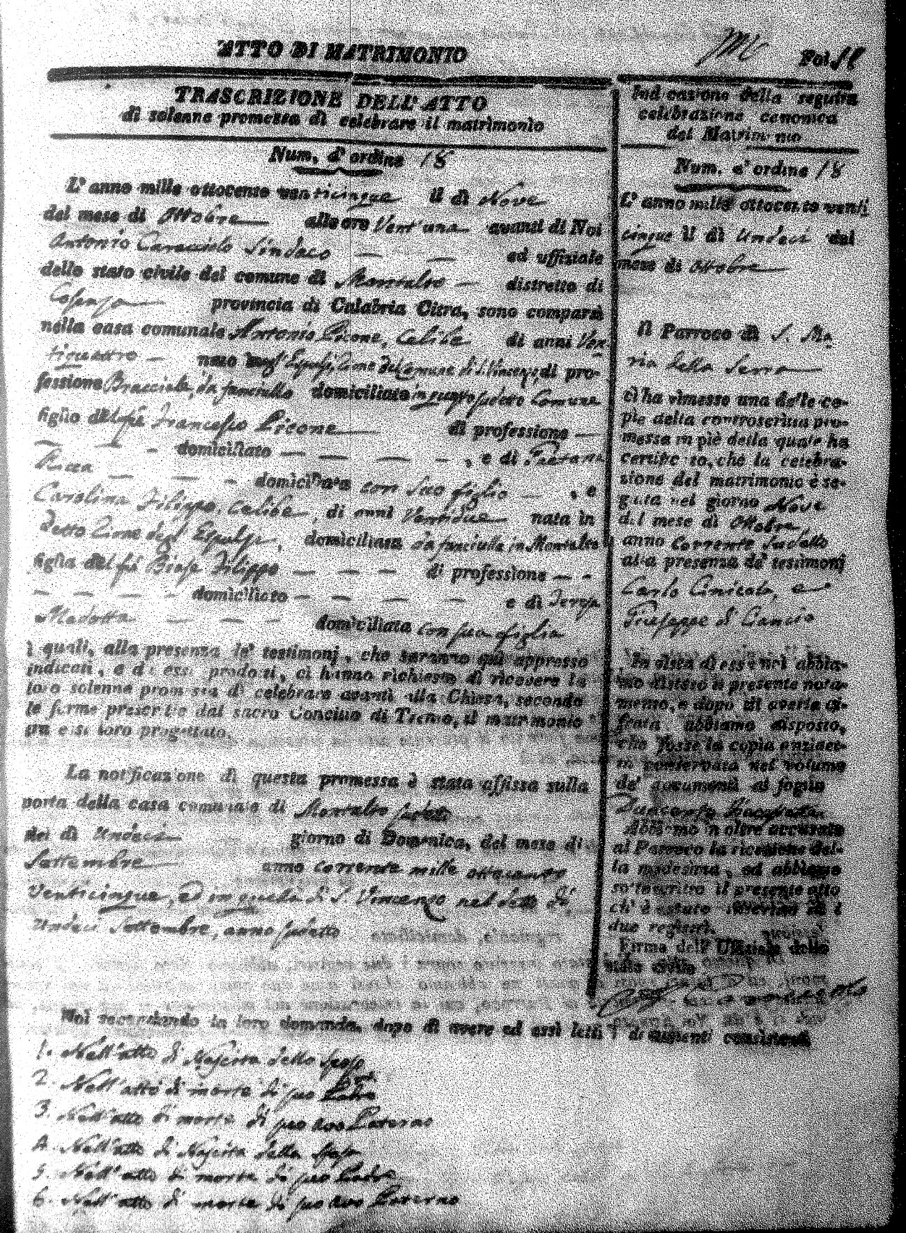 Here are the extractions for all the marriage acts in 1825 for Montalto Uffugo. This year is complete. For more information, click on the groom's surname to view a copy of the original document.