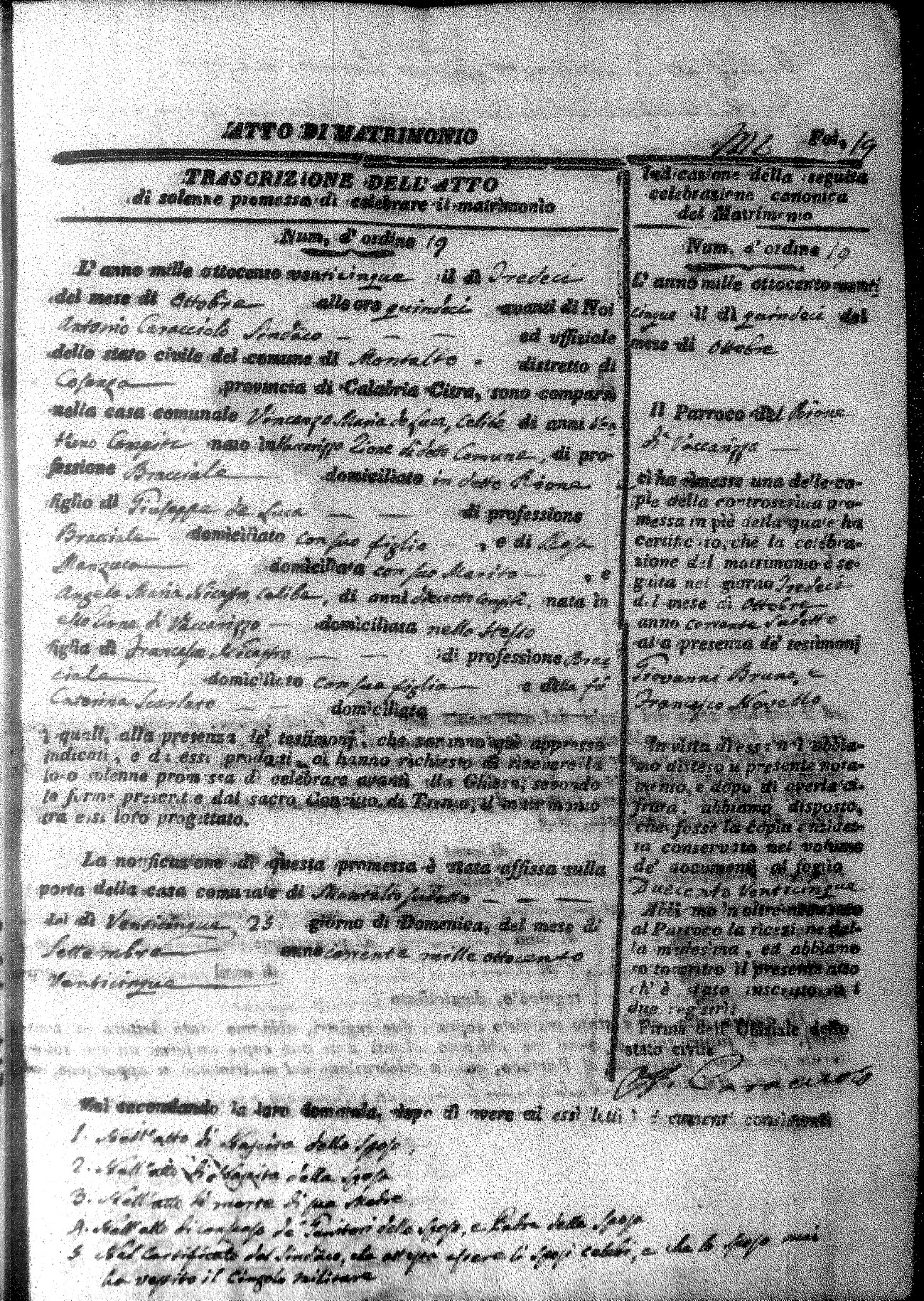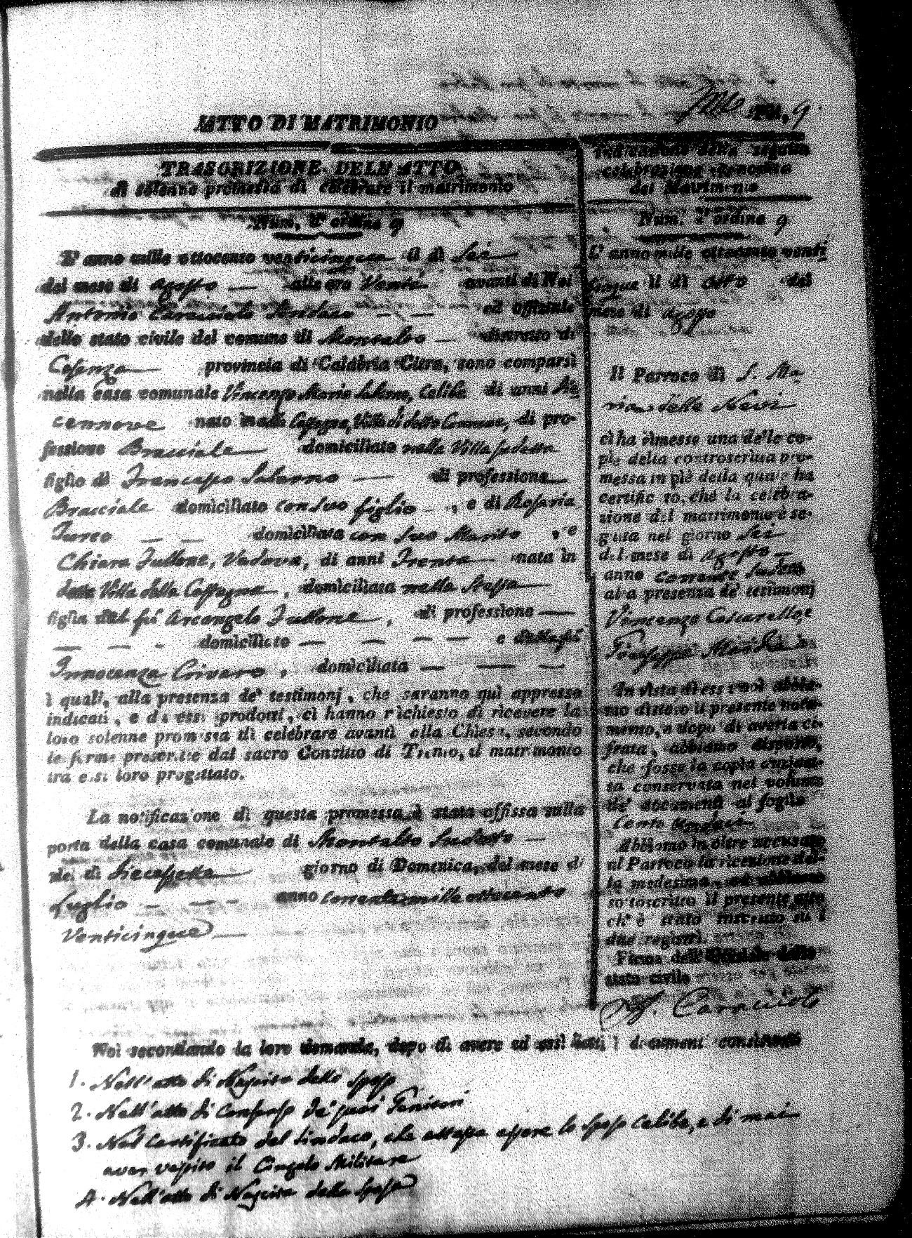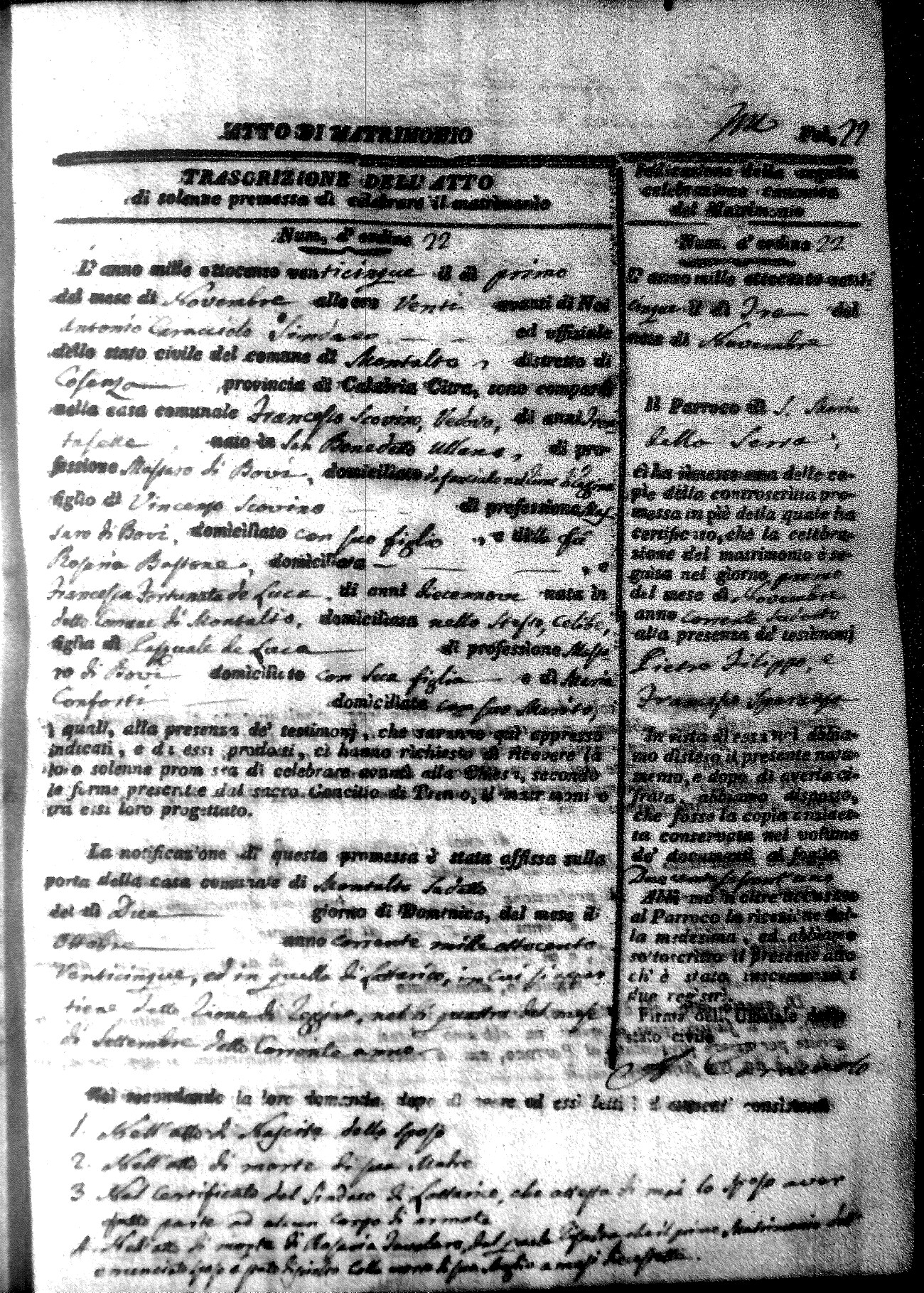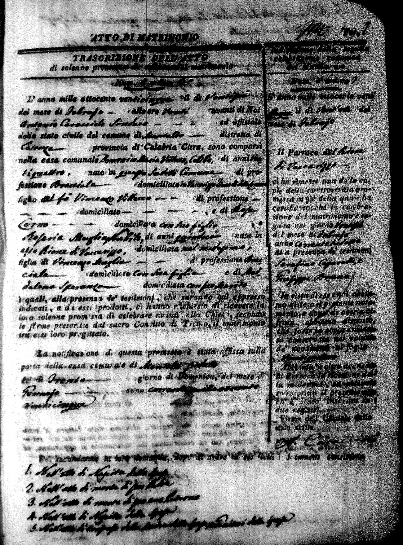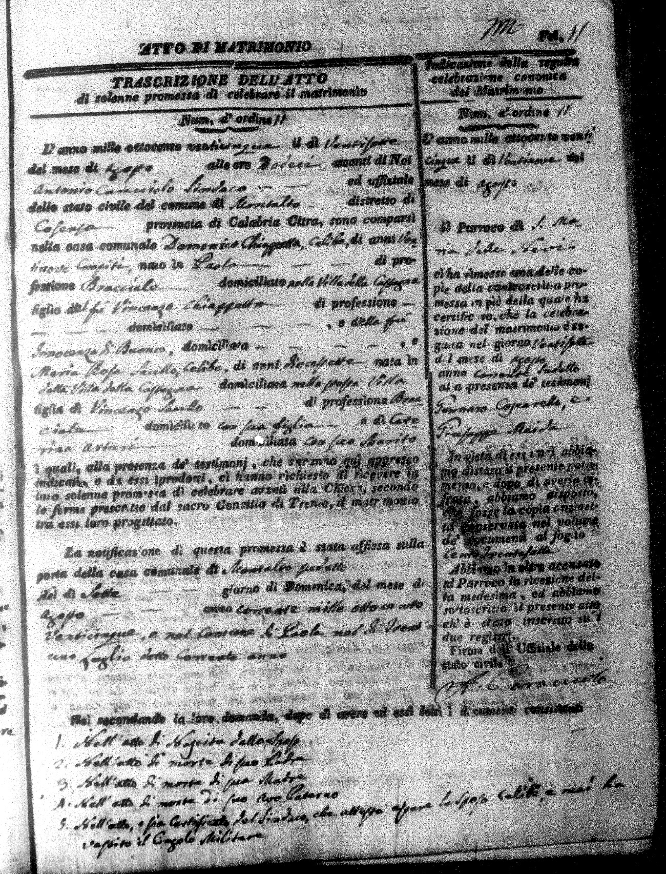 Here are the extractions for all the marriage acts in 1825 for Montalto Uffugo. This year is complete. For more information, click on the groom's surname to view a copy of the original document.