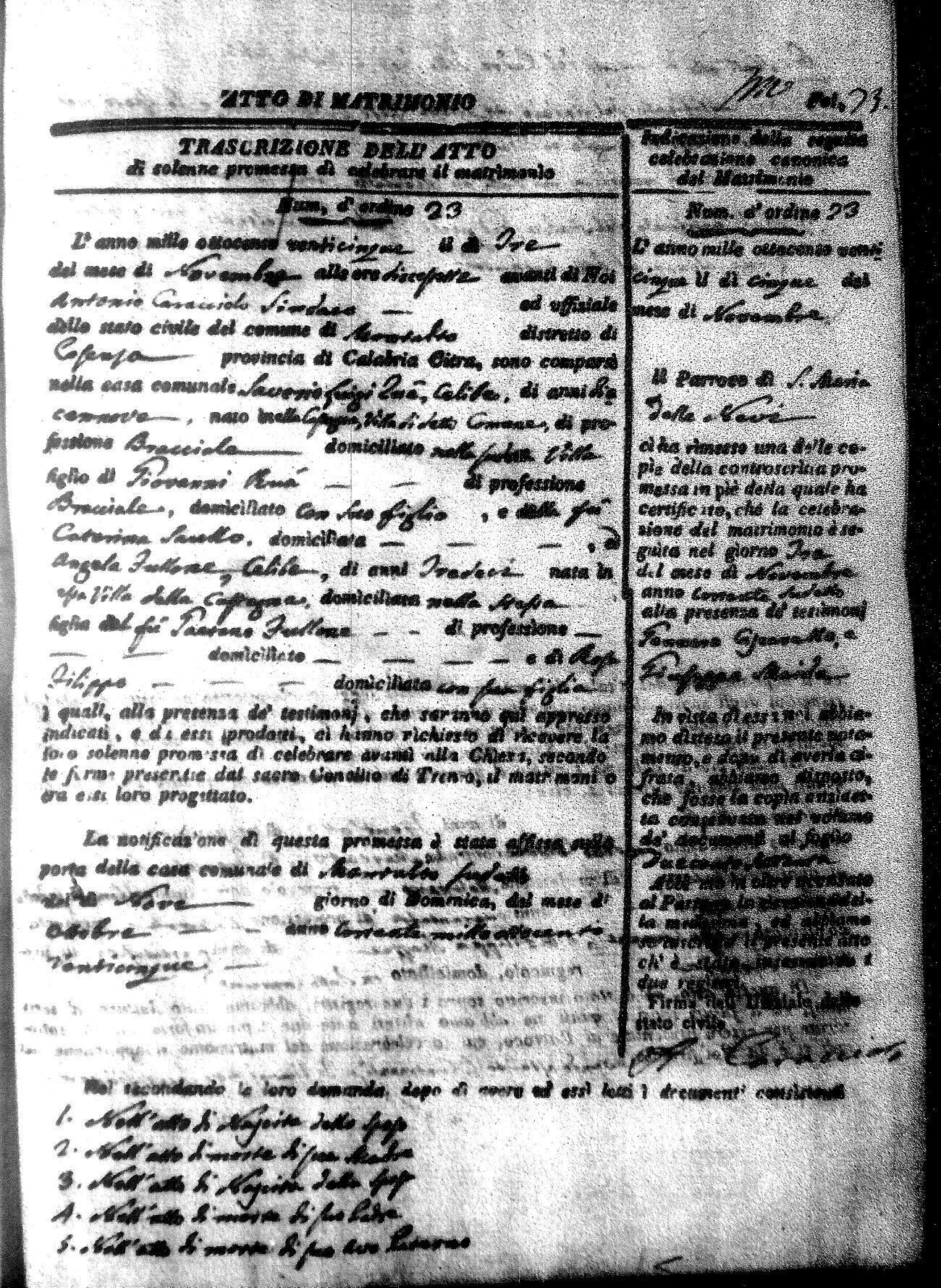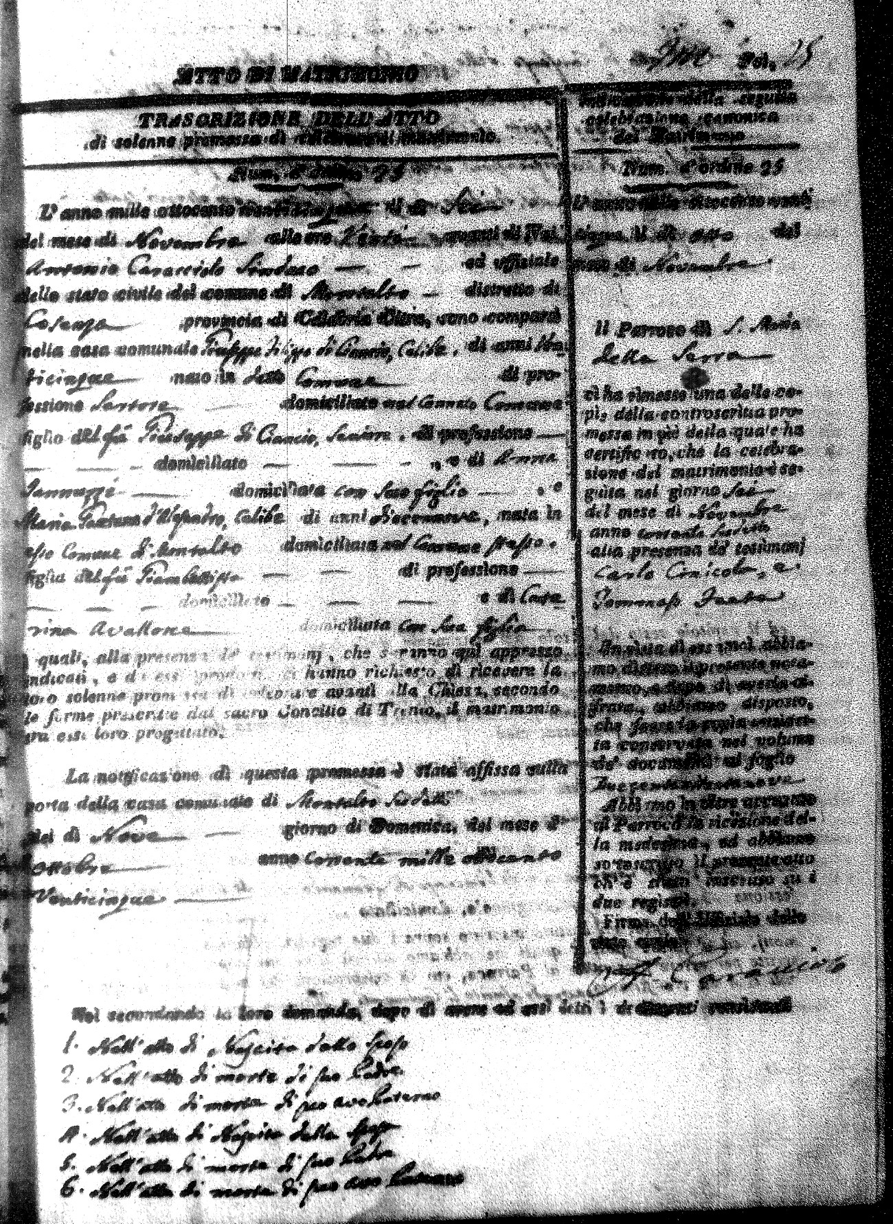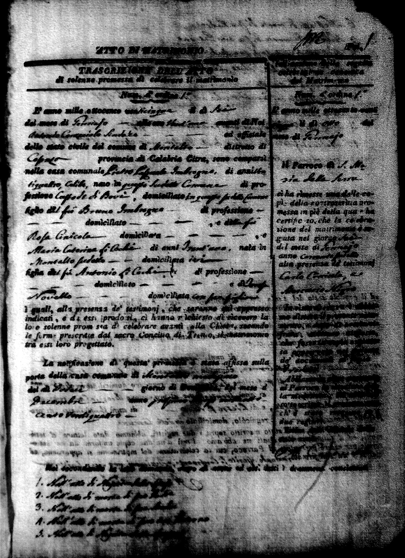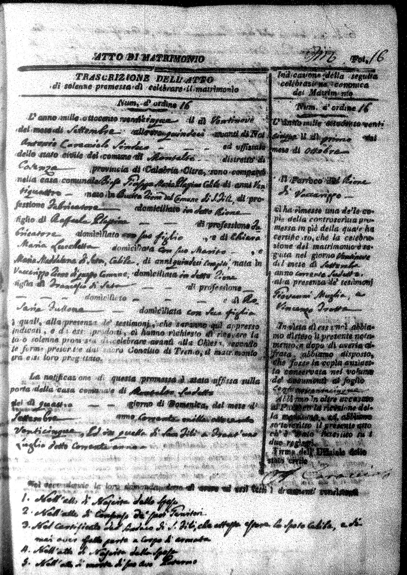 Here are the extractions for all the marriage acts in 1825 for Montalto Uffugo. This year is complete. For more information, click on the groom's surname to view a copy of the original document.