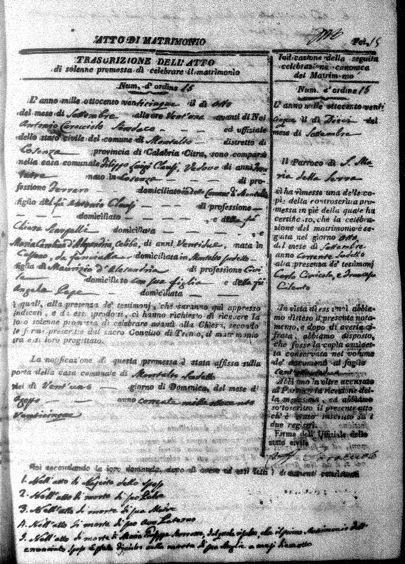 | Clansi | Filippo Luigi | Antonio (fu) | Scaropelli | Chiara (fu) | d'Alesandrio | Maria Carolina | Maurizio | Pepe | Angela (fu) |