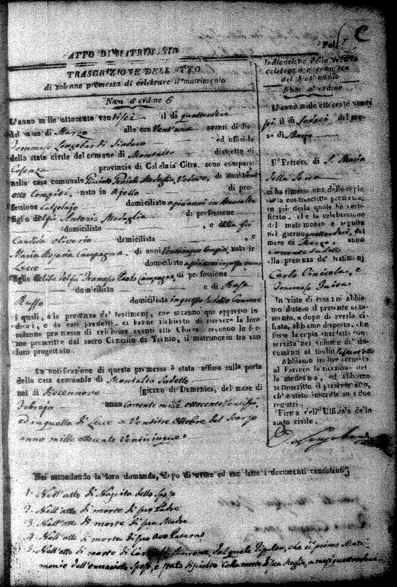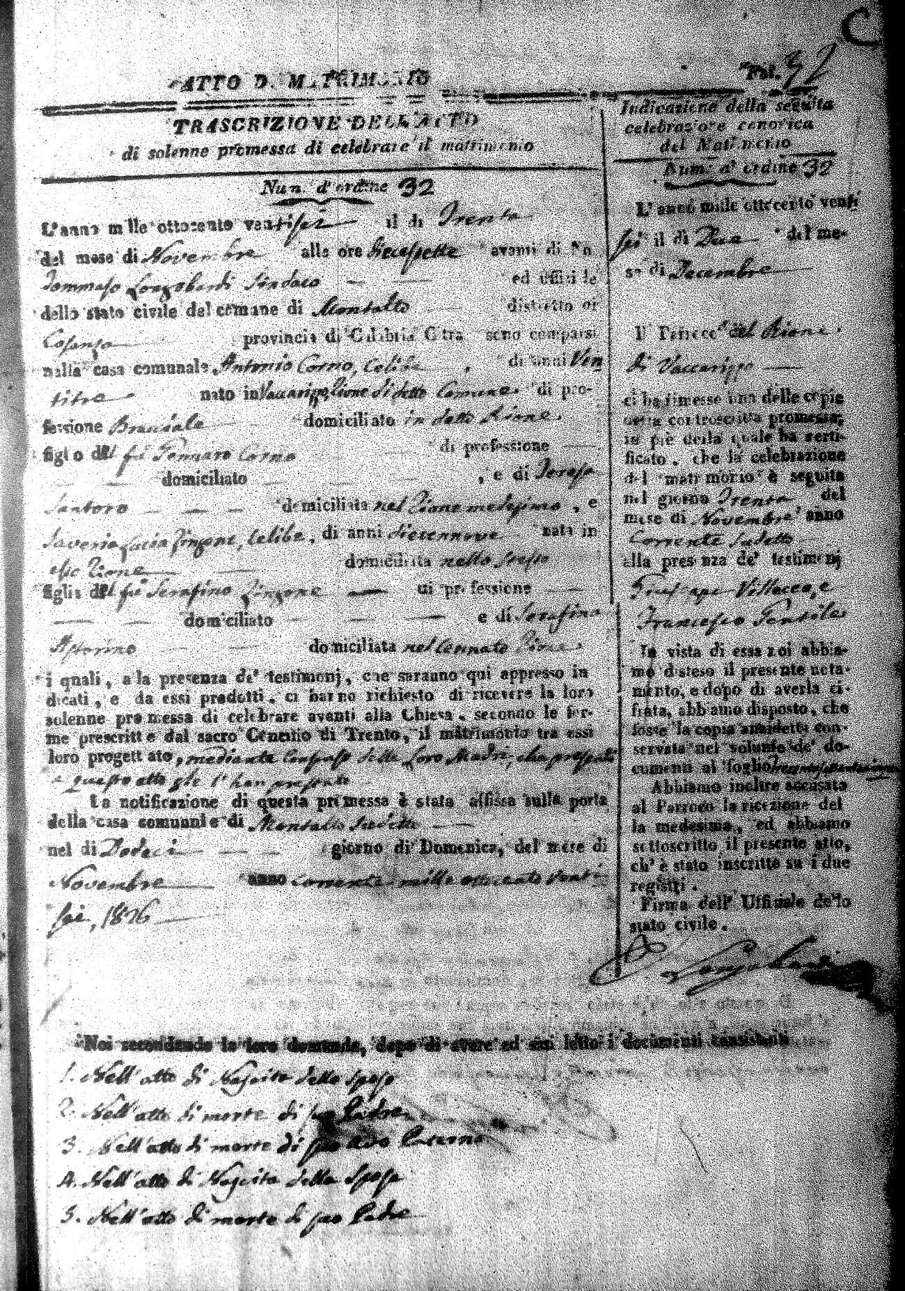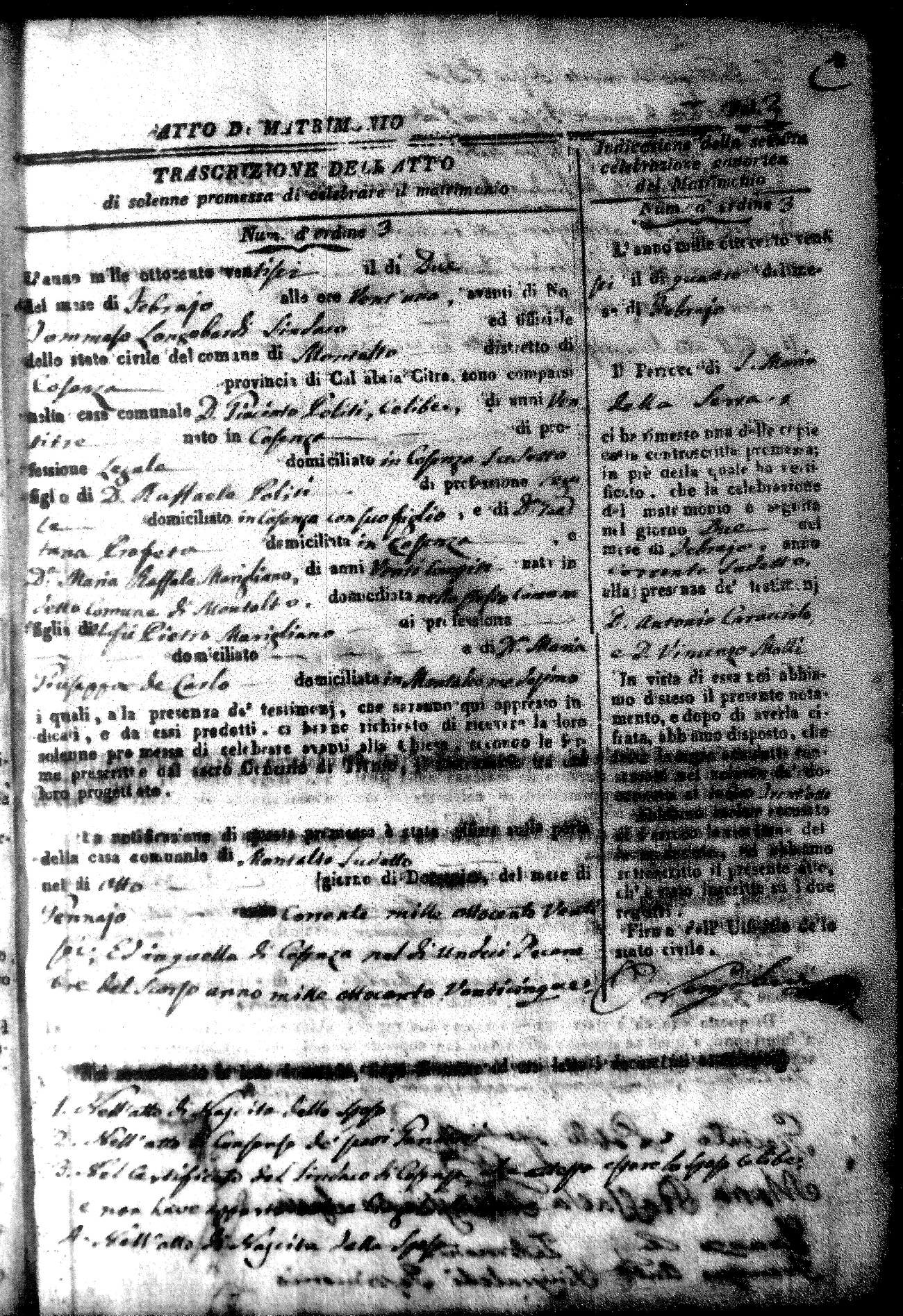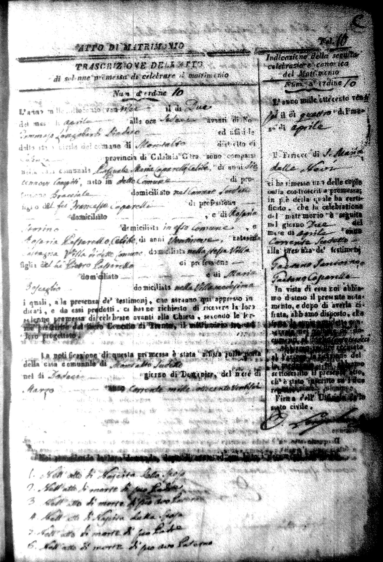 | Curatolo | Pasquale Nicola | Francesco (fu) | Mirabelli | Olivia (fu) | Longobucco | Giuseppa Saveria | Carlo | Lato | Maria |
