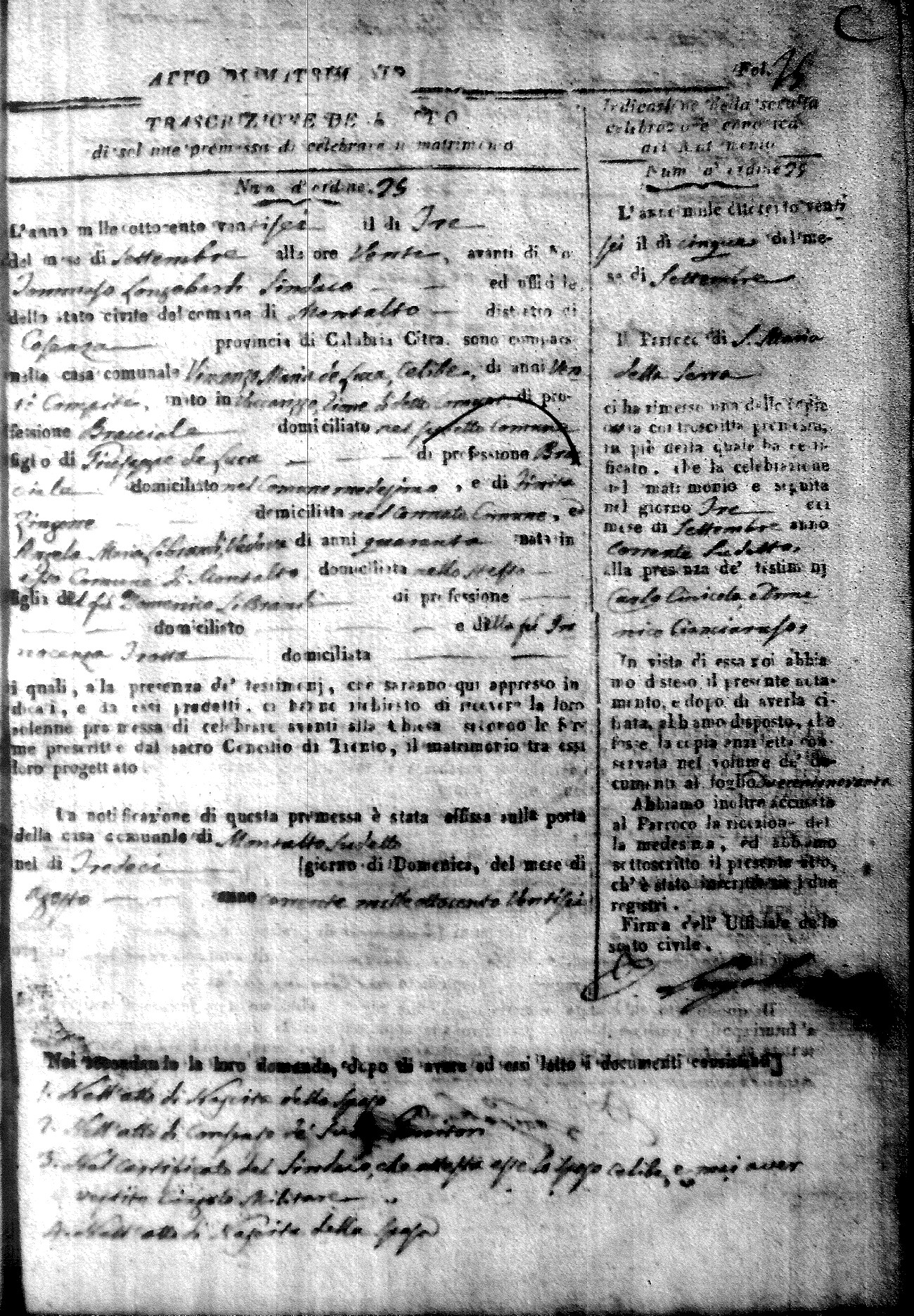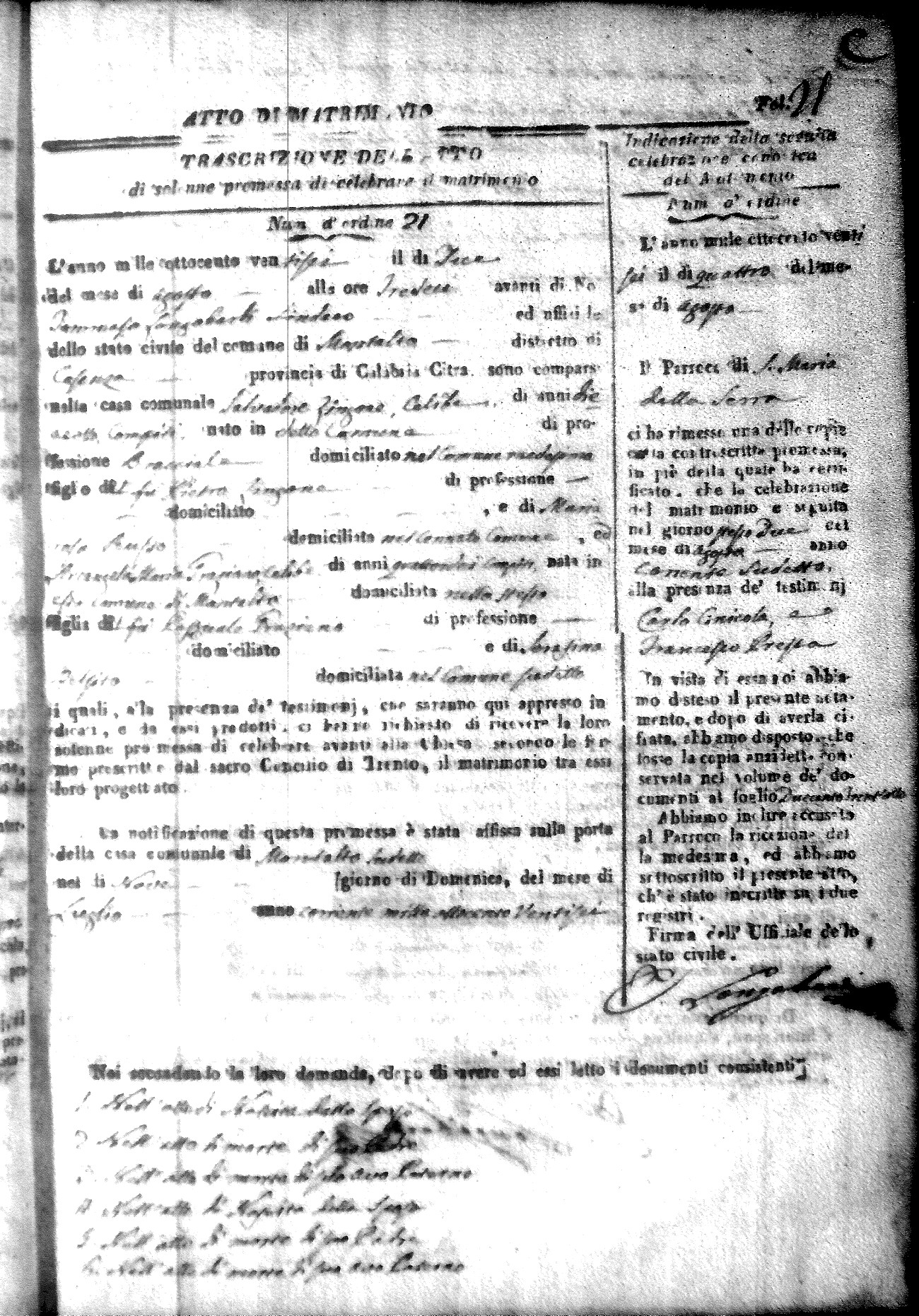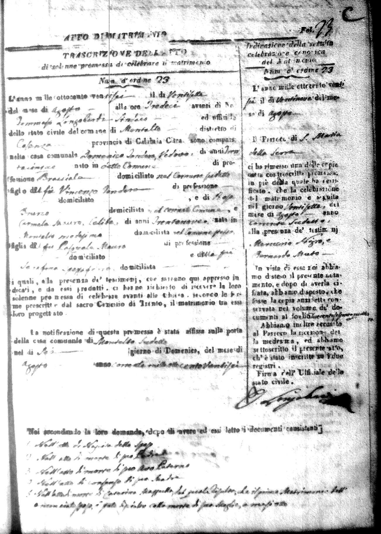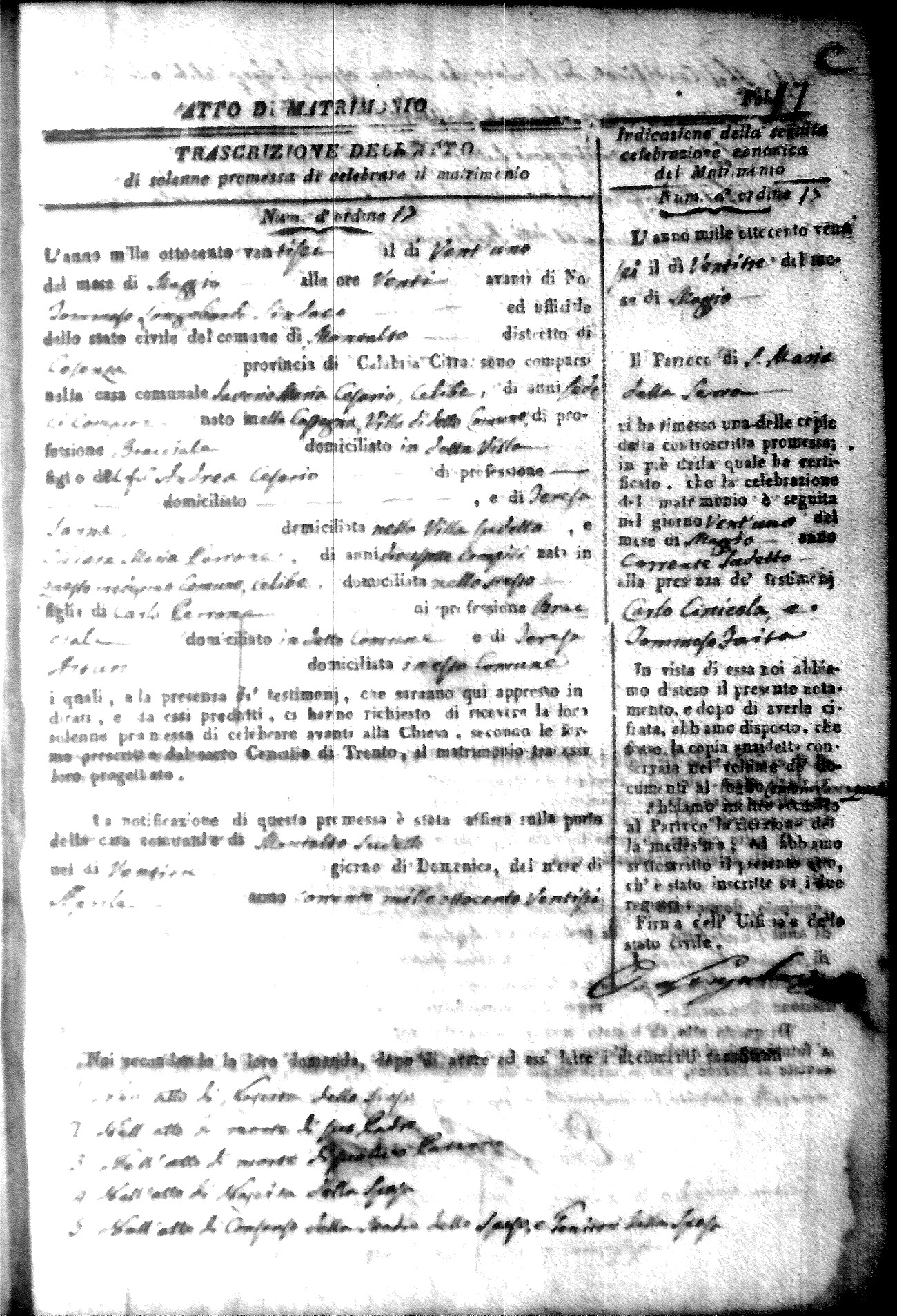 | Curatolo | Pasquale Nicola | Francesco (fu) | Mirabelli | Olivia (fu) | Longobucco | Giuseppa Saveria | Carlo | Lato | Maria |