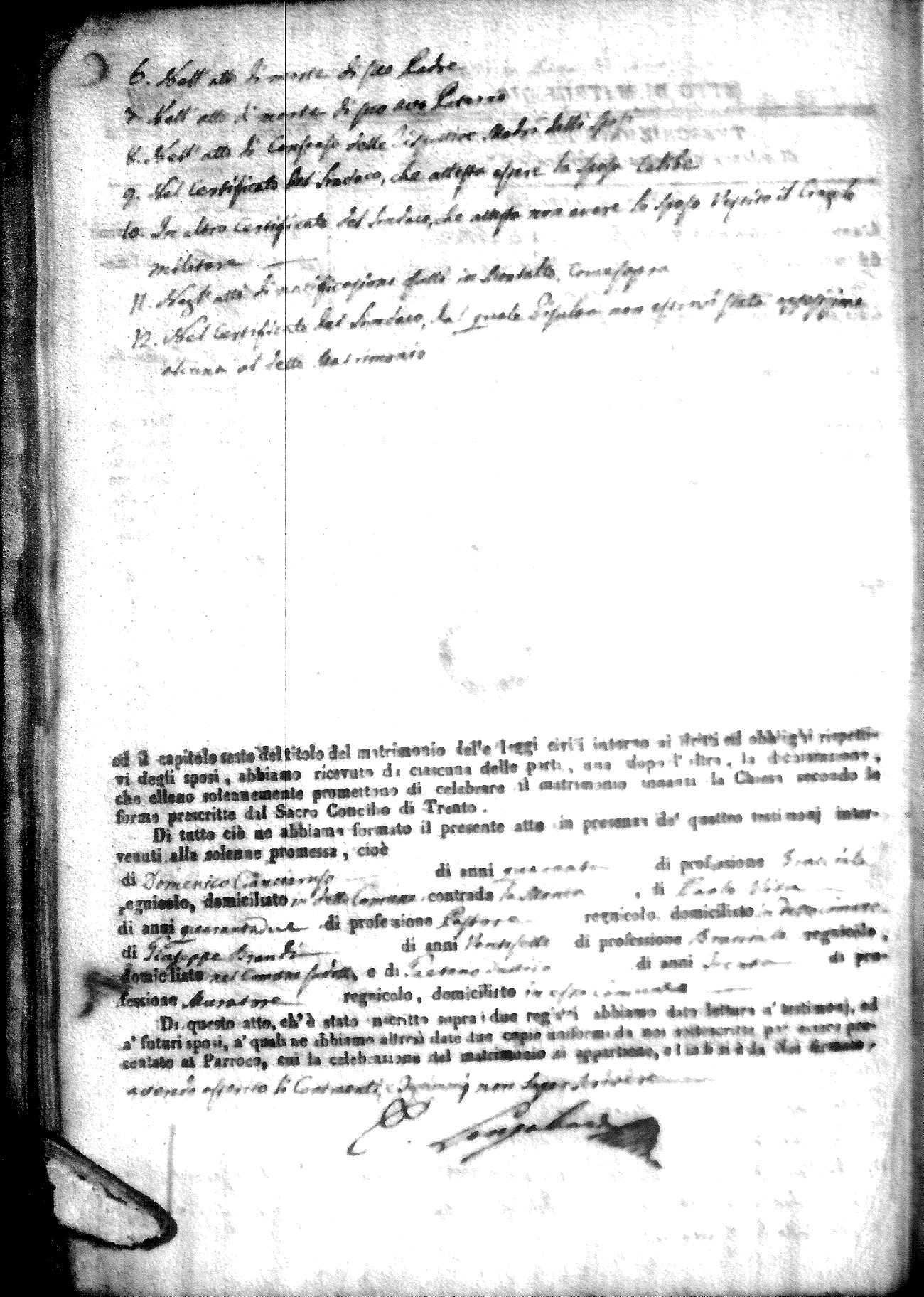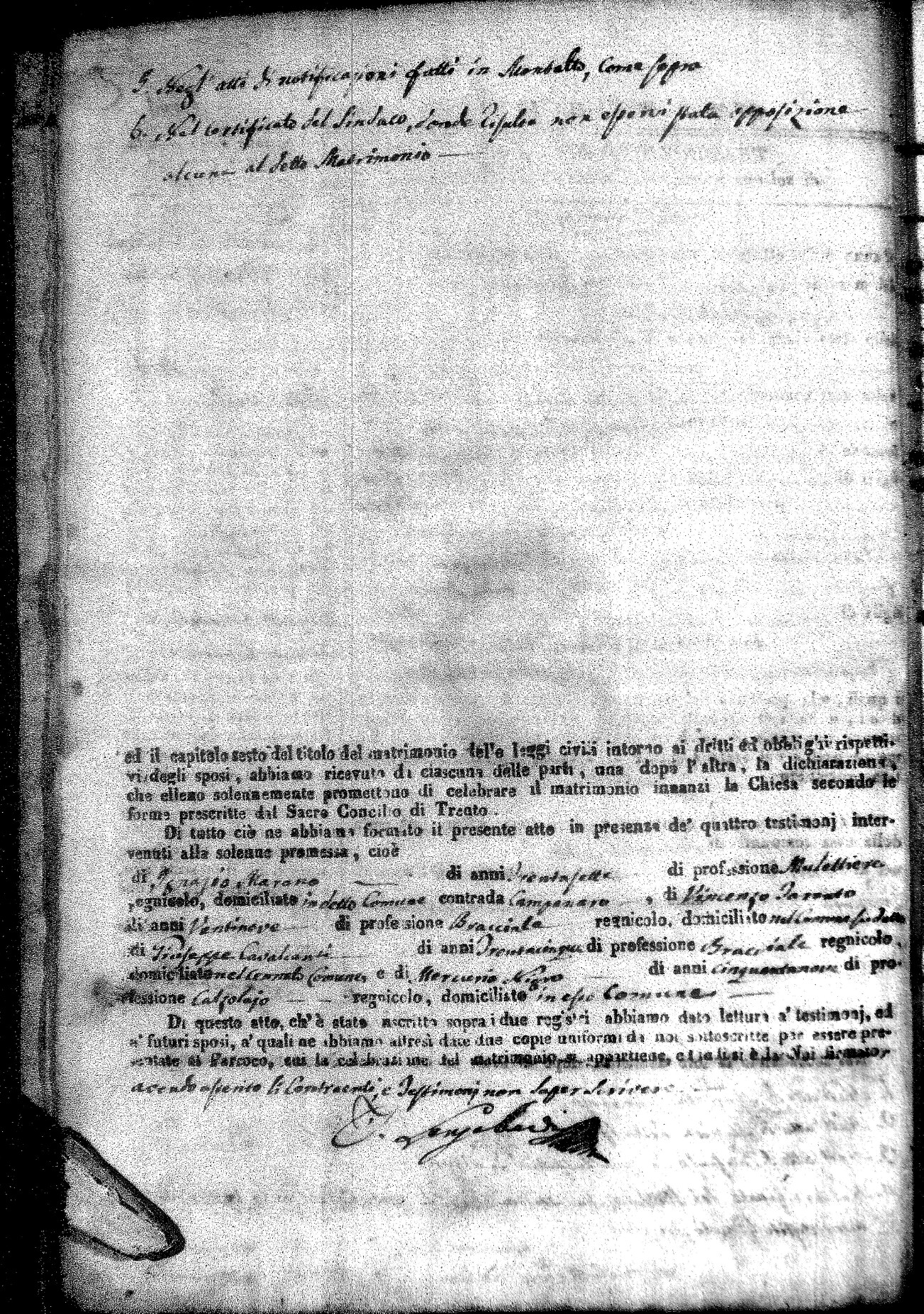 | Caparelli | Pasquale Maria | Francesco (fu) | Storino | Rosaria | Passarello | Rosaria | Pietro (fu) | Boscaglio | Maria |