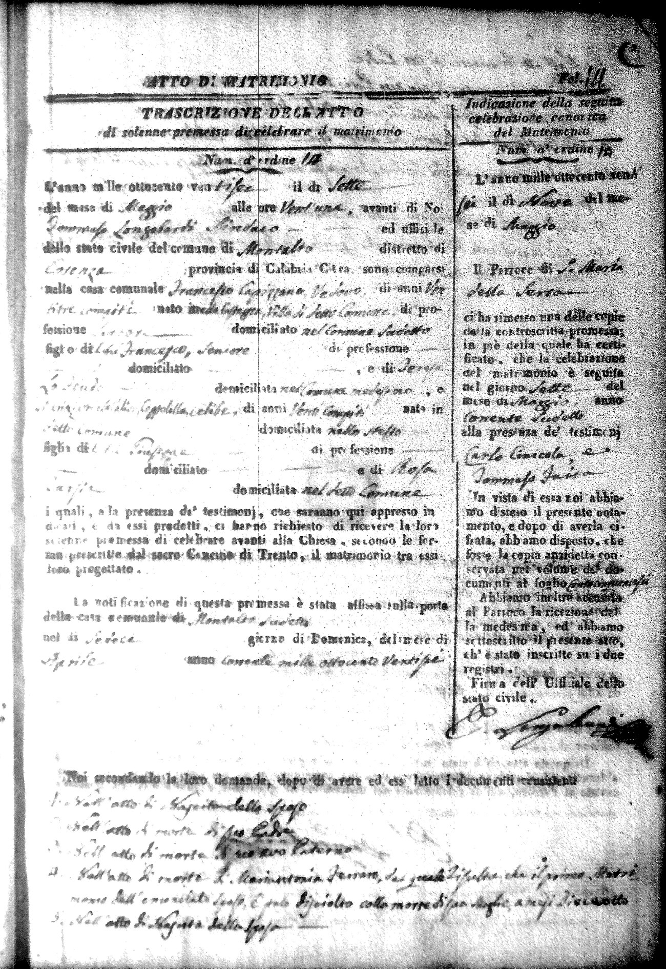 | Longobucco | Pasquale Vincenzo Maria | Tomasso (fu) | Chimenti | Saveria | Gentile | Maria? | Angelo (fu) | Faeta | Anna (fu) |