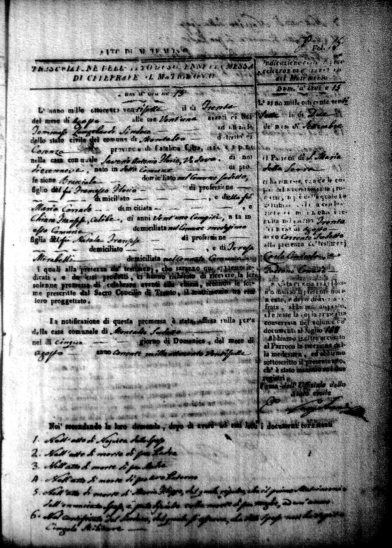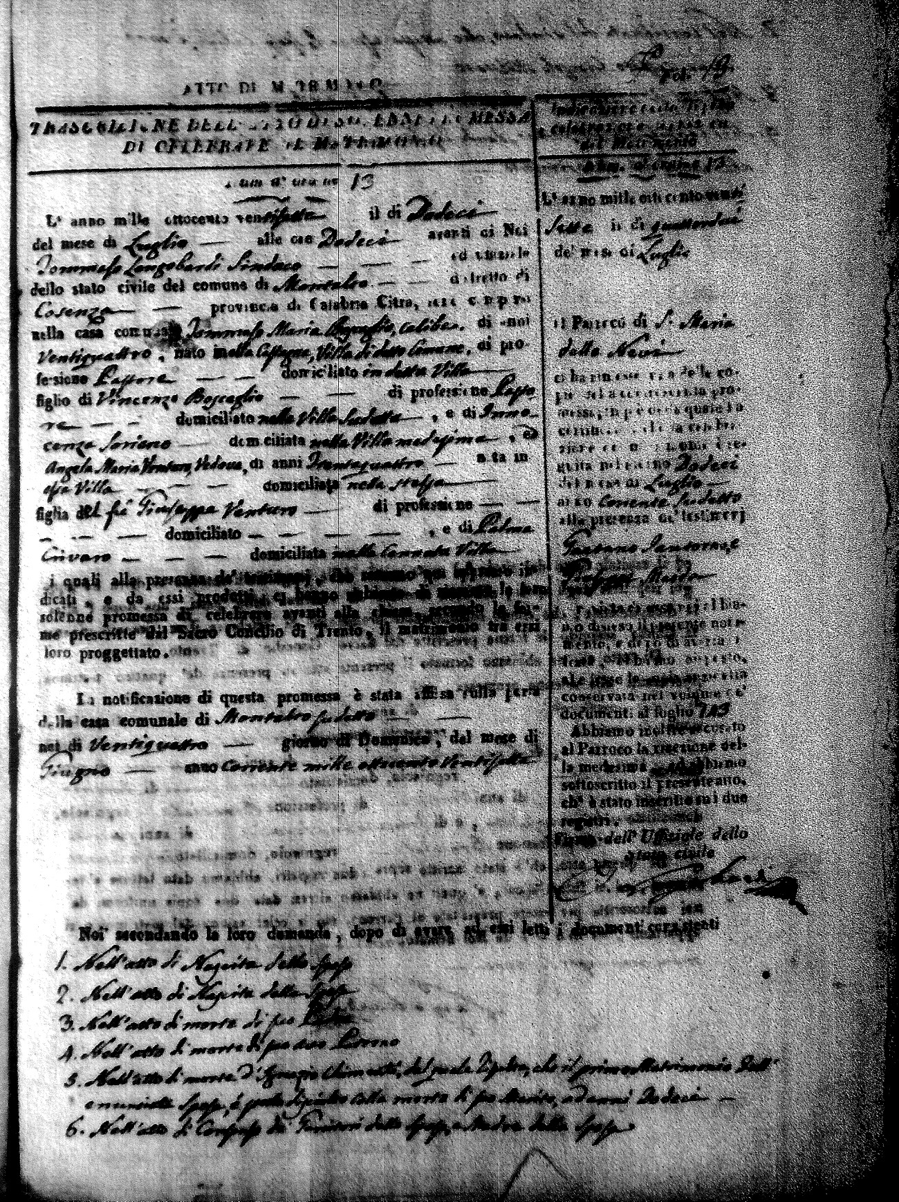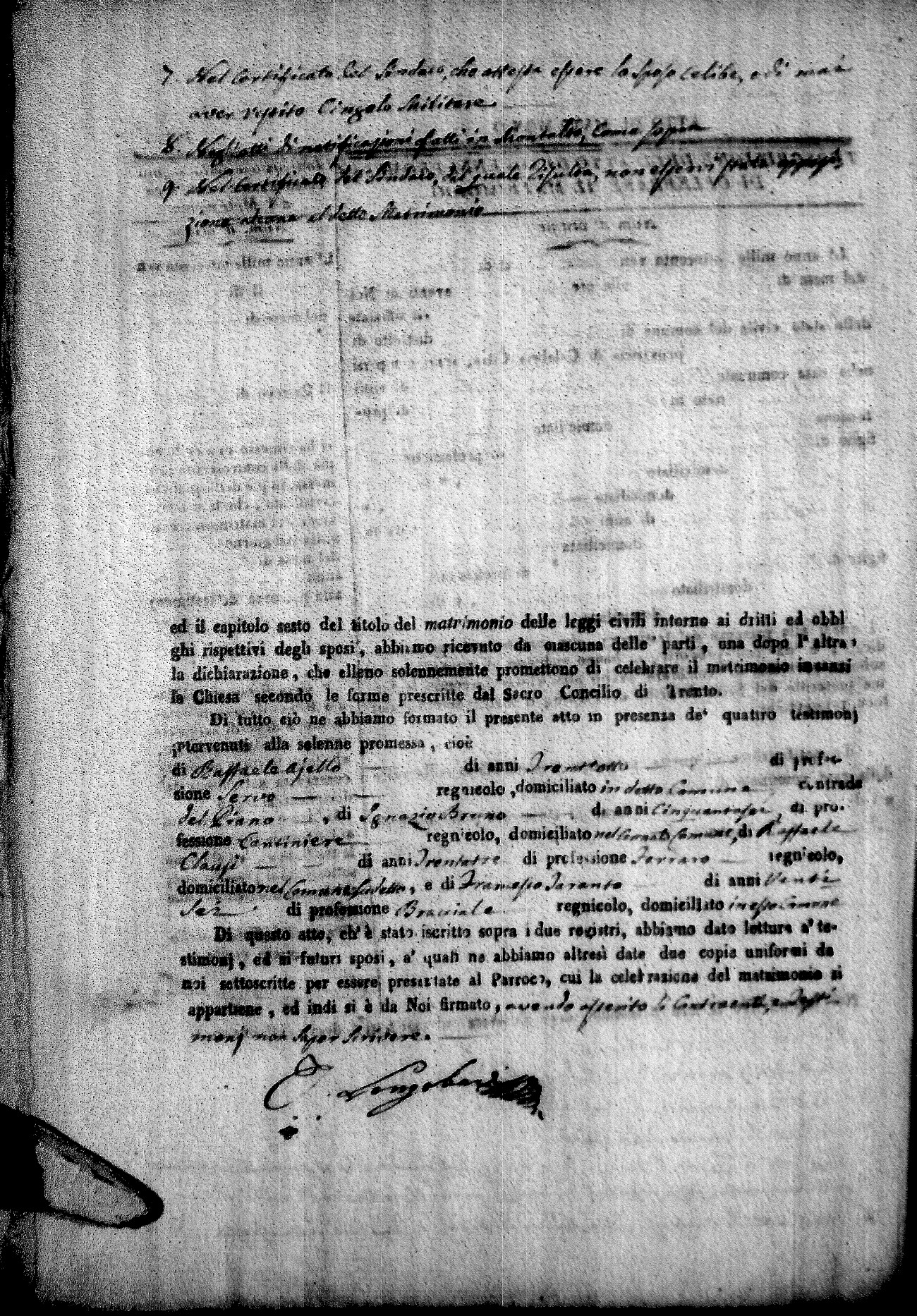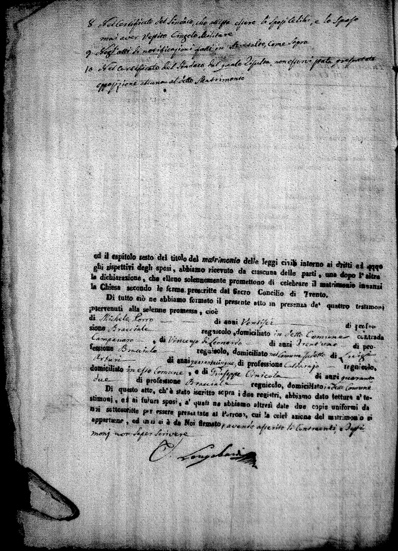 | Bosceglio | Tommaso Maria | Vincenzo | Soriano | Innocenza | Venturo | Angela Maria | Giuseppe (fu) | Crivaro | Palma |
