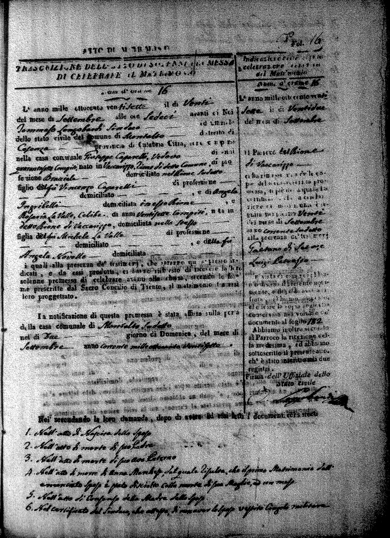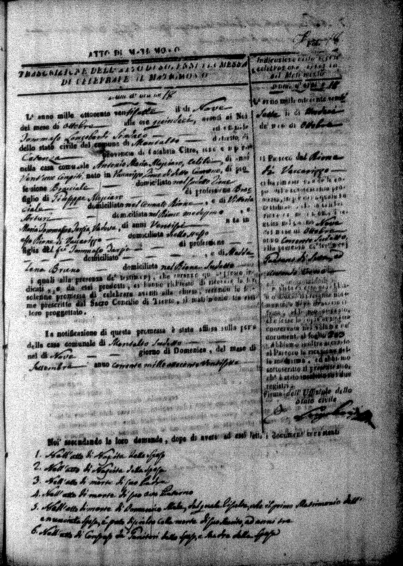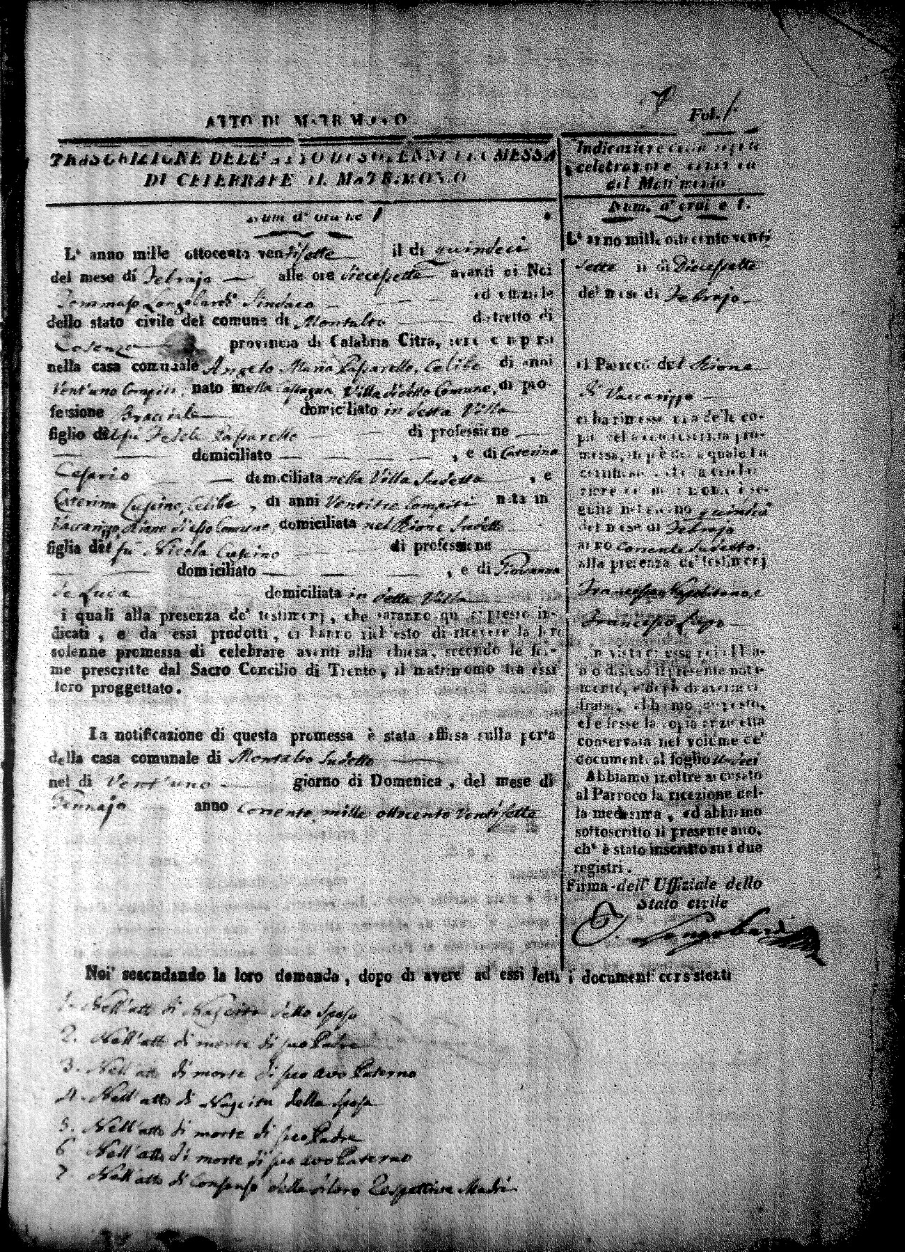 | Caparello | Vincenzo Francesco | Domenico (fu) | Rotundo | Maria | LaValle | Carmela Maria | Michele (fu) | Novello | Angela (fu) |