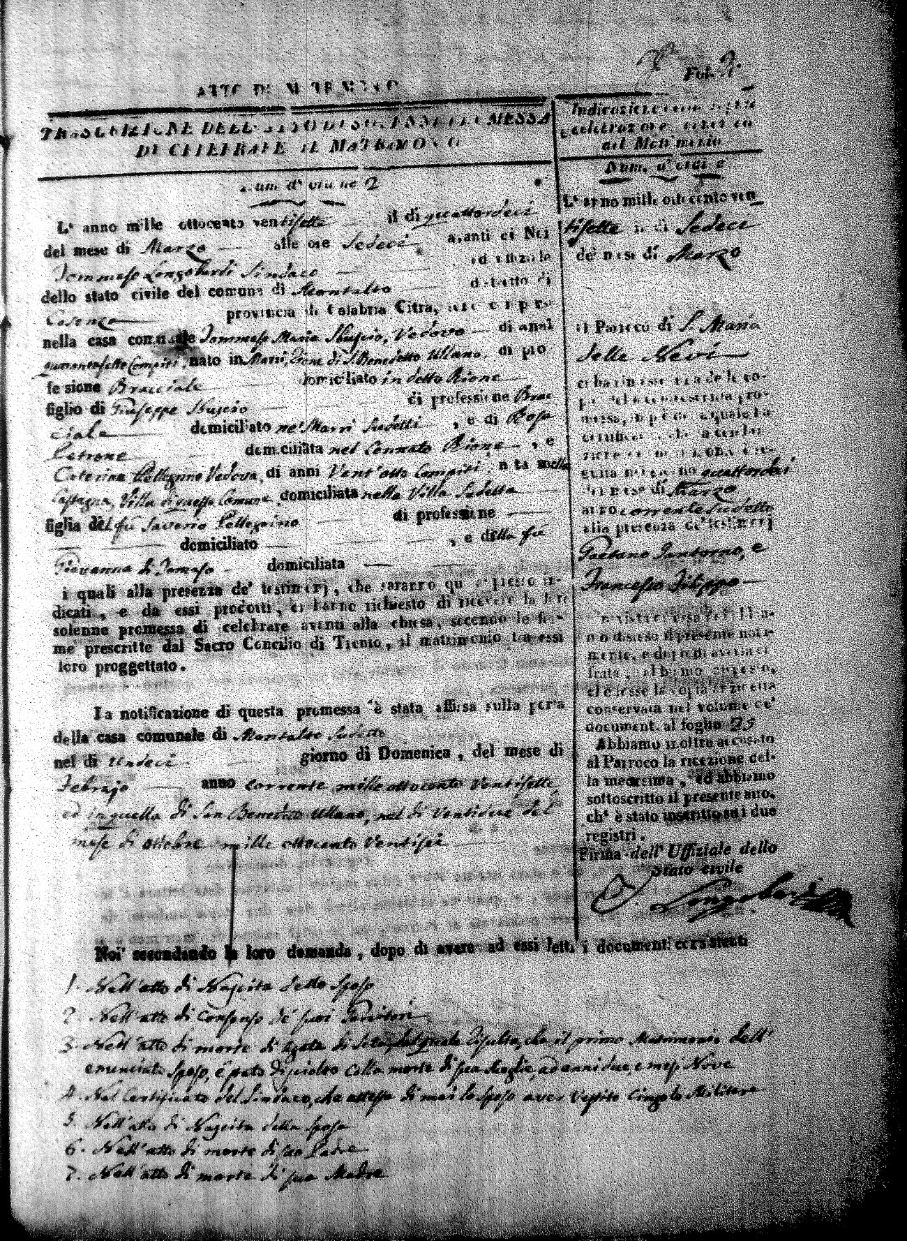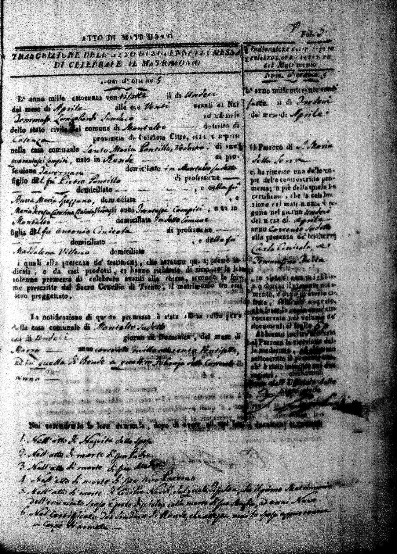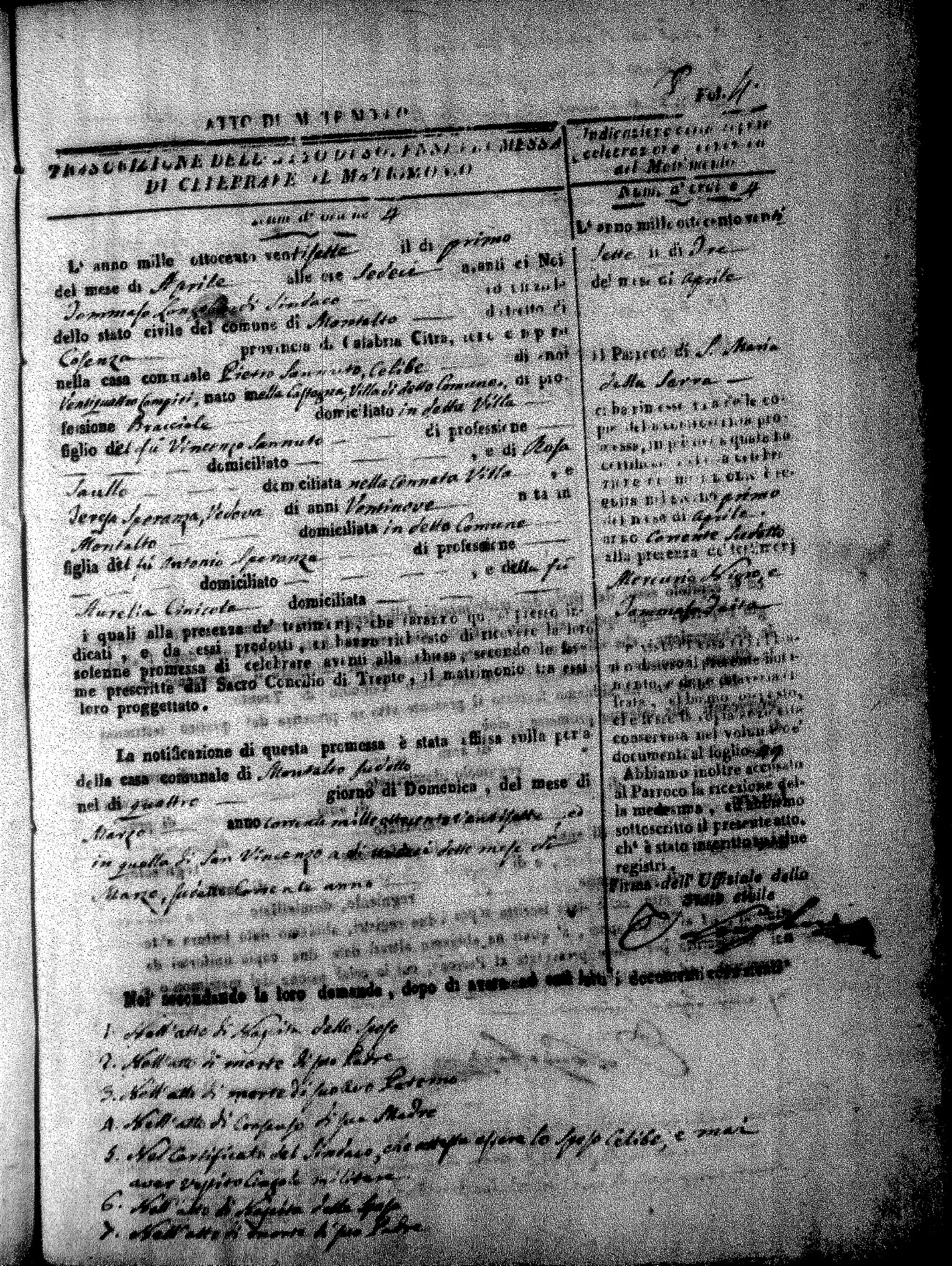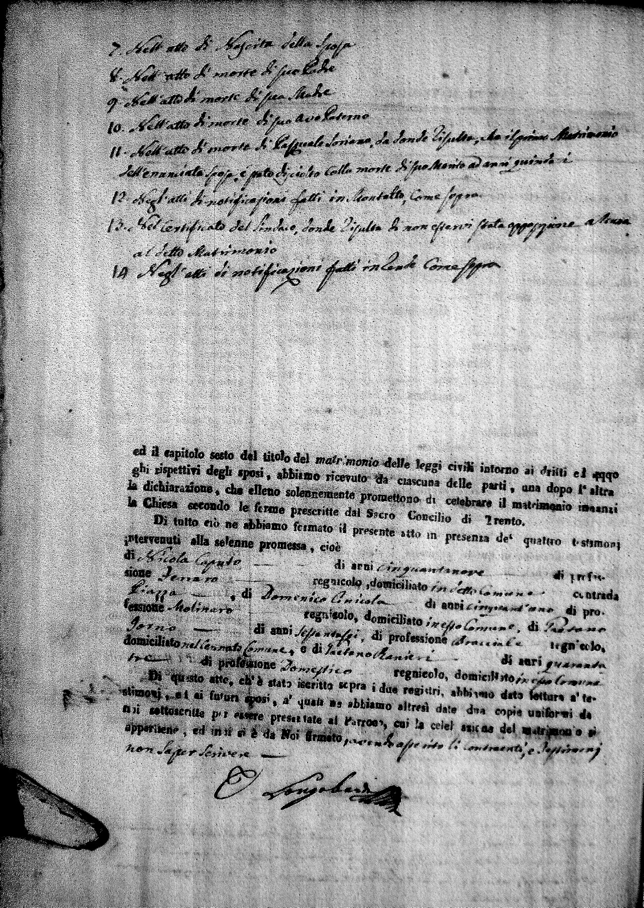 | Pontillo | Santo Maria | Pietro (fu) | Spezzano | Anna Maria (fu) | Cinicola | Maria Teresa Caterina | Antonio (fu) | Villecco | Maddelena (fu) |