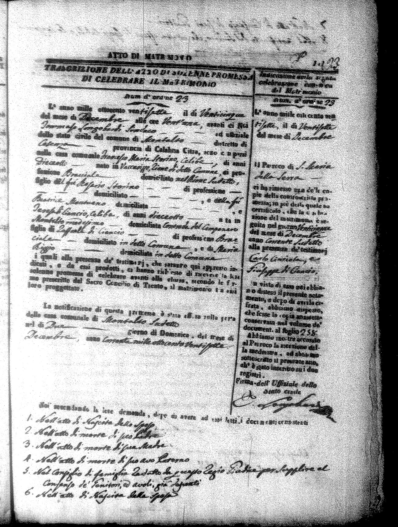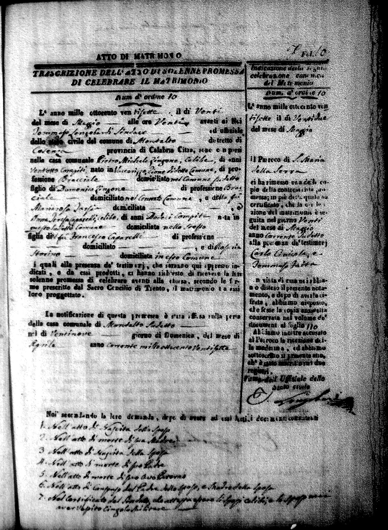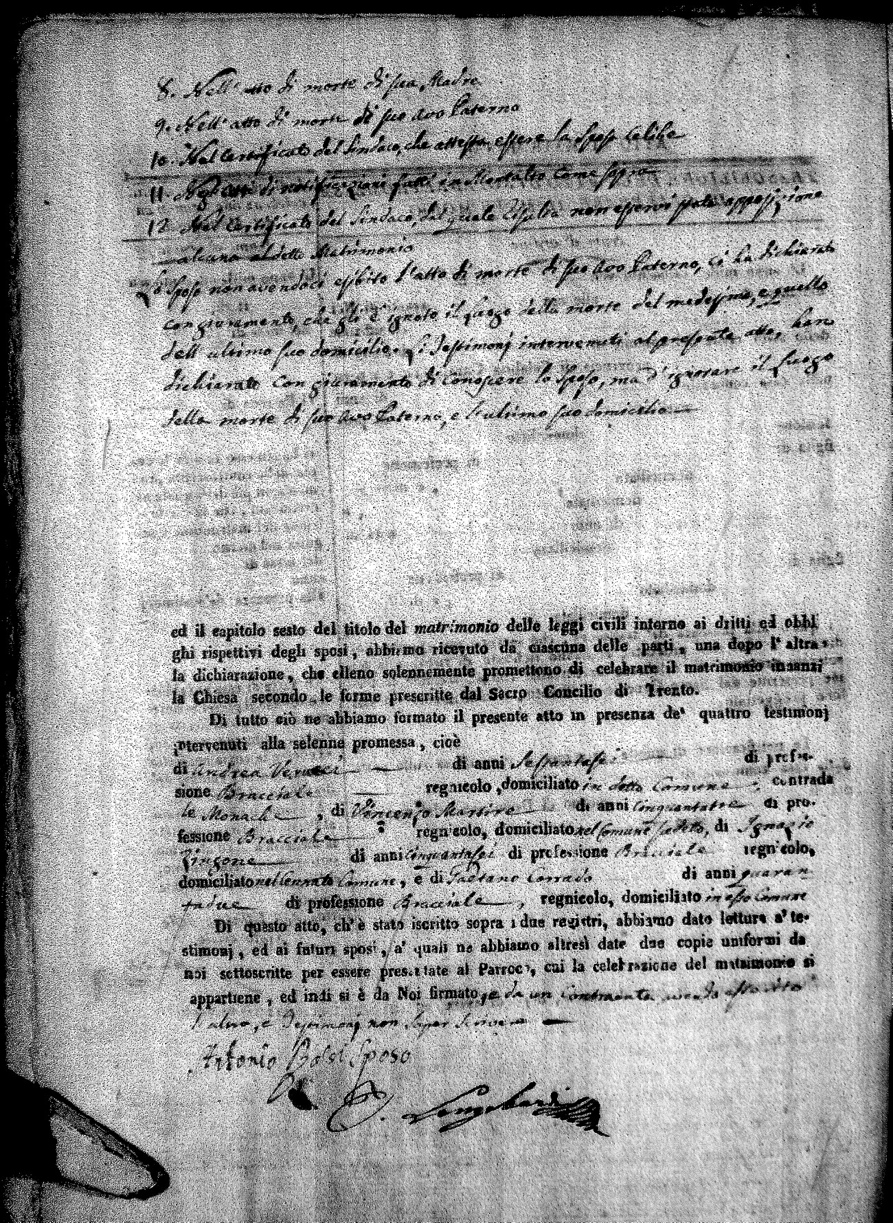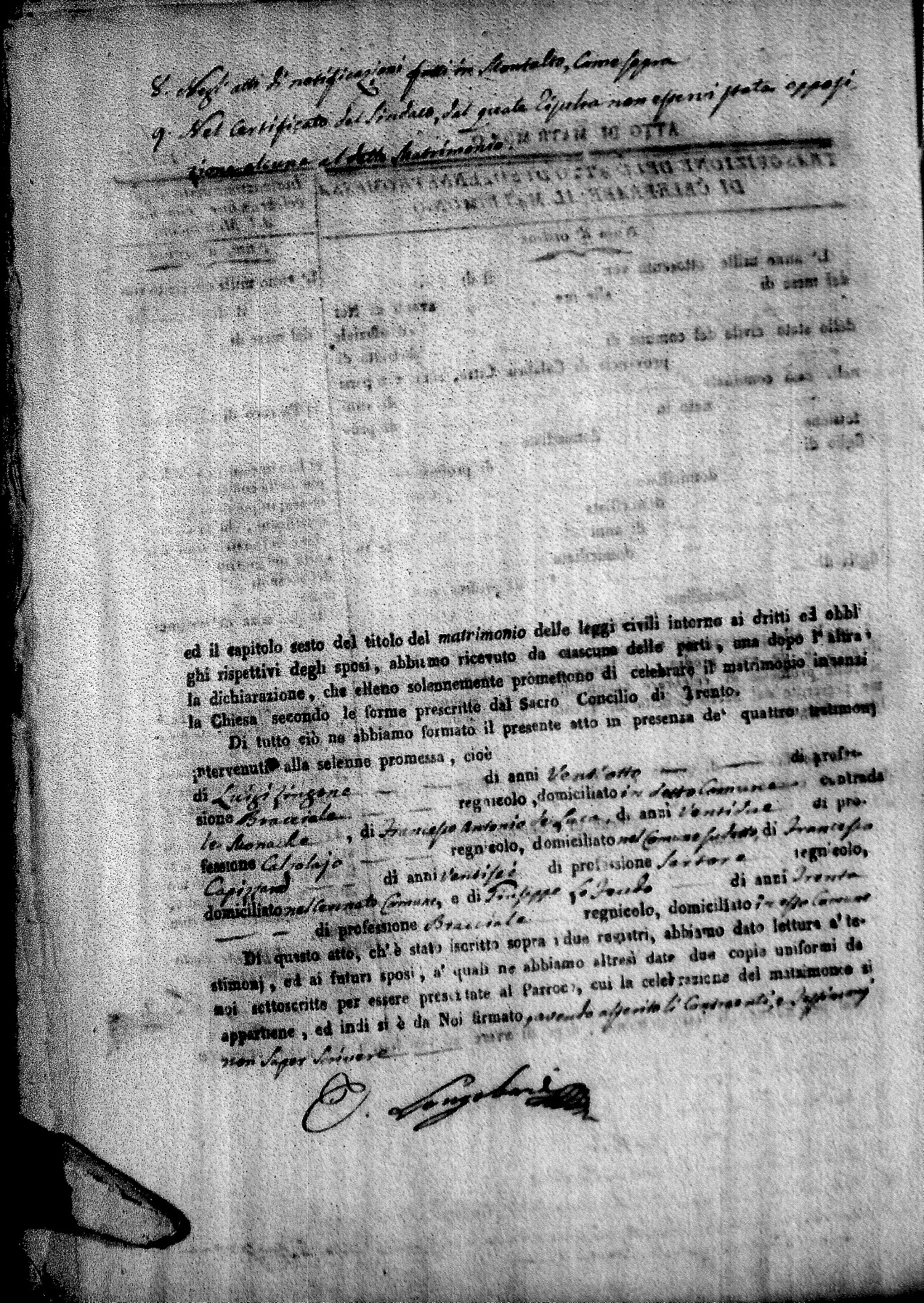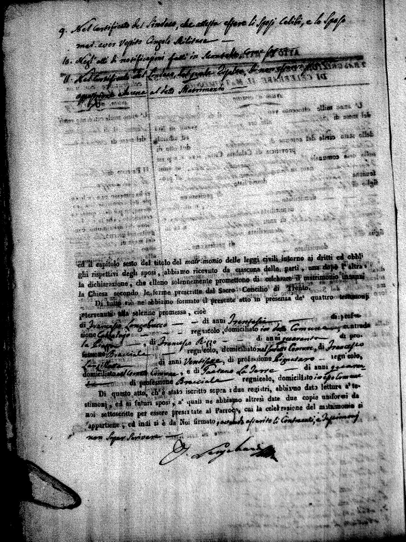 | Pontillo | Santo Maria | Pietro (fu) | Spezzano | Anna Maria (fu) | Cinicola | Maria Teresa Caterina | Antonio (fu) | Villecco | Maddelena (fu) |