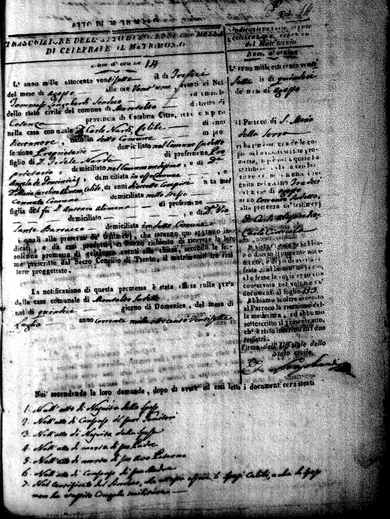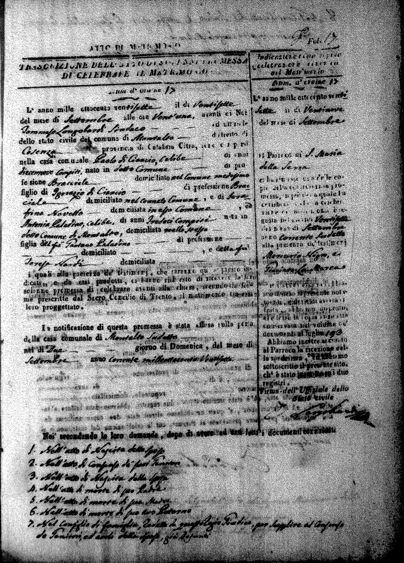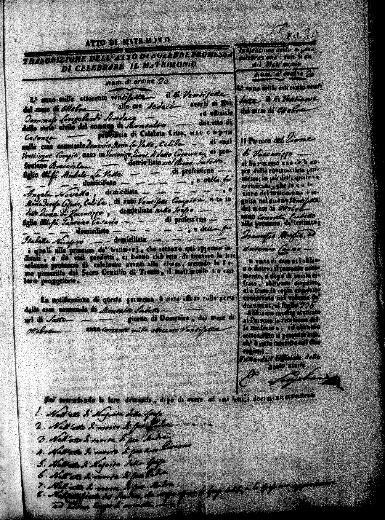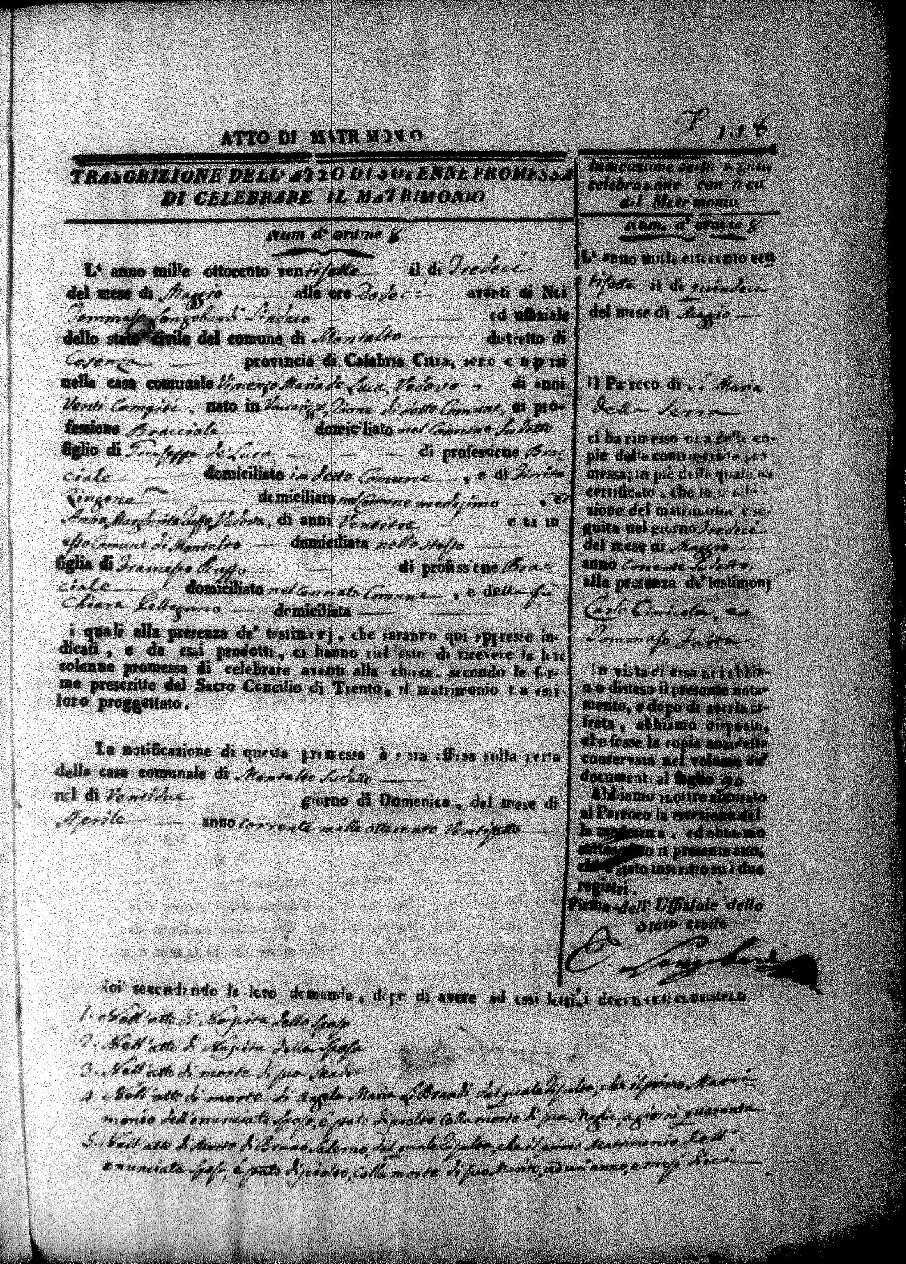 Here are the extractions for all the marriage acts in 1827 for Montalto Uffugo. This year is complete. For more information, click on the groom's surname to view a copy of page 1 of the original document. The link on his first name is page 2 of the marriage act.