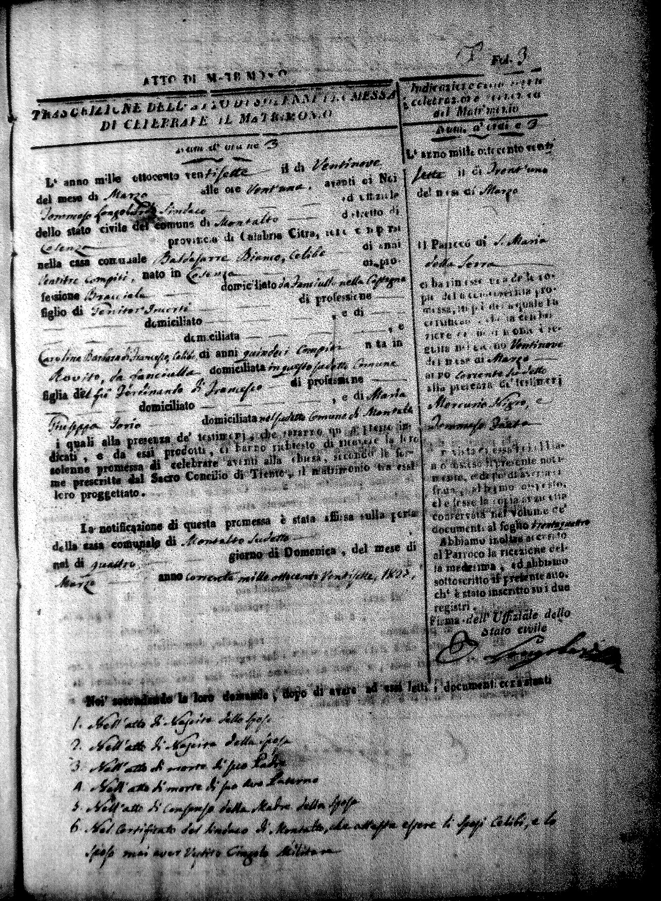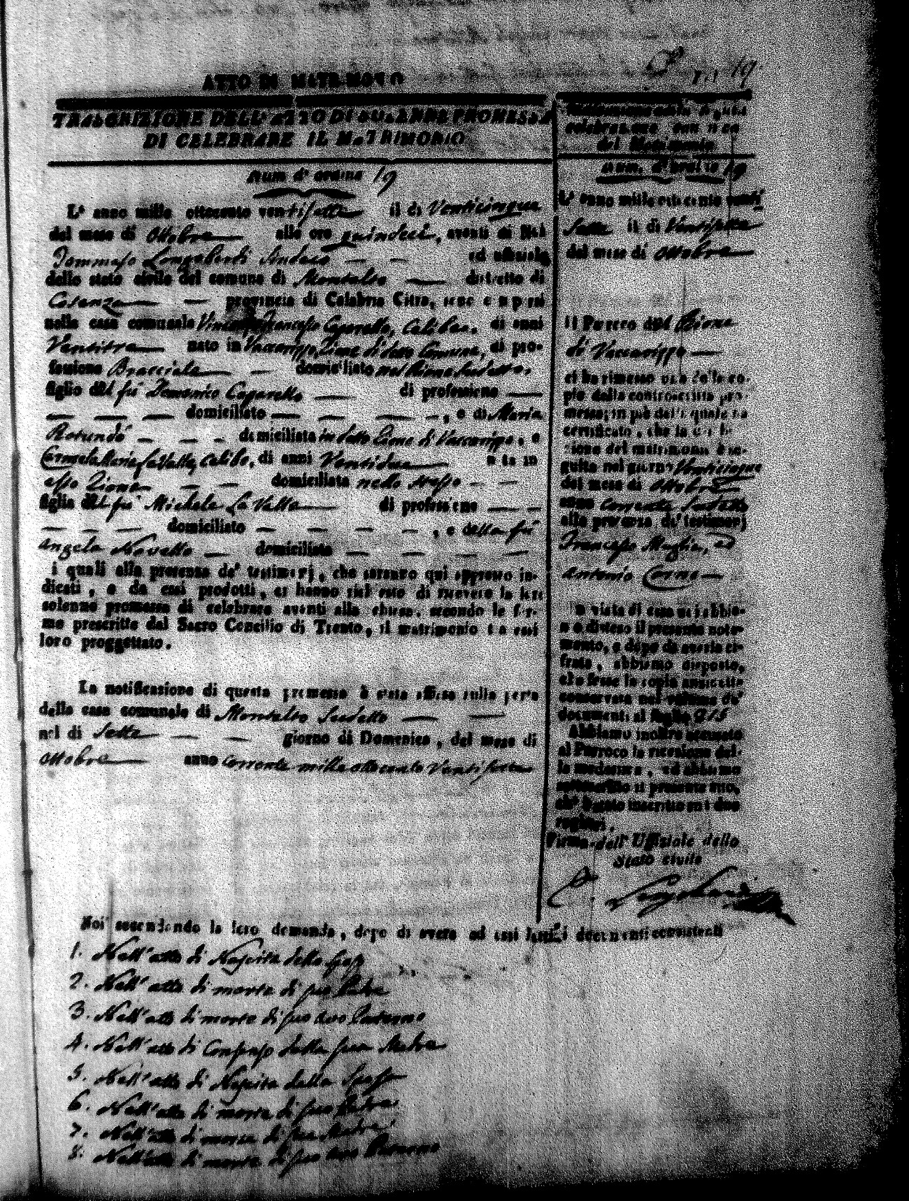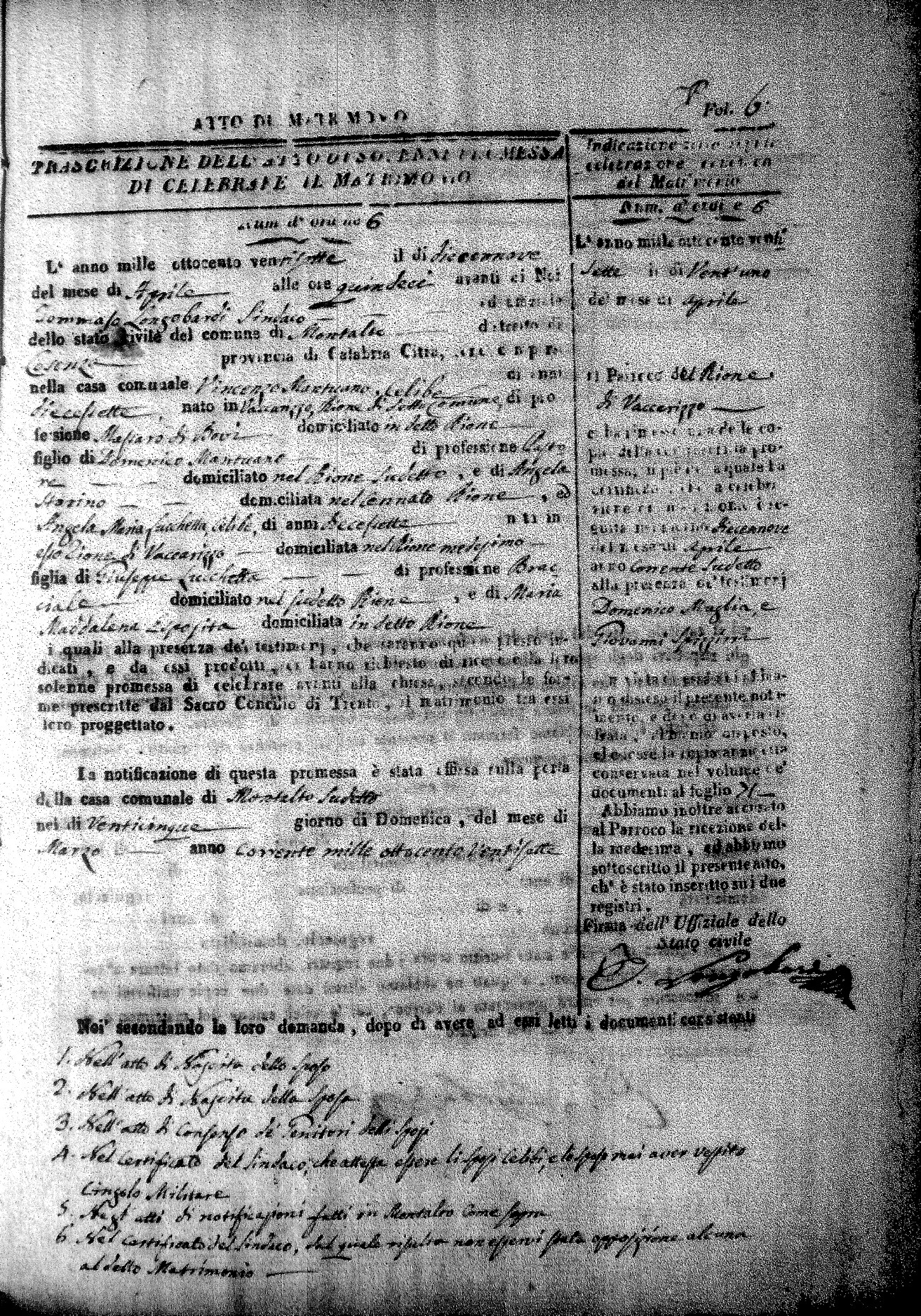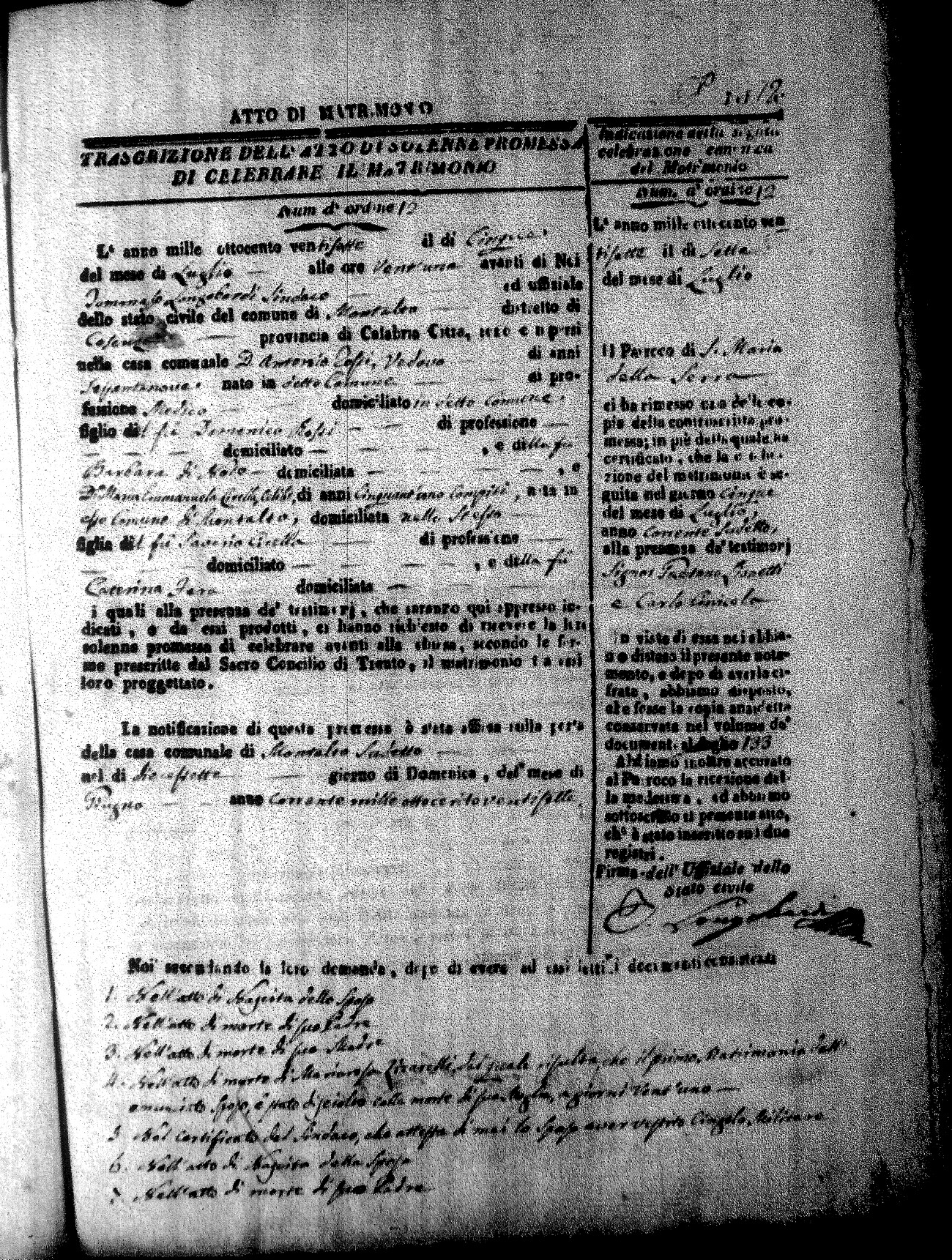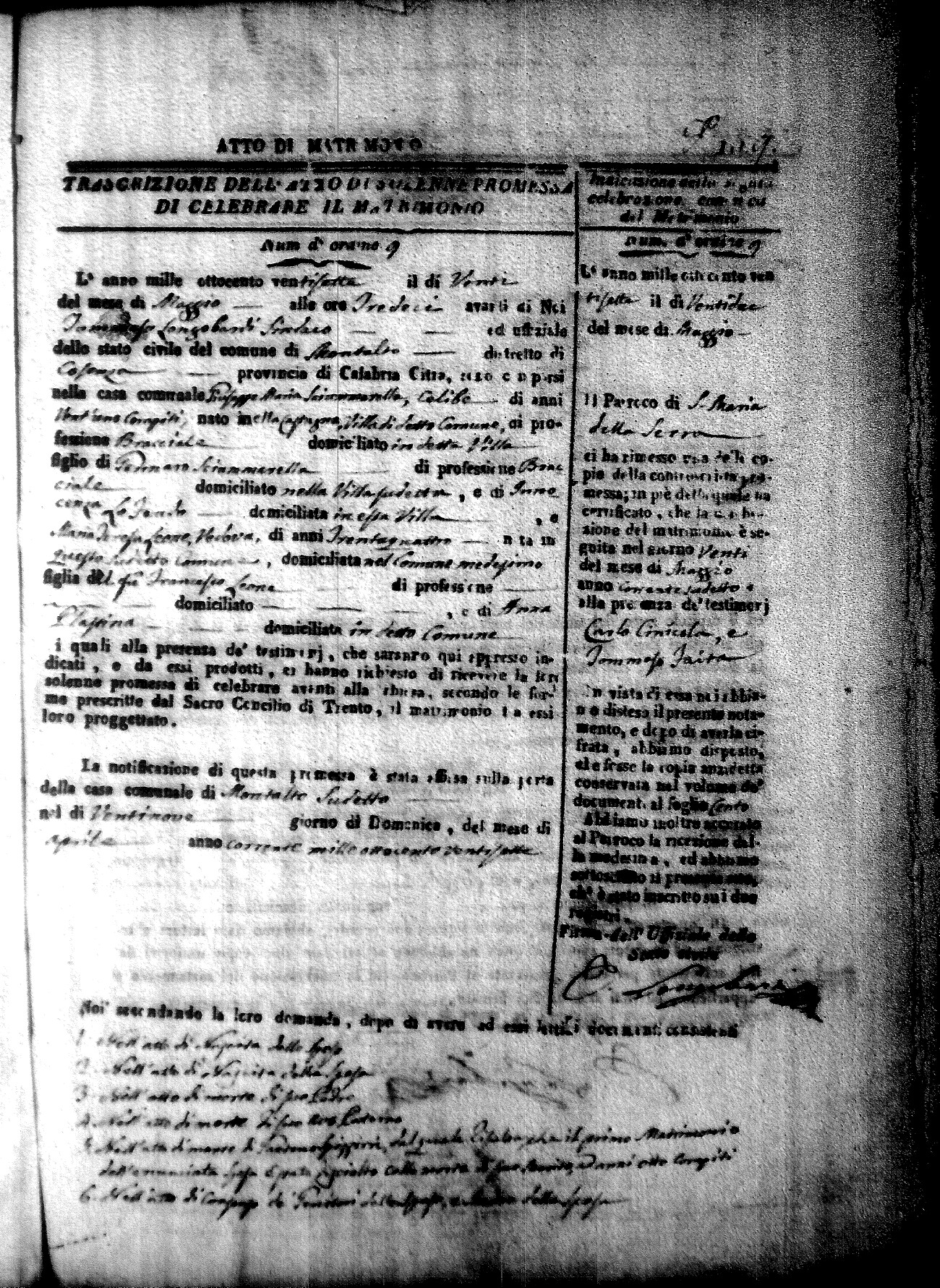 Here are the extractions for all the marriage acts in 1827 for Montalto Uffugo. This year is complete. For more information, click on the groom's surname to view a copy of page 1 of the original document. The link on his first name is page 2 of the marriage act.