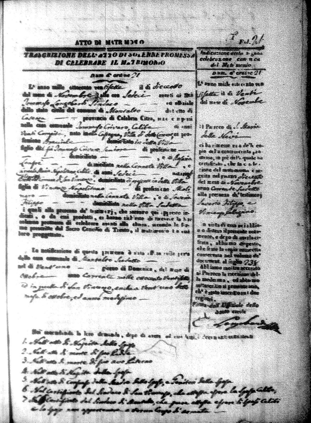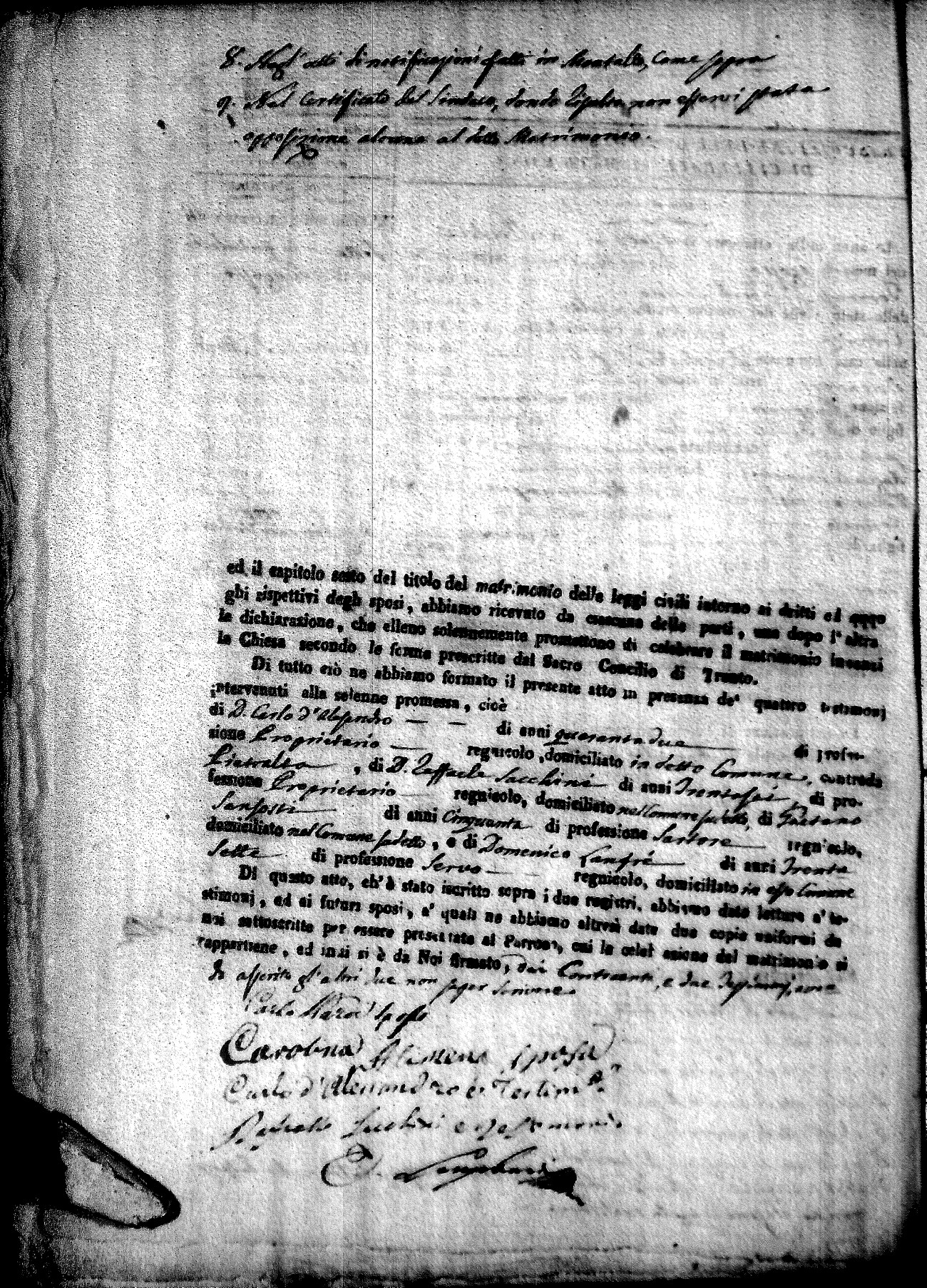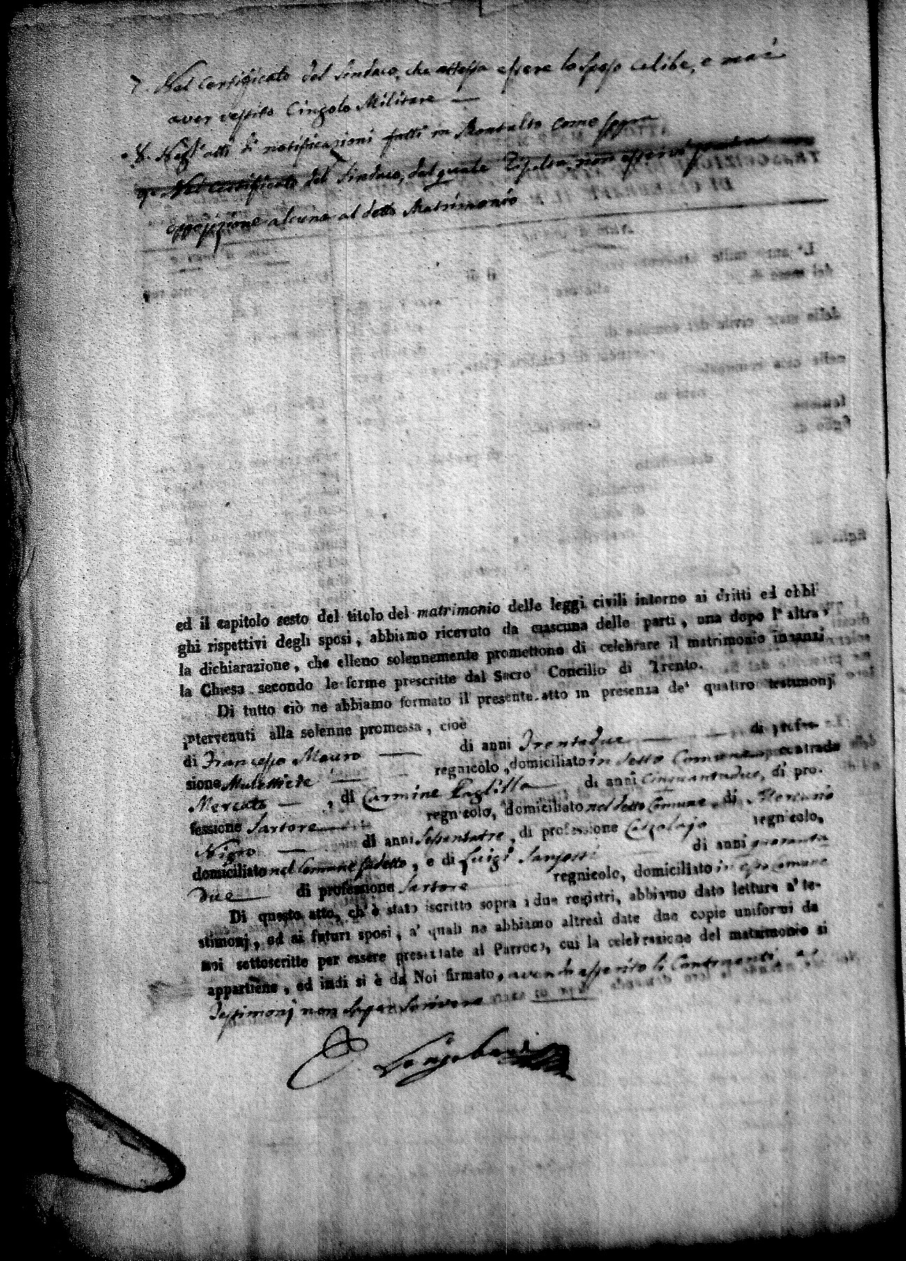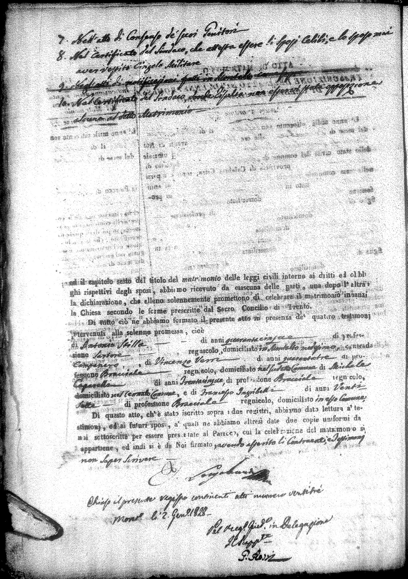 | Rossi | D. Antonio | Domenico (fu) | diNoto | Barbara (fu) | Cirello | D. Maria Emmanuela | Saverio (fu) | Fera | Caterina (fu) |