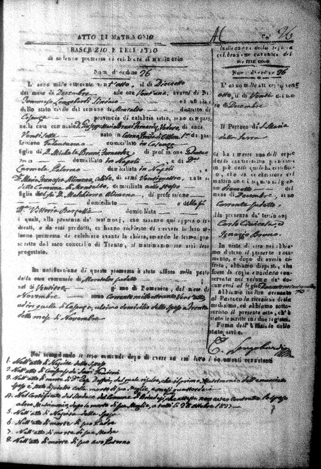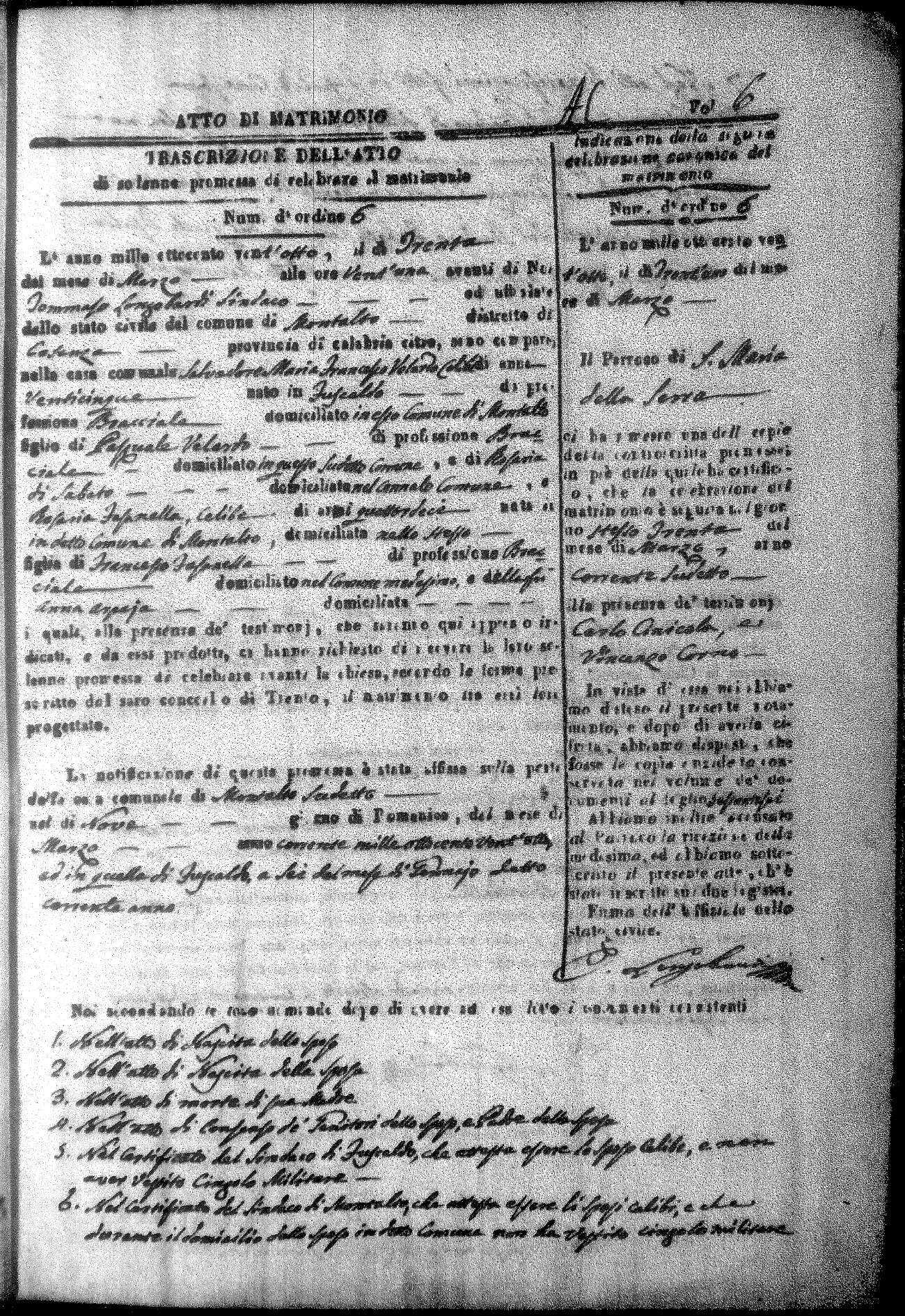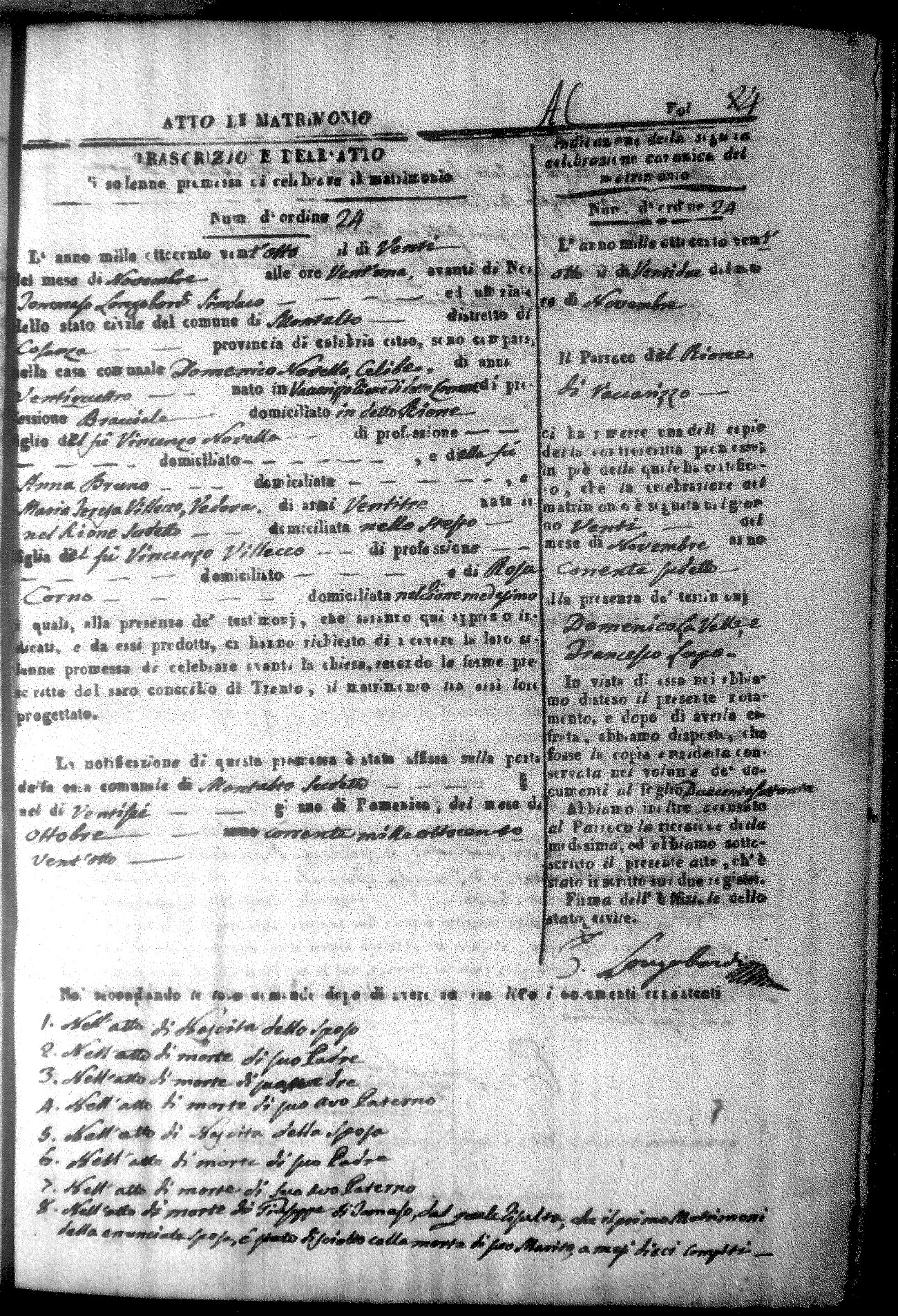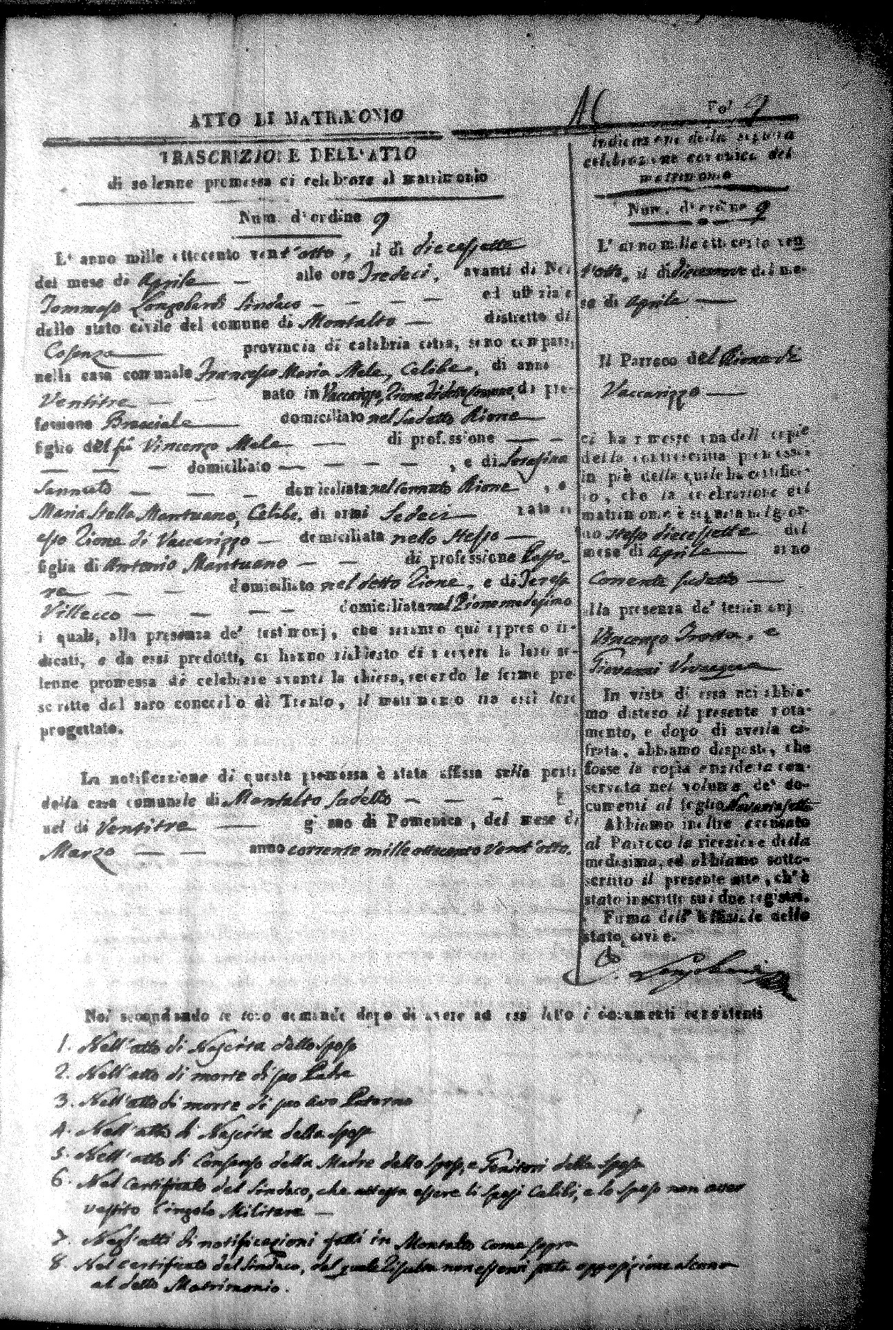 Here are the extractions for all the marriage acts in 1828 for Montalto Uffugo. For more information, click on the groom's surname to view a copy of the original document.
