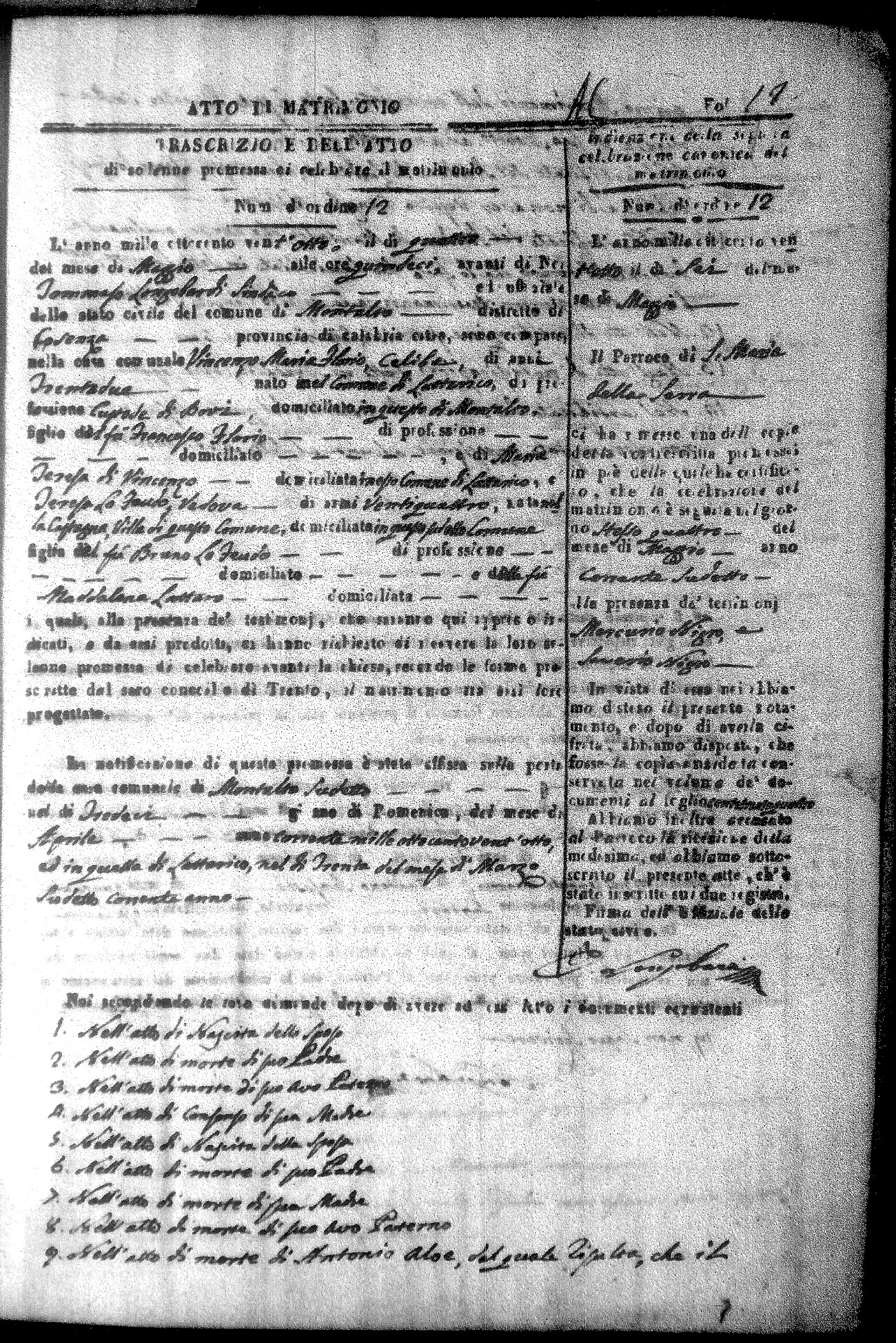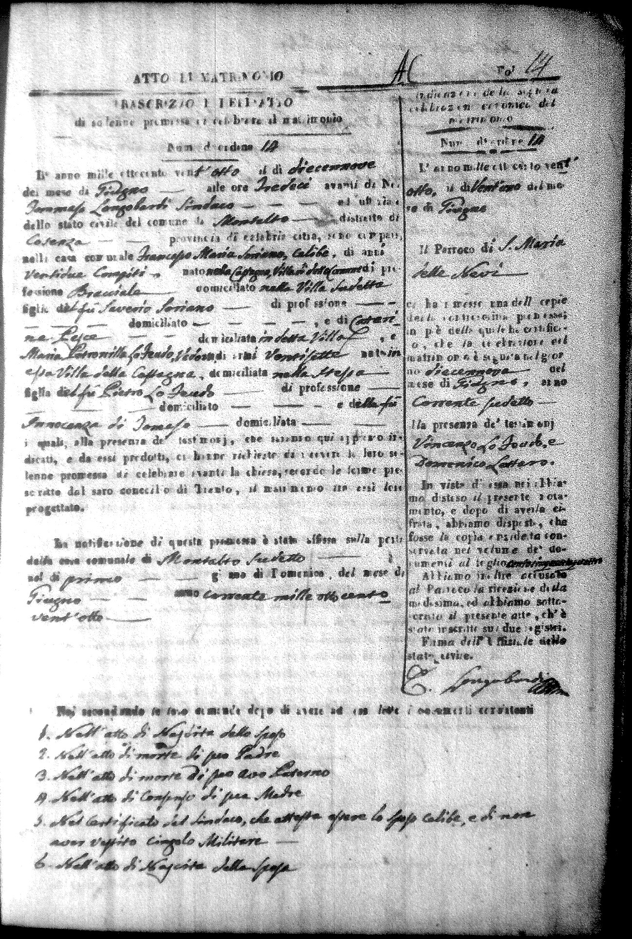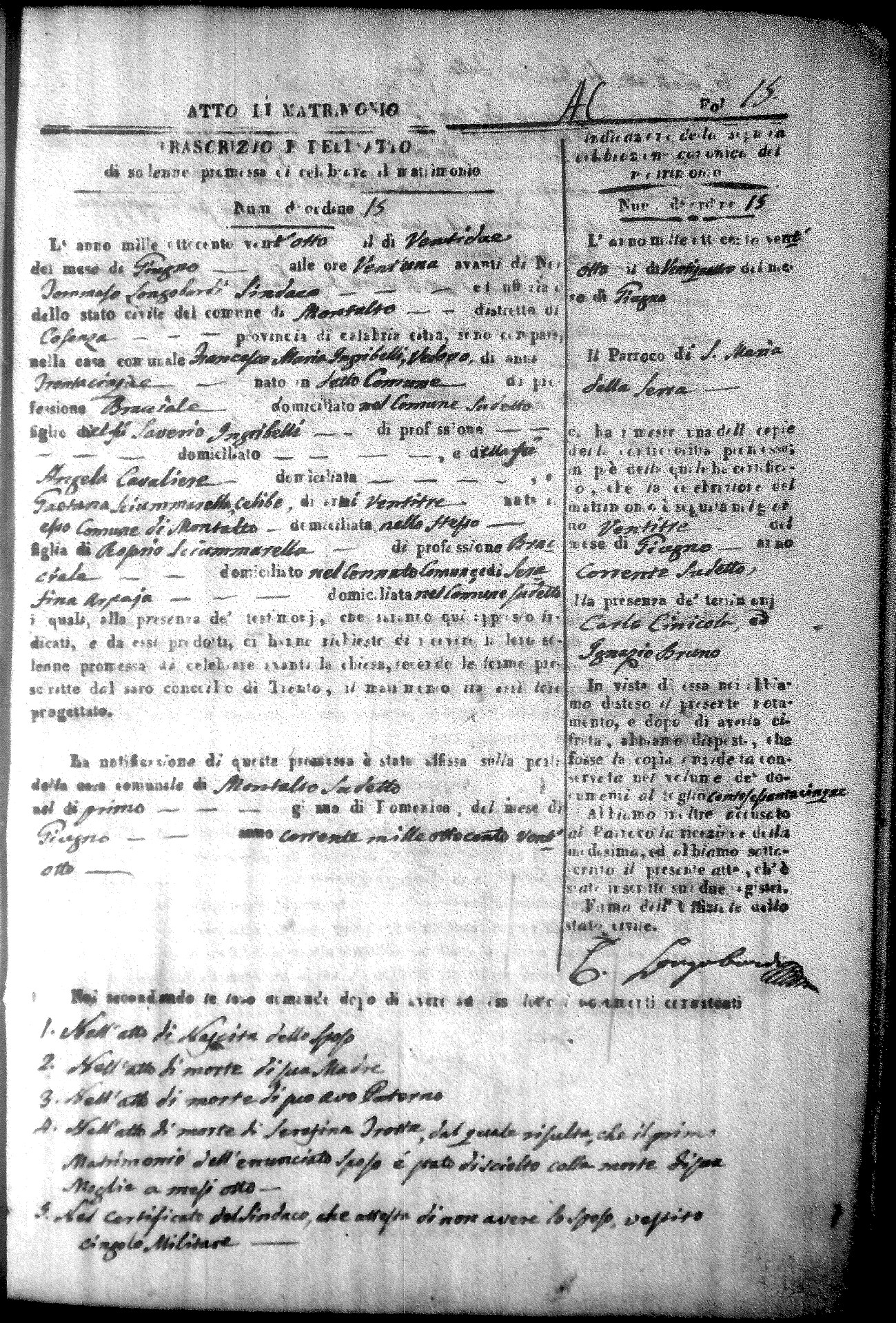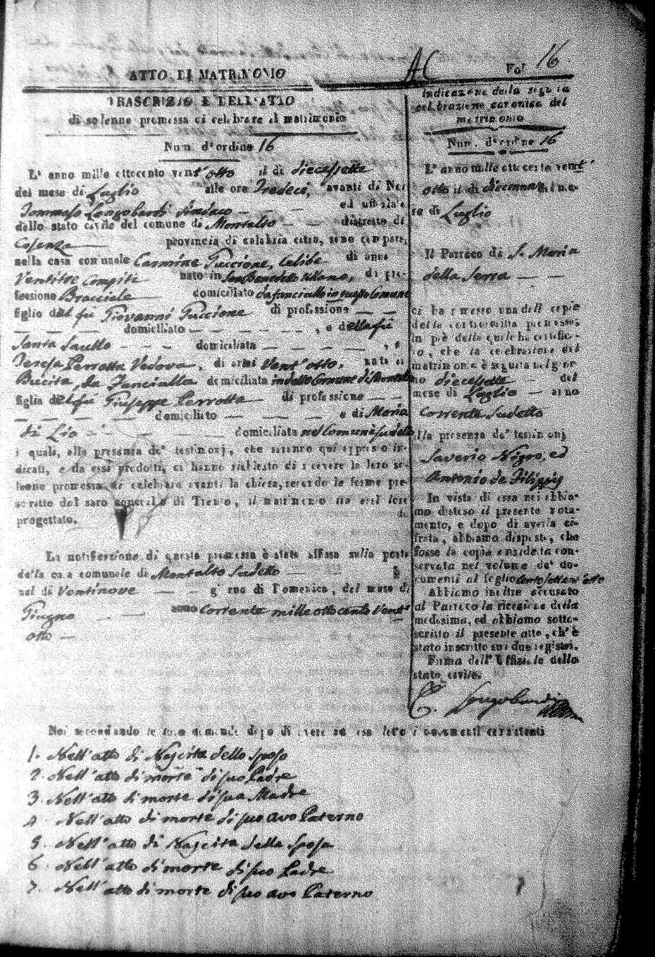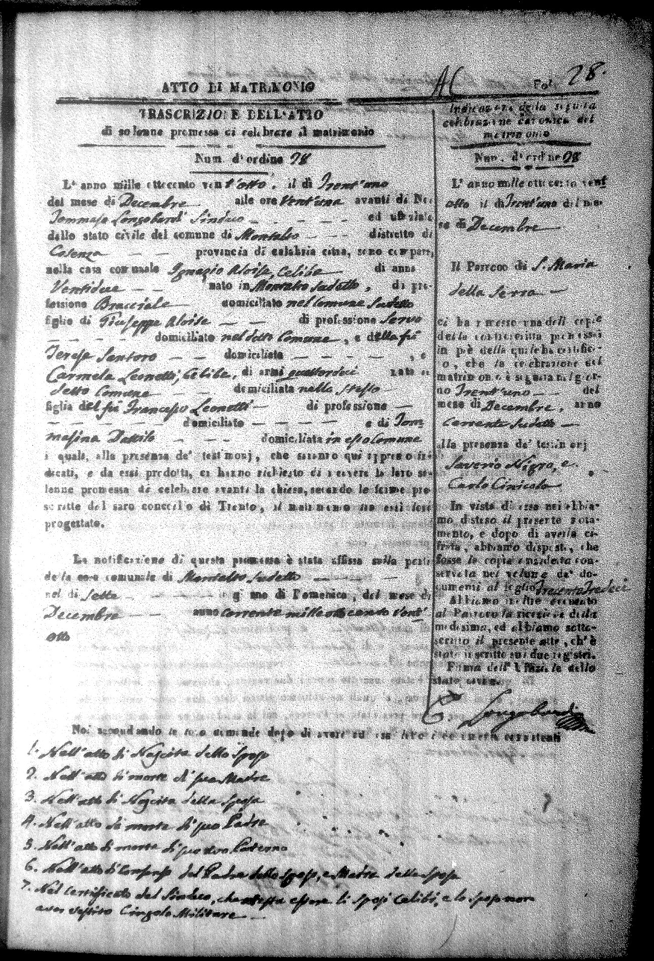 Here are the extractions for all the marriage acts in 1828 for Montalto Uffugo. For more information, click on the groom's surname to view a copy of the original document.