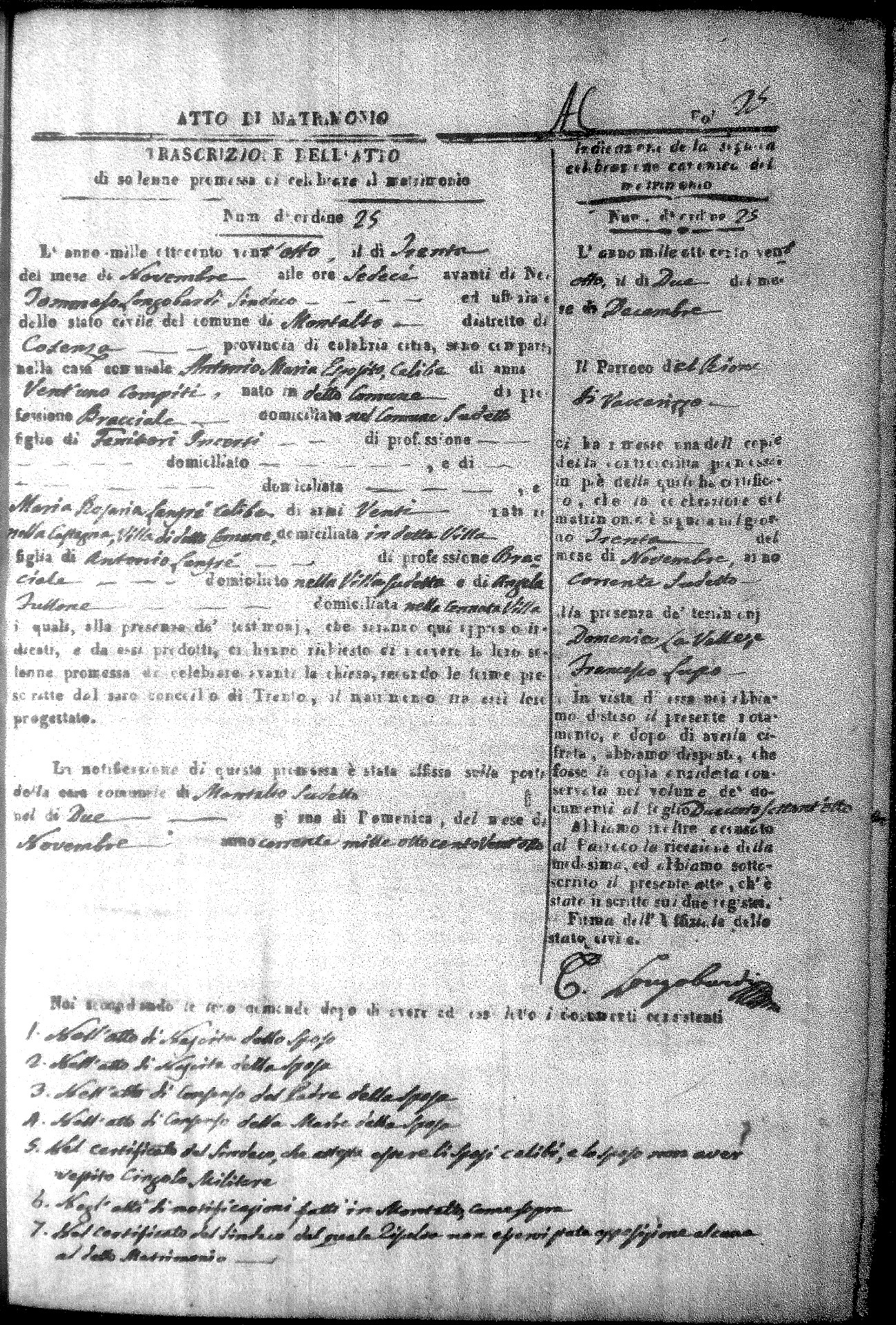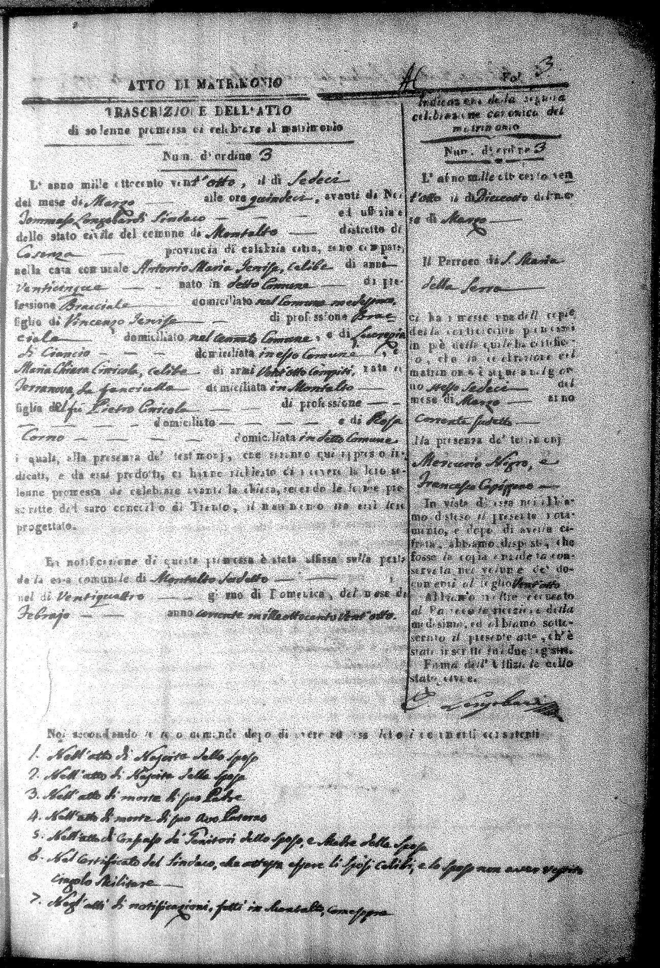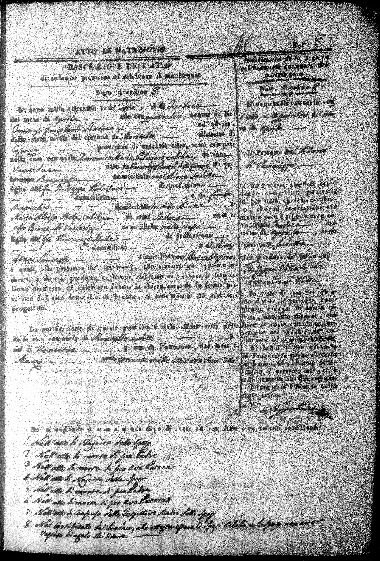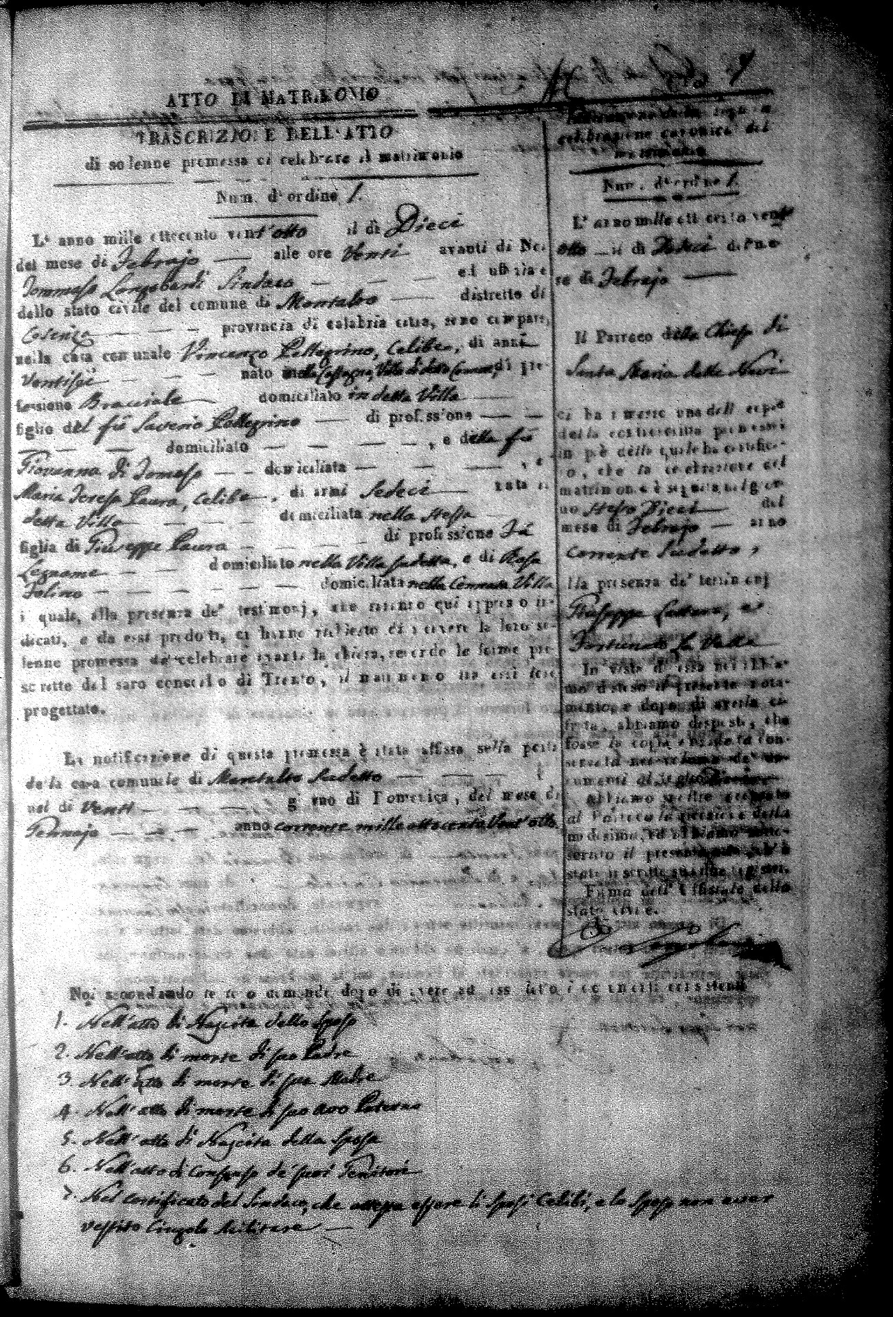 Here are the extractions for all the marriage acts in 1828 for Montalto Uffugo. For more information, click on the groom's surname to view a copy of the original document.
