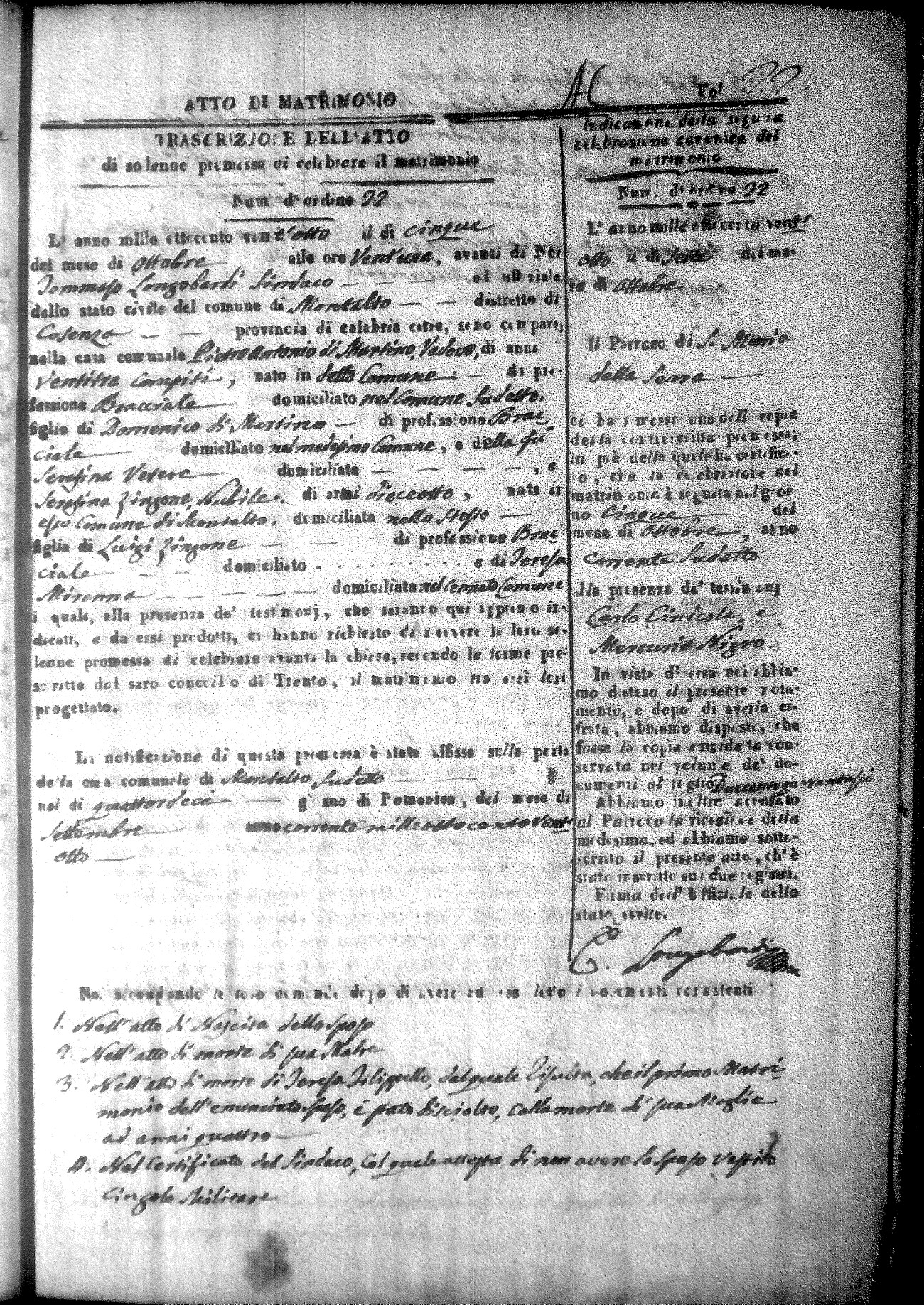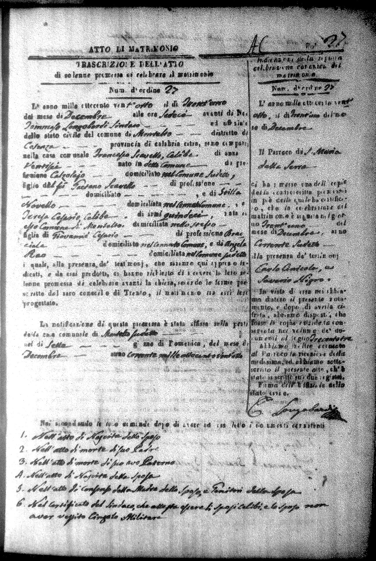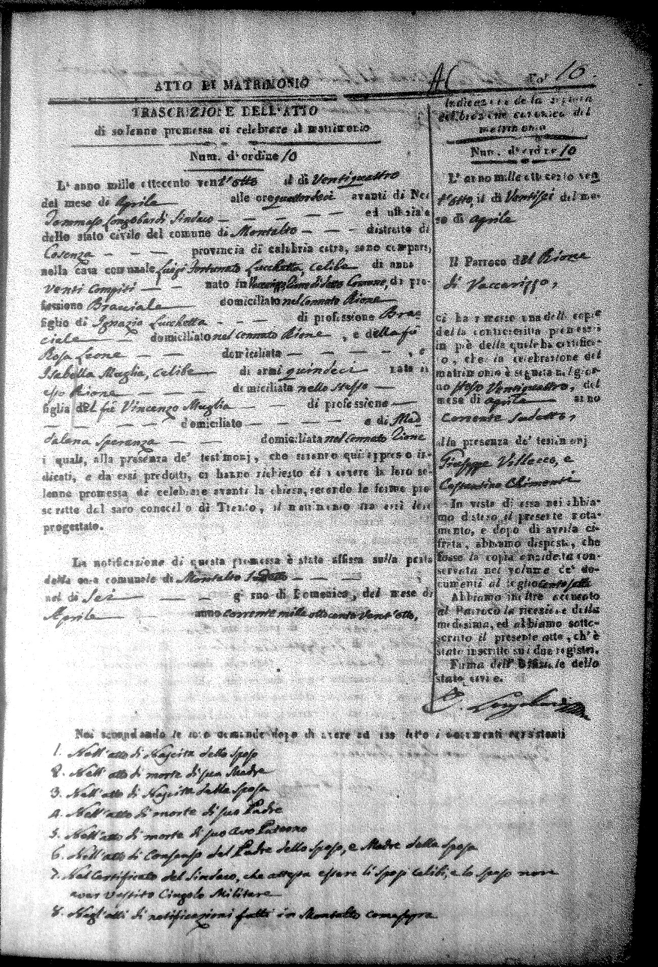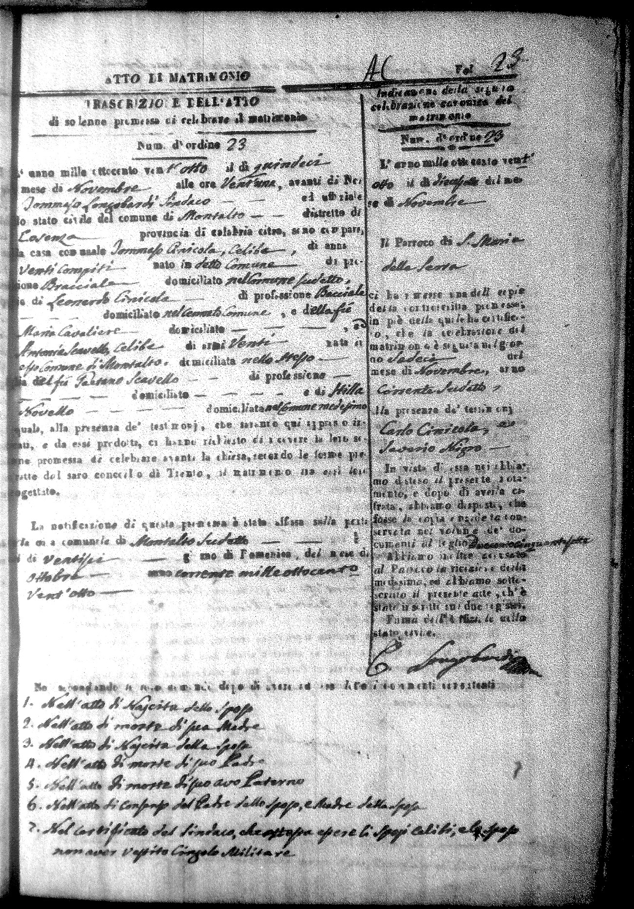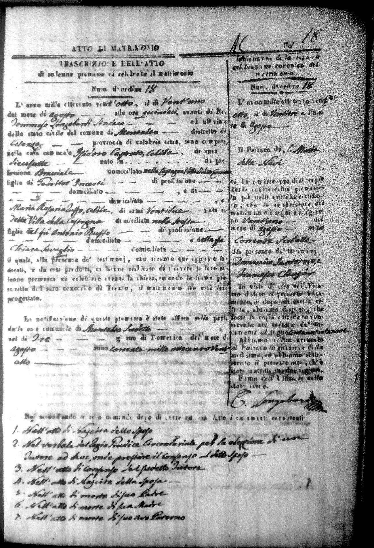 Here are the extractions for all the marriage acts in 1828 for Montalto Uffugo. For more information, click on the groom's surname to view a copy of the original document.
