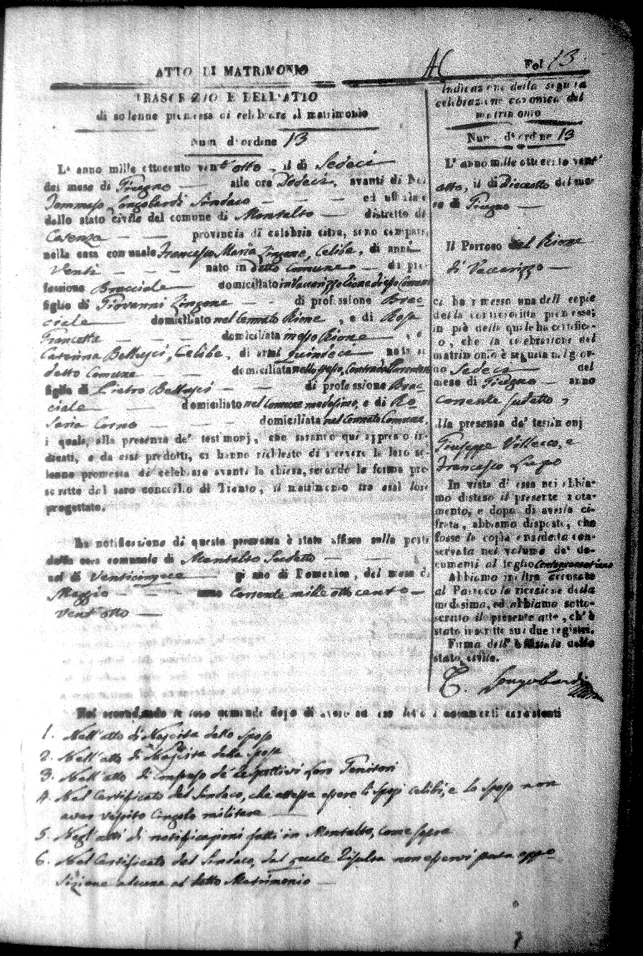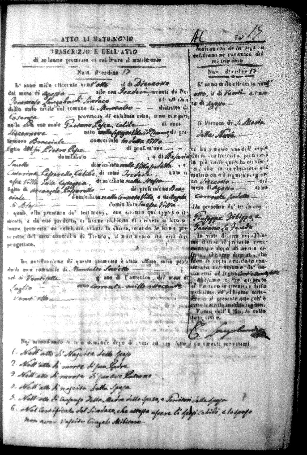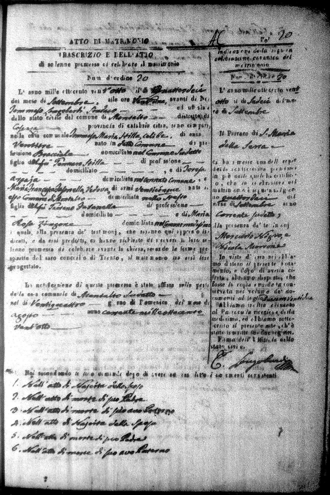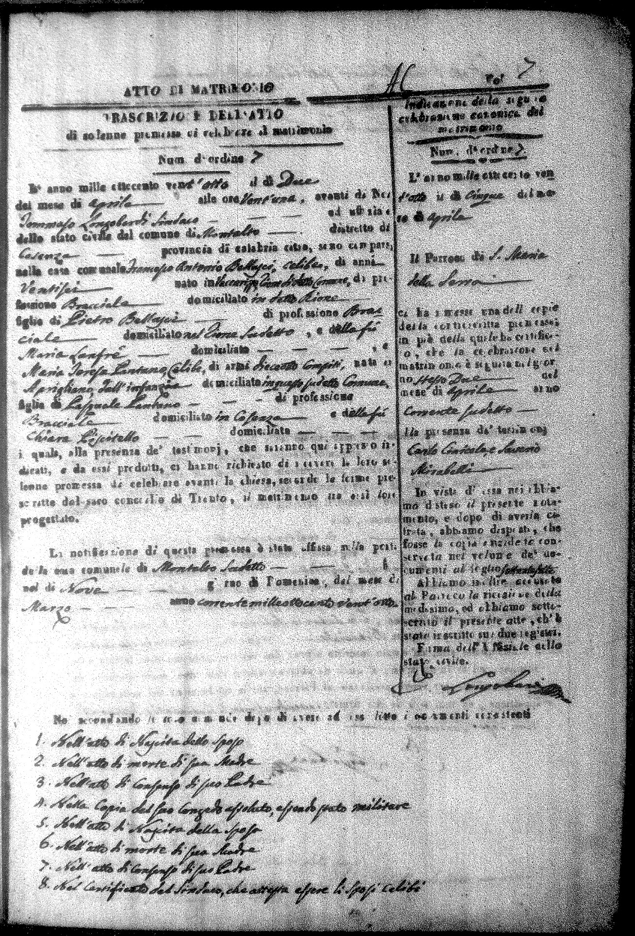 Here are the extractions for all the marriage acts in 1828 for Montalto Uffugo. For more information, click on the groom's surname to view a copy of the original document.