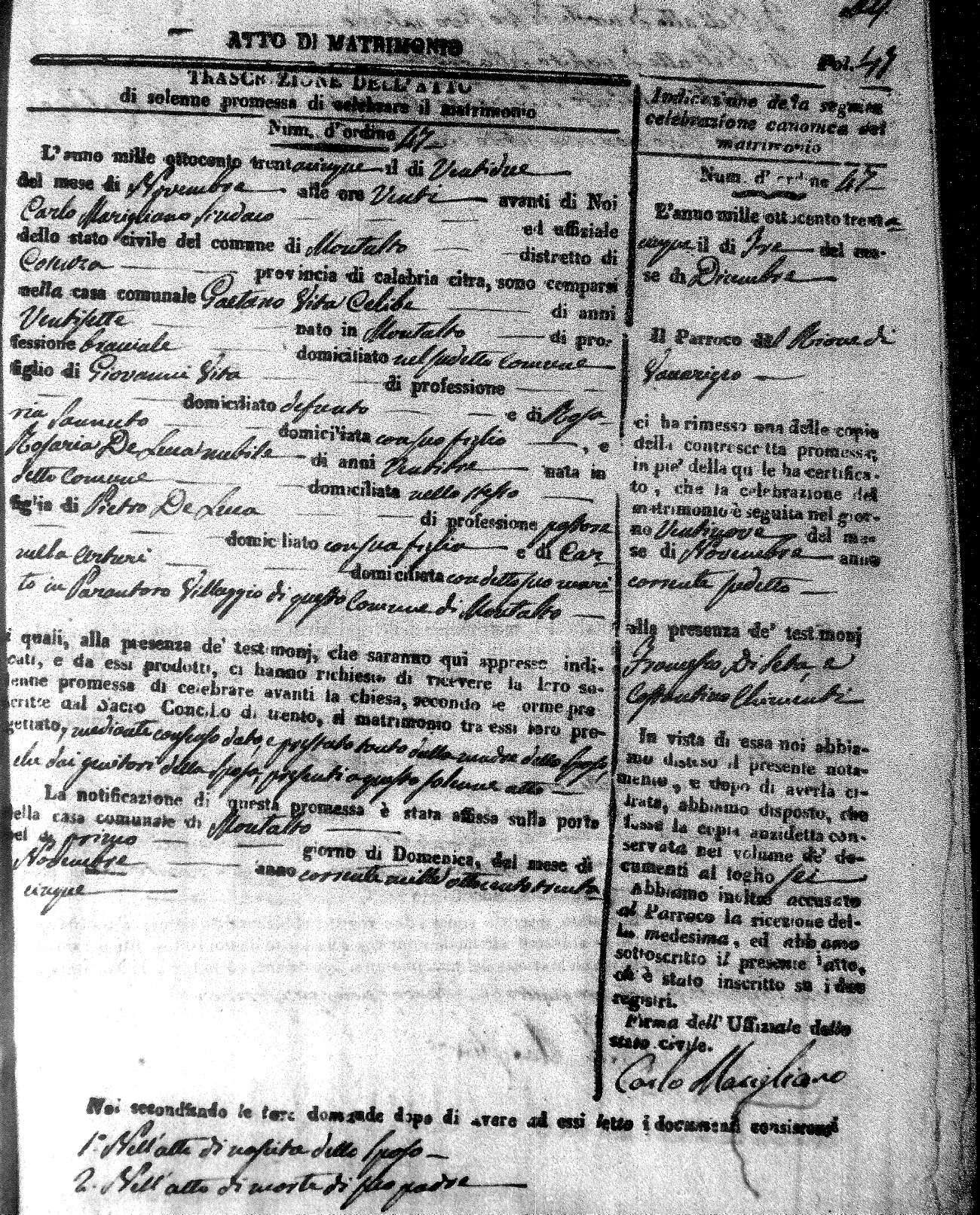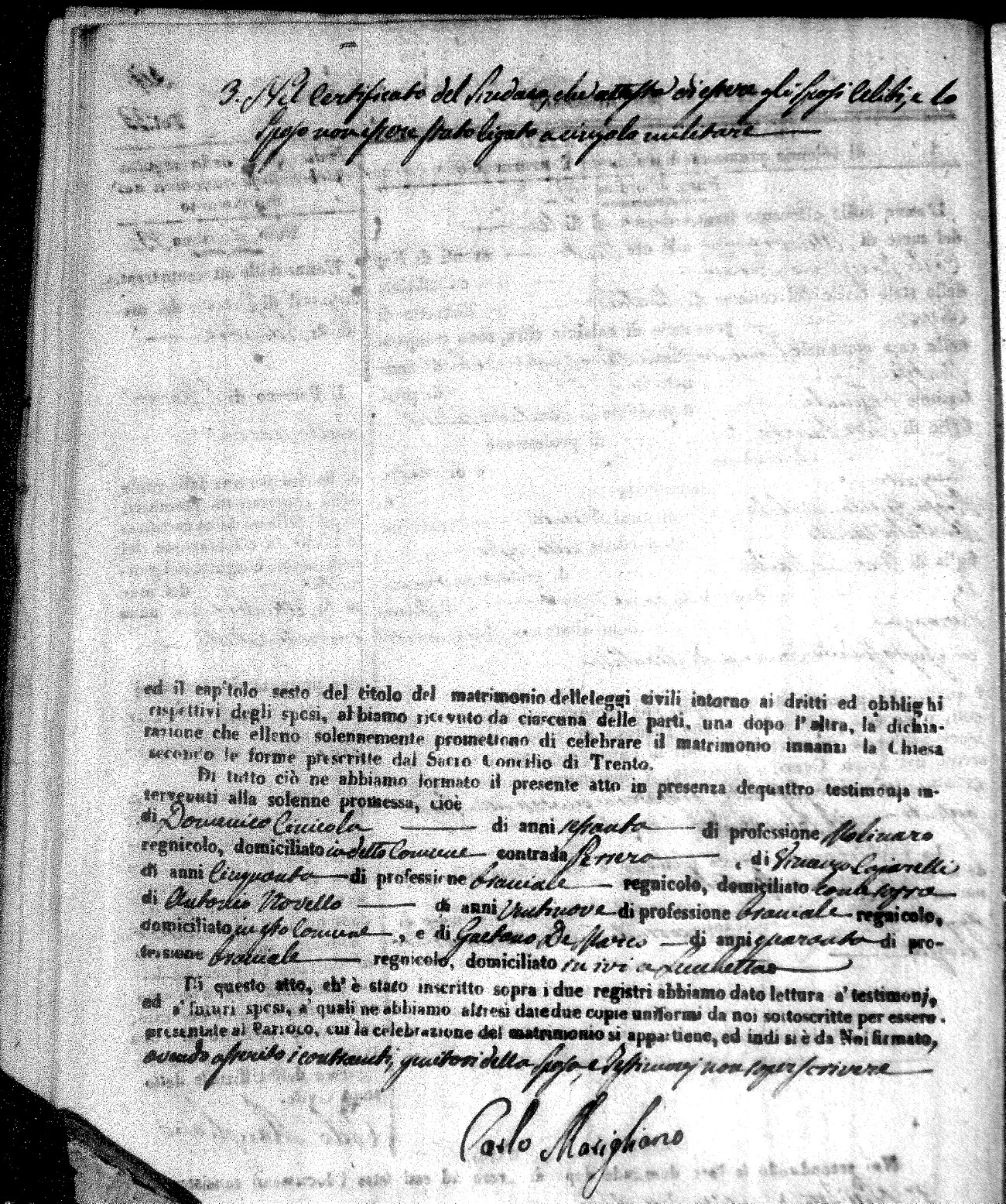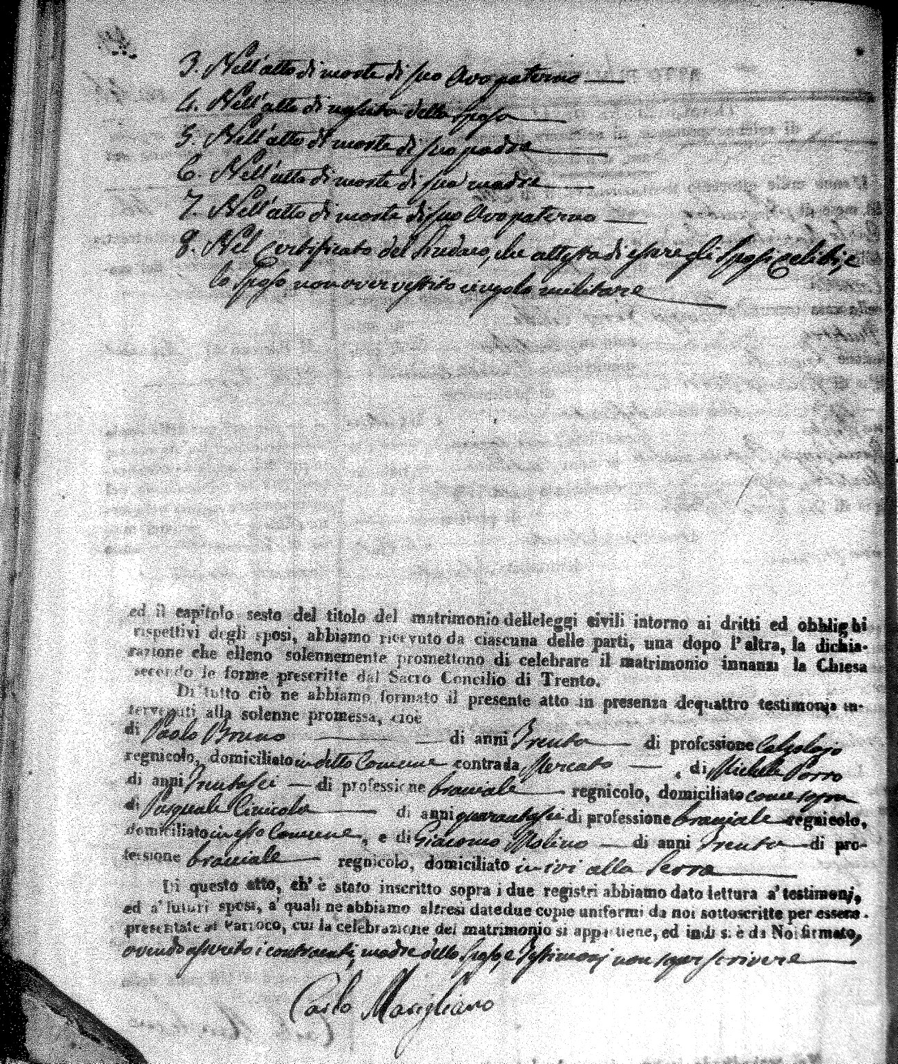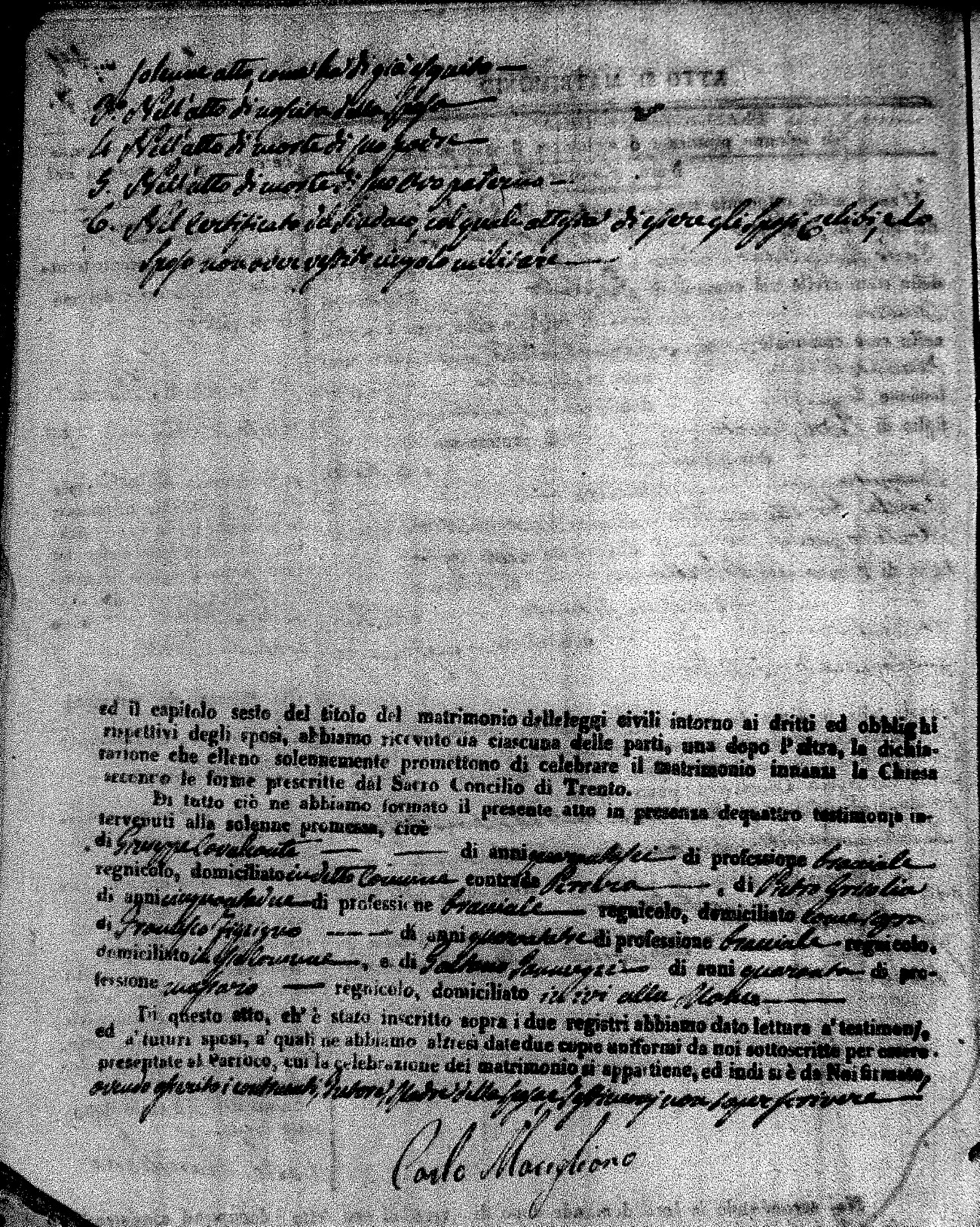 | Novello | Carmelo Maria | Francesco (fu) | Cinicola | Carmela | Savaglio | Anna Maria | Giovanni (fu) | Cinicola | Isabella (fu) | Russo | Giacomo Michele | Francesco (fu) | Arpaja | Angela | Ruffolo | Mariantonia | Pietro | Buscio | Rosaria (fu) | Cinicola | Carlo Giuseppe | Domenico | DeRose | Rosa | Zingone | Maria Teresa | Ignazio | Bisceglio | Anna Nuccia (fu) |