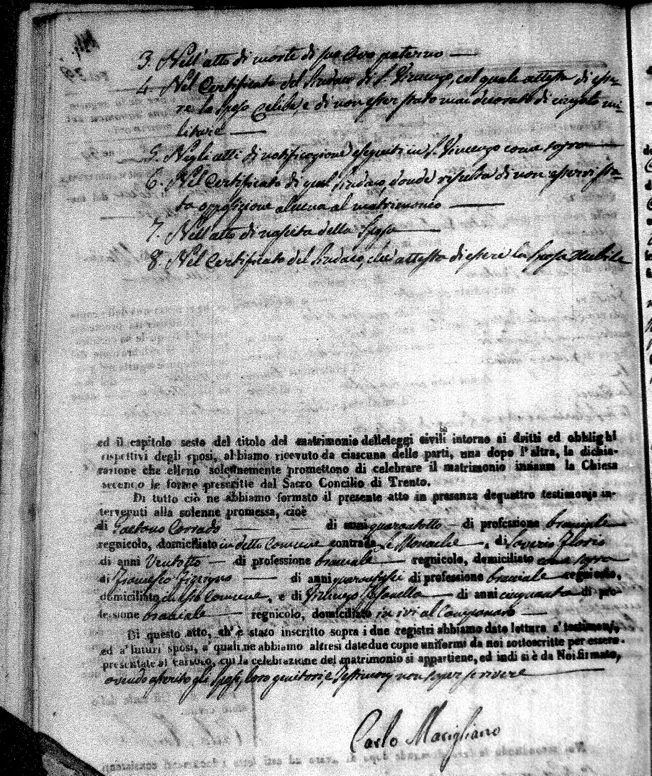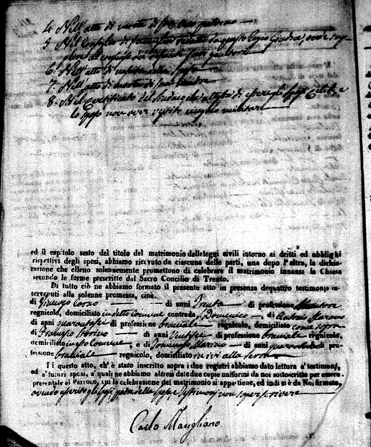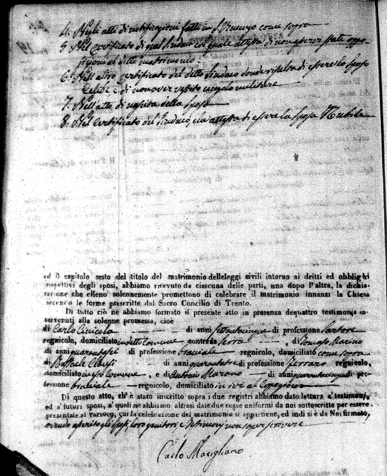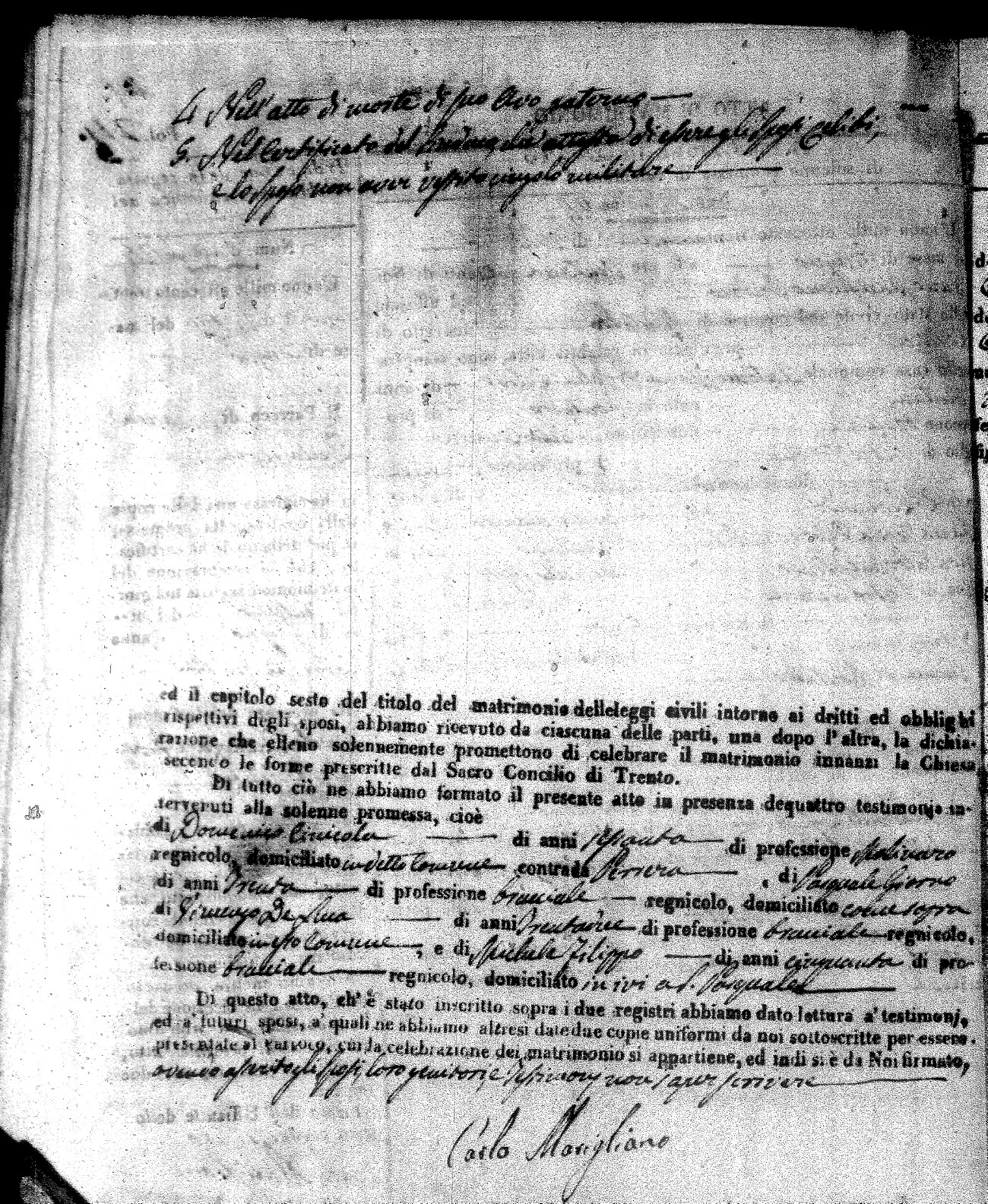 | Novello | Carmelo Maria | Francesco (fu) | Cinicola | Carmela | Savaglio | Anna Maria | Giovanni (fu) | Cinicola | Isabella (fu) | Russo | Giacomo Michele | Francesco (fu) | Arpaja | Angela | Ruffolo | Mariantonia | Pietro | Buscio | Rosaria (fu) | Cinicola | Carlo Giuseppe | Domenico | DeRose | Rosa | Zingone | Maria Teresa | Ignazio | Bisceglio | Anna Nuccia (fu) |