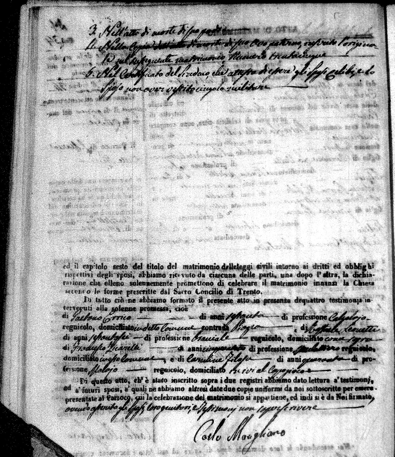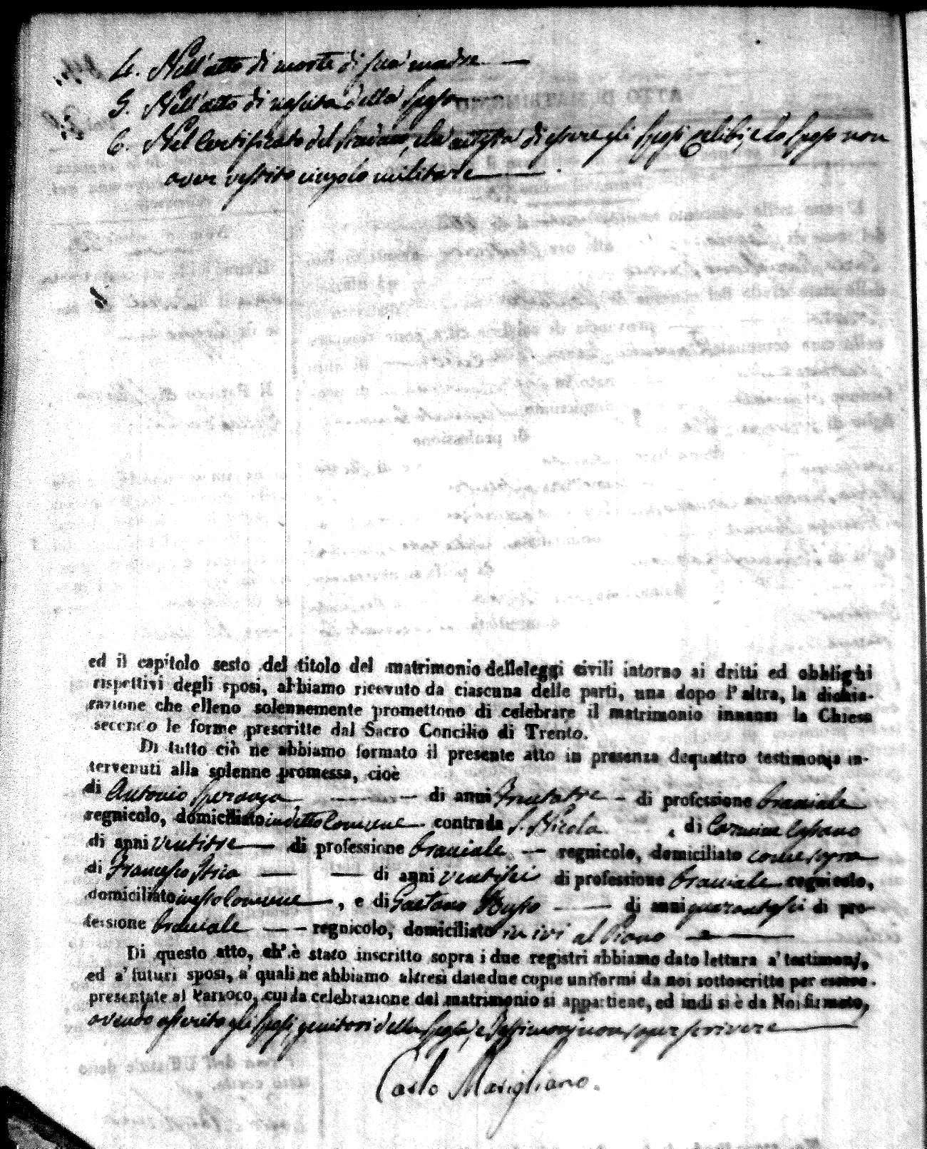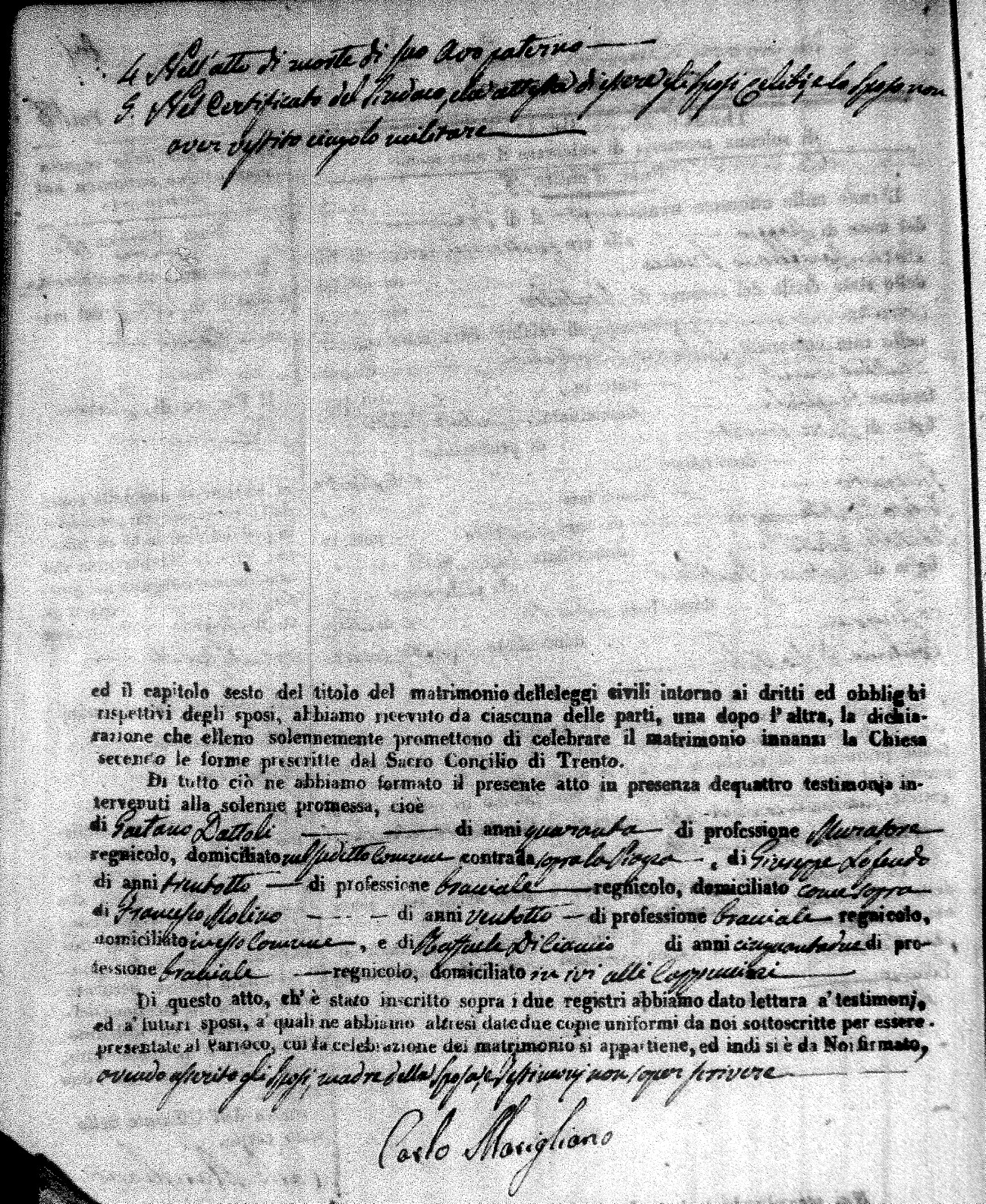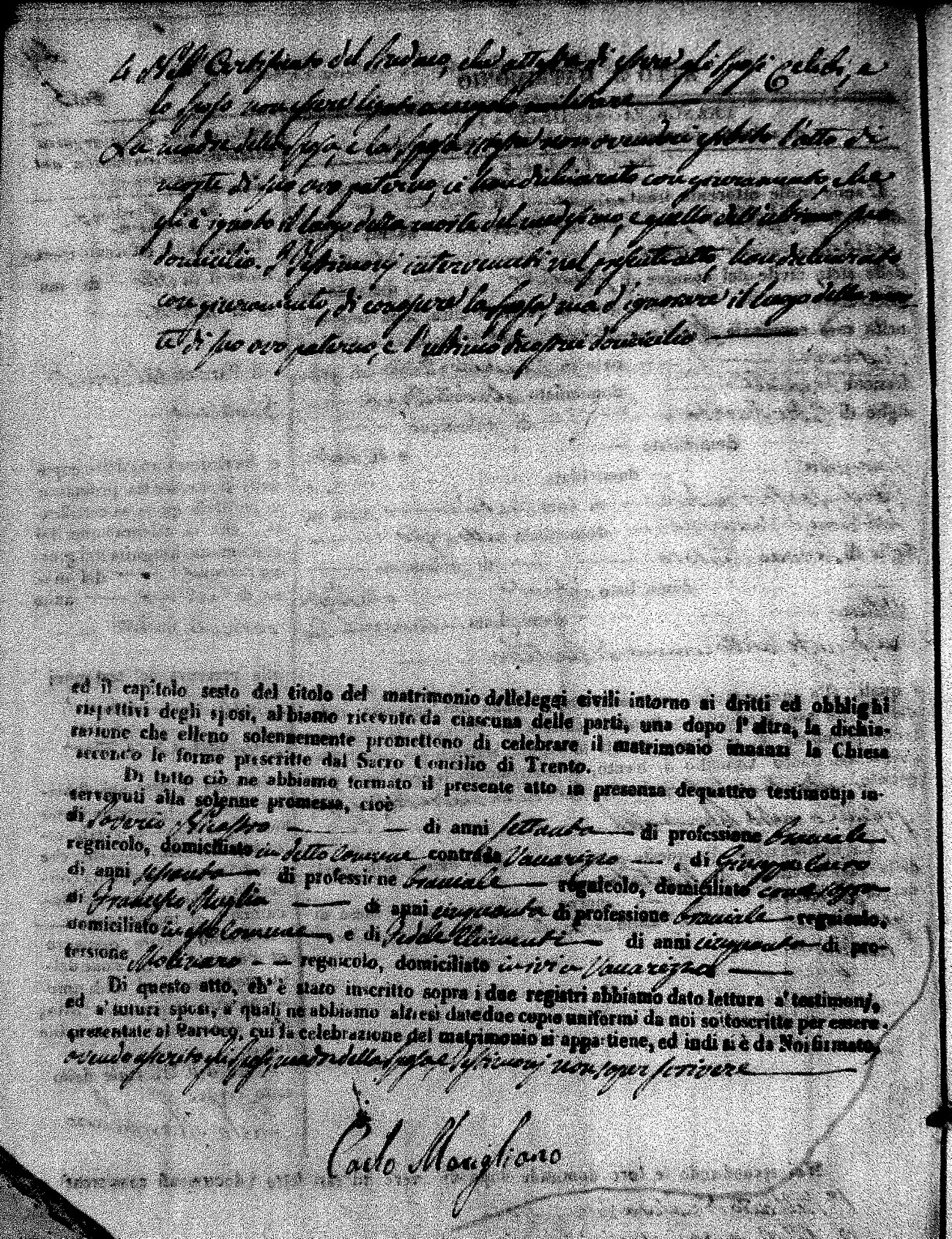 | Mogliono | Vincenzo Maria | Antonio (fu) | Caparro | Chiara | Salerno | Chiara Maria | Pasquale (fu) | Savaglio | Rosa |