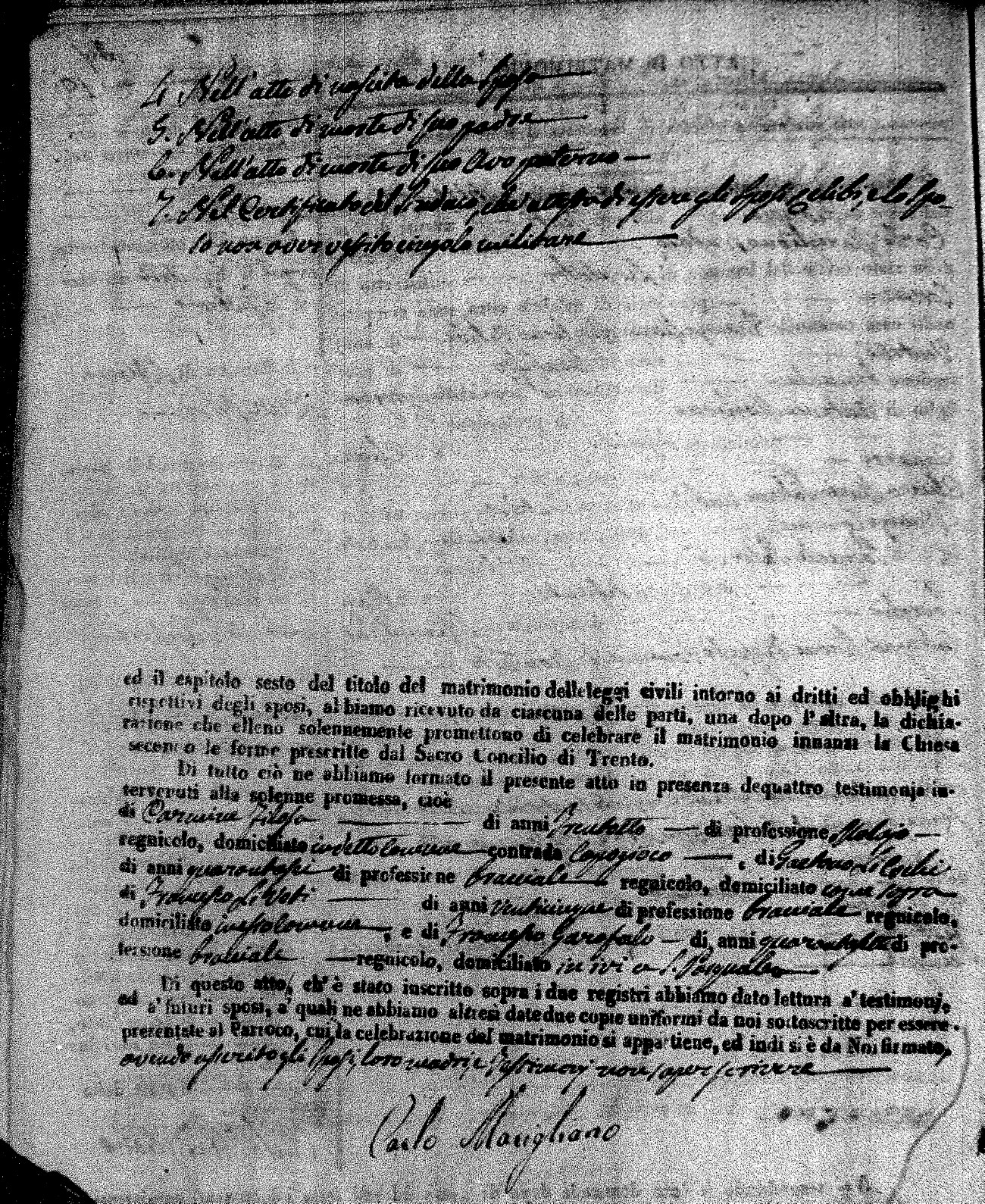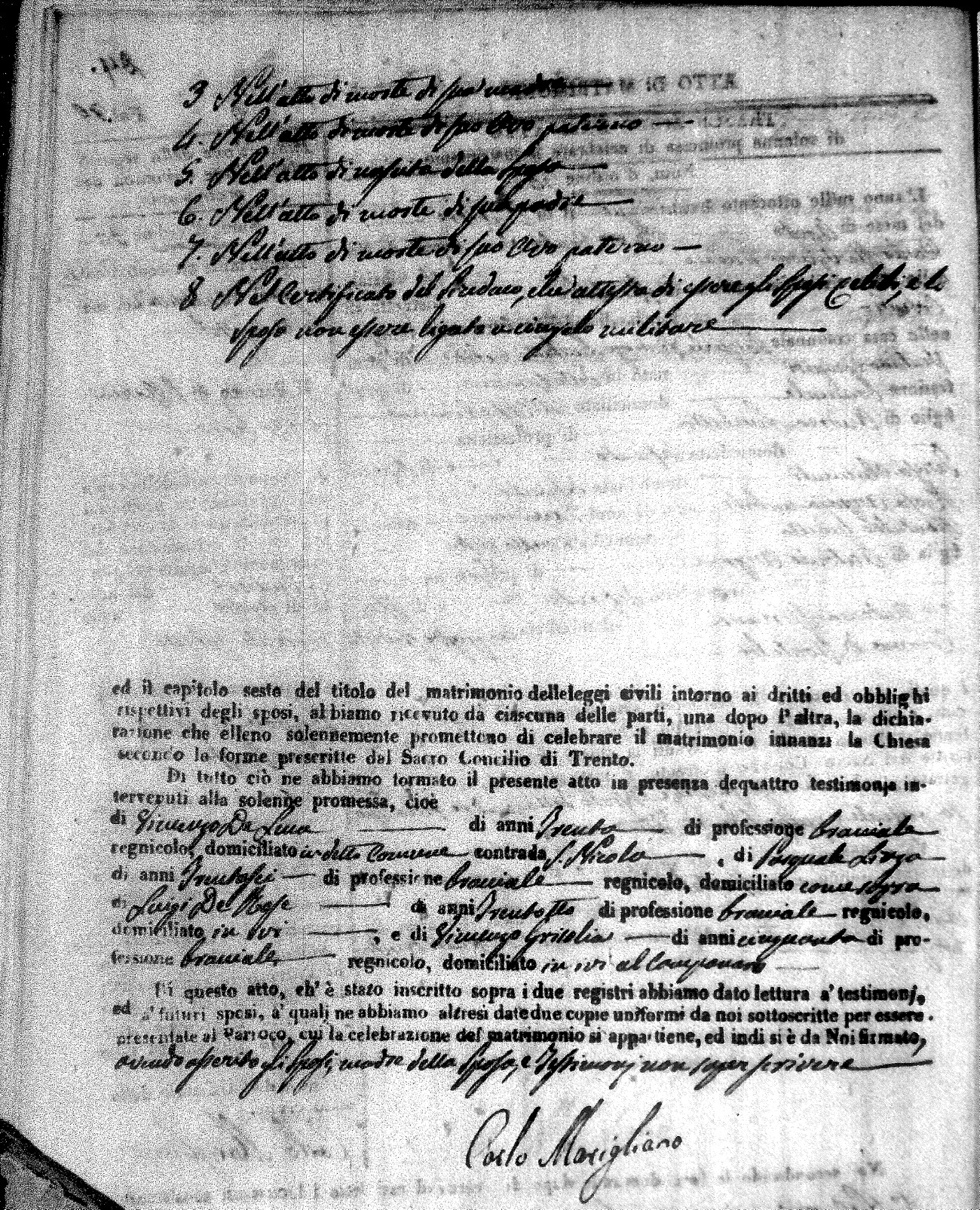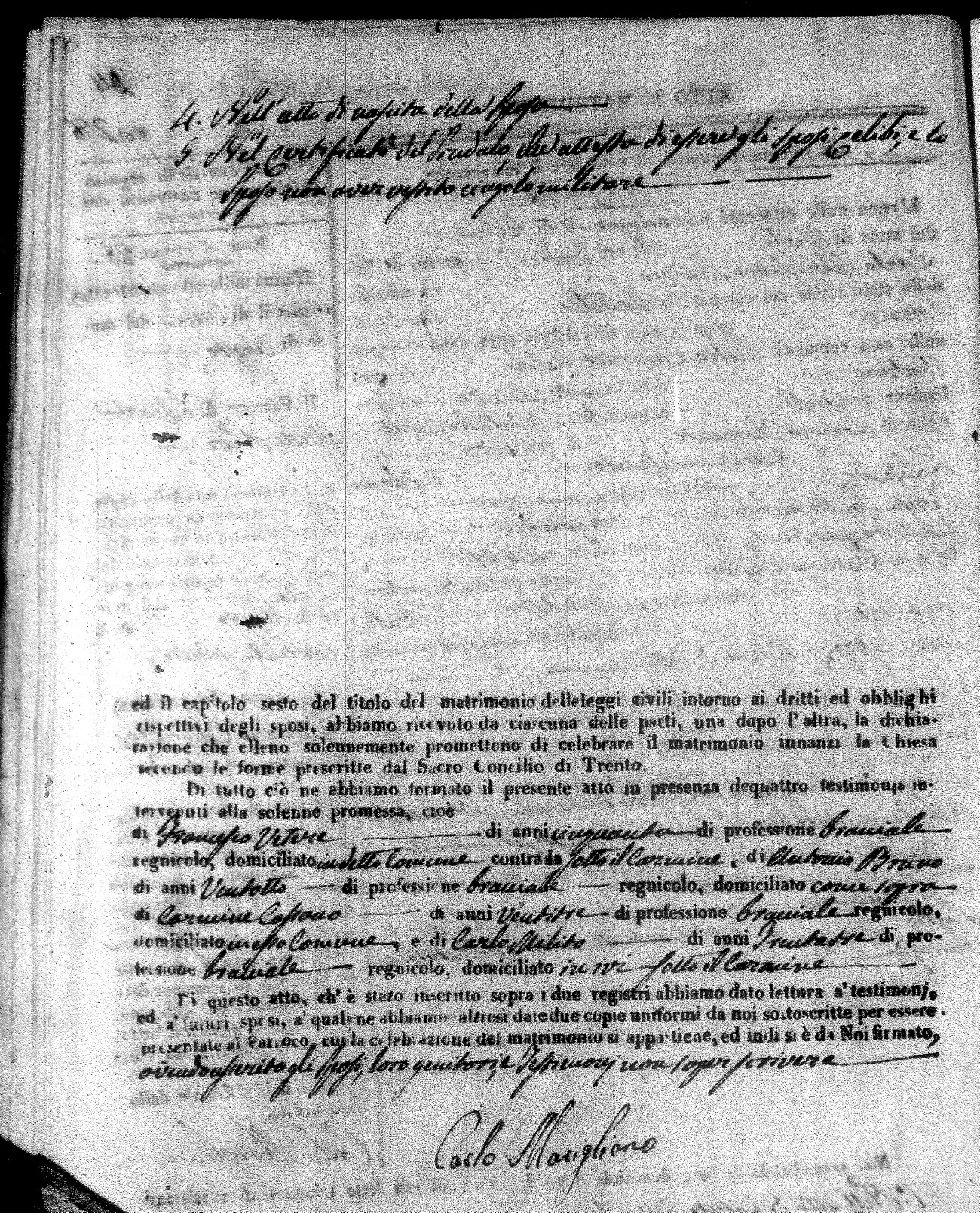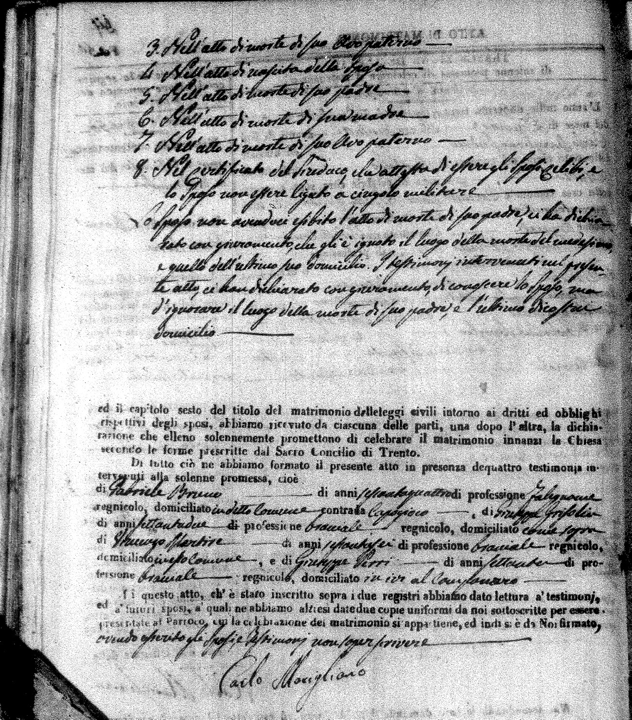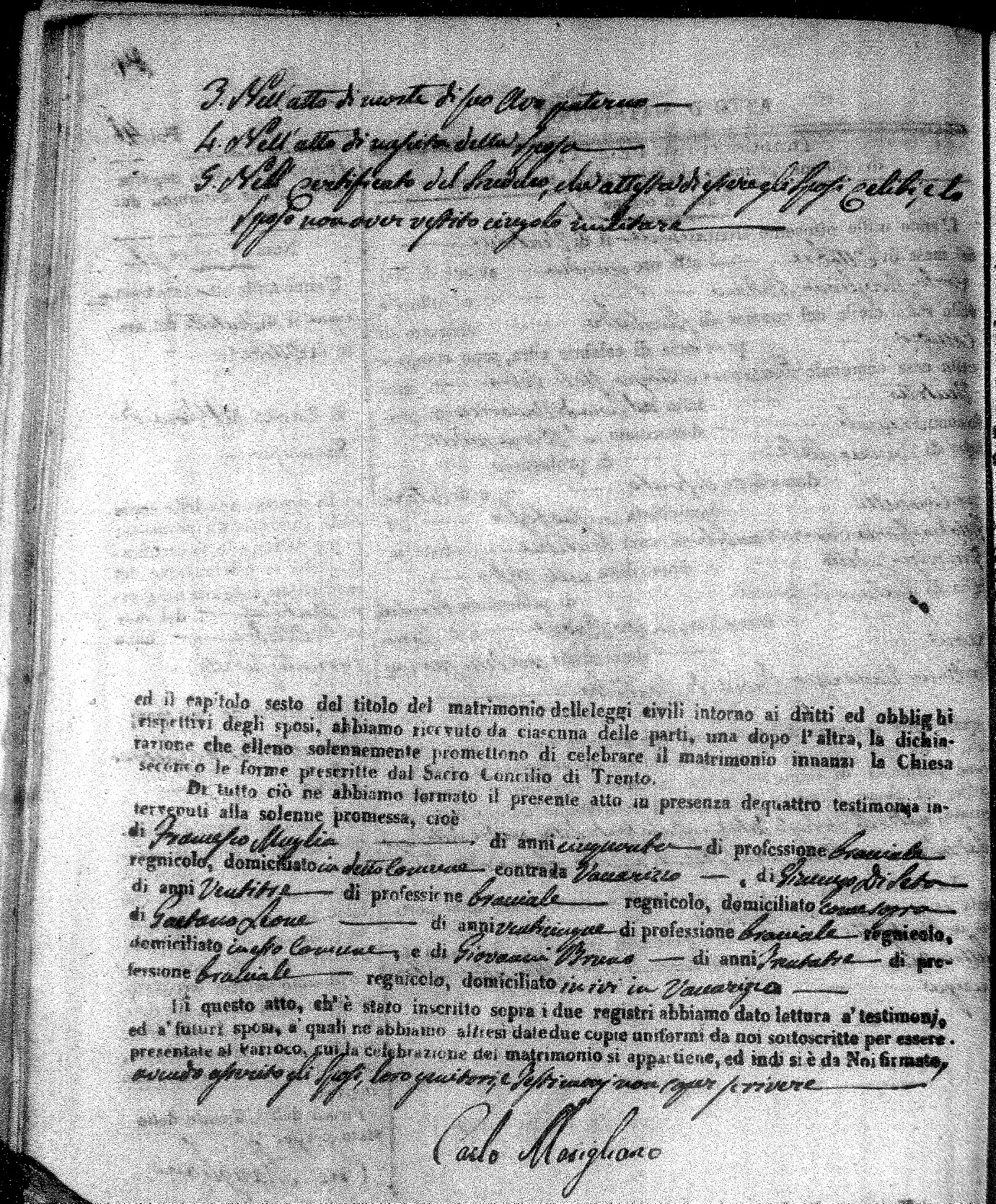 | Mogliono | Vincenzo Maria | Antonio (fu) | Caparro | Chiara | Salerno | Chiara Maria | Pasquale (fu) | Savaglio | Rosa |