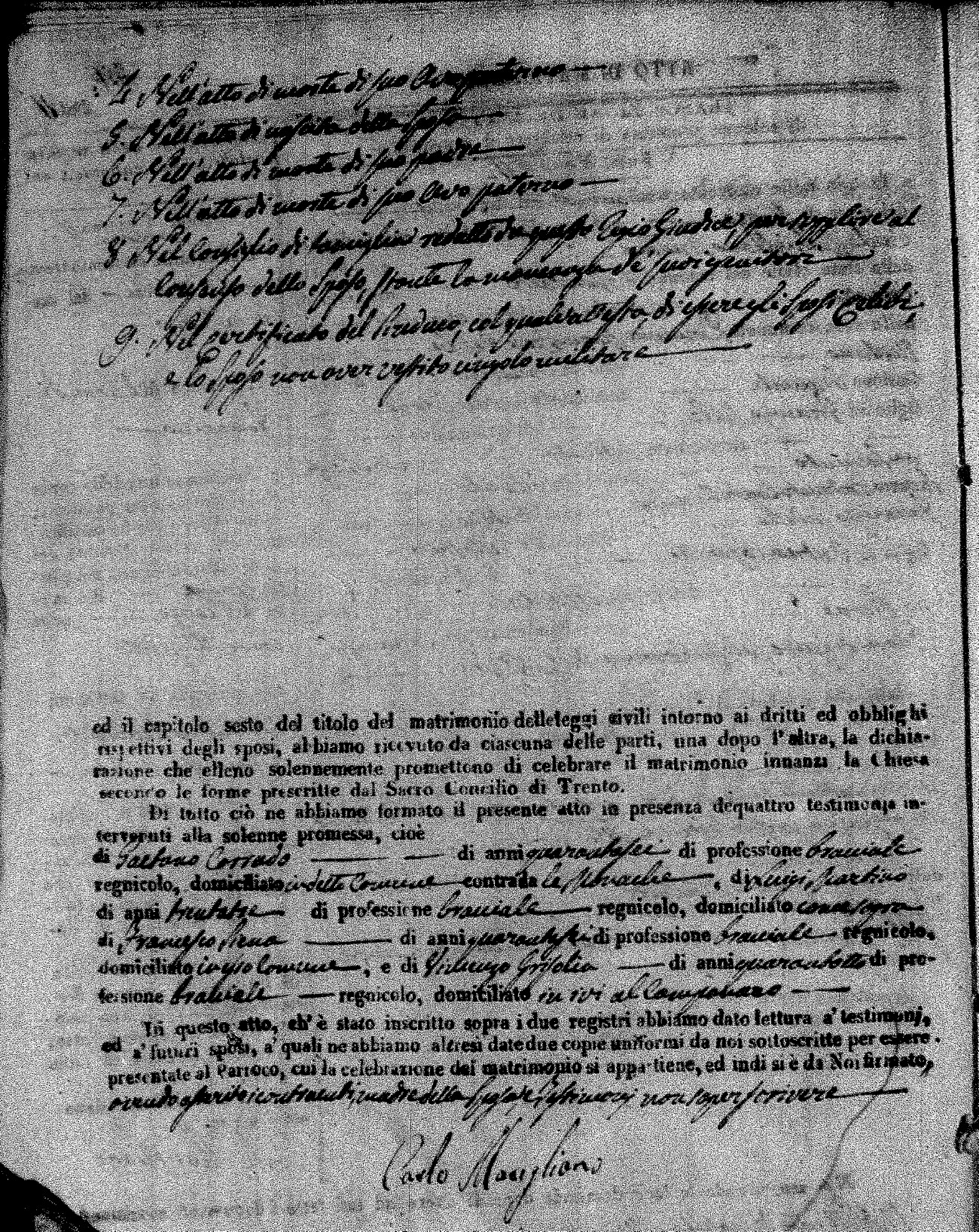 | Corrado | Francesco | Giocchino (fu) | Cavlionte | Maria | Viviano | Ursola Teresa | Vincenzo (fu) | Paladino | Rosa (fu) |