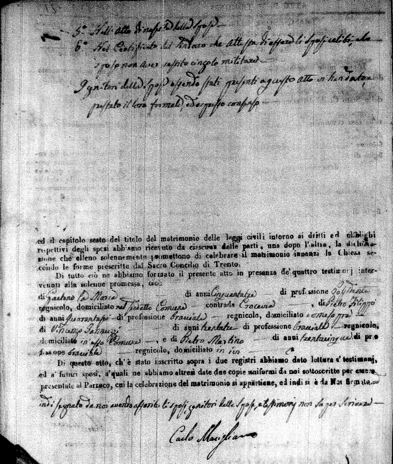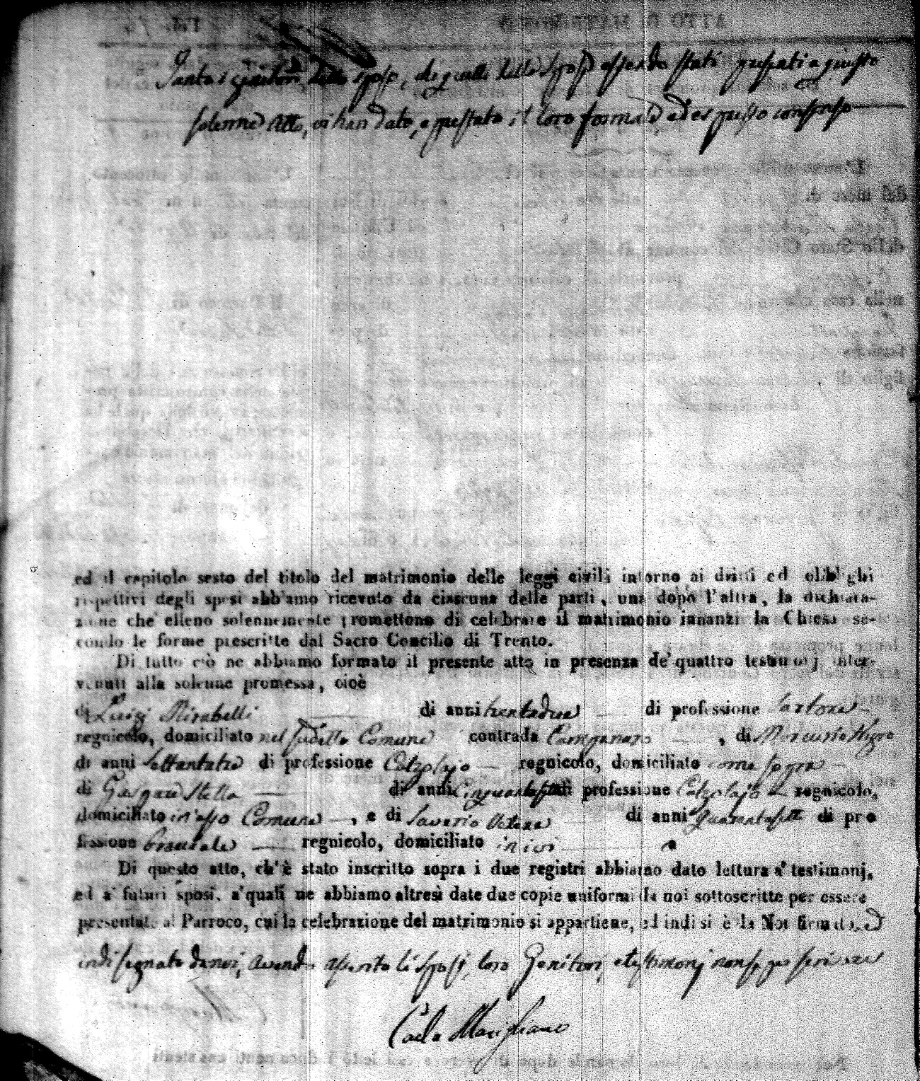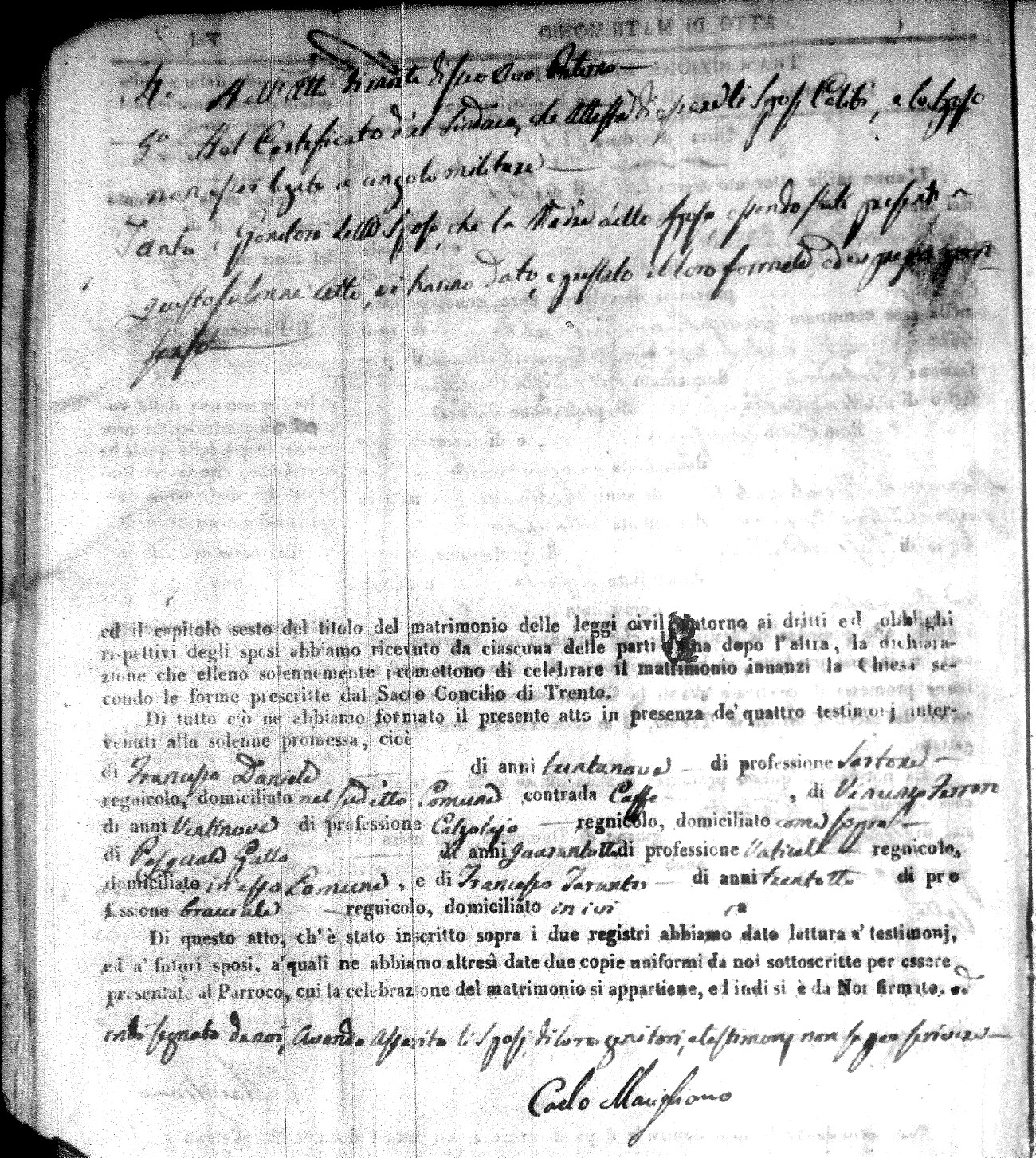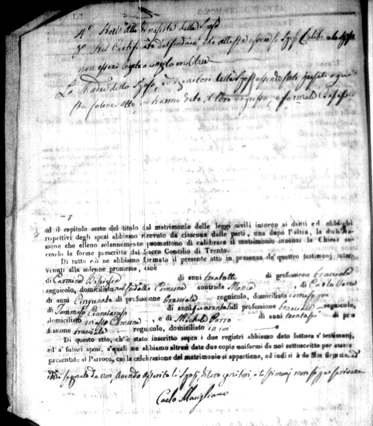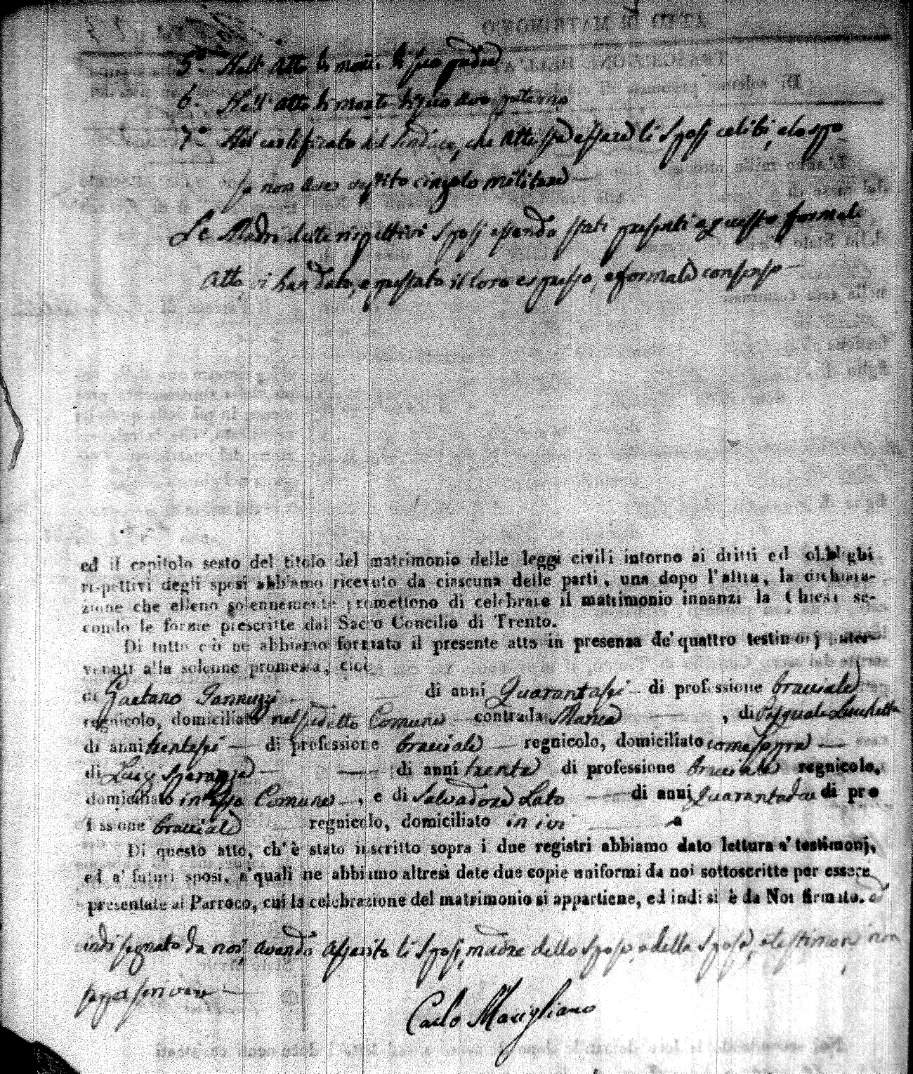 | Caraniolo | Matteo Benedetto Salvatore | Ferdinandp (fu) | Alimena | Maria Gaetana | Alimena | Anna Maria | Antonio (fu) | Barano | Violanta |