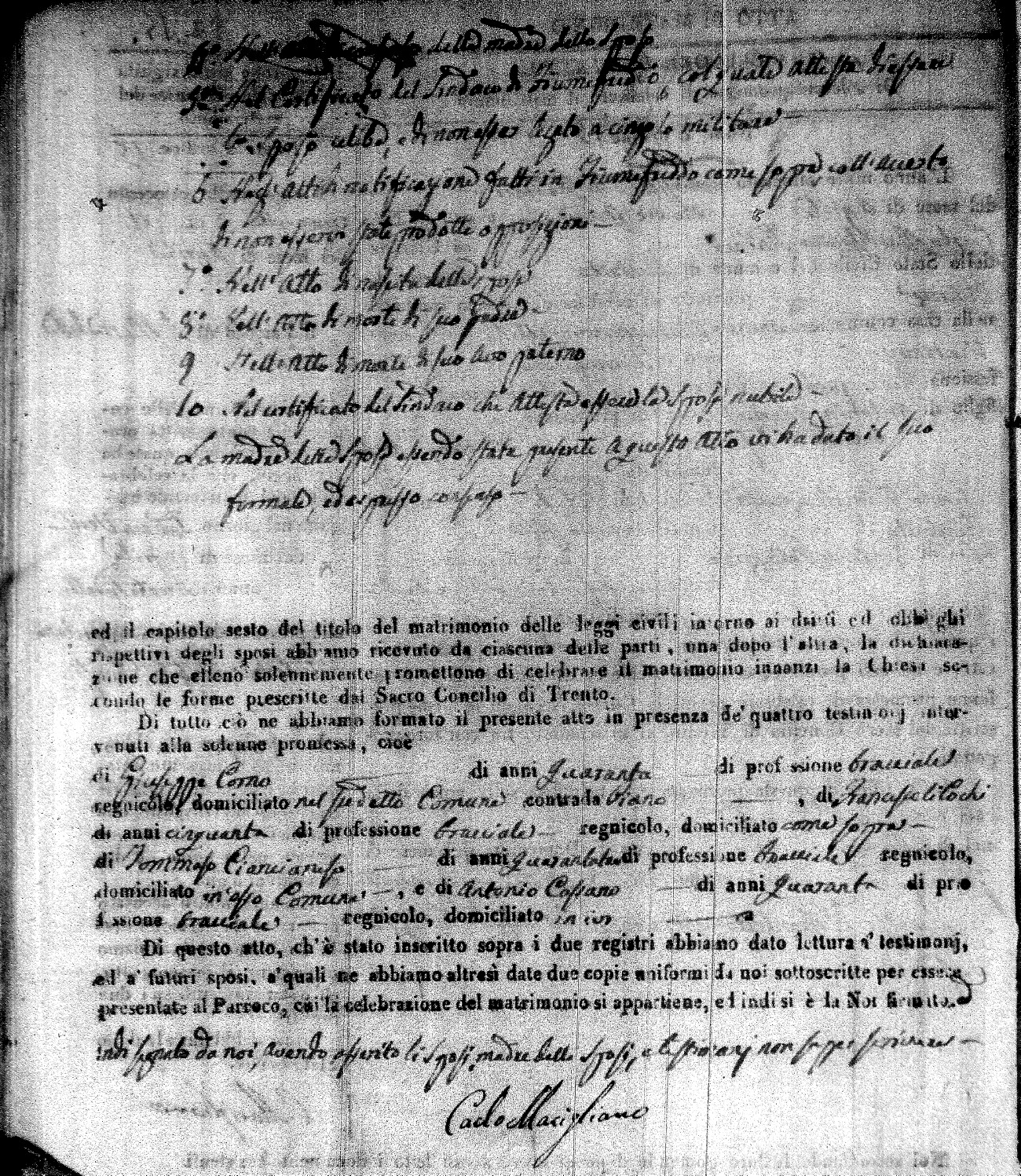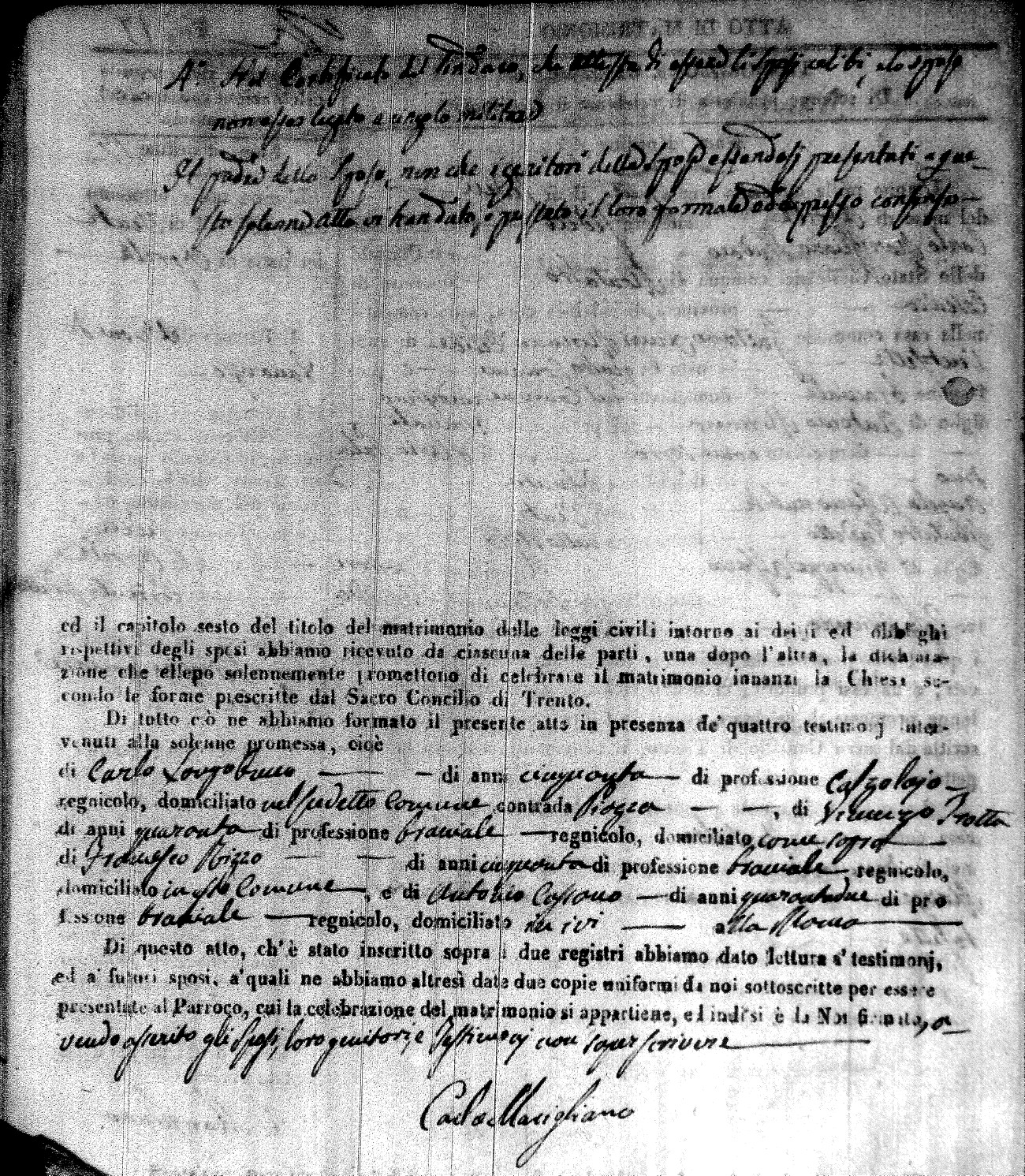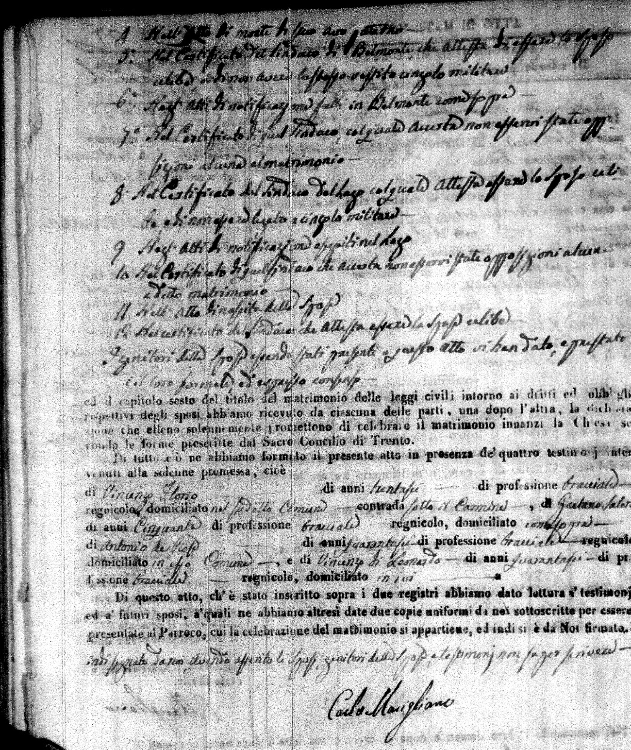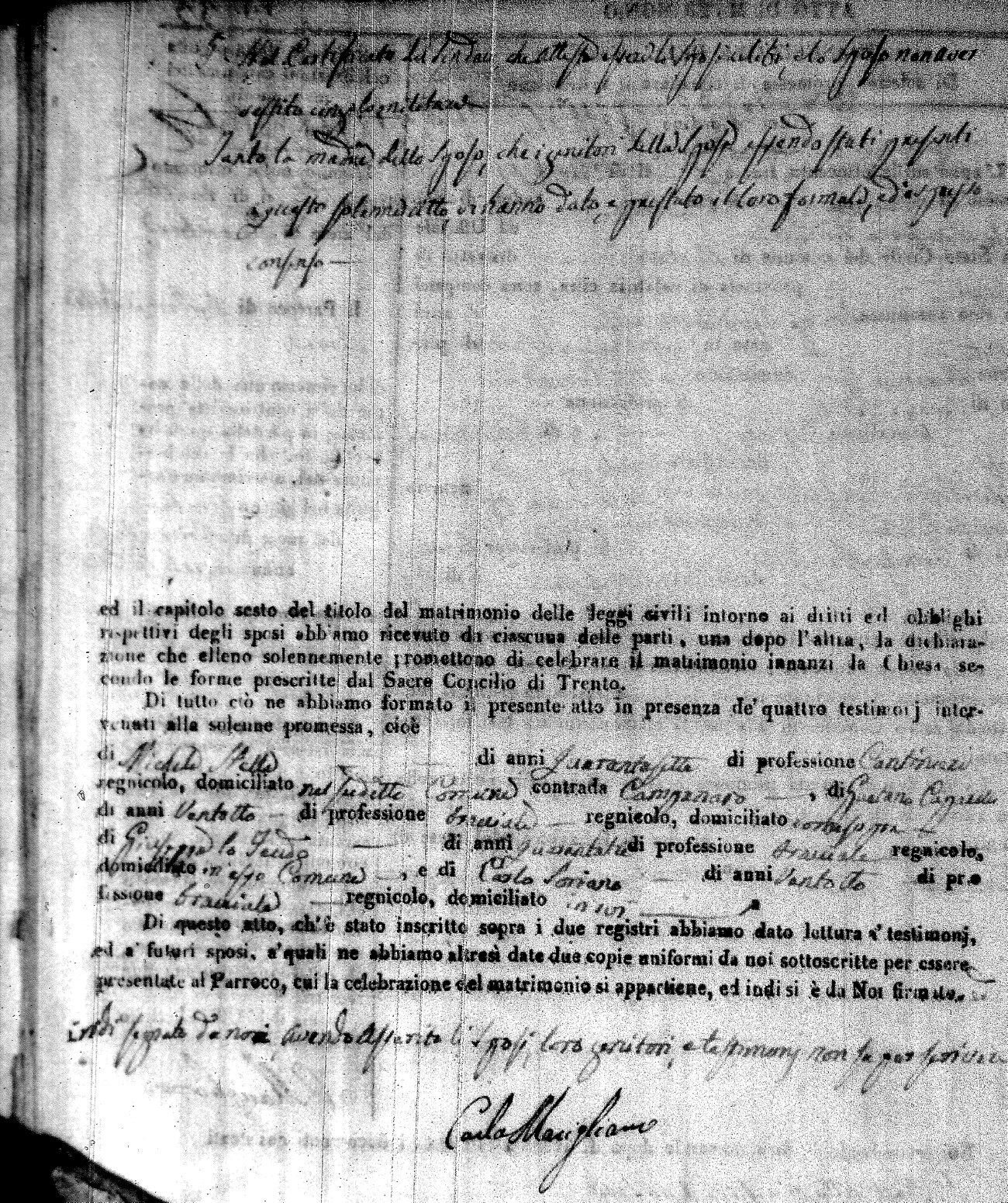 | Caraniolo | Matteo Benedetto Salvatore | Ferdinandp (fu) | Alimena | Maria Gaetana | Alimena | Anna Maria | Antonio (fu) | Barano | Violanta |