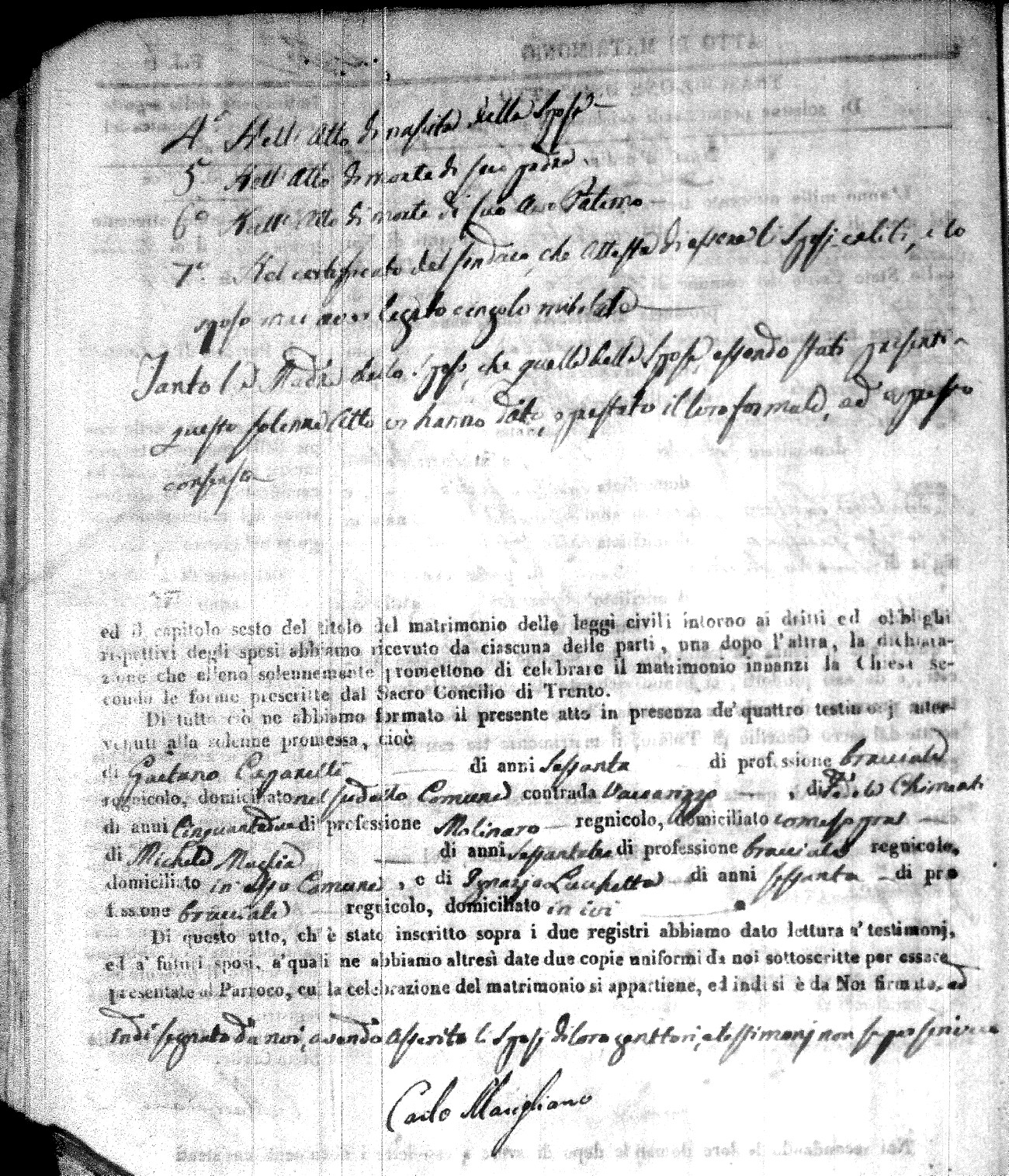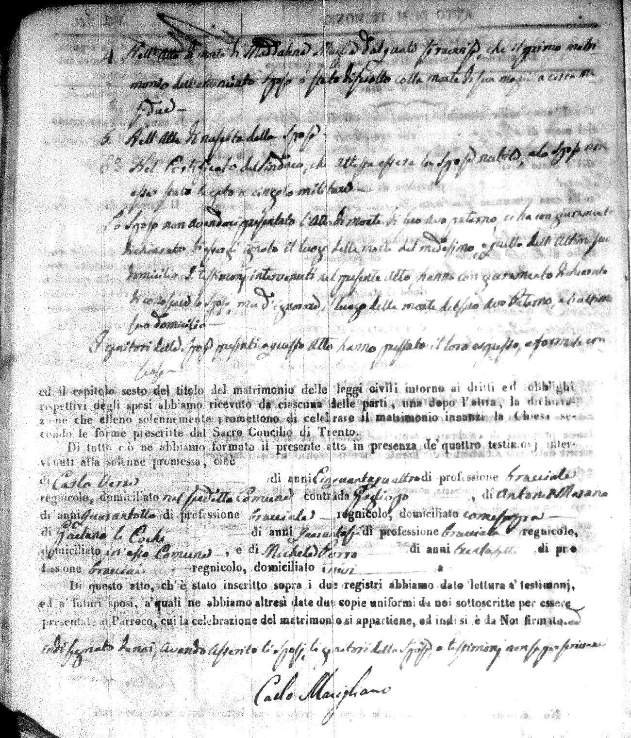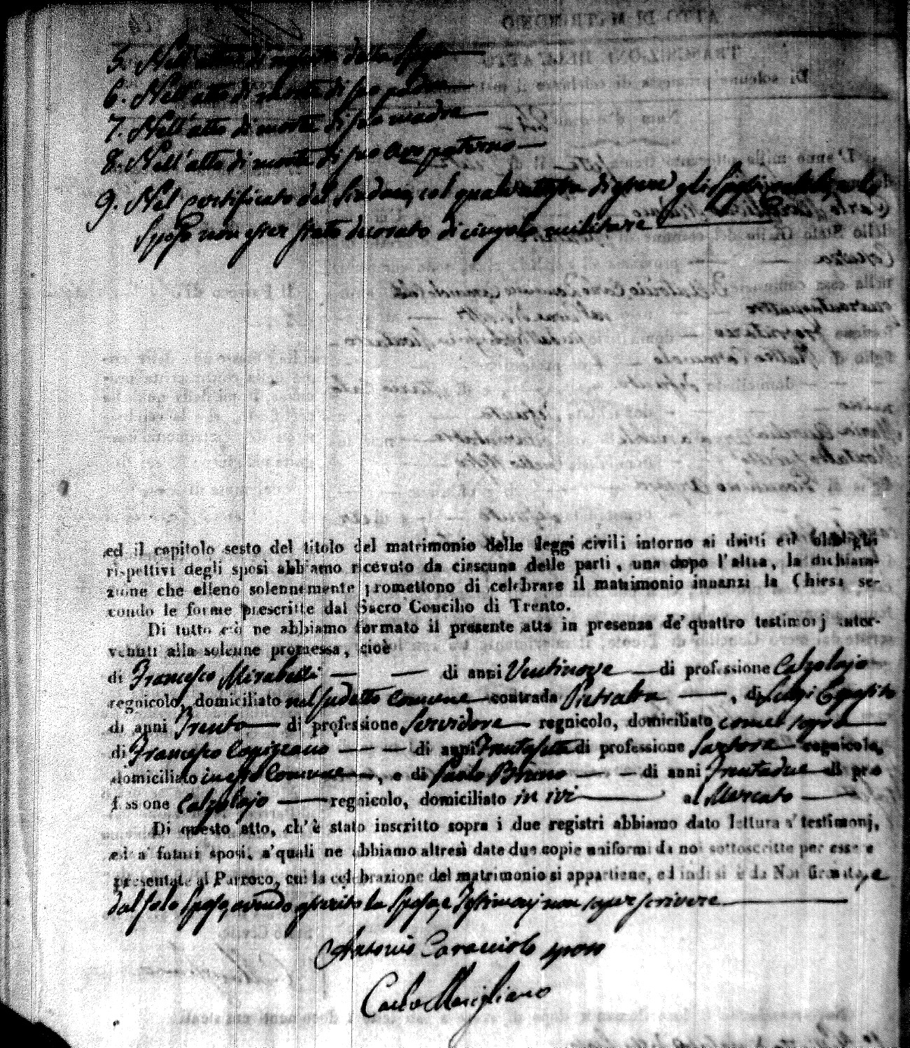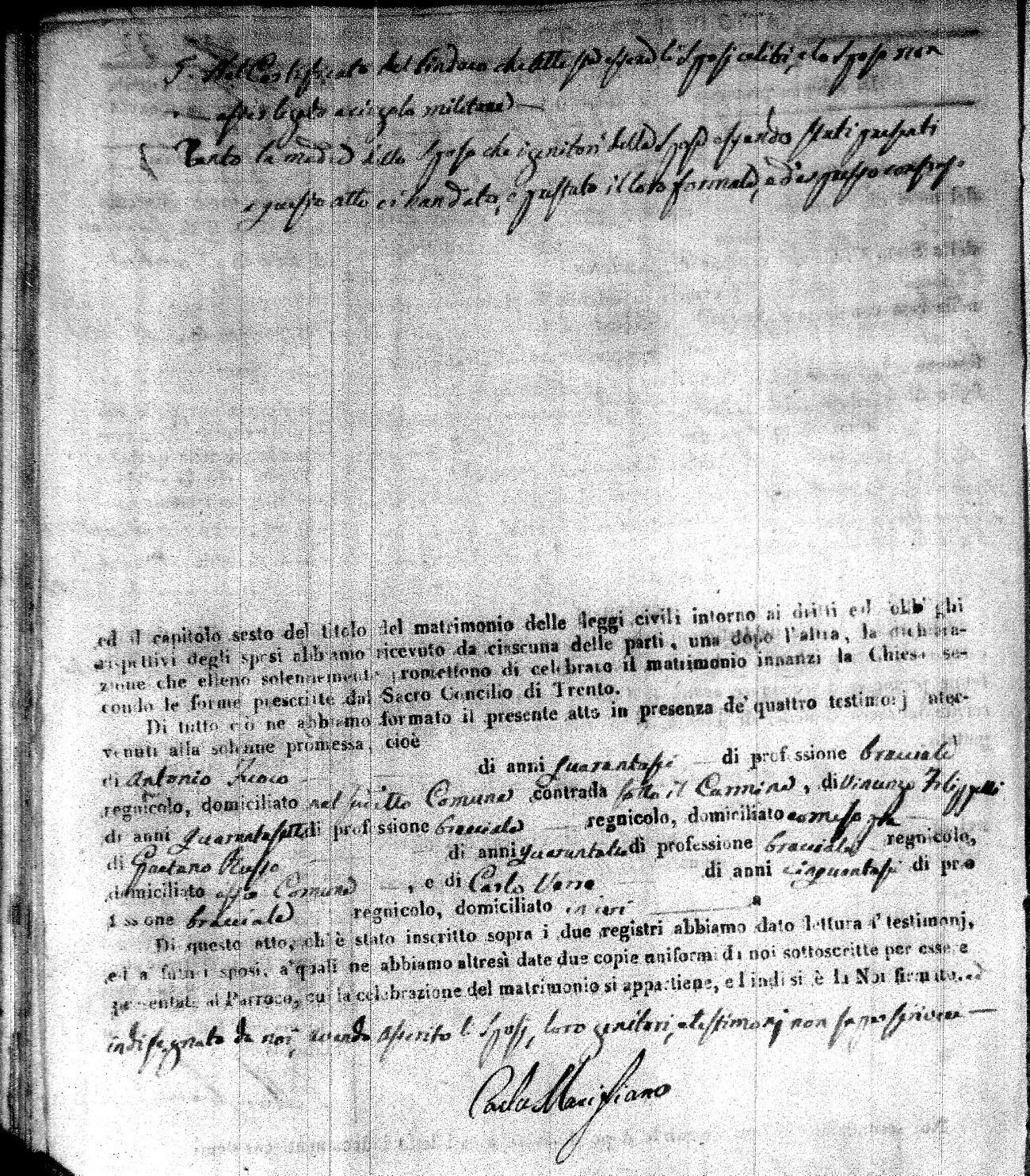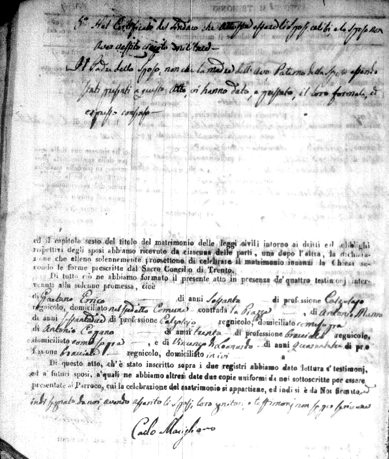 | Caraniolo | Matteo Benedetto Salvatore | Ferdinandp (fu) | Alimena | Maria Gaetana | Alimena | Anna Maria | Antonio (fu) | Barano | Violanta |