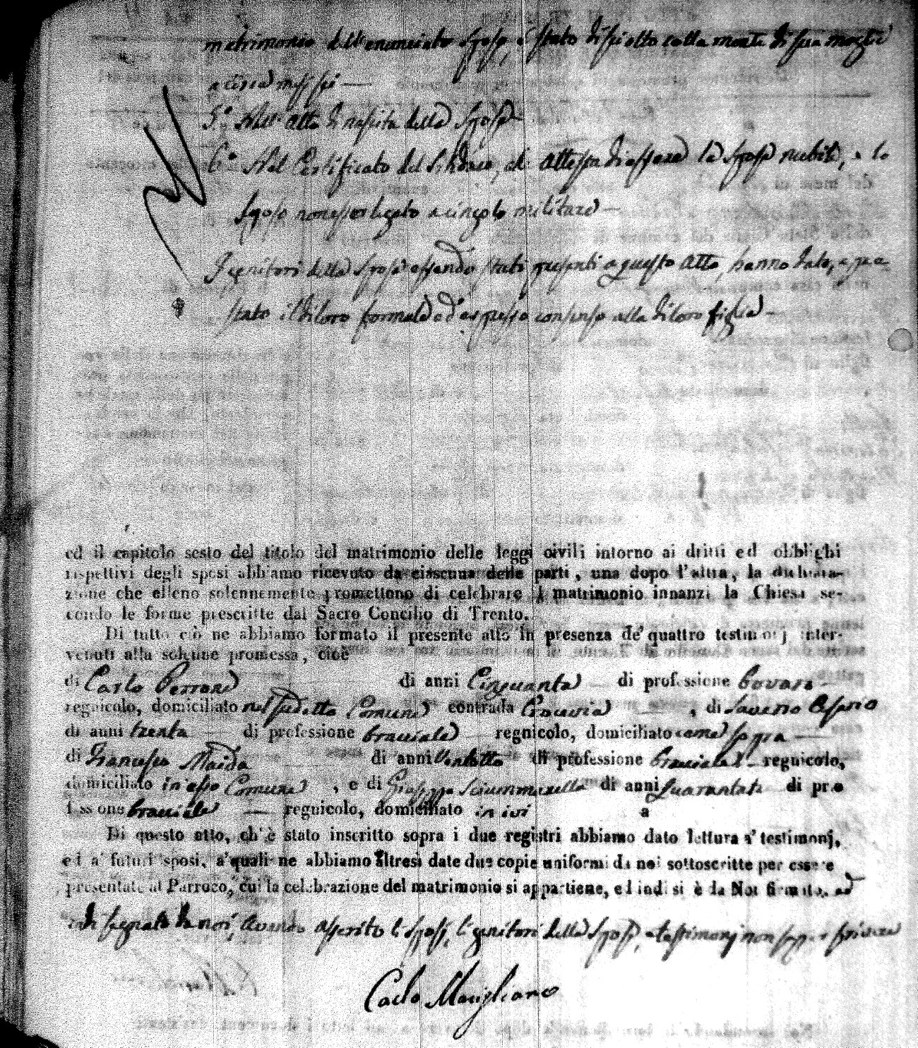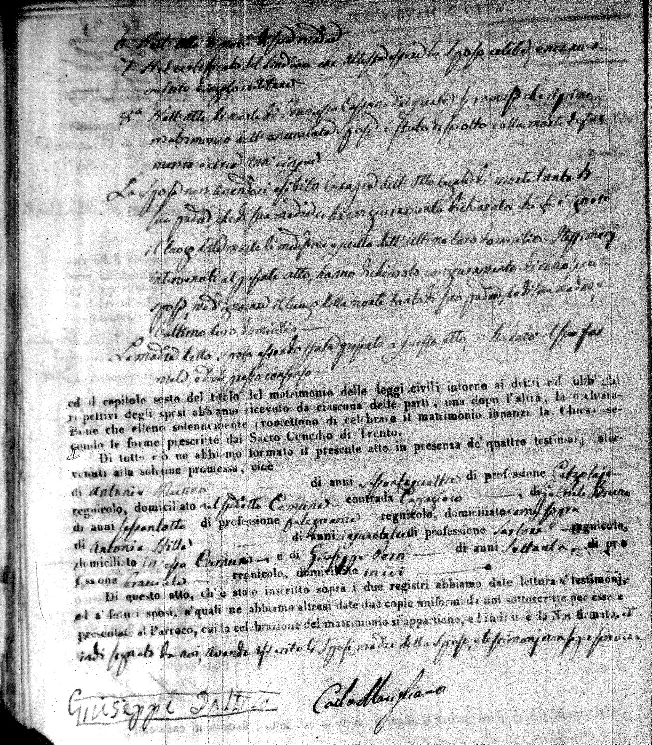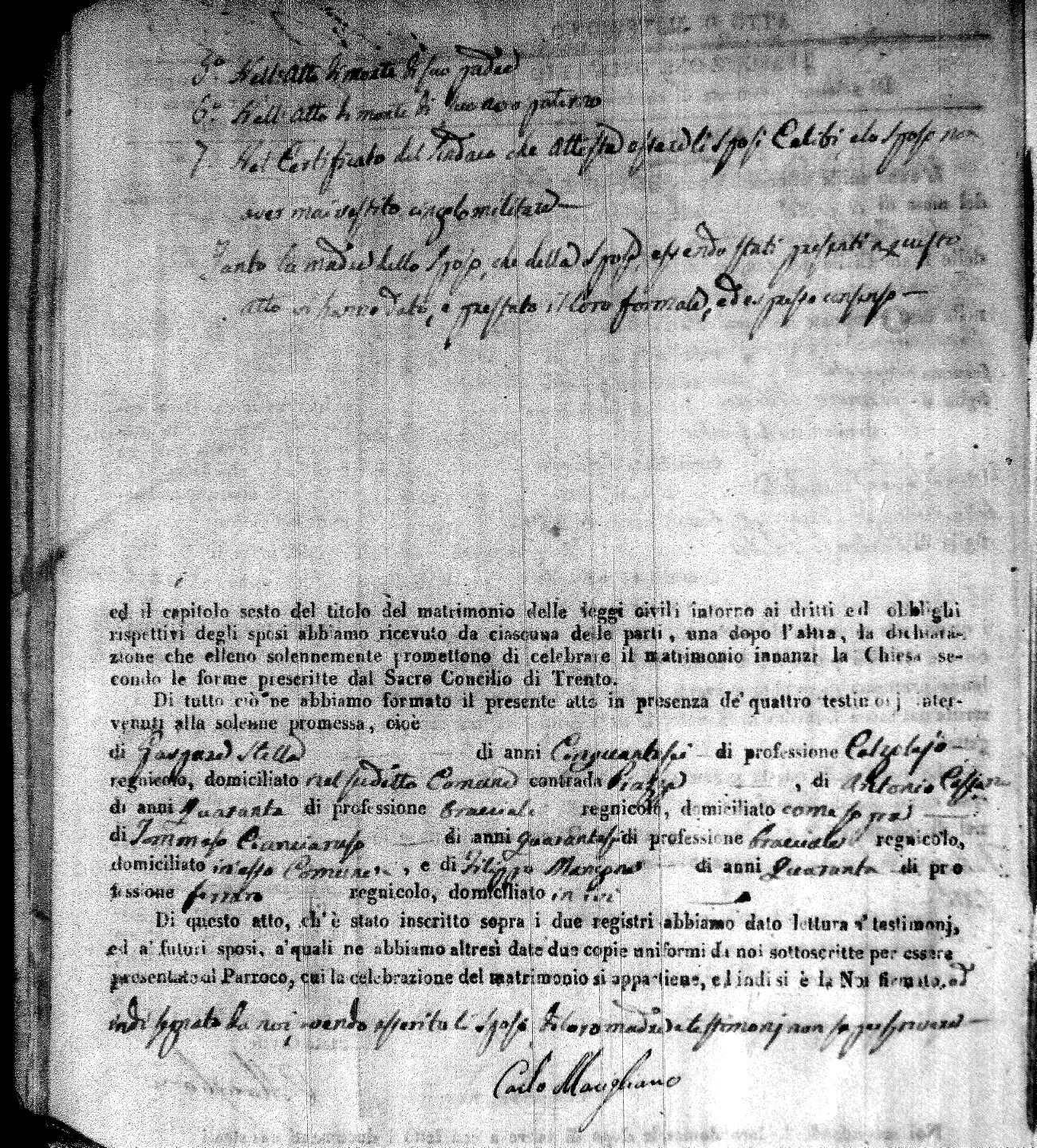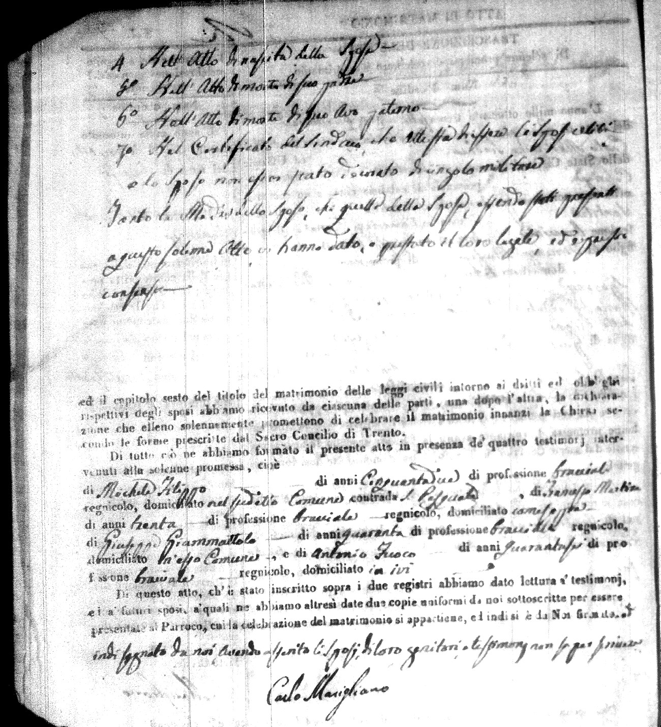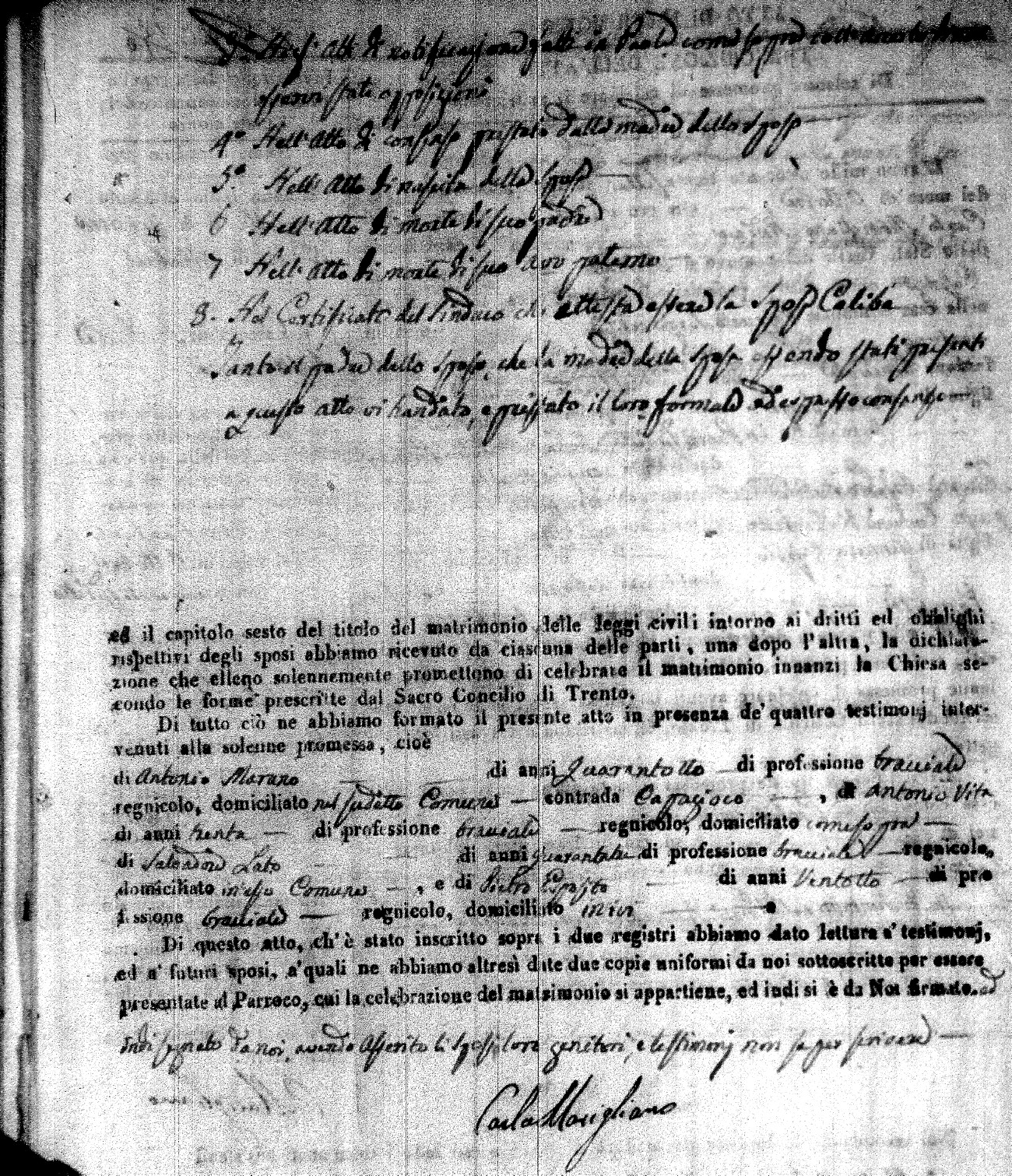 | Caraniolo | Antonio | Matteo (fu) | Calomino | Maria (fu) | Arpaja | Maria Aurelia | Giocchino (fu) | Vita | Arcangela (fu) |