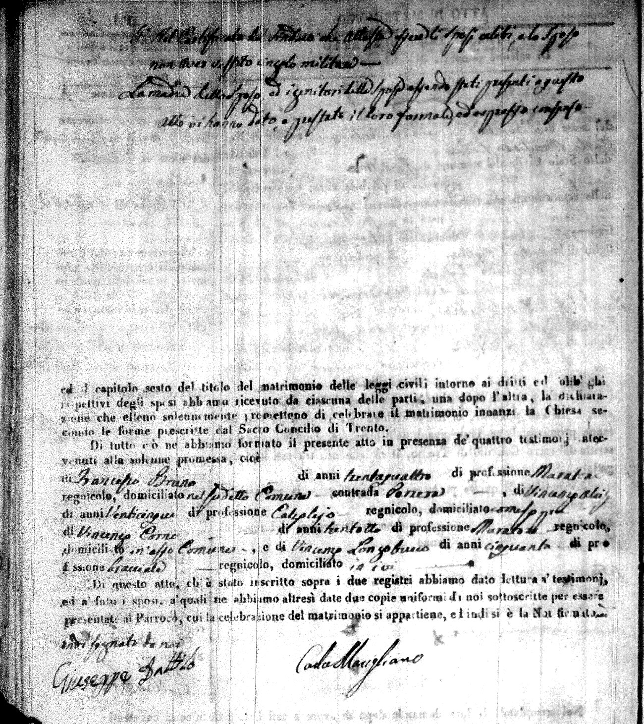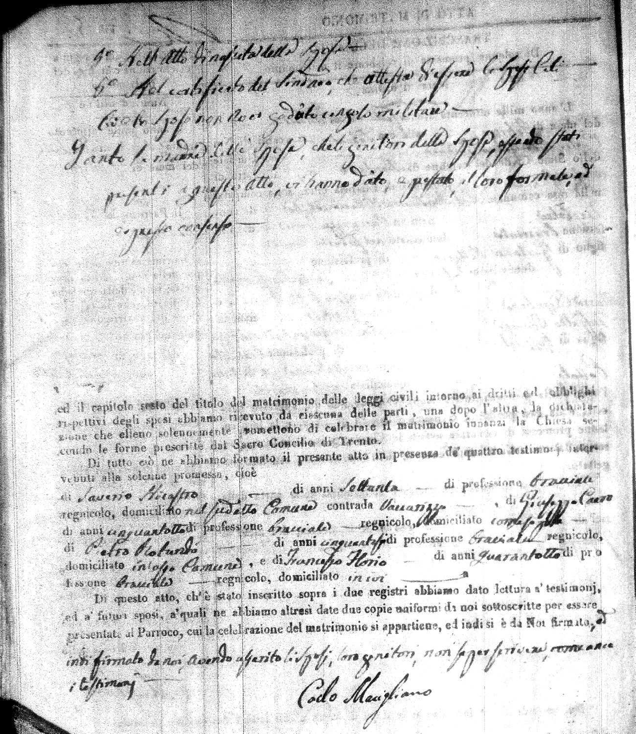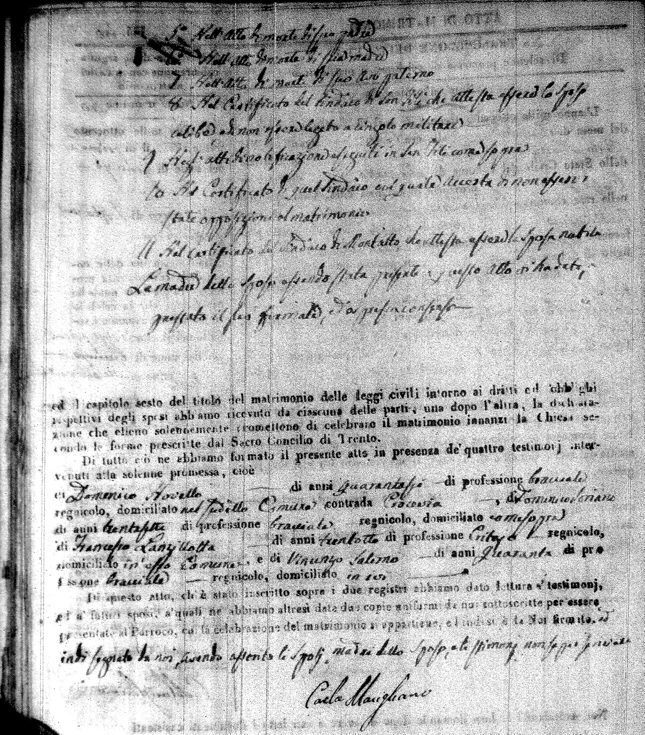 | Molino | Vincenzo | Domenico (fu) | Fasanelli | Anna | Ingrebelli | Angela Maria | Francesco (fu) | Nigro | Chiara |