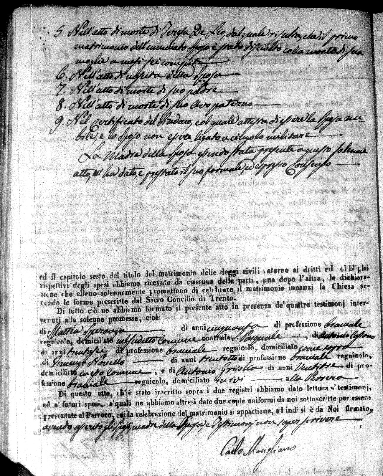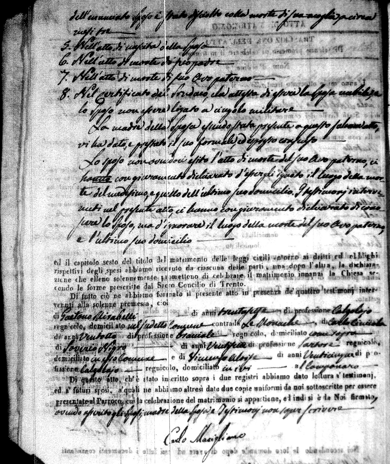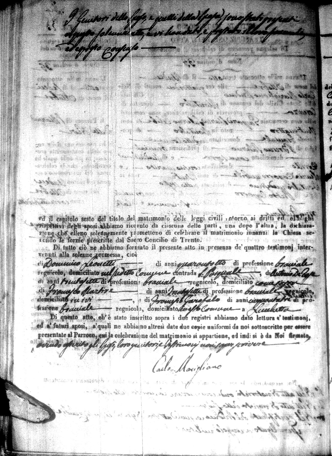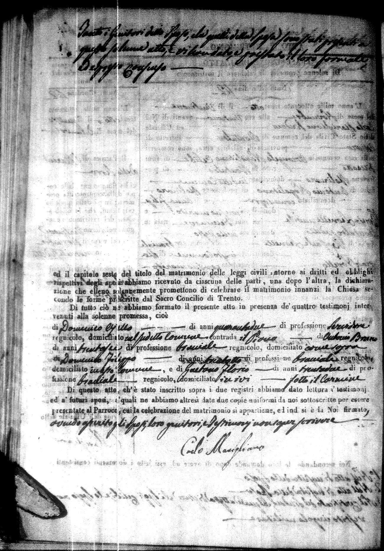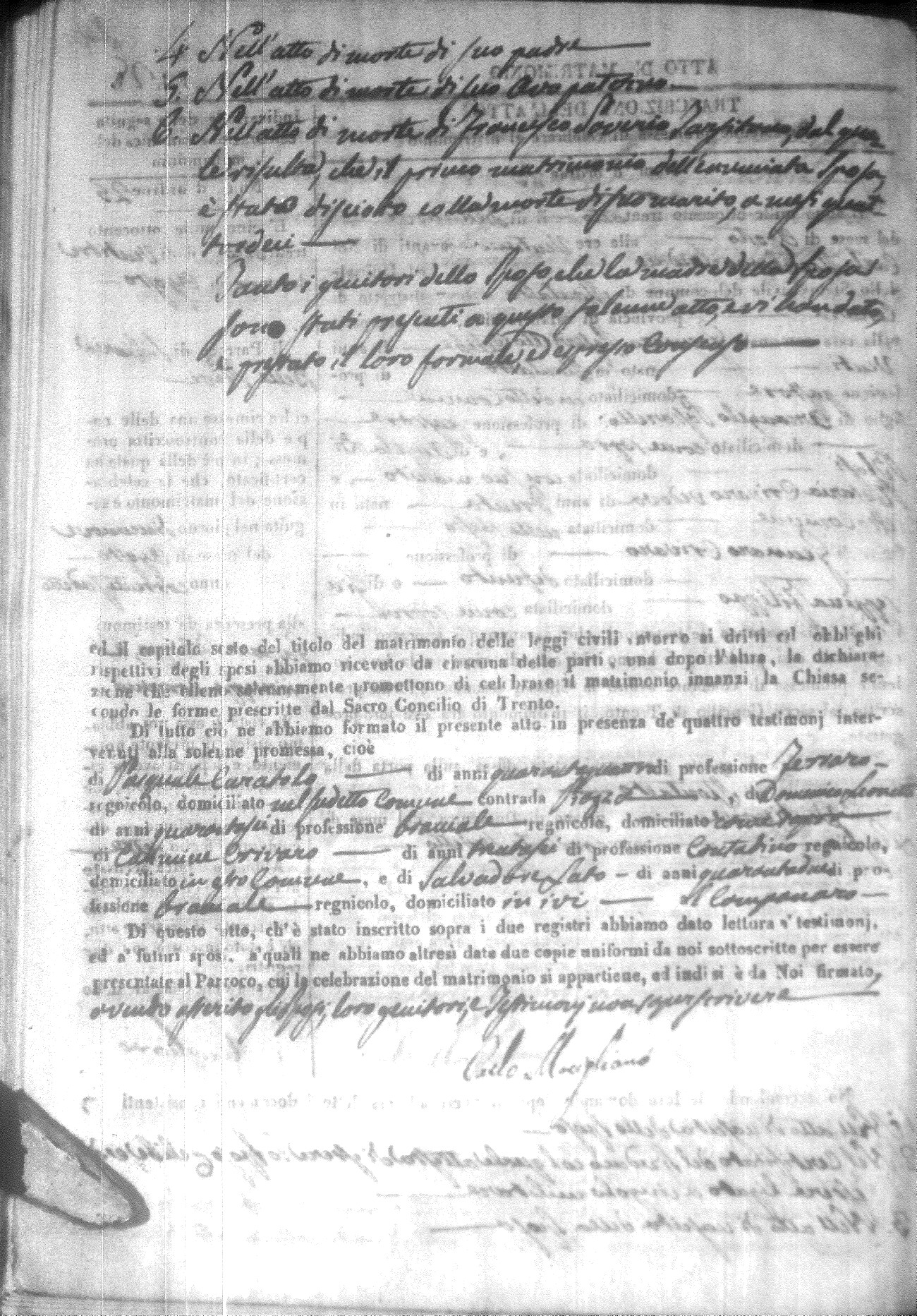 | d'Agostino | Michele Arcangelo | Pasquale (fu) | Benincasa | Chiara | de Stormitius? | Maria Aloisa | Unknown | Unknown | Unknown | Tocci | Tommaso | Giovanni (fu) | Migliano | Rosa | Coscarello | Carlotta | Francesco | Napolitano | Chiara (fu) |
