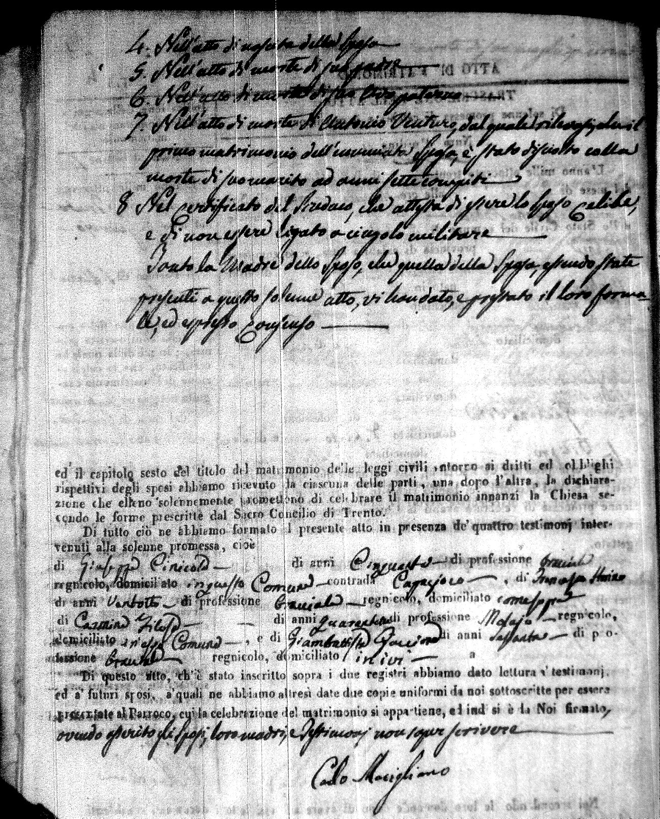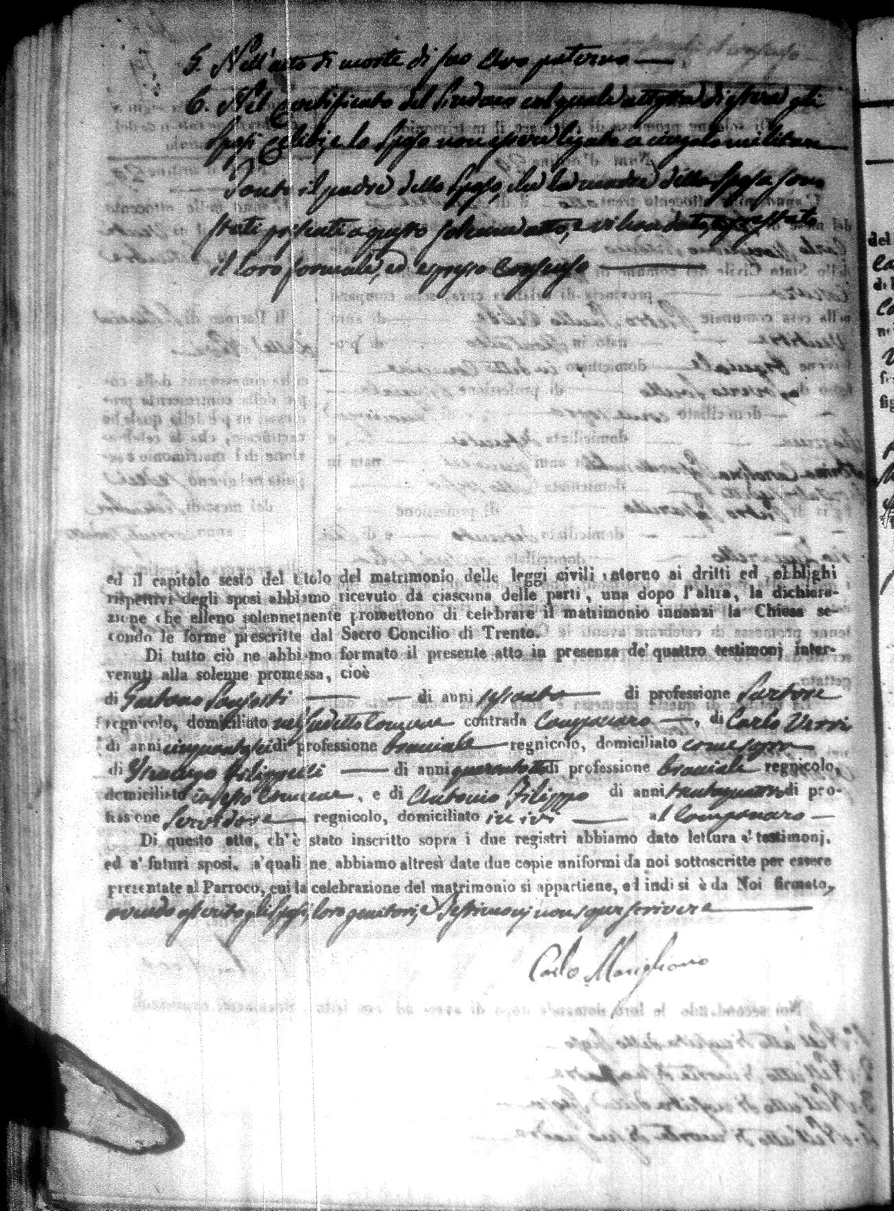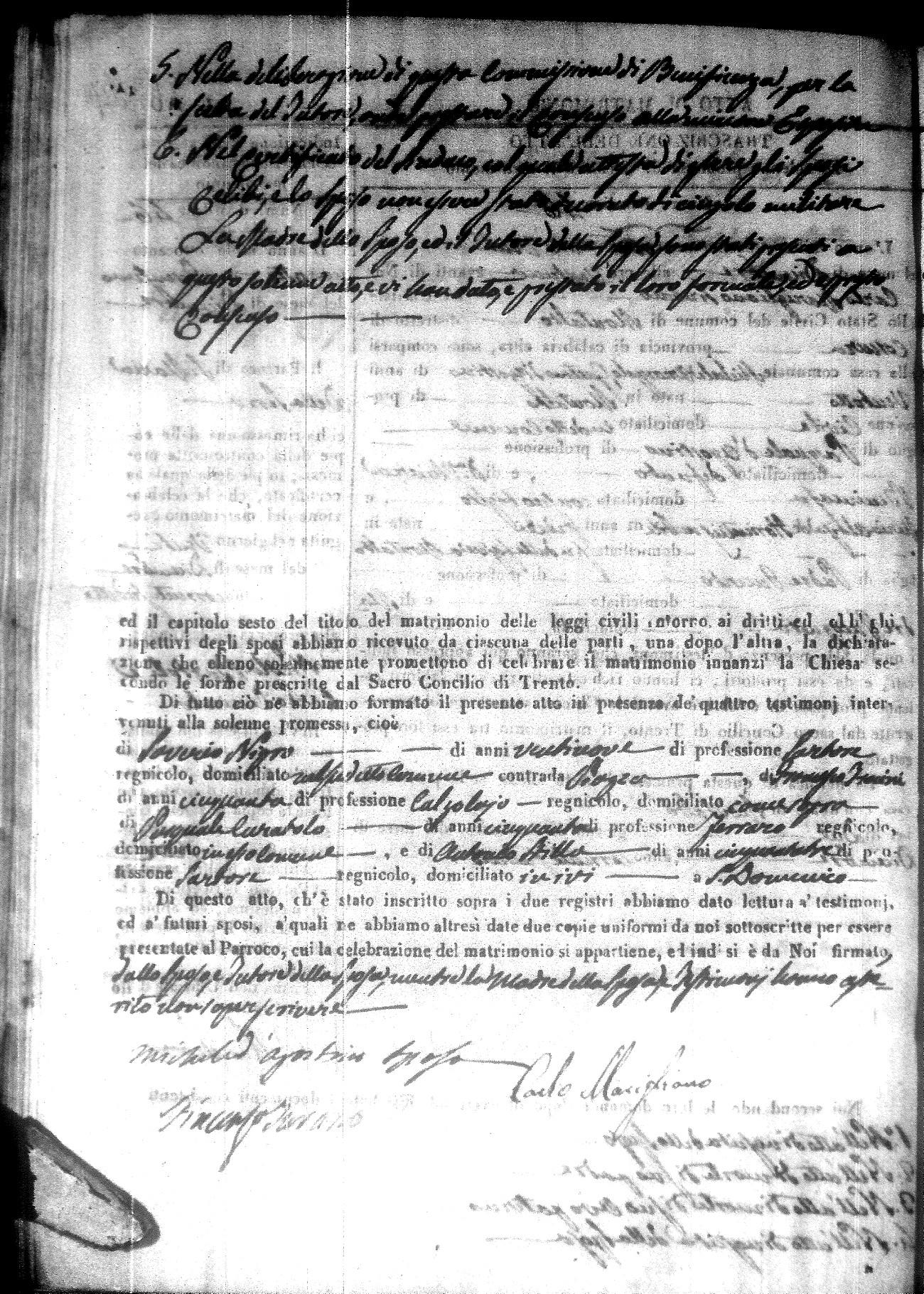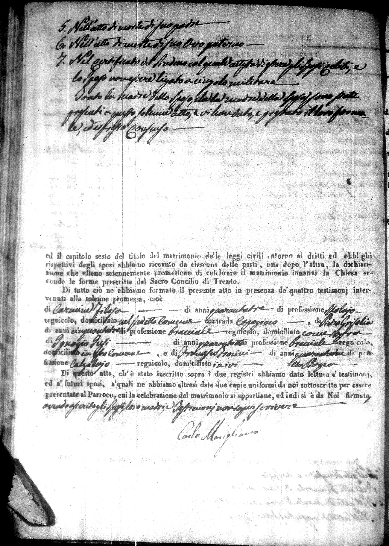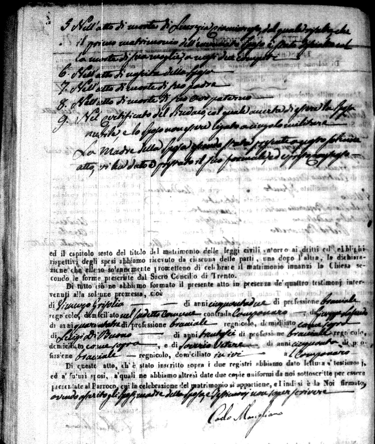| d'Agostino | Michele Arcangelo | Pasquale (fu) | Benincasa | Chiara | de Stormitius? | Maria Aloisa | Unknown | Unknown | Unknown | Tocci | Tommaso | Giovanni (fu) | Migliano | Rosa | Coscarello | Carlotta | Francesco | Napolitano | Chiara (fu) |