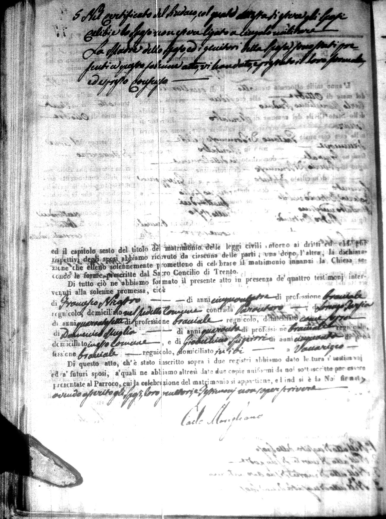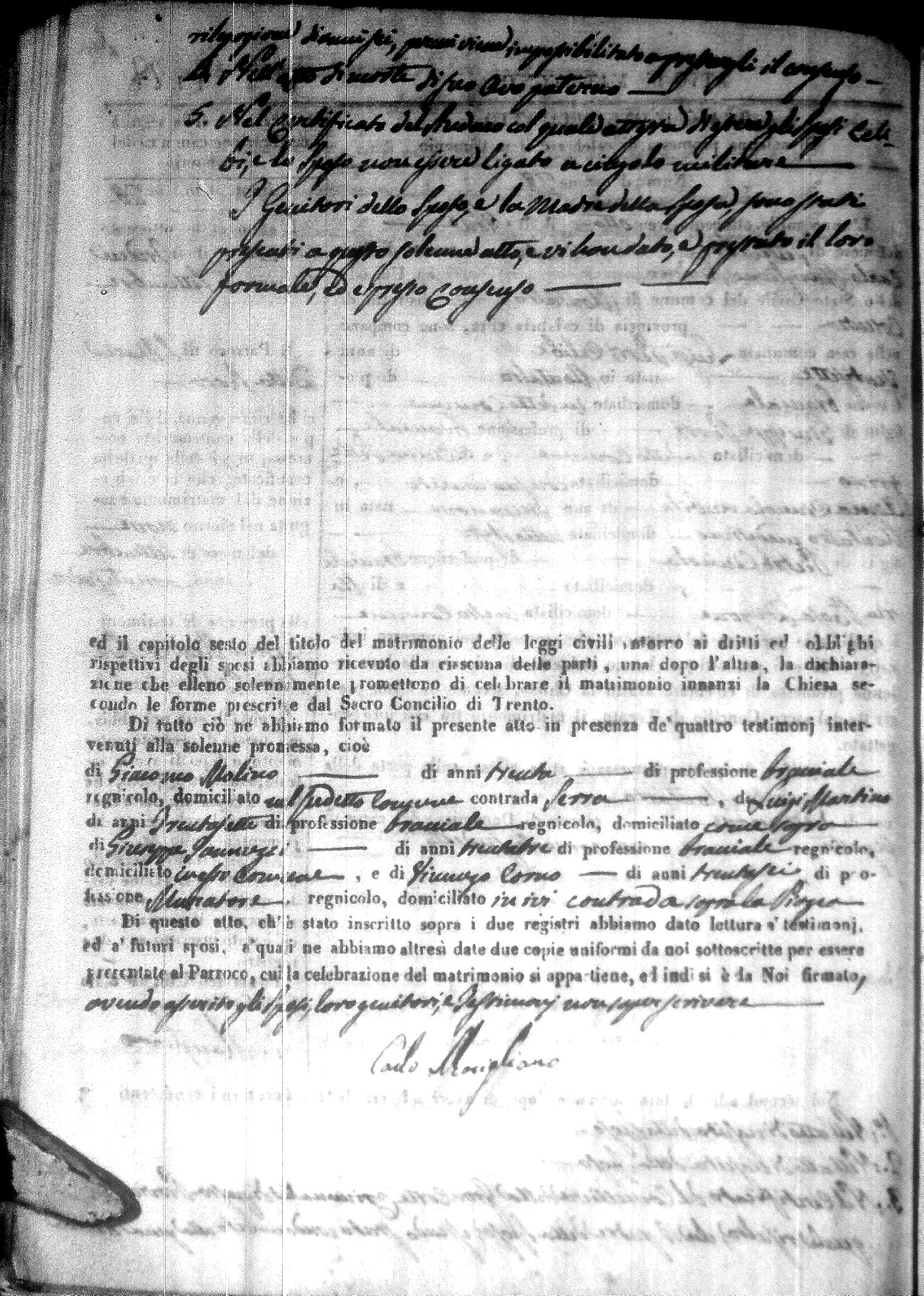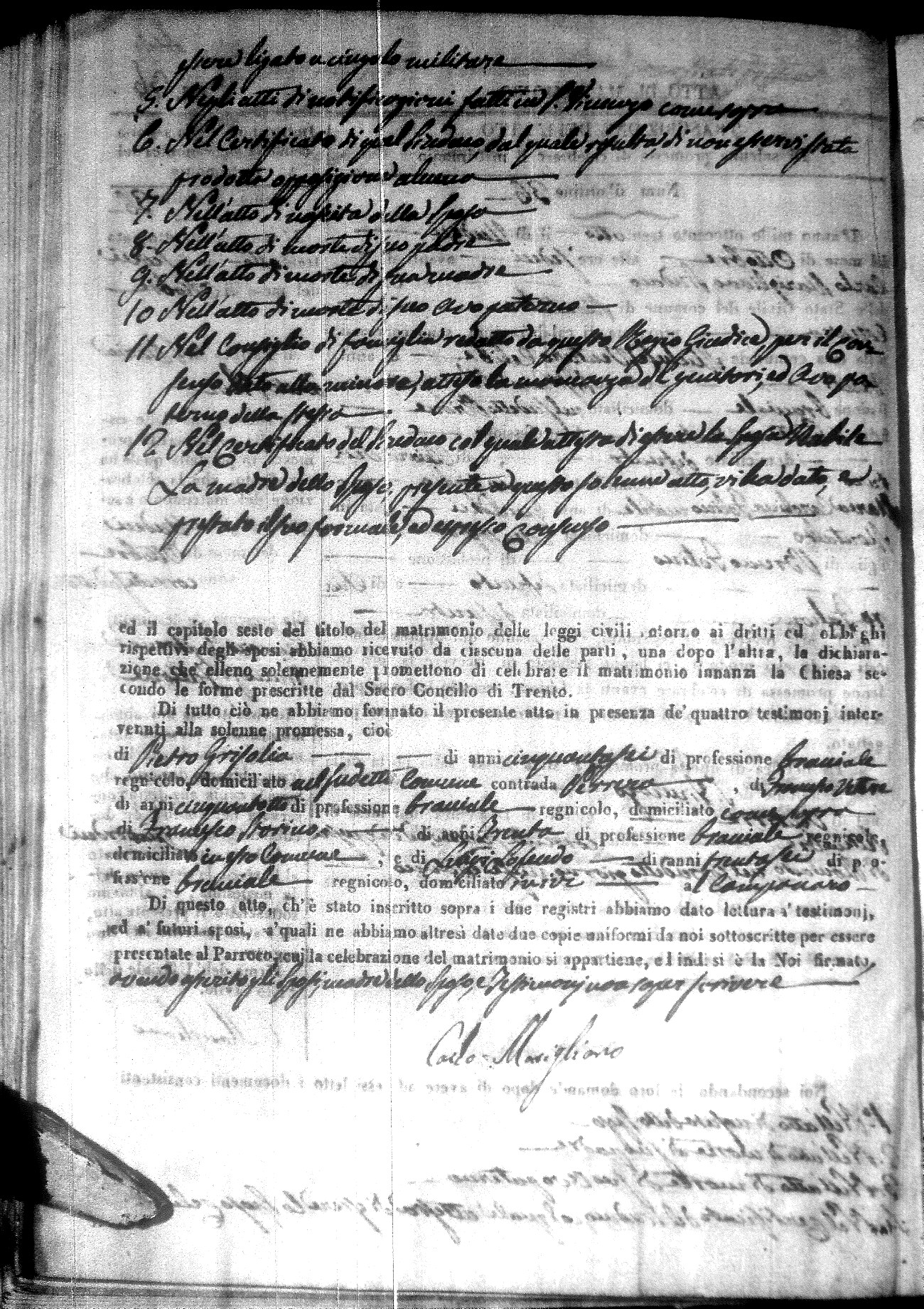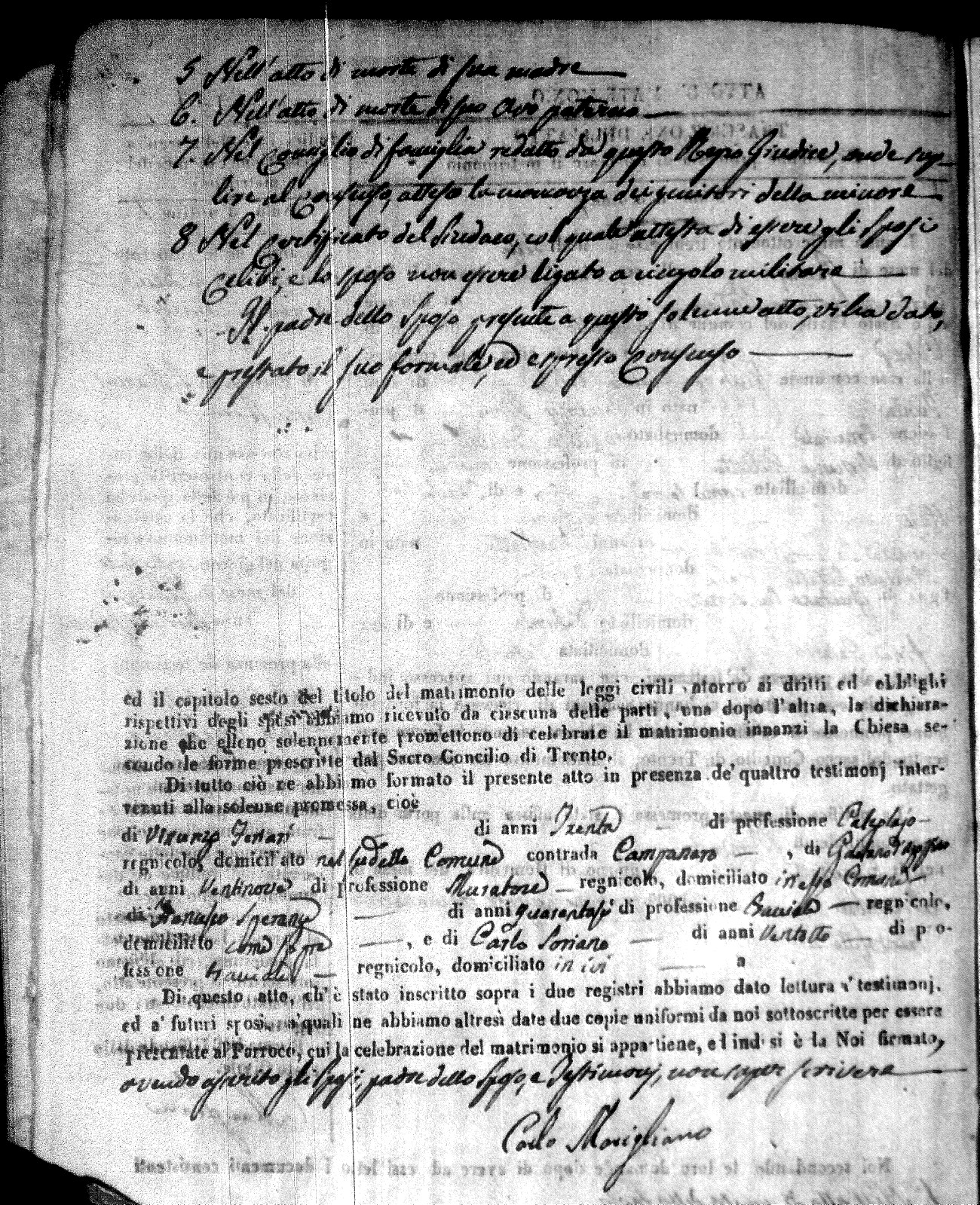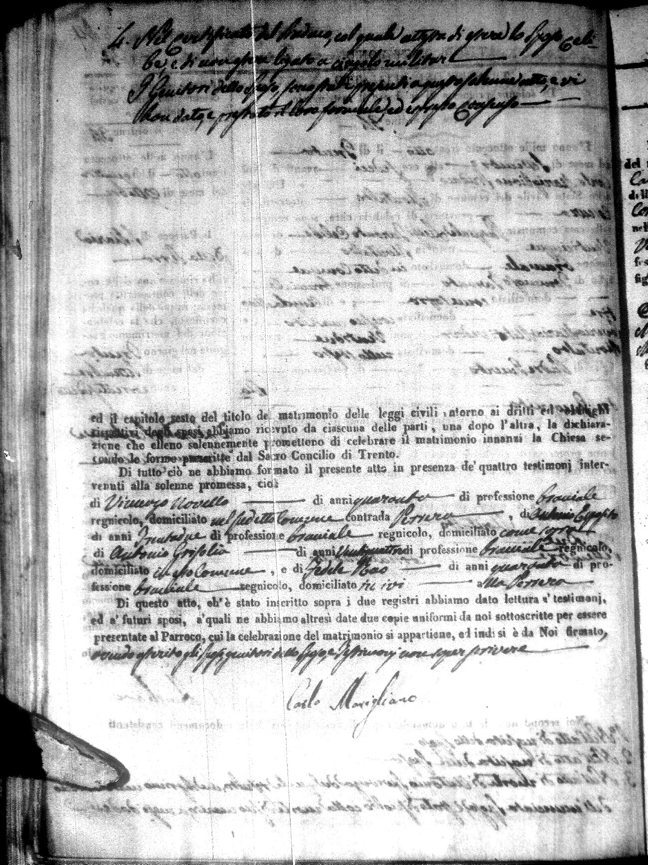 | d'Agostino | Michele Arcangelo | Pasquale (fu) | Benincasa | Chiara | de Stormitius? | Maria Aloisa | Unknown | Unknown | Unknown | Tocci | Tommaso | Giovanni (fu) | Migliano | Rosa | Coscarello | Carlotta | Francesco | Napolitano | Chiara (fu) |