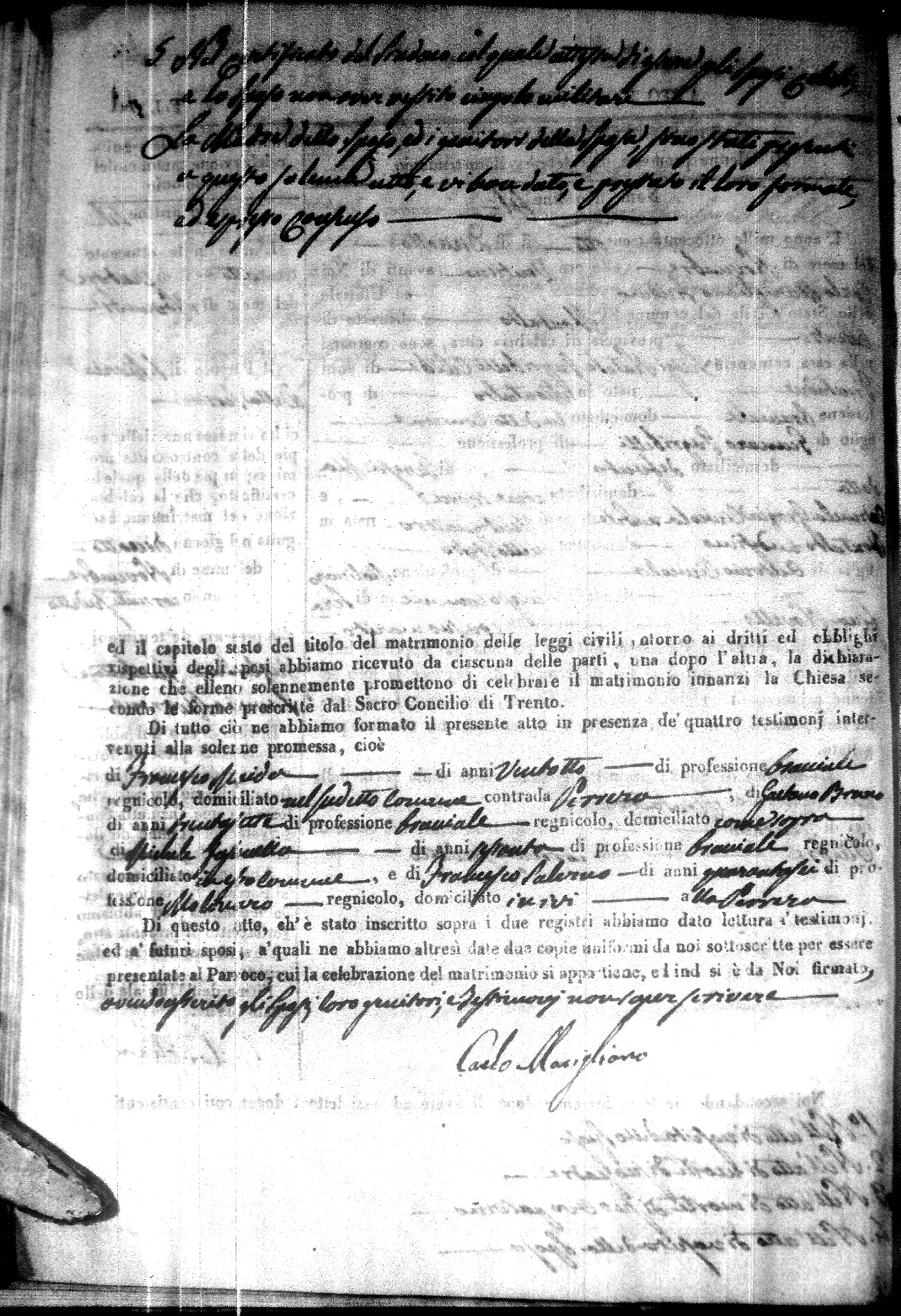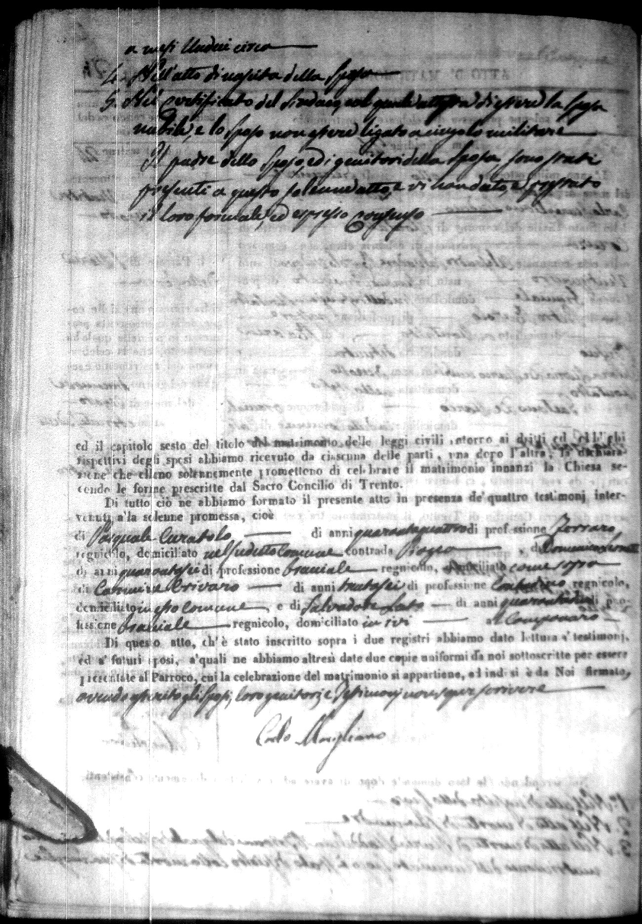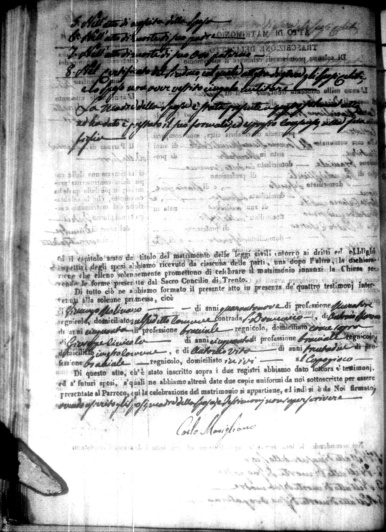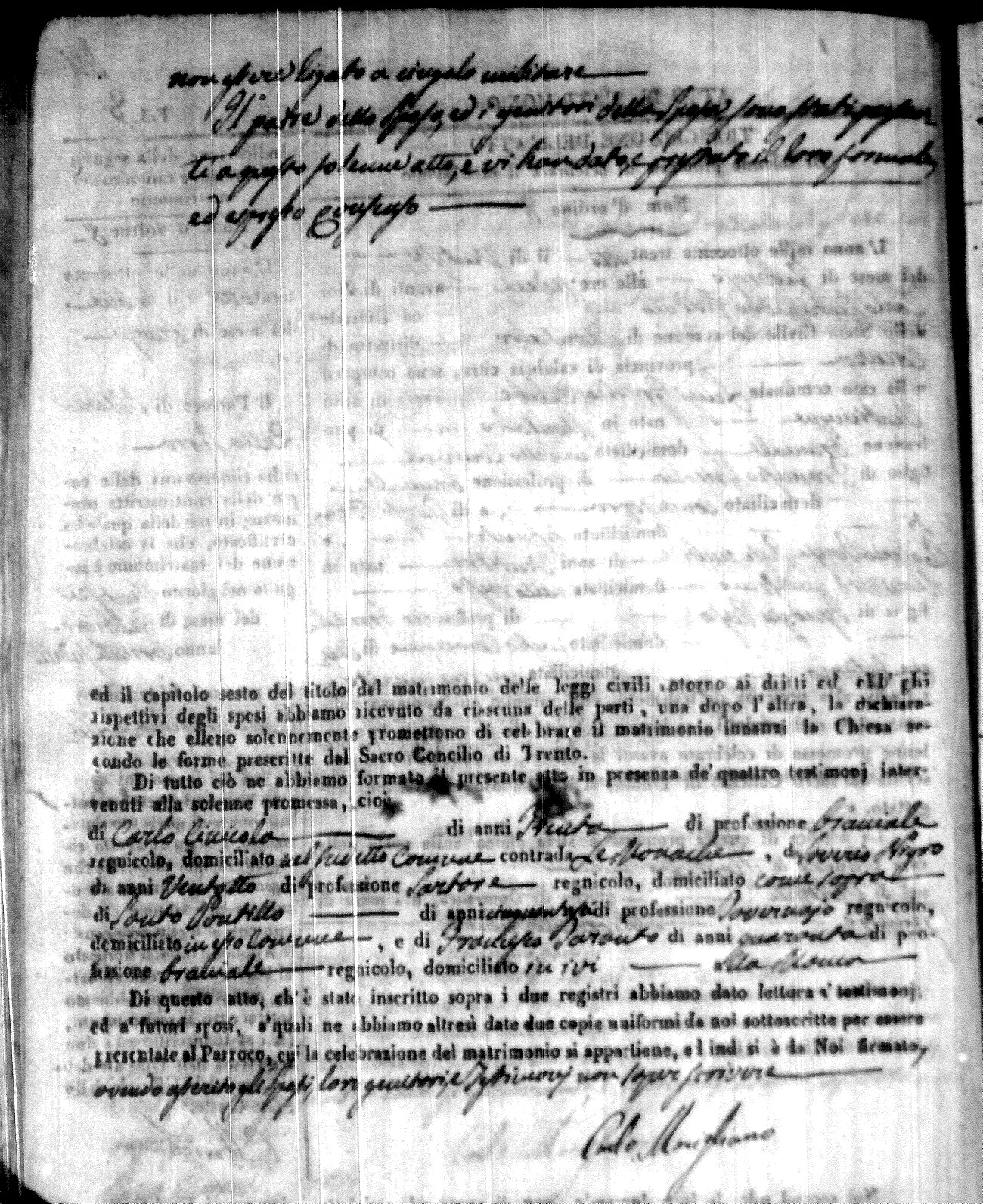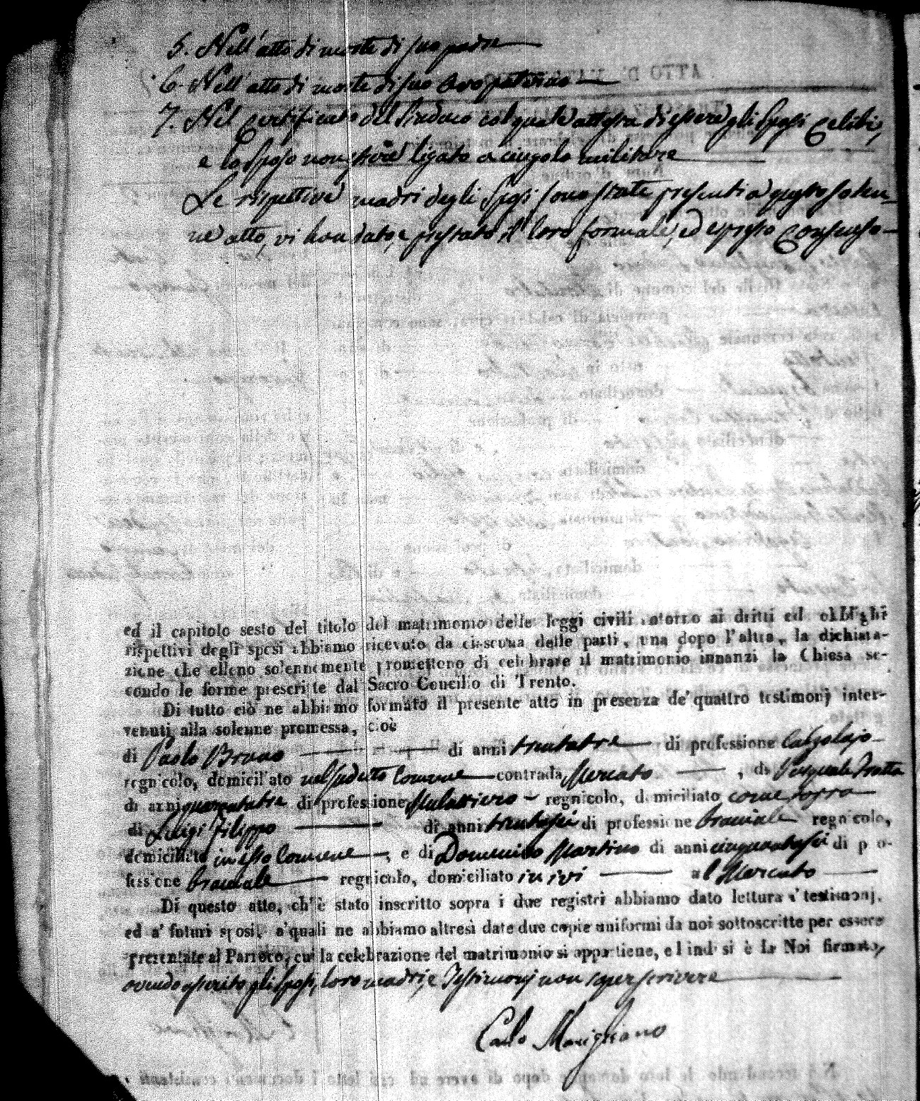 | d'Agostino | Michele Arcangelo | Pasquale (fu) | Benincasa | Chiara | de Stormitius? | Maria Aloisa | Unknown | Unknown | Unknown | Tocci | Tommaso | Giovanni (fu) | Migliano | Rosa | Coscarello | Carlotta | Francesco | Napolitano | Chiara (fu) |