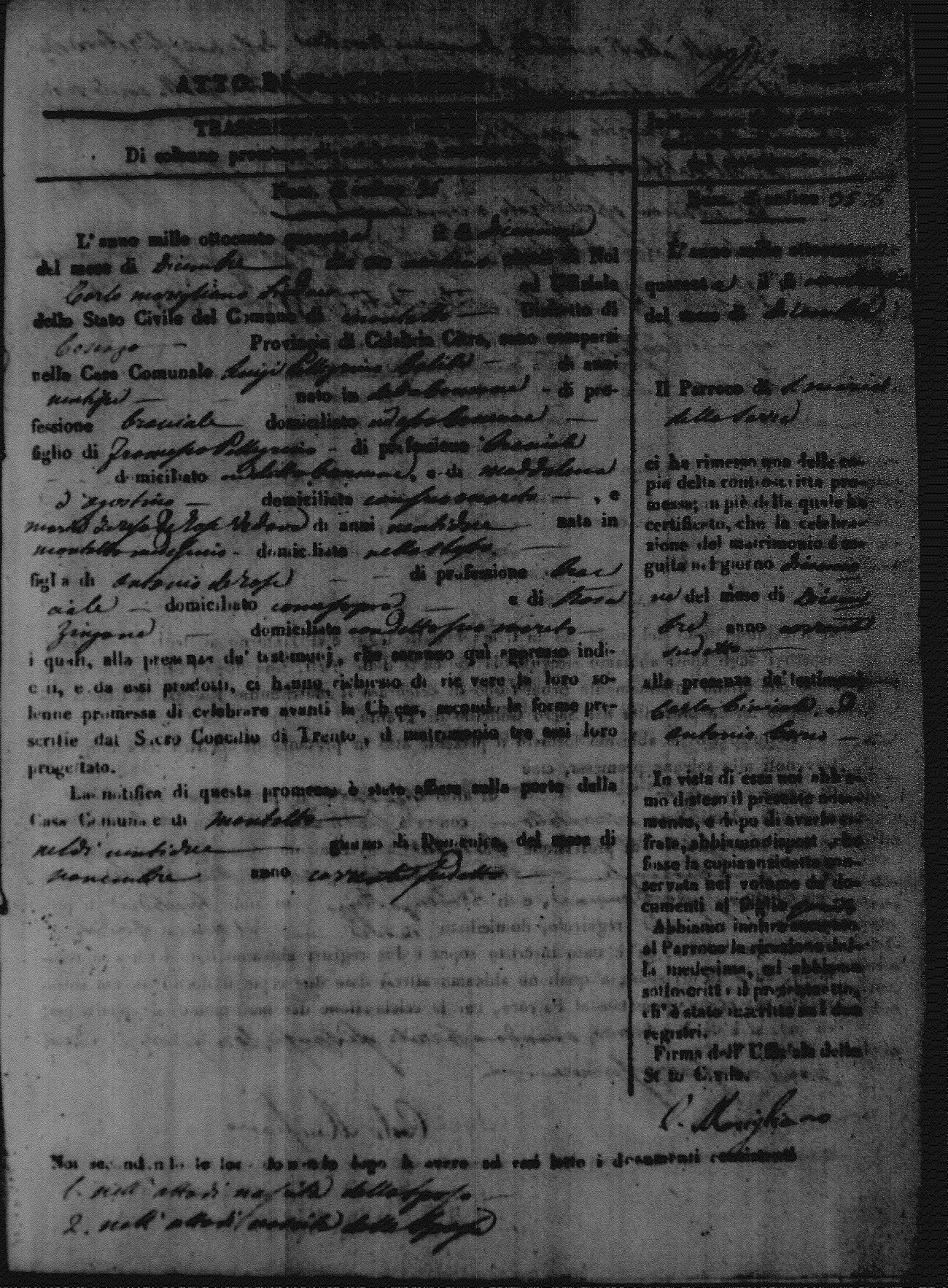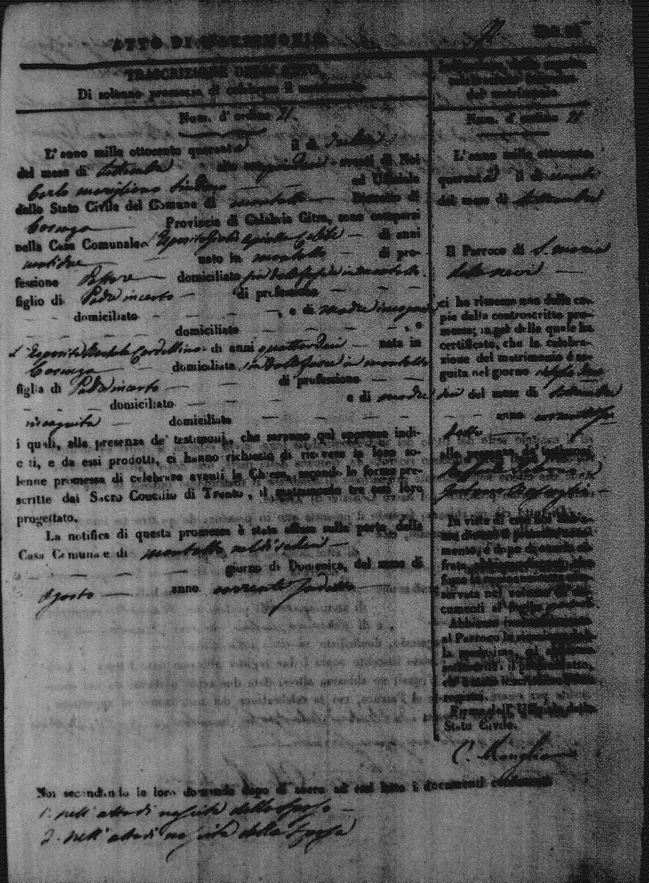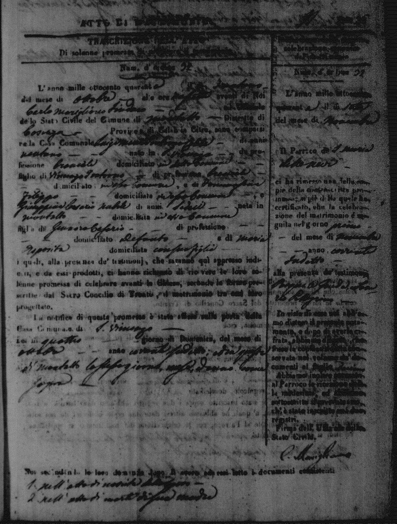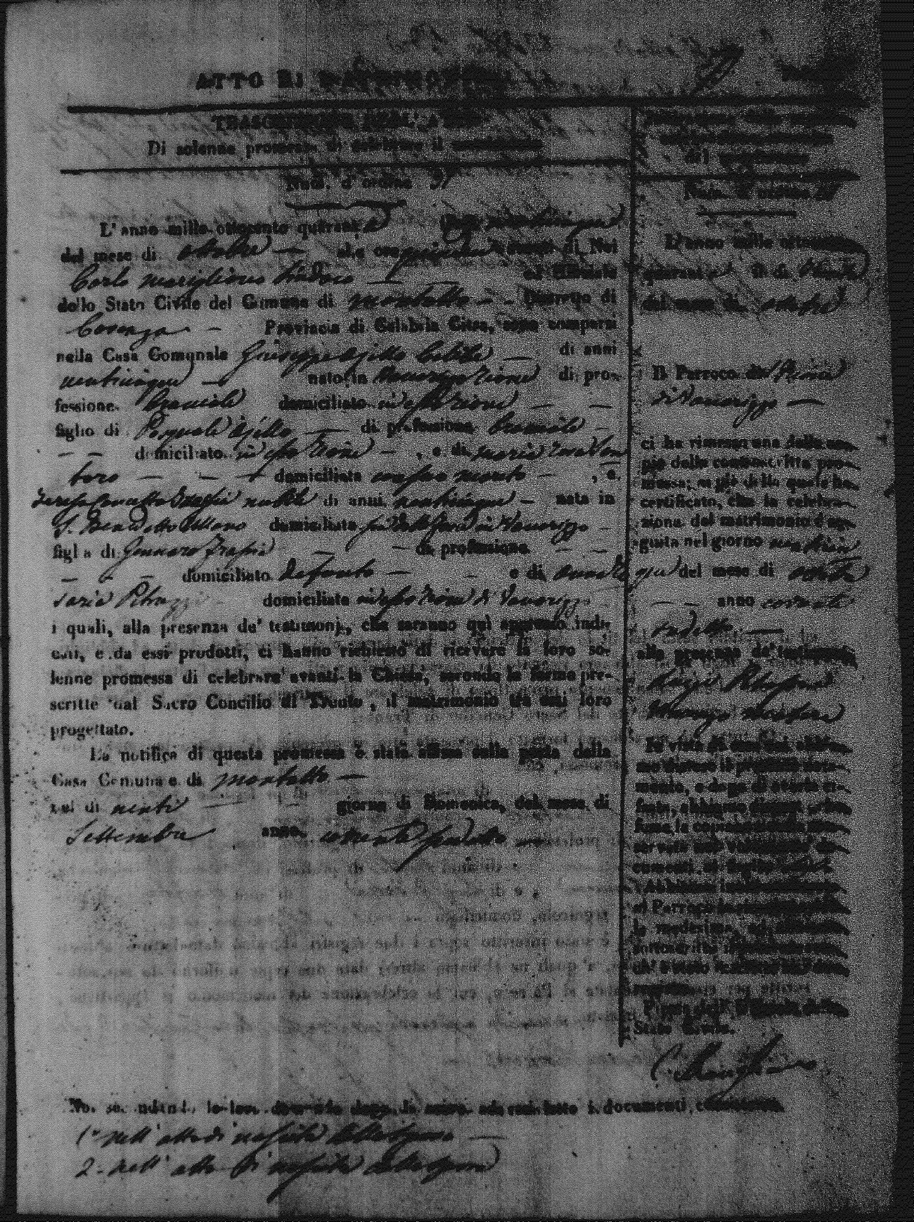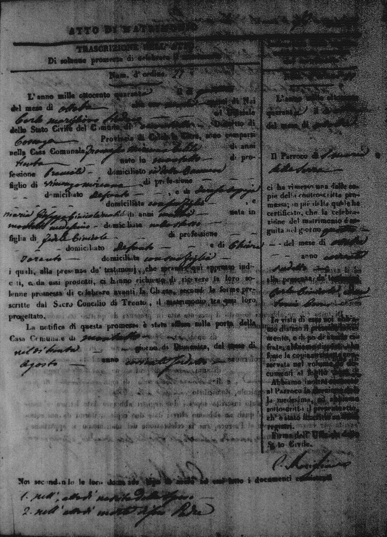Here are the extractions for all the marriage acts in 1840 for Montalto Uffugo. For more information, click on the groom's surname to view a copy of the original document.