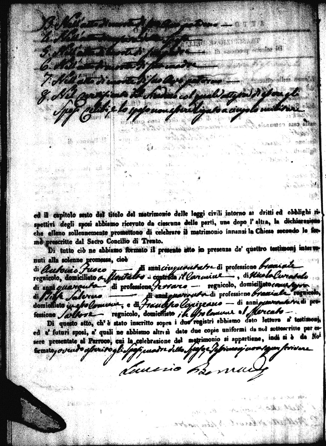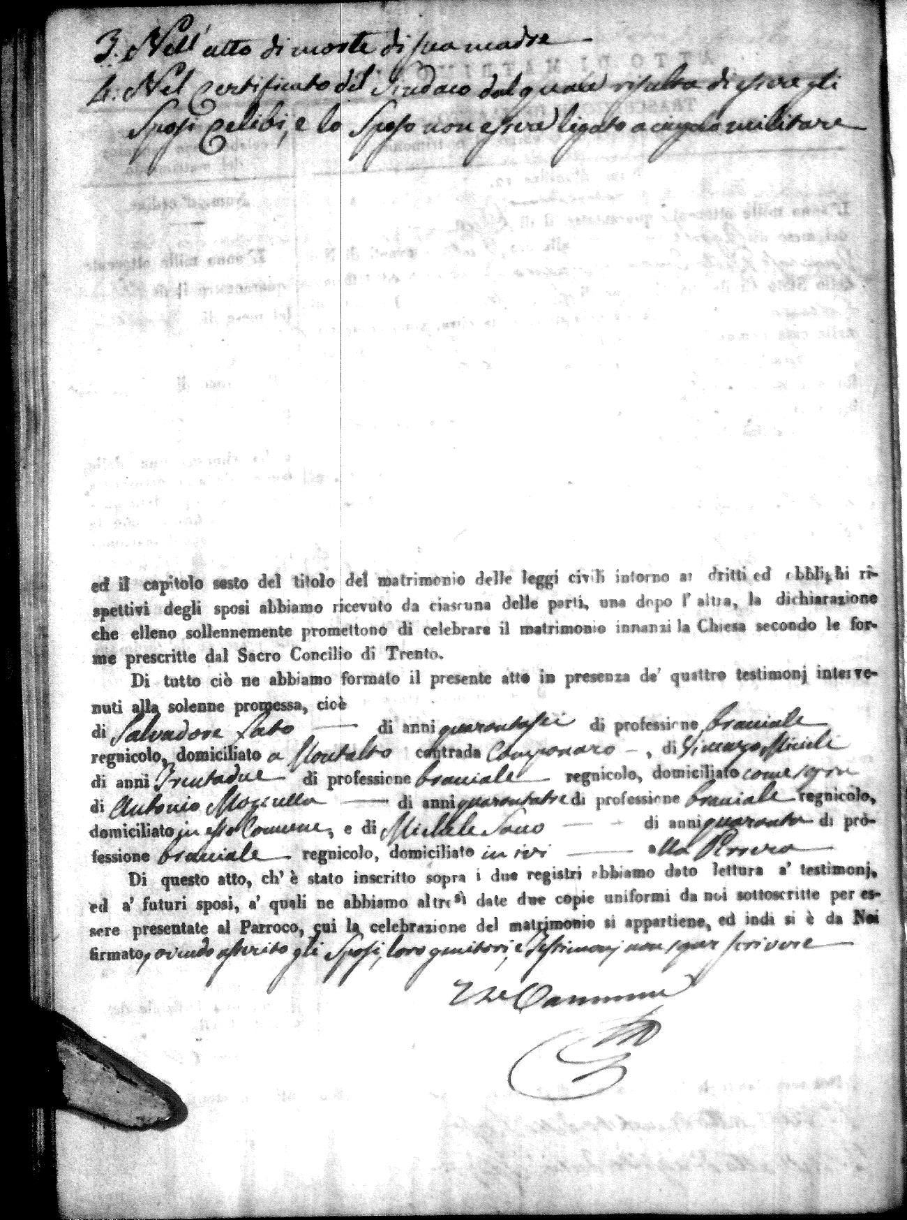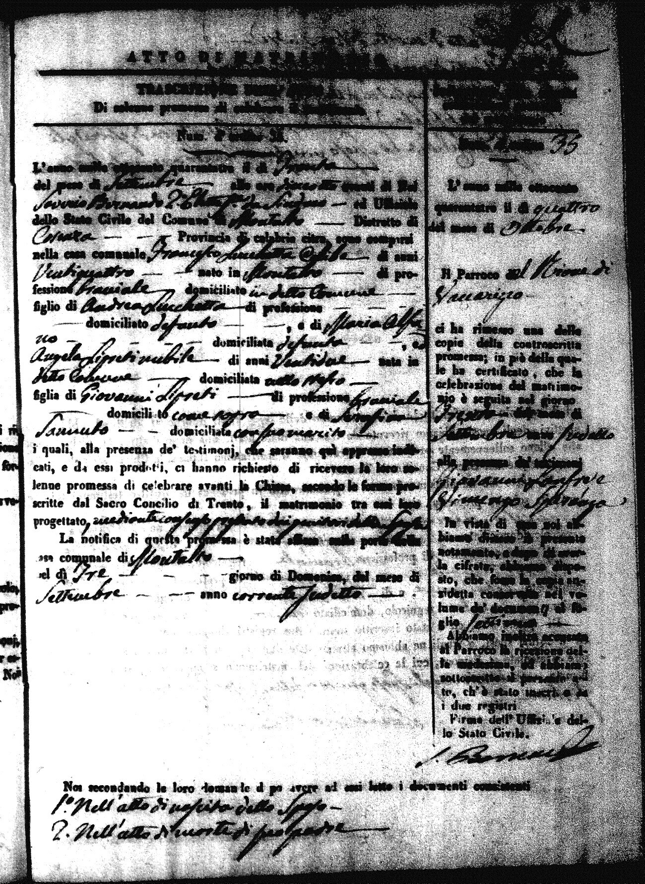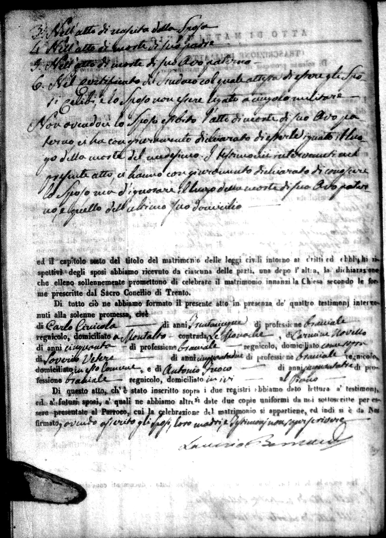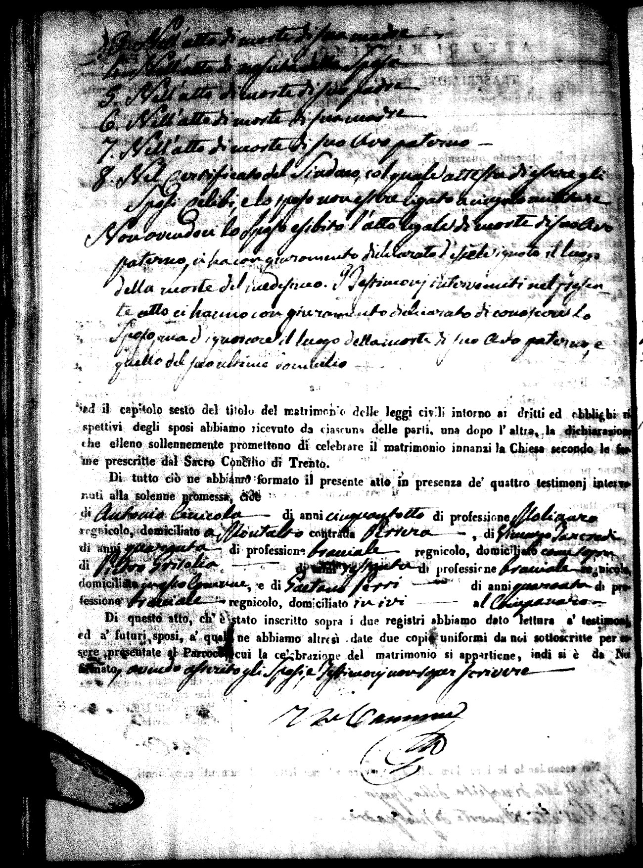 | Sannuto | Domenico | Gennaro (fu) | Caparello | Maria (fu) | Villecco | Rosa Angela | Gennaro (fu) | Nicastro | Teresa |