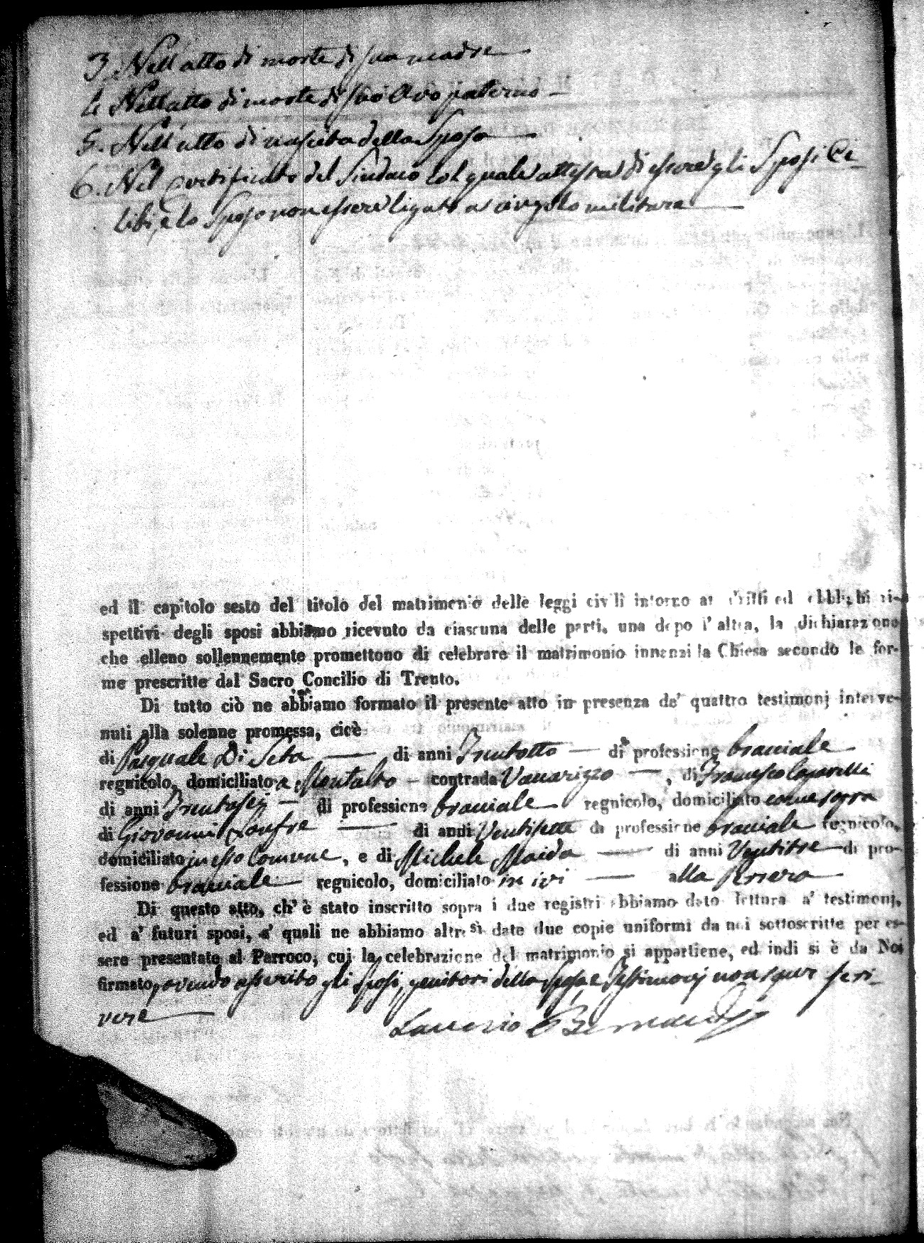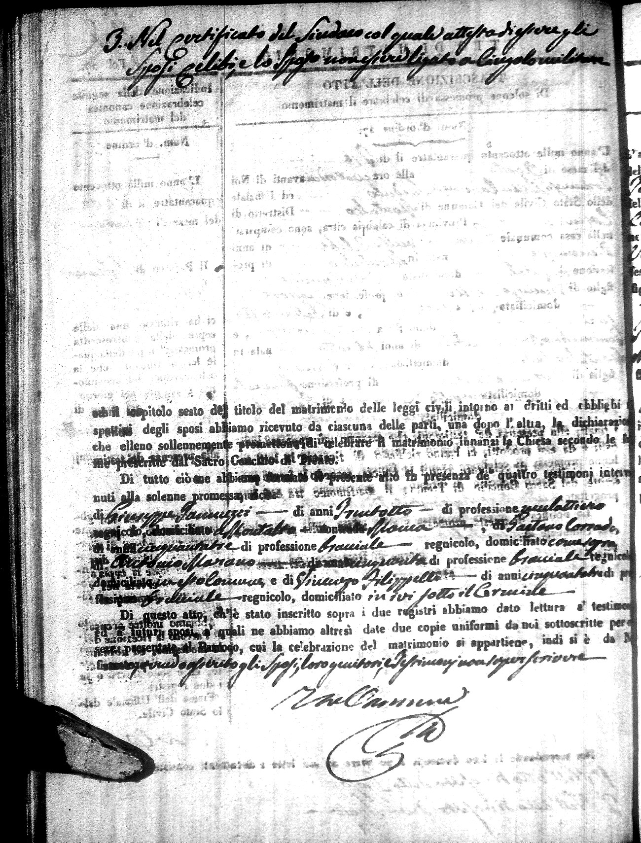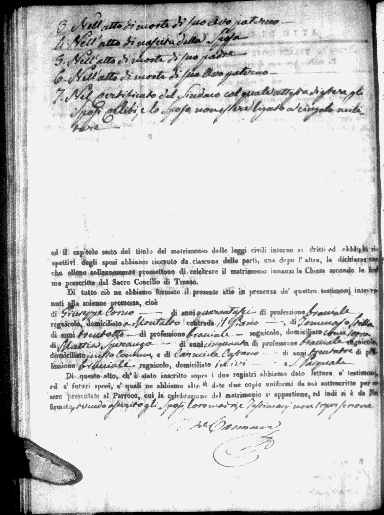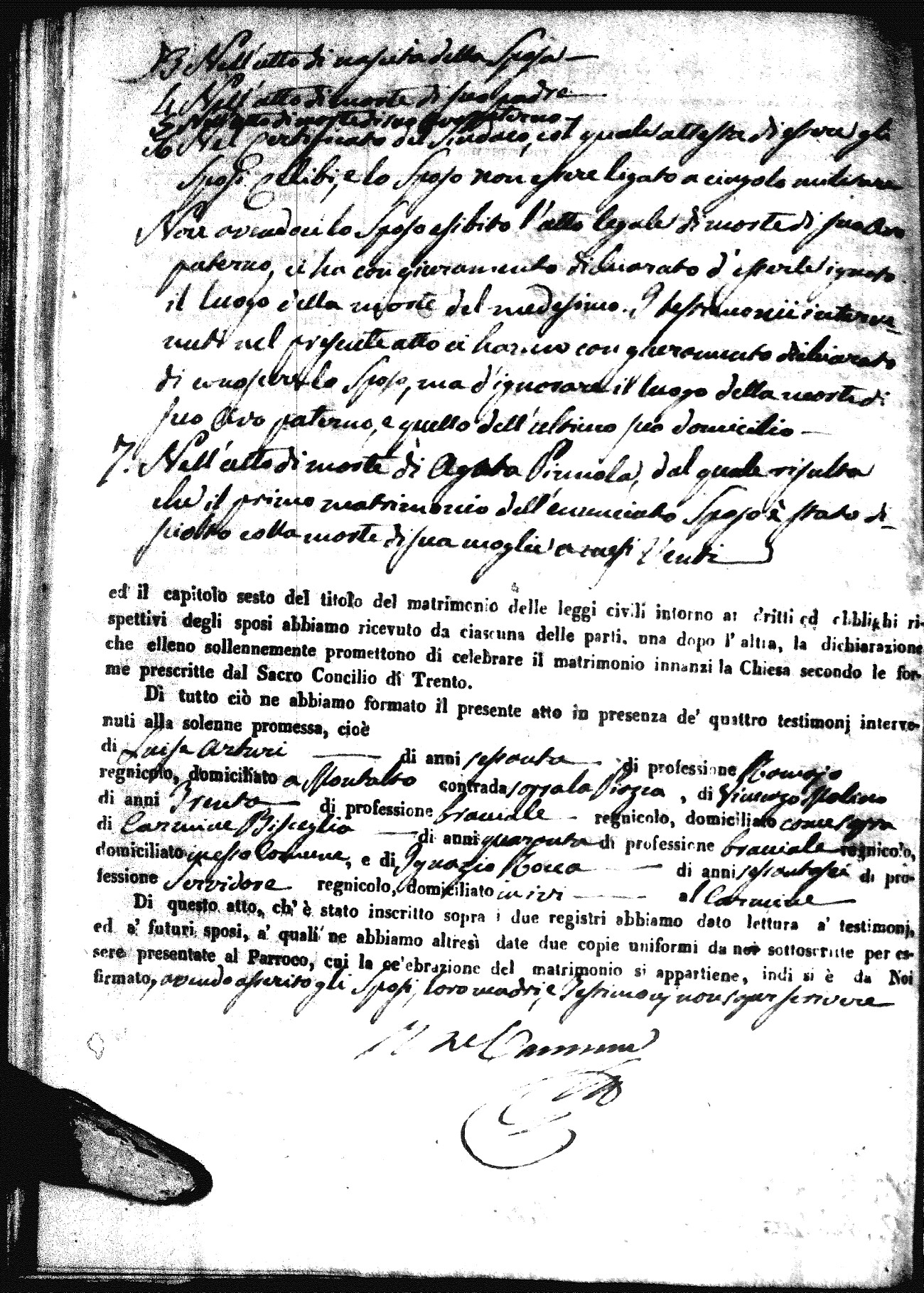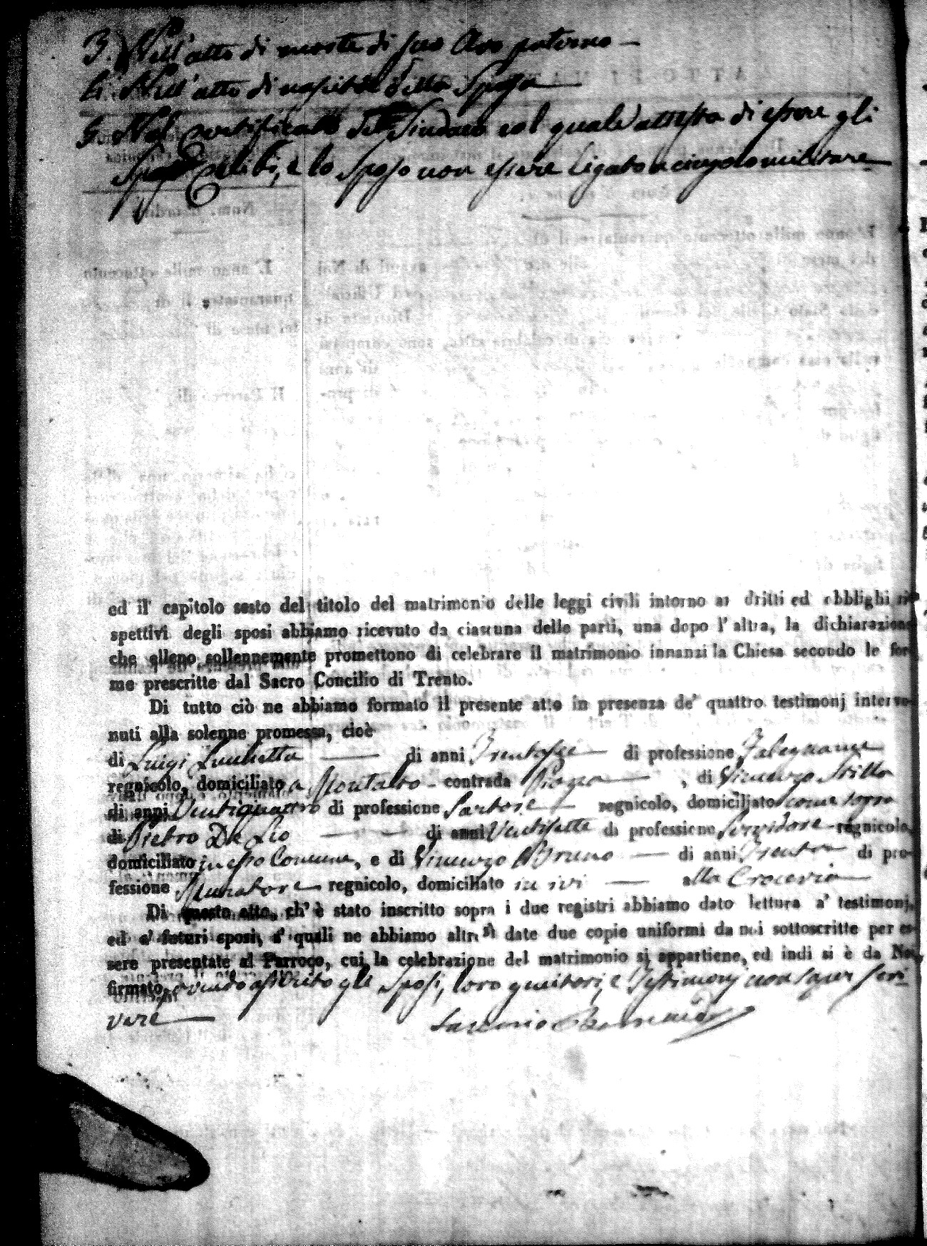 | Sannuto | Domenico | Gennaro (fu) | Caparello | Maria (fu) | Villecco | Rosa Angela | Gennaro (fu) | Nicastro | Teresa |